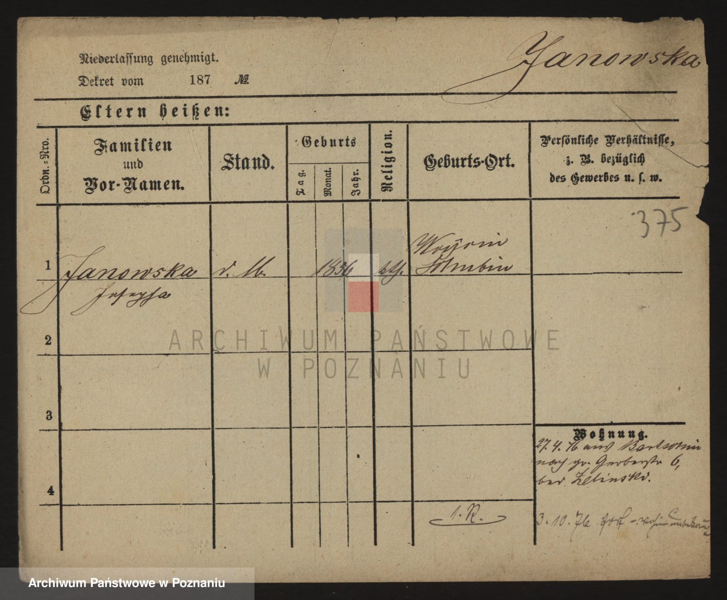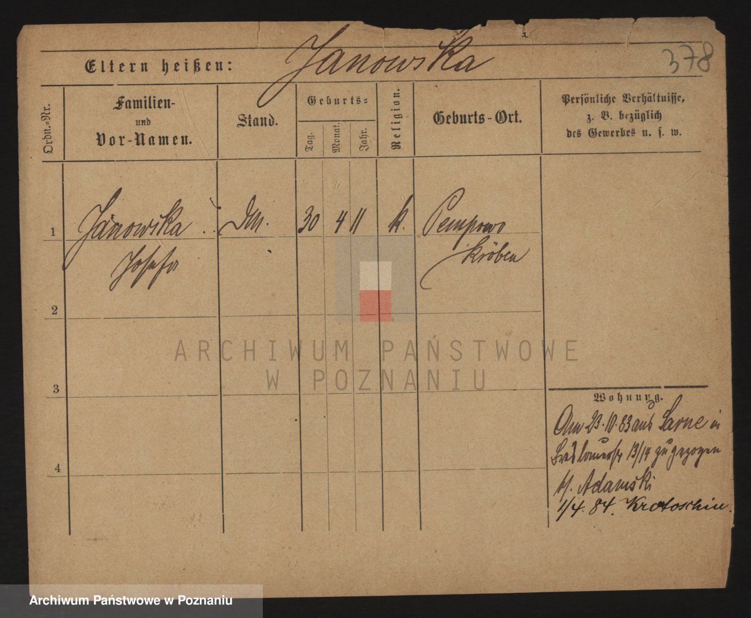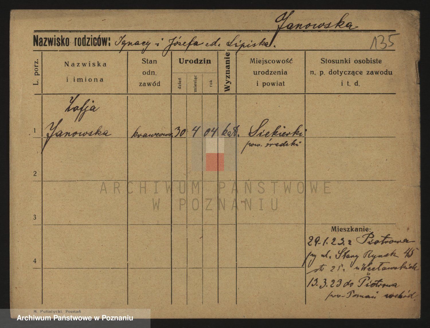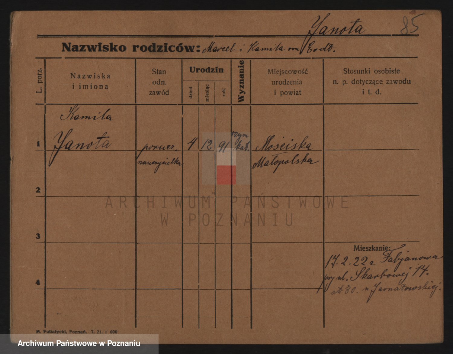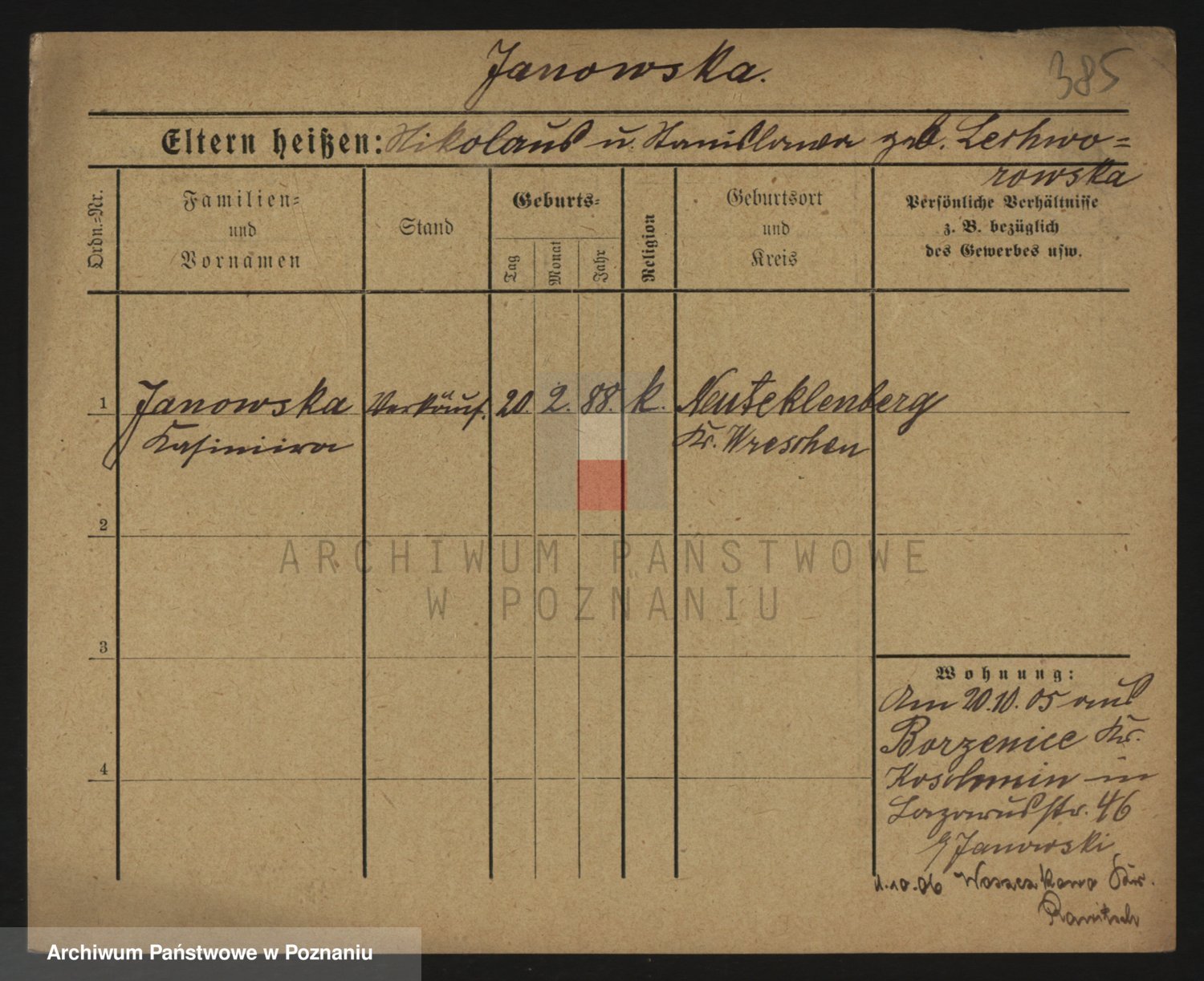 Janowska z d. Porankiewicz, Johanna