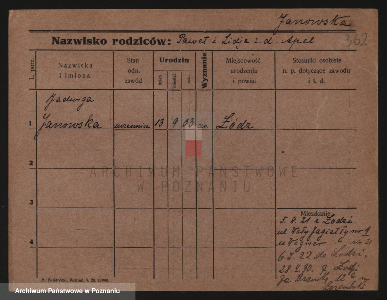Janowska z d. Odelga, Pauline