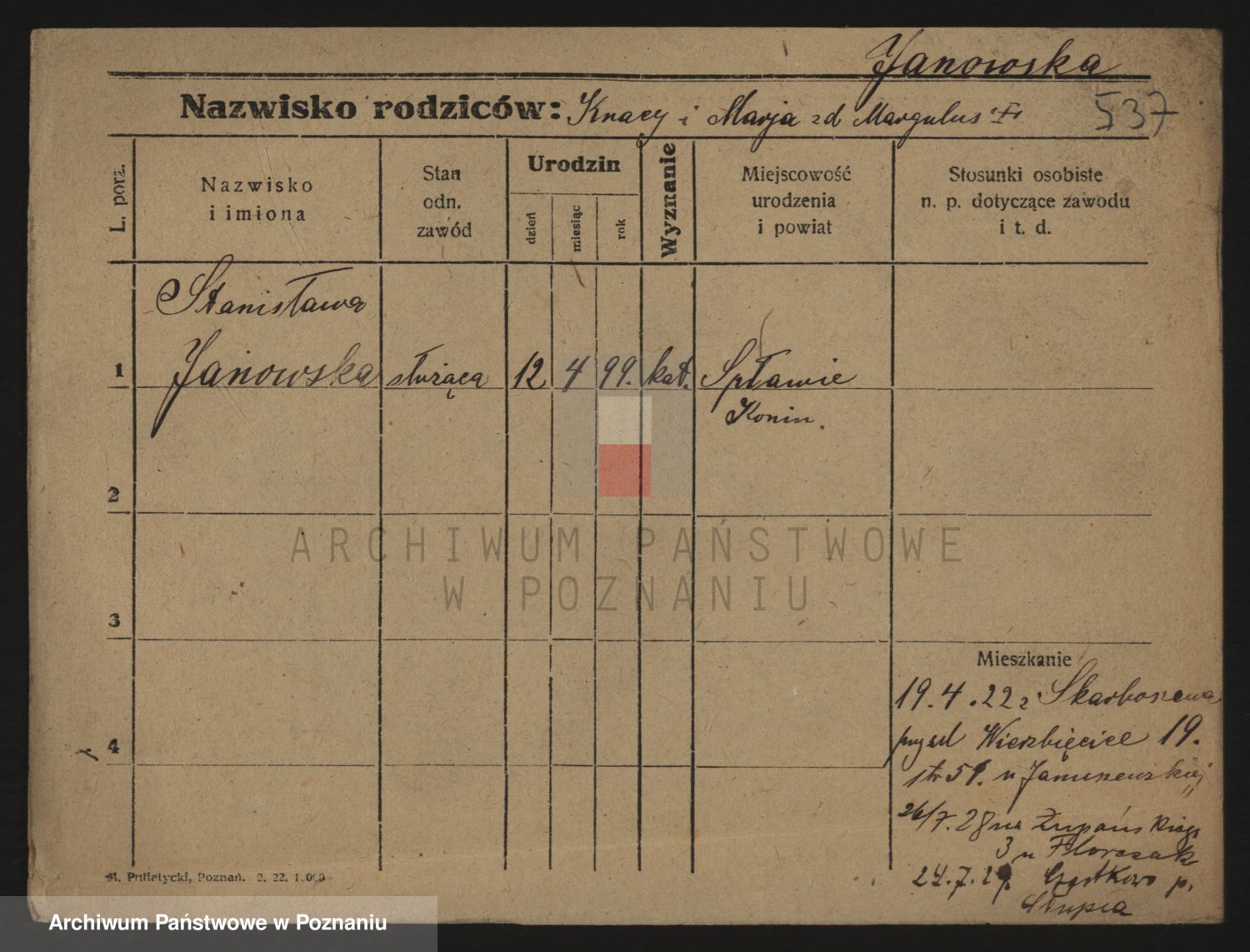 Janowska z d. Szuda, Anastasia