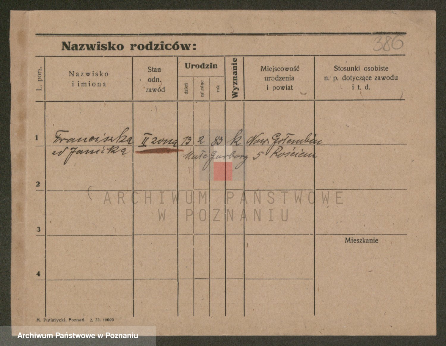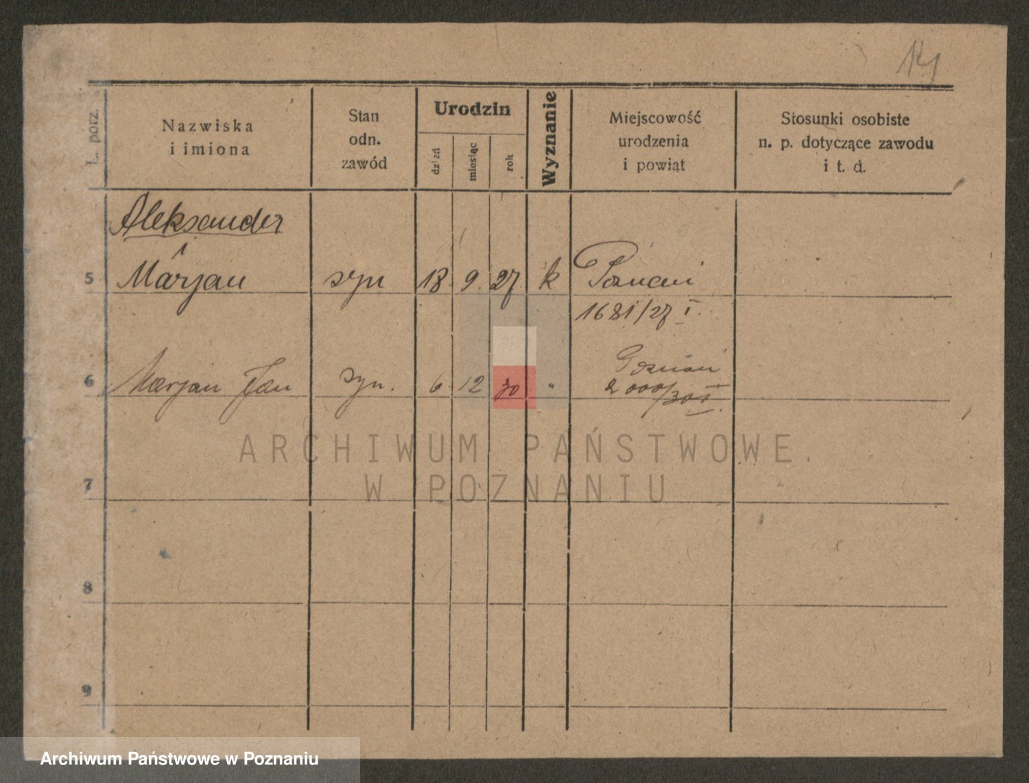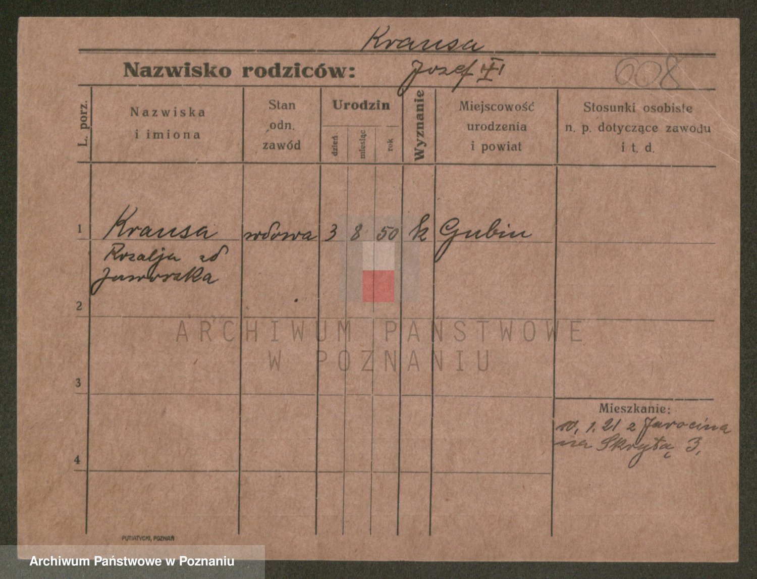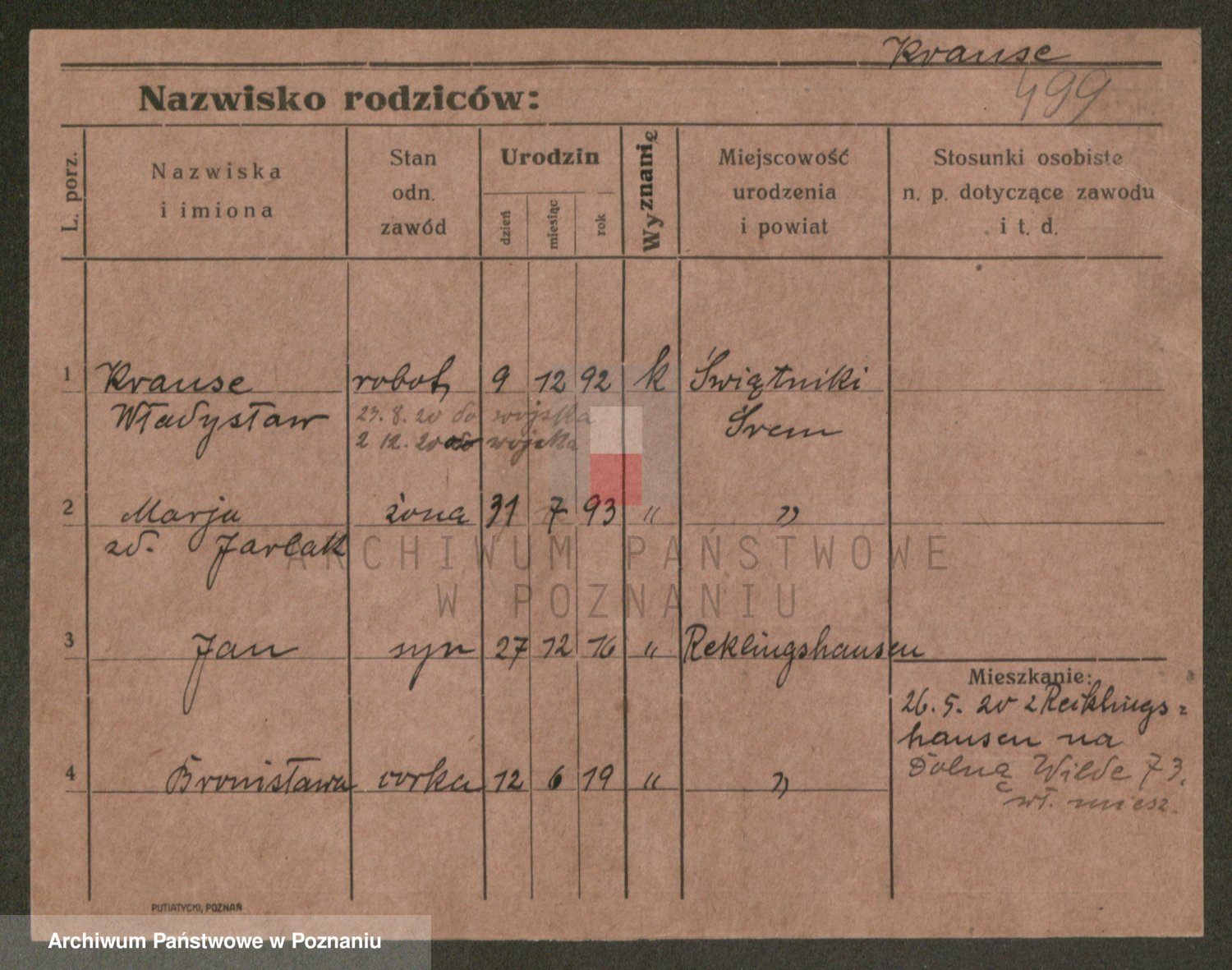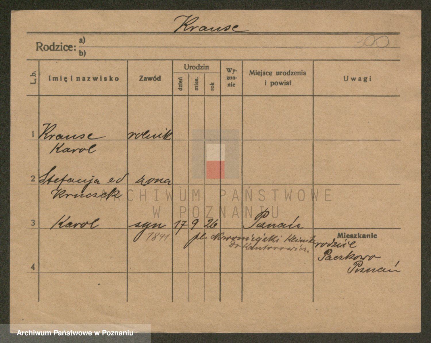 Podgląd karty osobowej dostępny jest po kliknięciu na nazwisko lub ikonkę karty. Można dokonywać powiększenia (ikony na górze) lub przechodzić między kolejnymi skanami (strzałki po bokach).