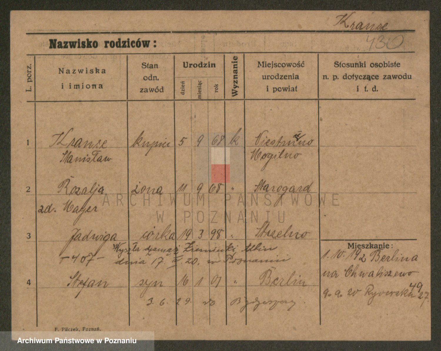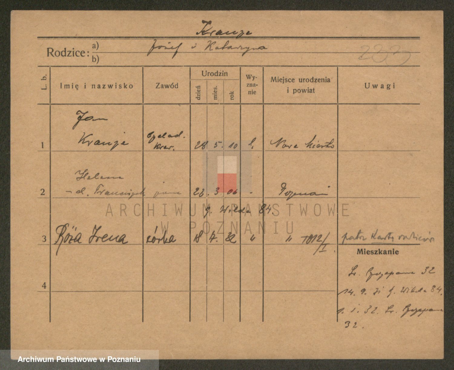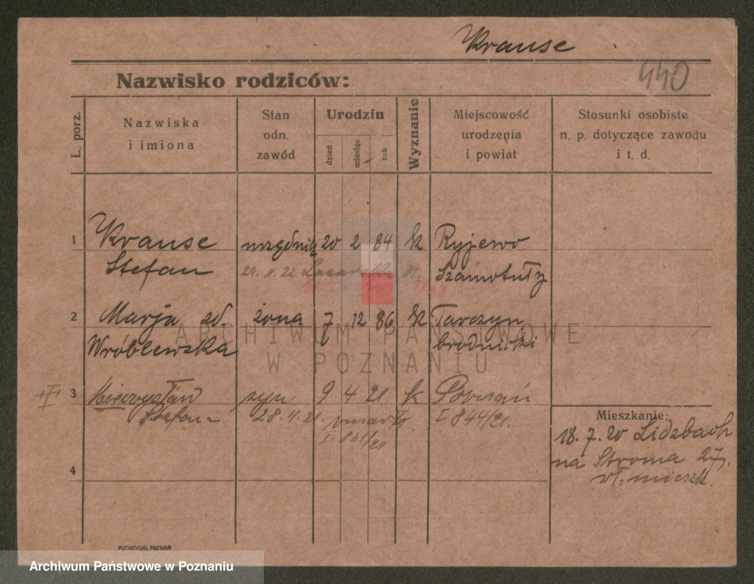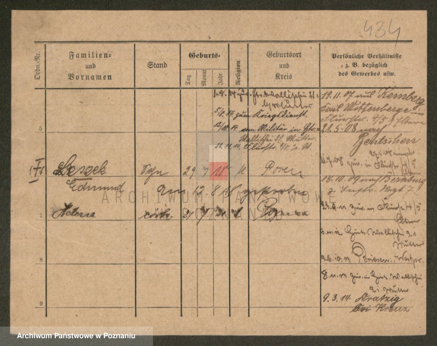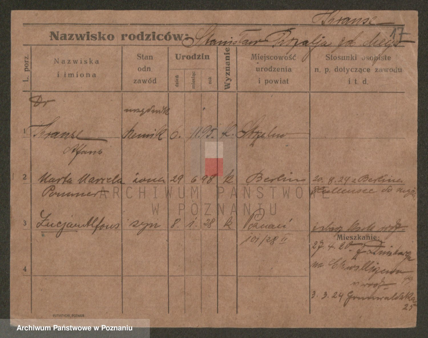 Podgląd karty osobowej dostępny jest po kliknięciu na nazwisko lub ikonkę karty. Można dokonywać powiększenia (ikony na górze) lub przechodzić między kolejnymi skanami (strzałki po bokach).
