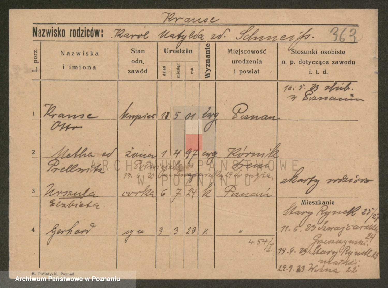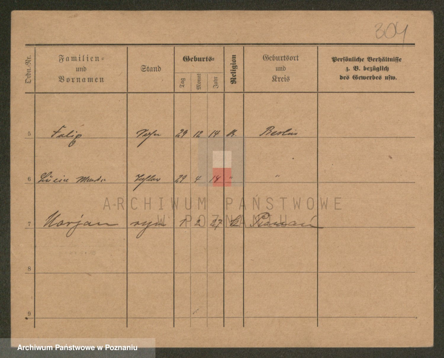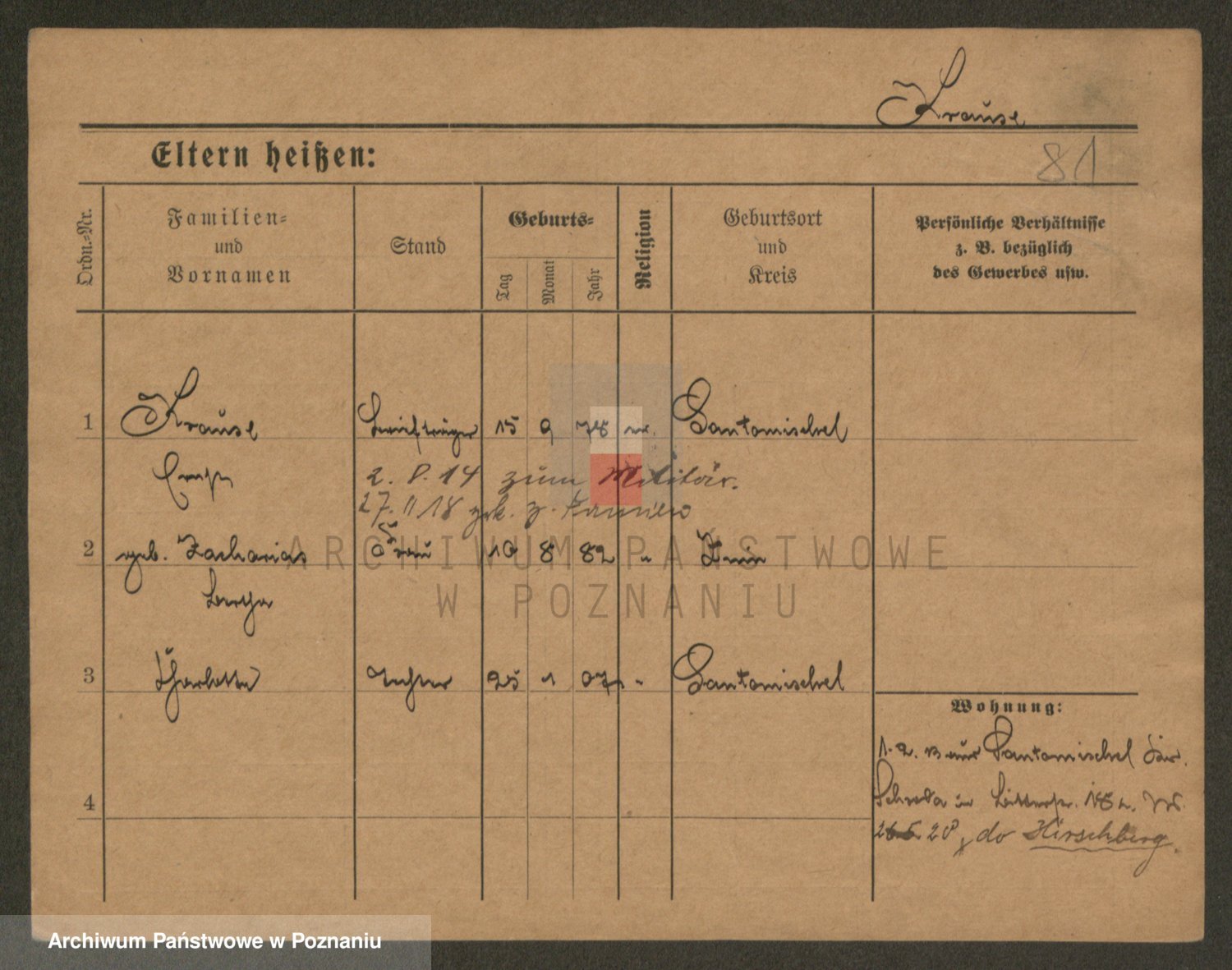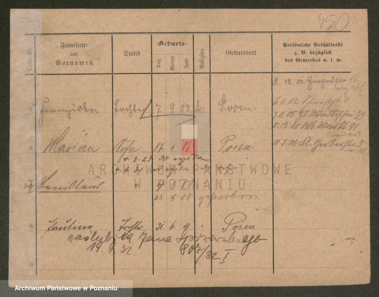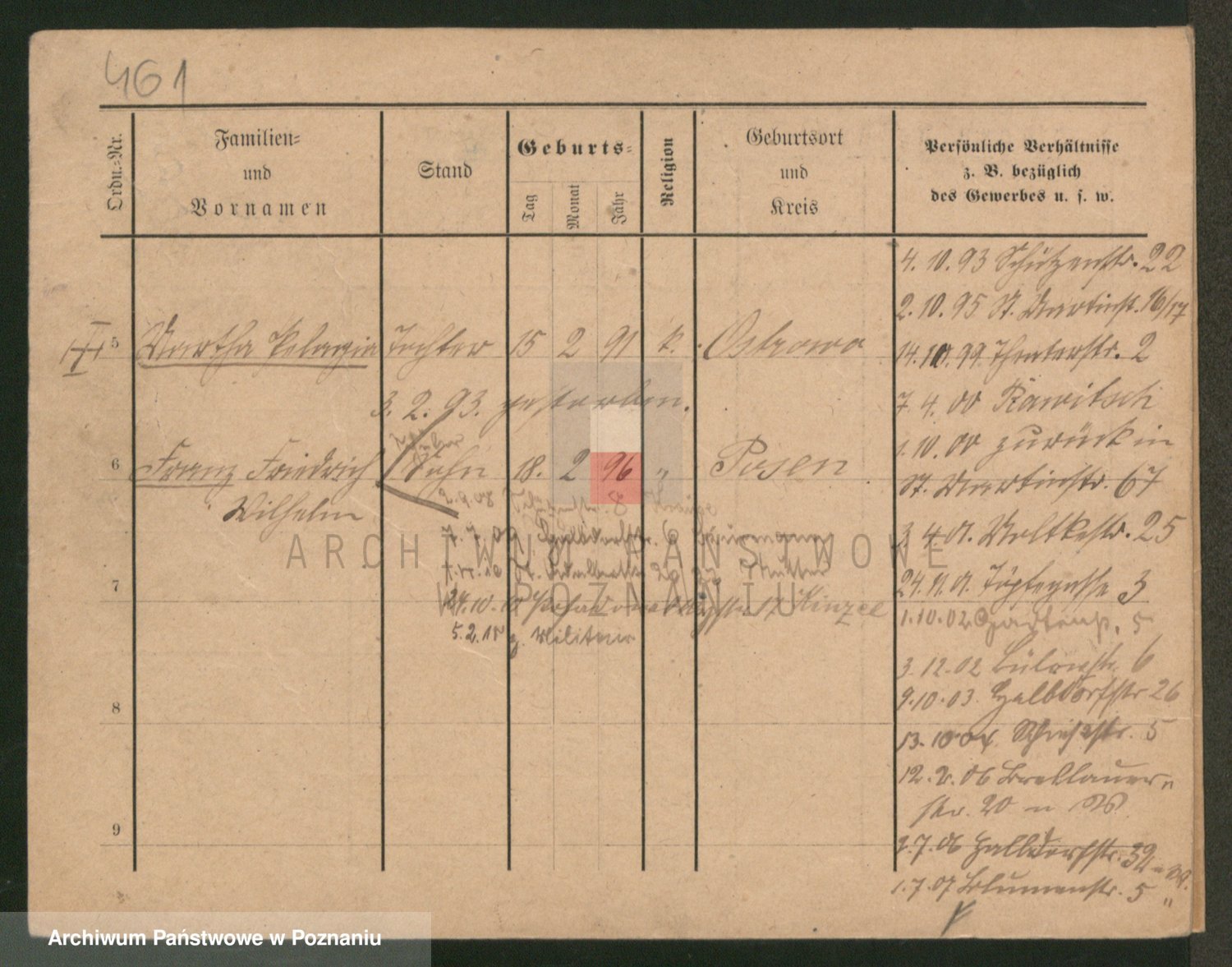 Podgląd karty osobowej dostępny jest po kliknięciu na nazwisko lub ikonkę karty. Można dokonywać powiększenia (ikony na górze) lub przechodzić między kolejnymi skanami (strzałki po bokach).