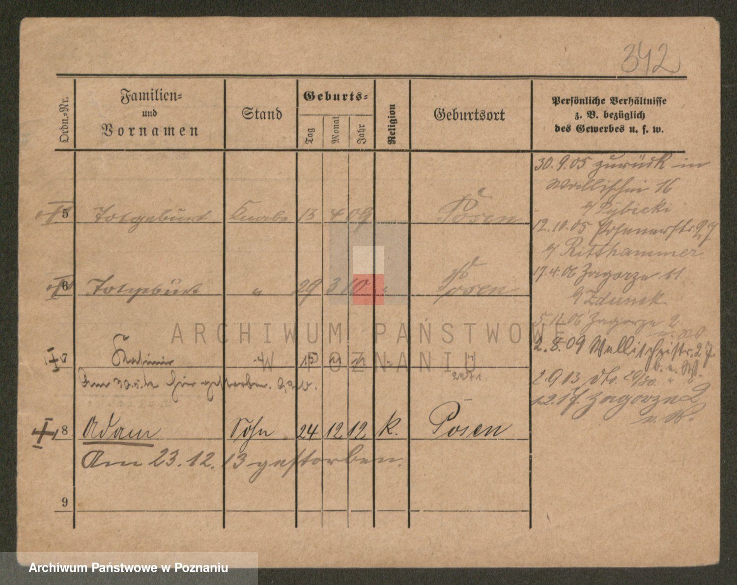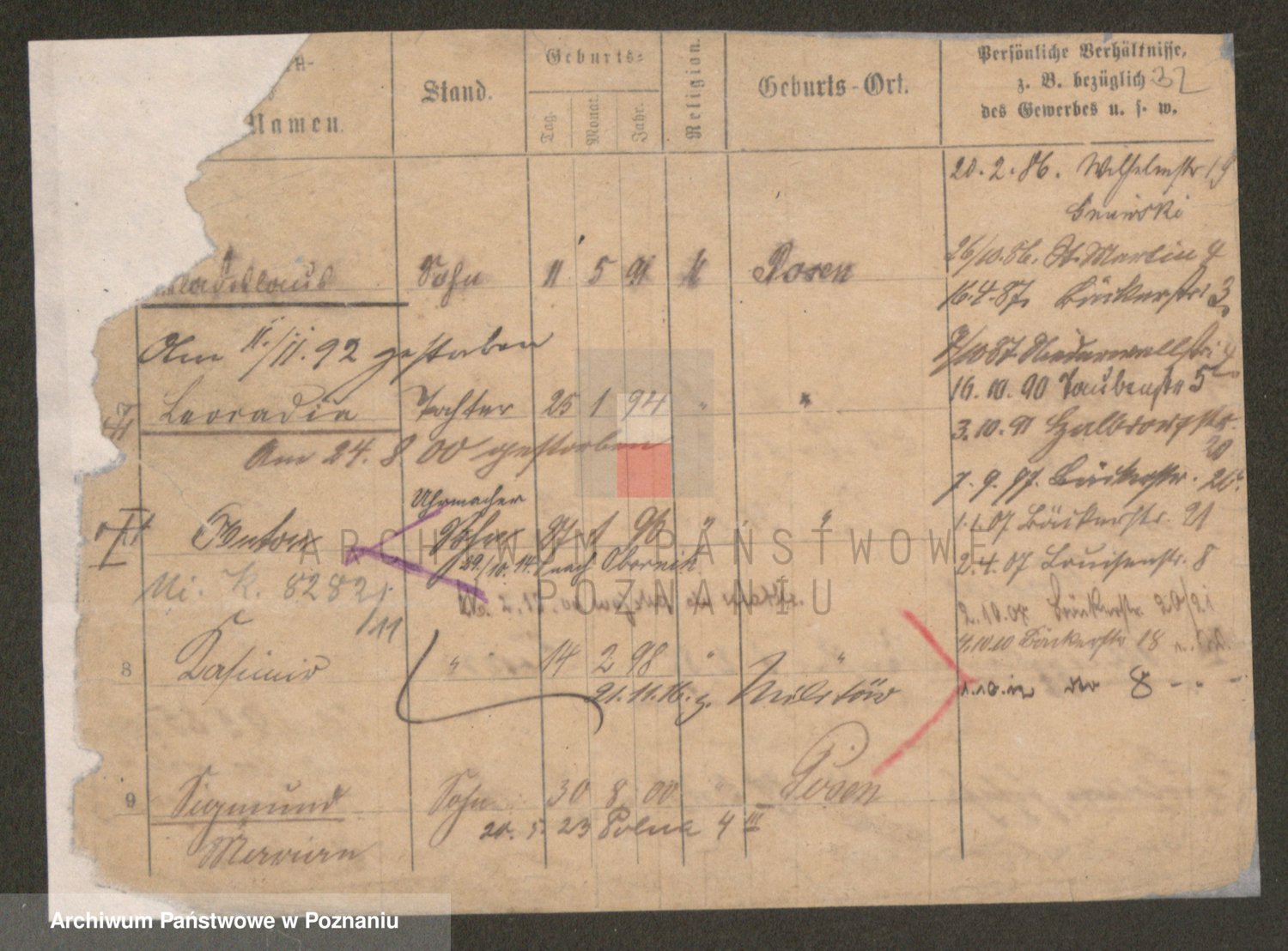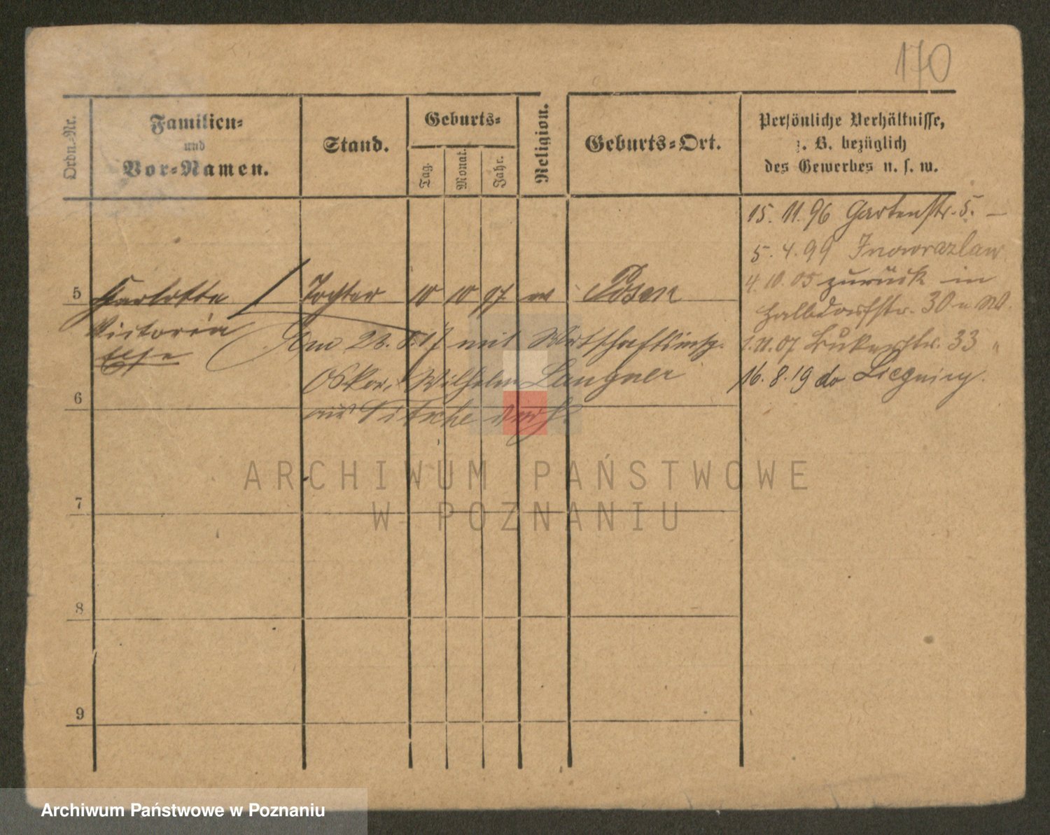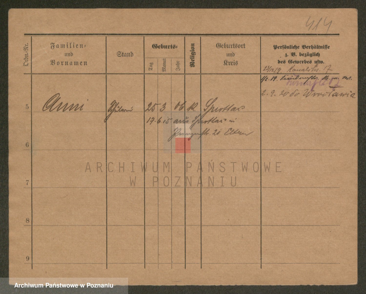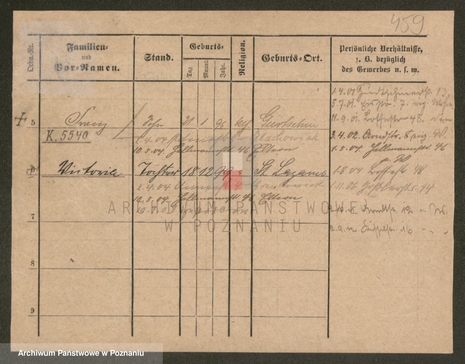 Podgląd karty osobowej dostępny jest po kliknięciu na nazwisko lub ikonkę karty. Można dokonywać powiększenia (ikony na górze) lub przechodzić między kolejnymi skanami (strzałki po bokach).