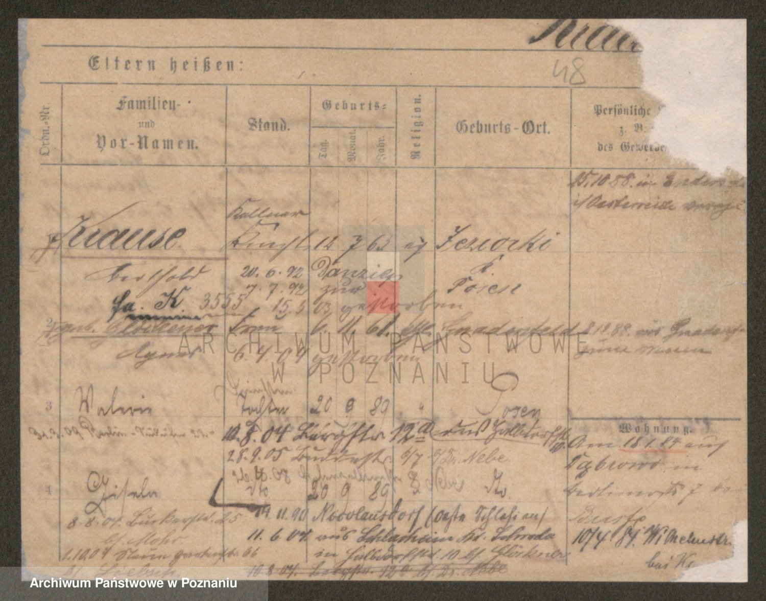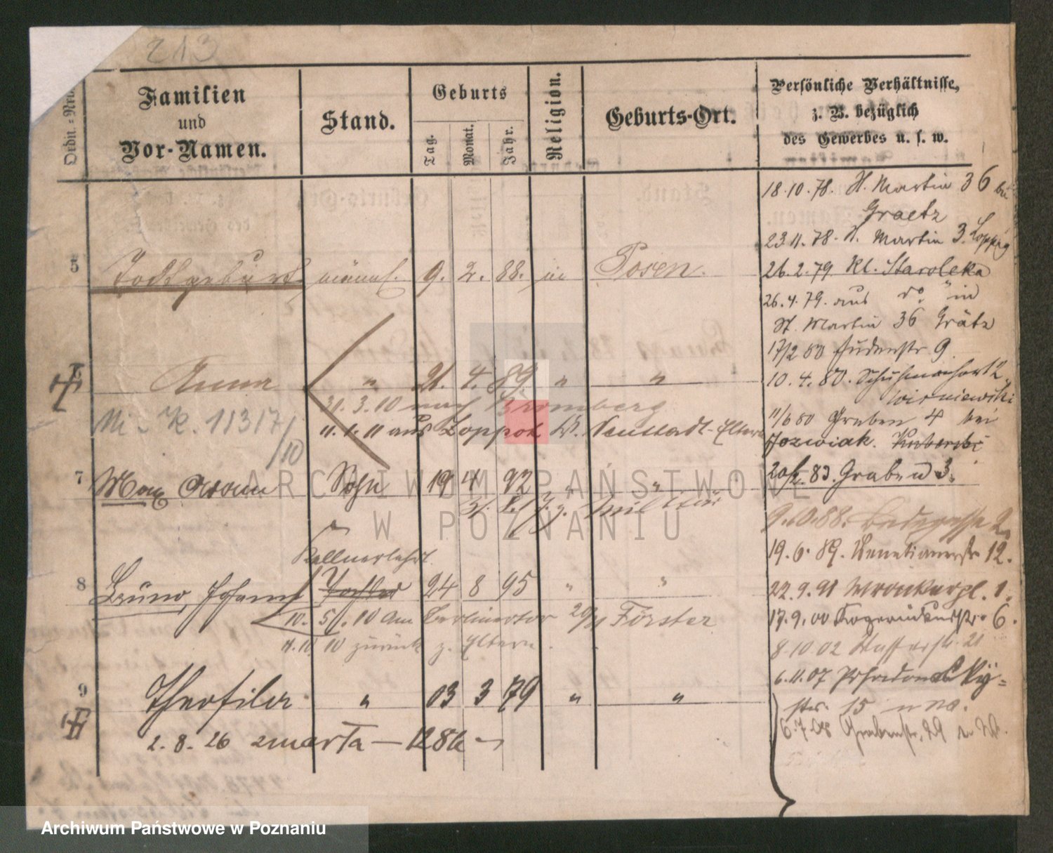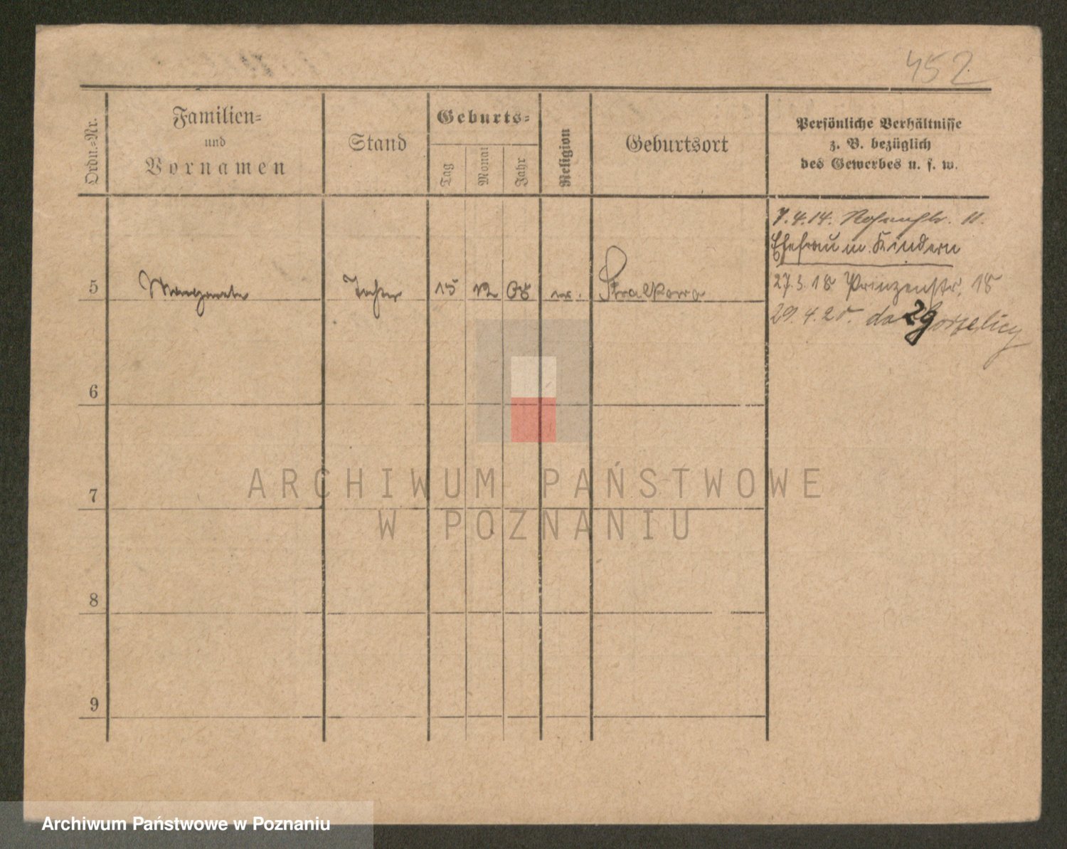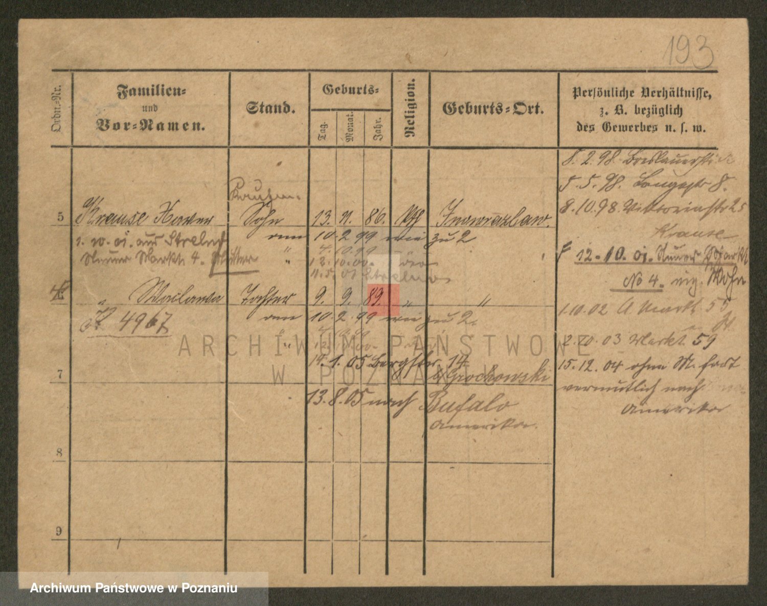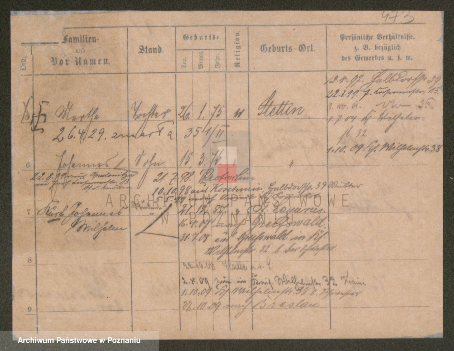 Podgląd karty osobowej dostępny jest po kliknięciu na nazwisko lub ikonkę karty. Można dokonywać powiększenia (ikony na górze) lub przechodzić między kolejnymi skanami (strzałki po bokach).