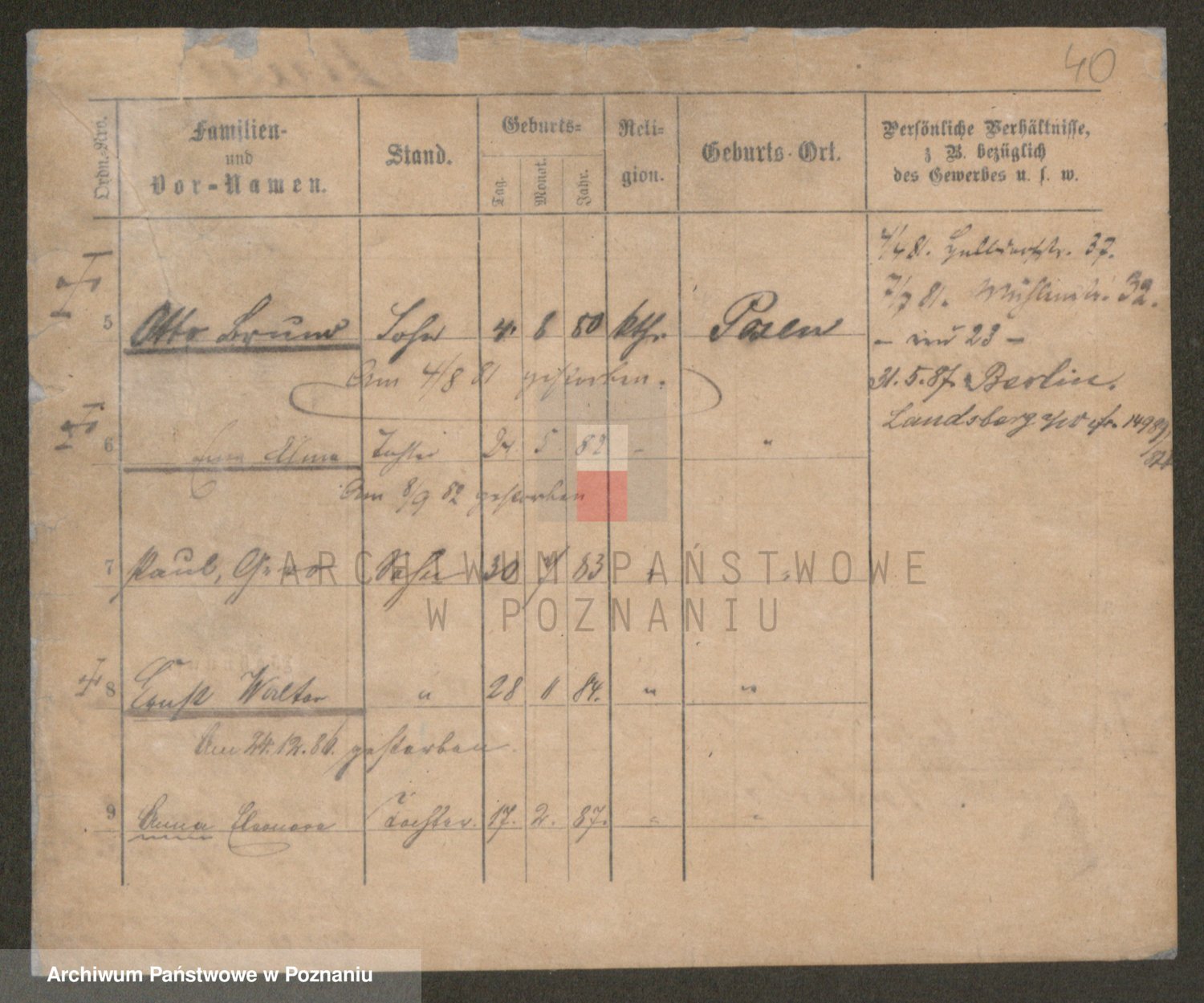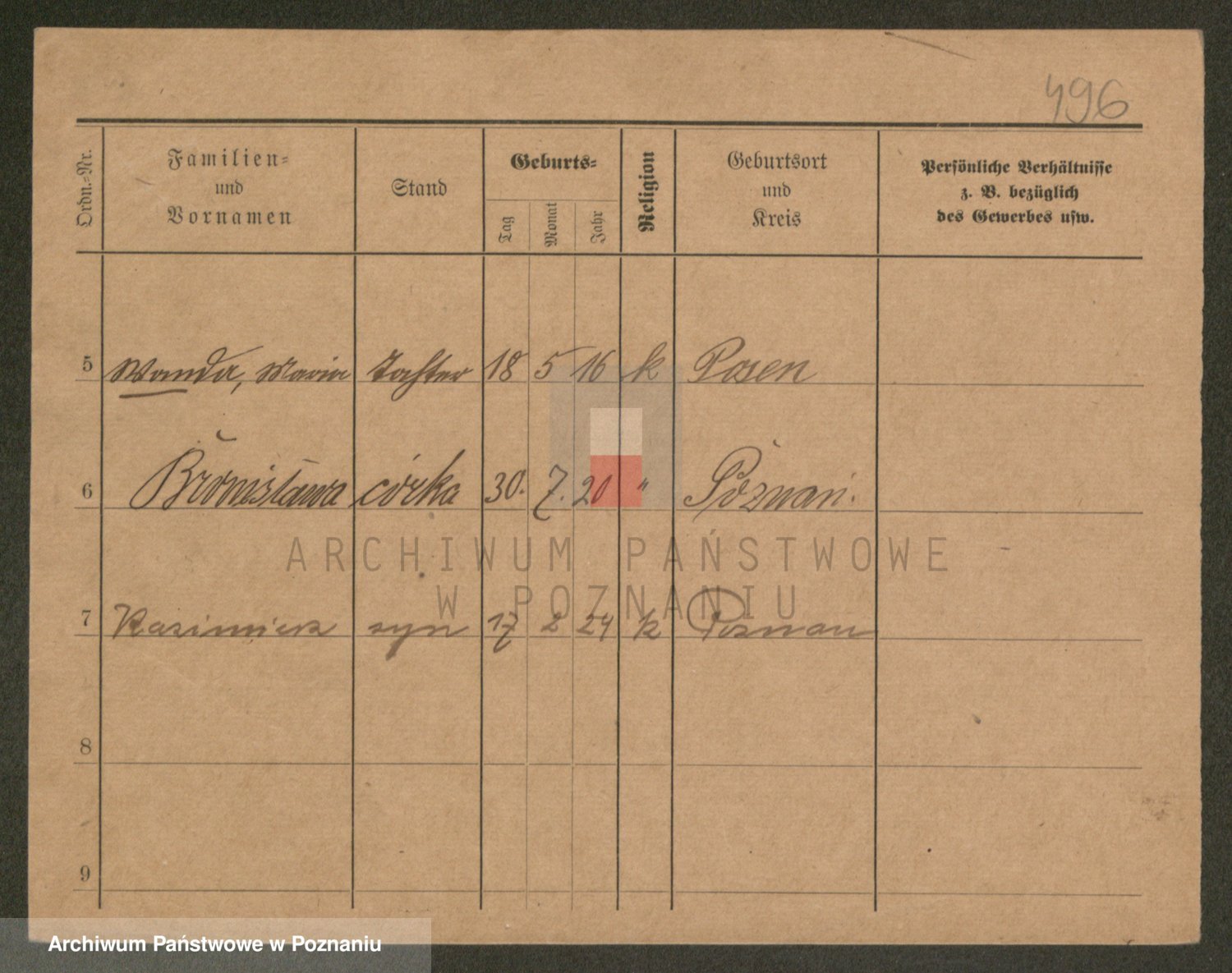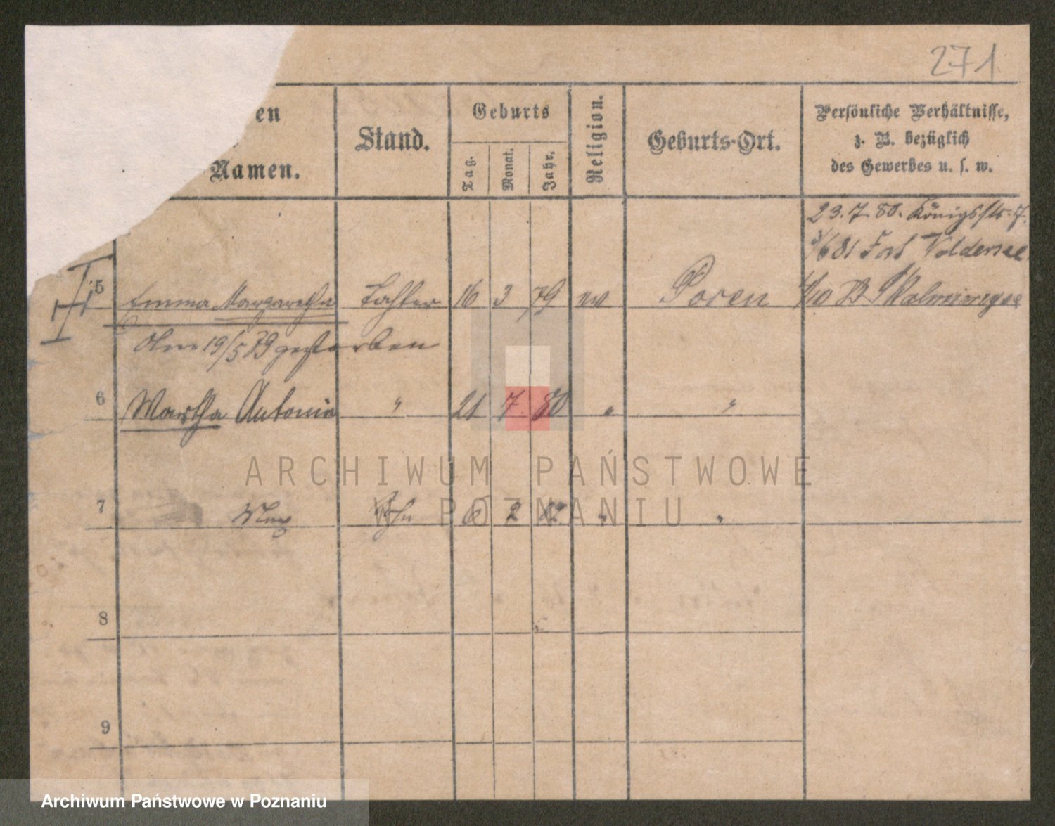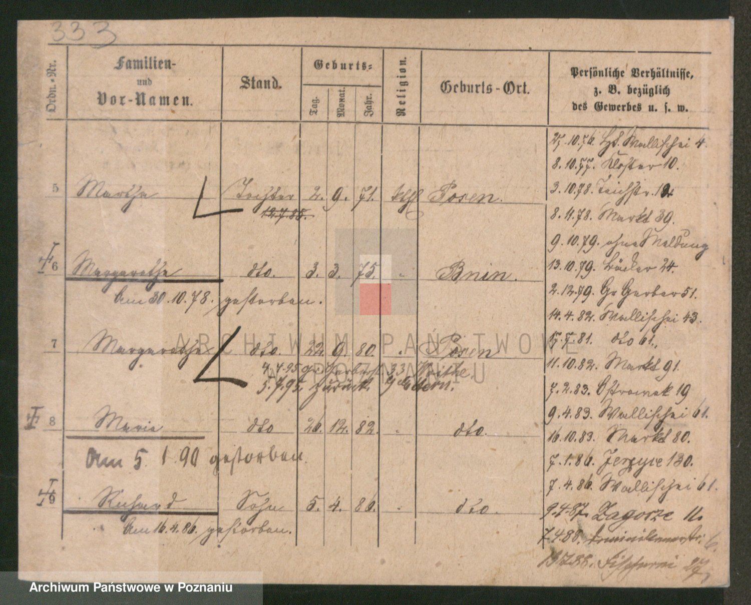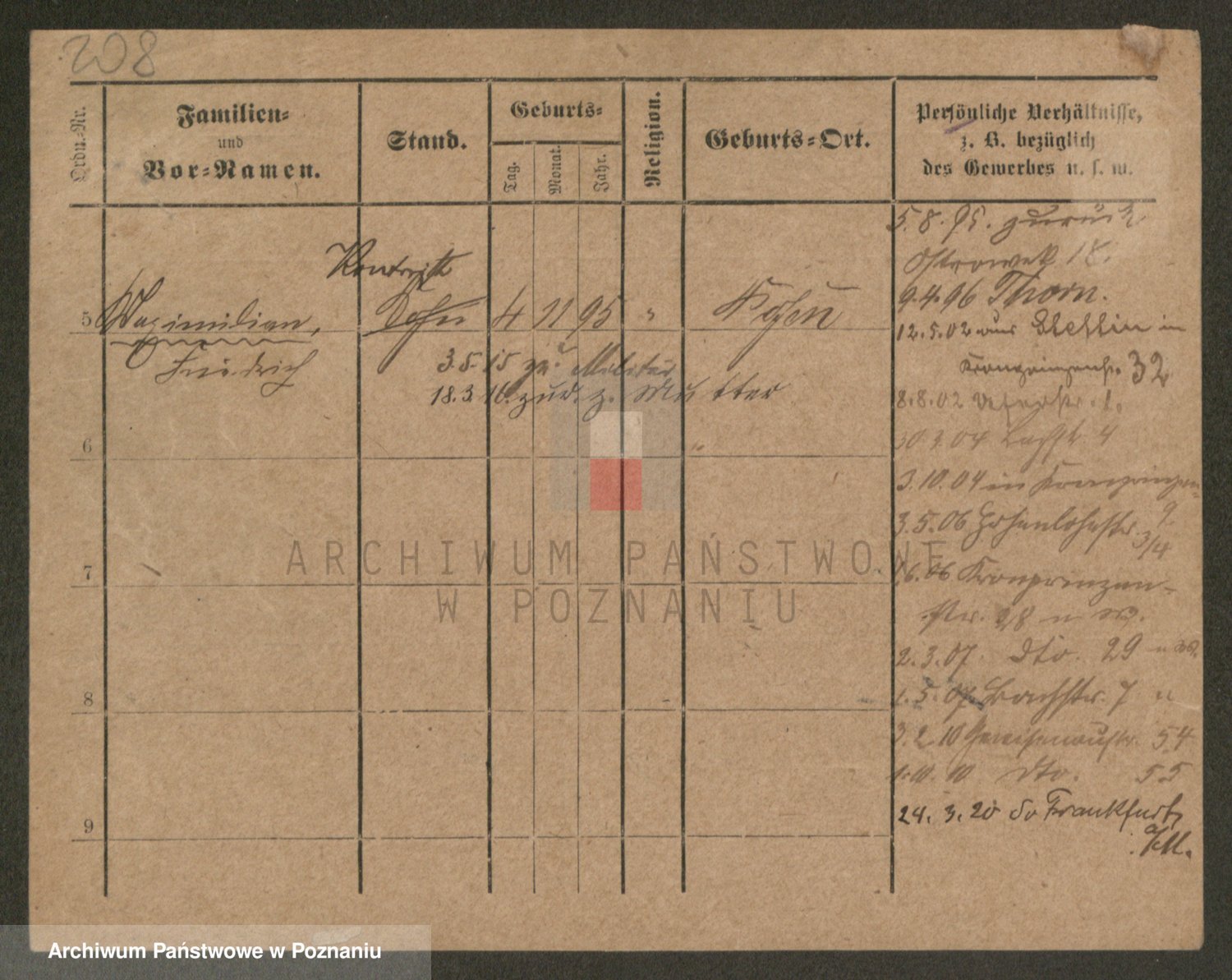 Podgląd karty osobowej dostępny jest po kliknięciu na nazwisko lub ikonkę karty. Można dokonywać powiększenia (ikony na górze) lub przechodzić między kolejnymi skanami (strzałki po bokach).