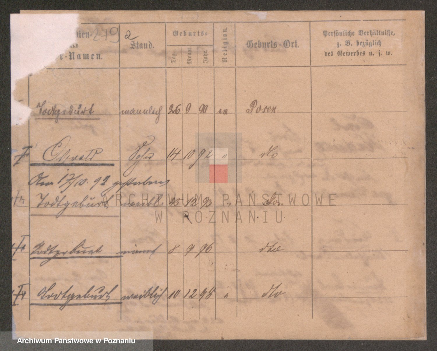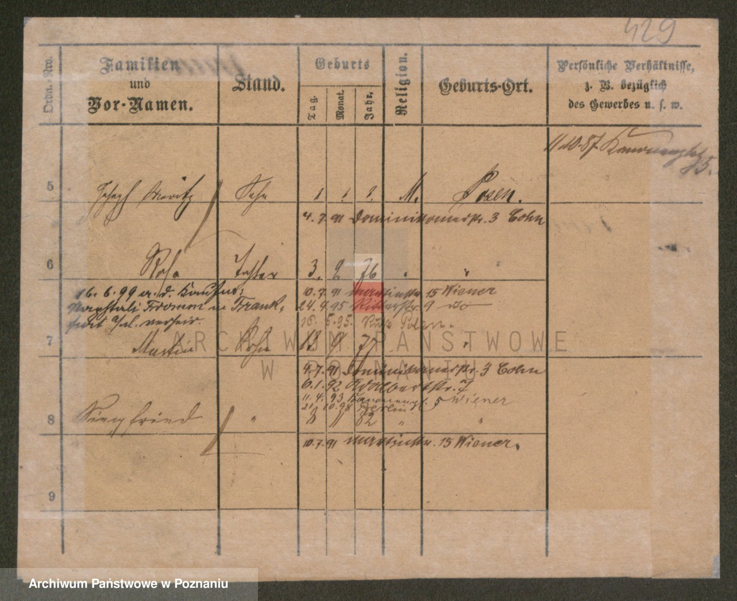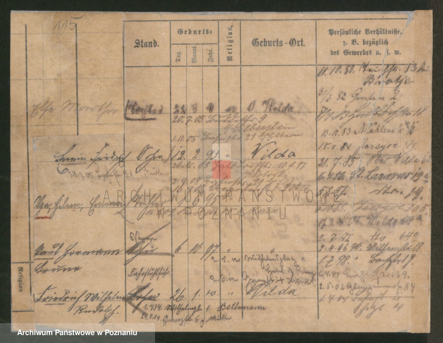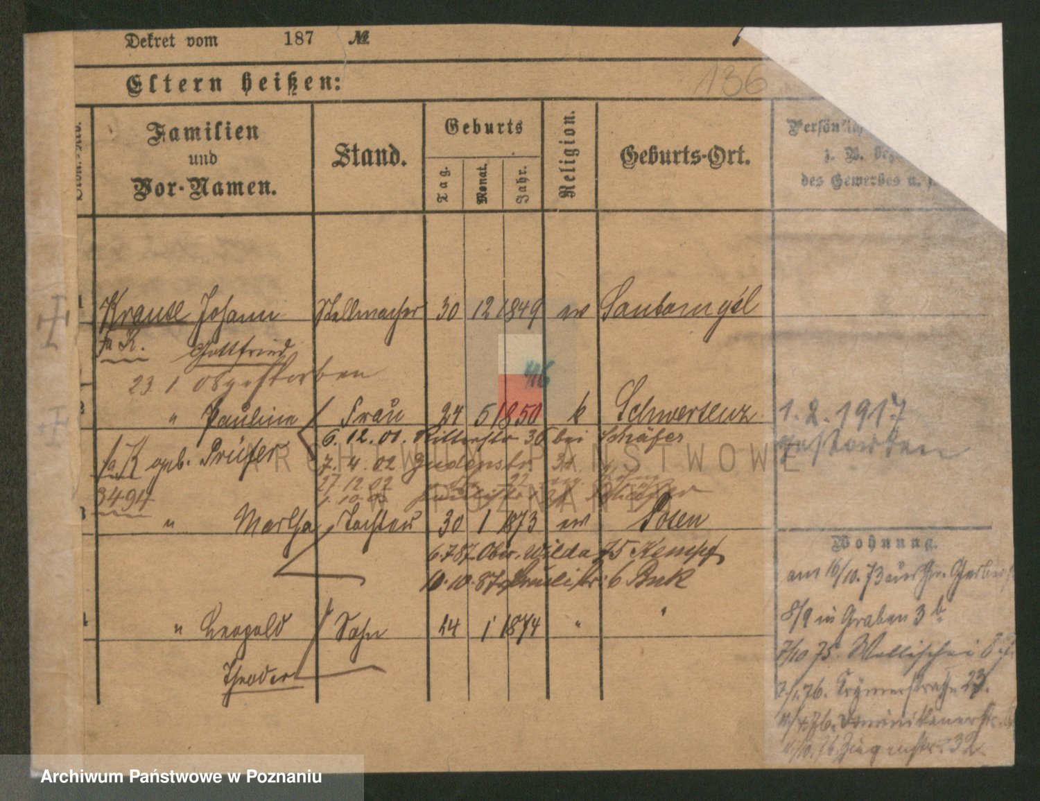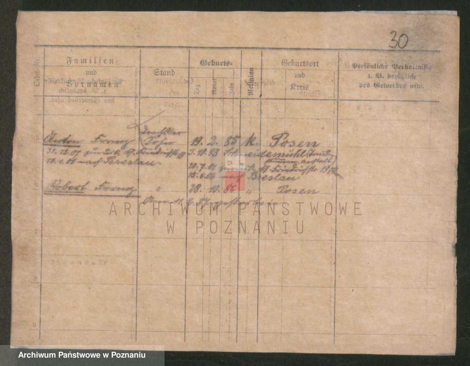 Podgląd karty osobowej dostępny jest po kliknięciu na nazwisko lub ikonkę karty. Można dokonywać powiększenia (ikony na górze) lub przechodzić między kolejnymi skanami (strzałki po bokach).