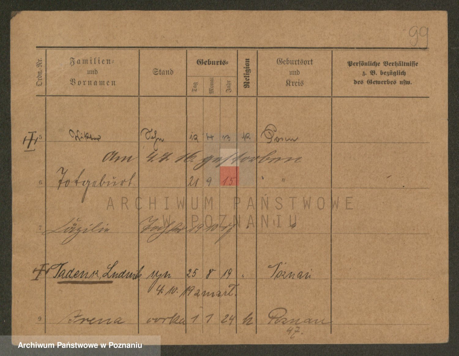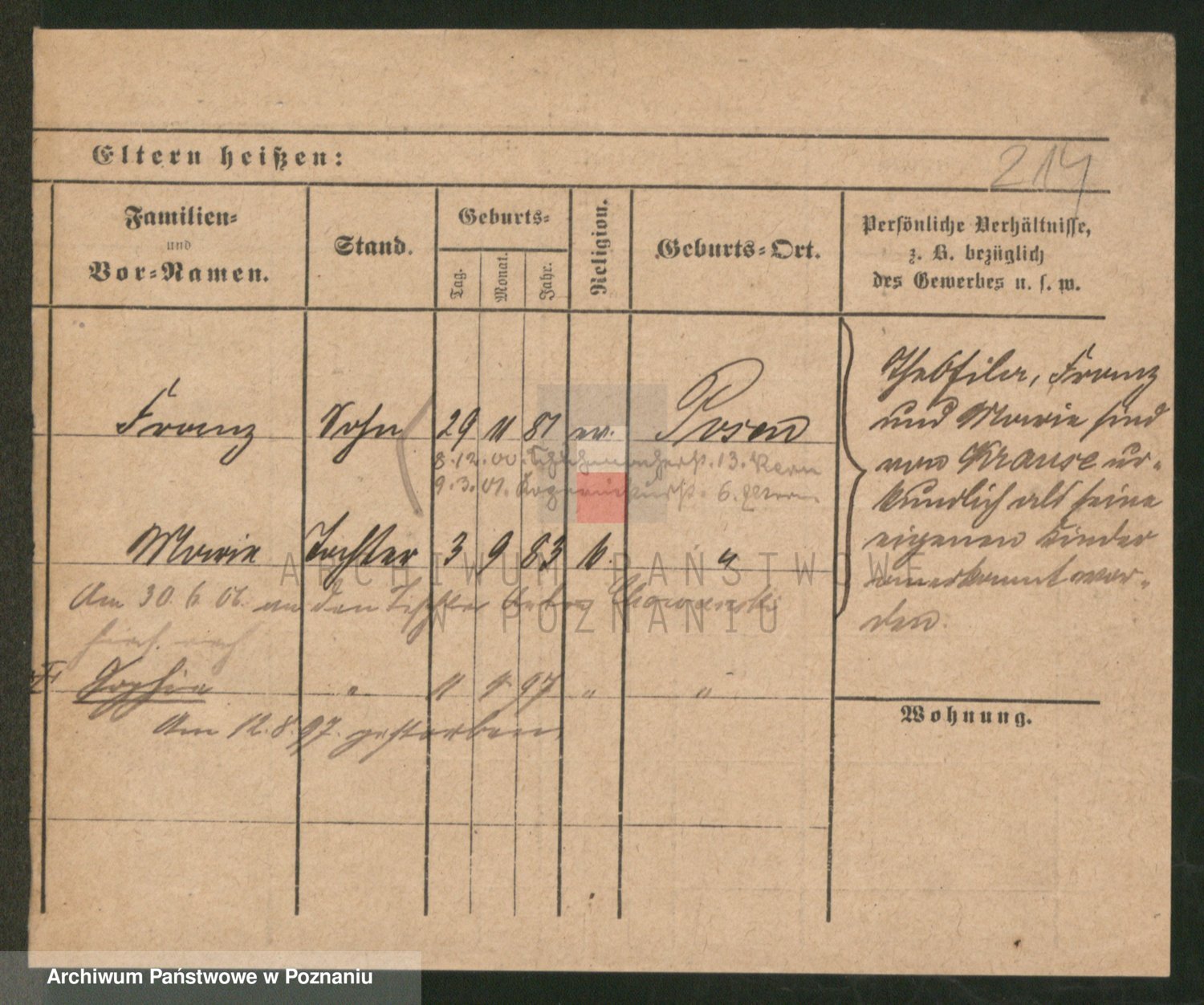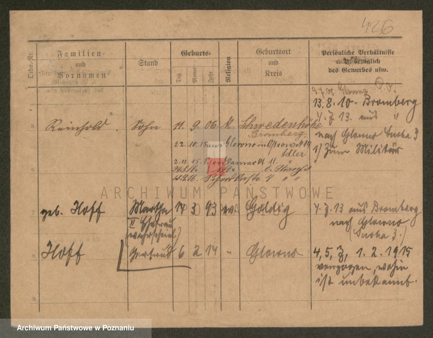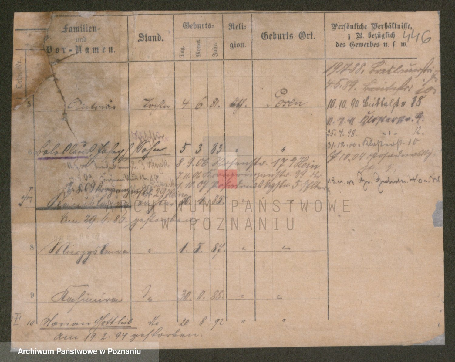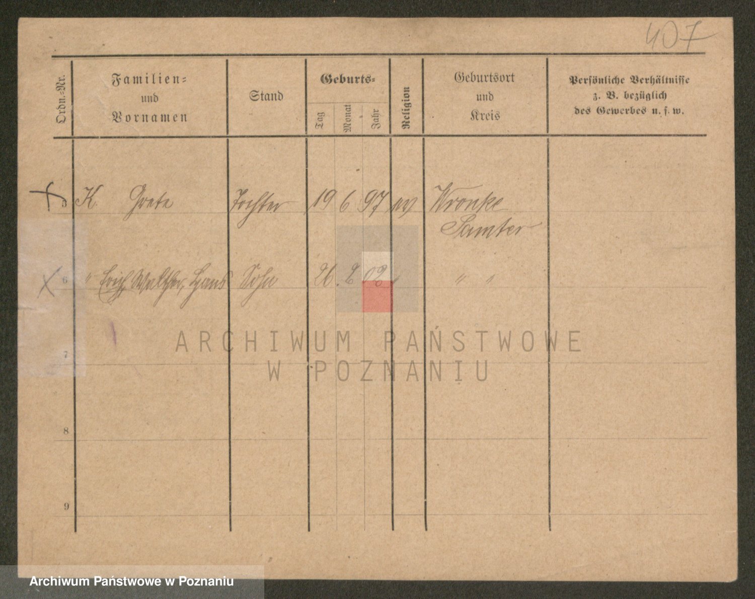 Podgląd karty osobowej dostępny jest po kliknięciu na nazwisko lub ikonkę karty. Można dokonywać powiększenia (ikony na górze) lub przechodzić między kolejnymi skanami (strzałki po bokach).