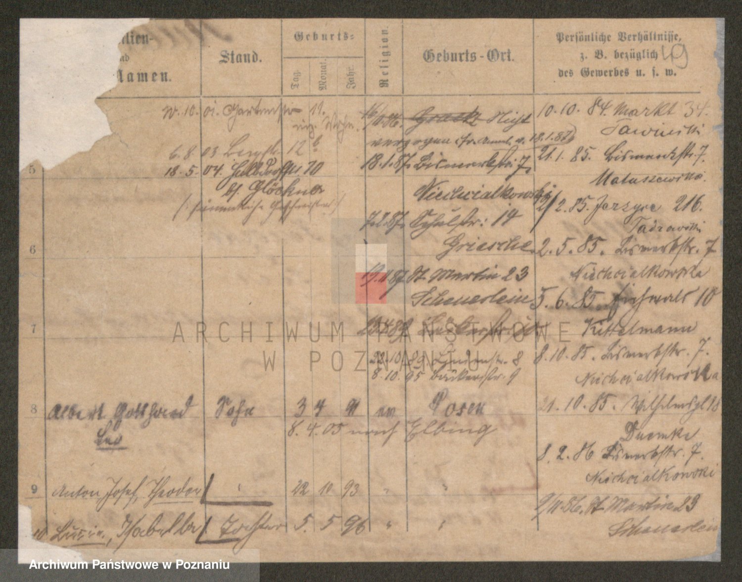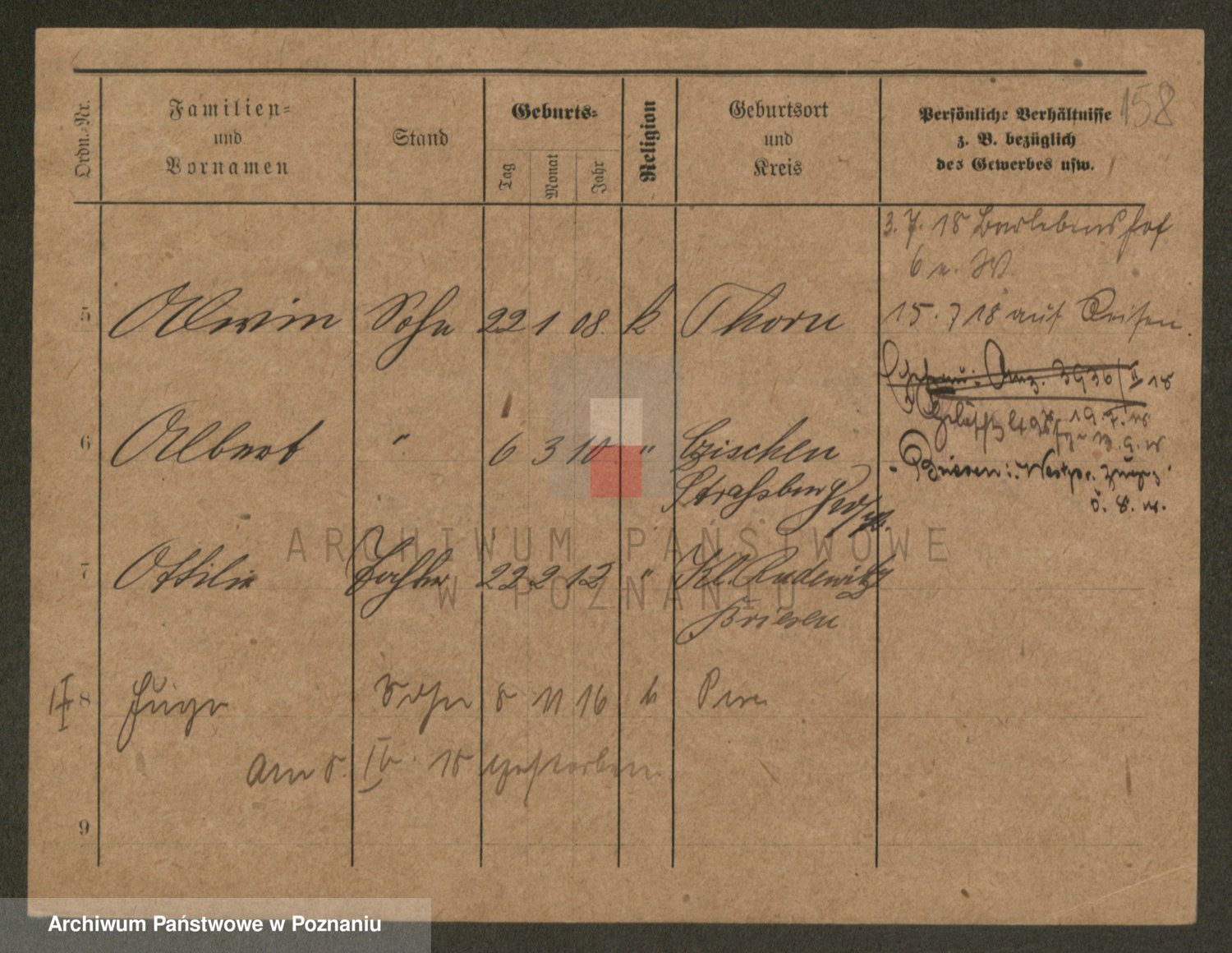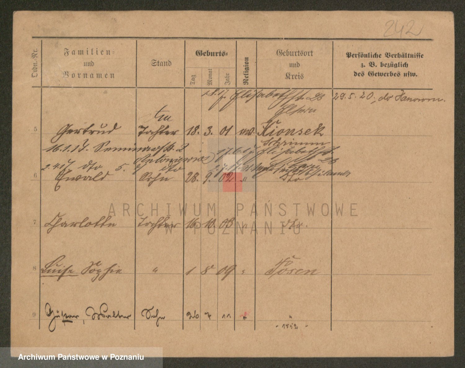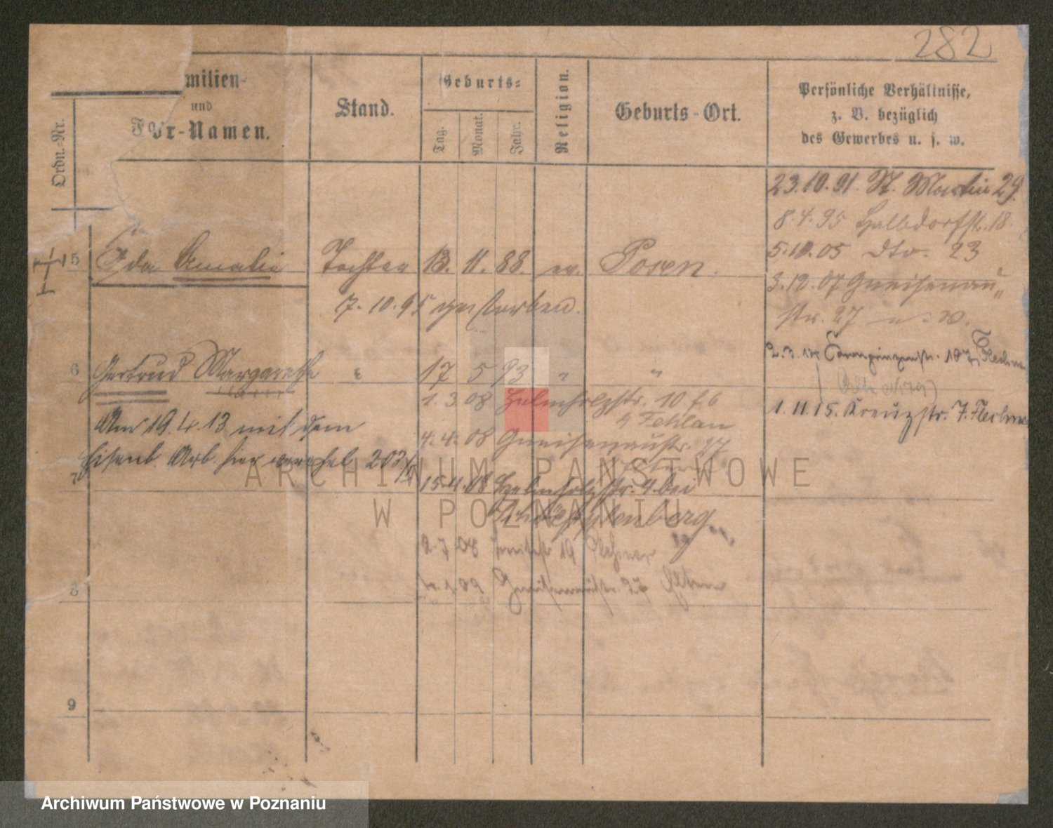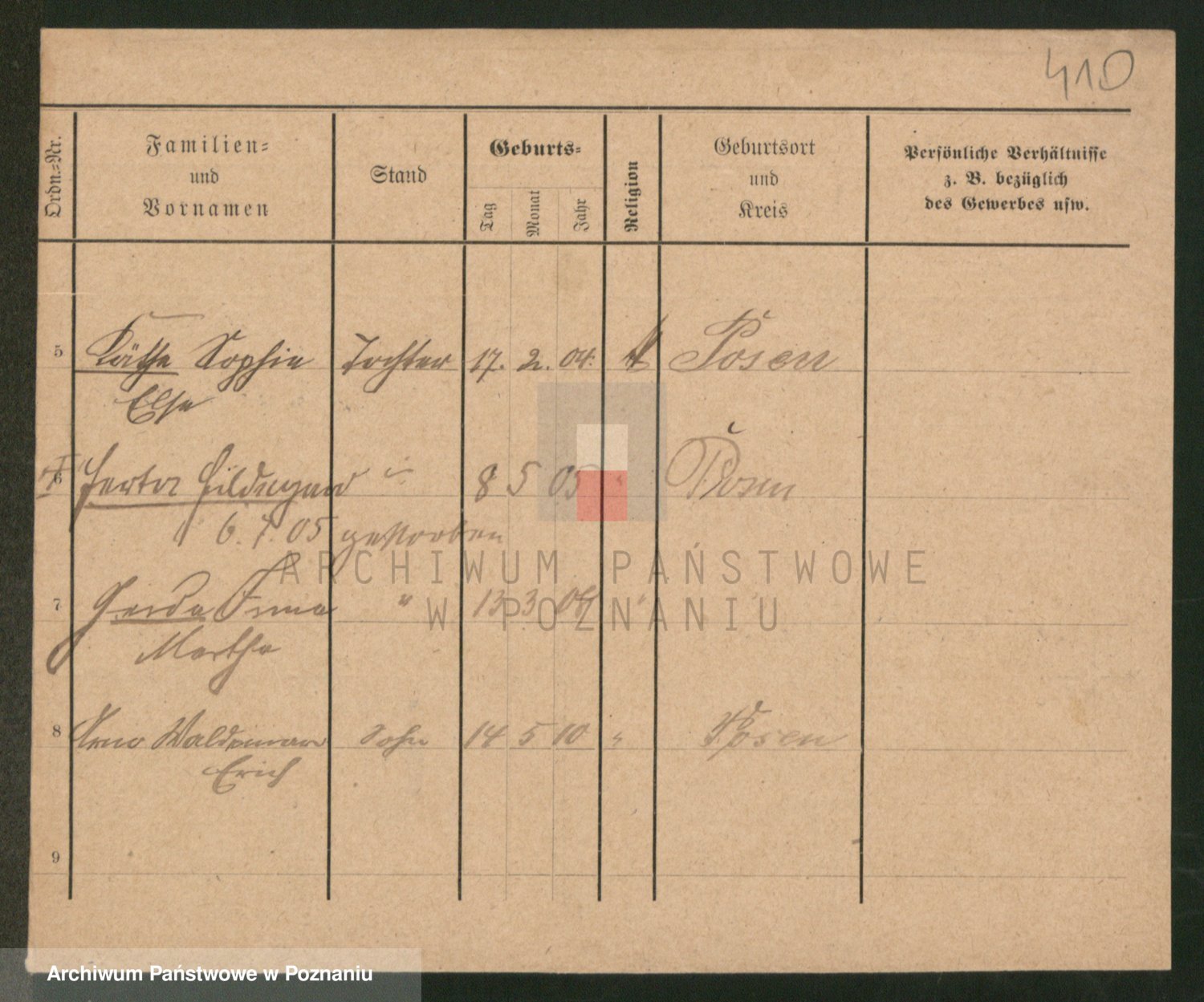 Podgląd karty osobowej dostępny jest po kliknięciu na nazwisko lub ikonkę karty. Można dokonywać powiększenia (ikony na górze) lub przechodzić między kolejnymi skanami (strzałki po bokach).