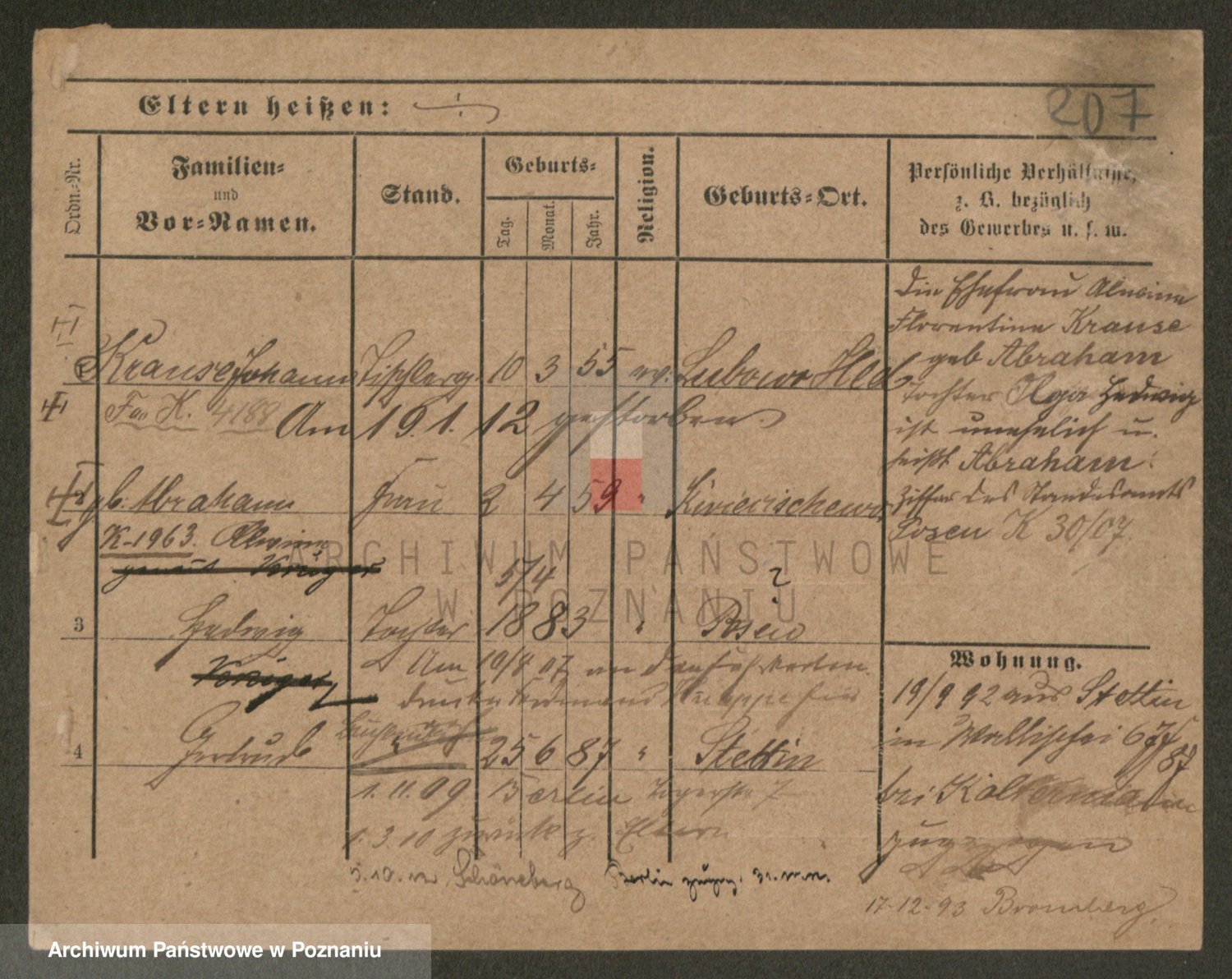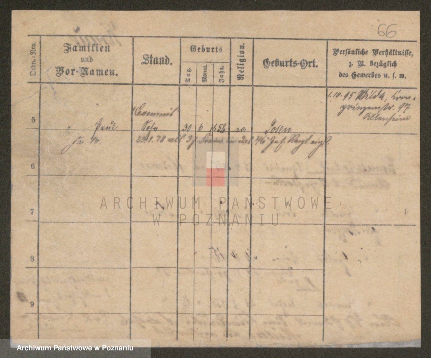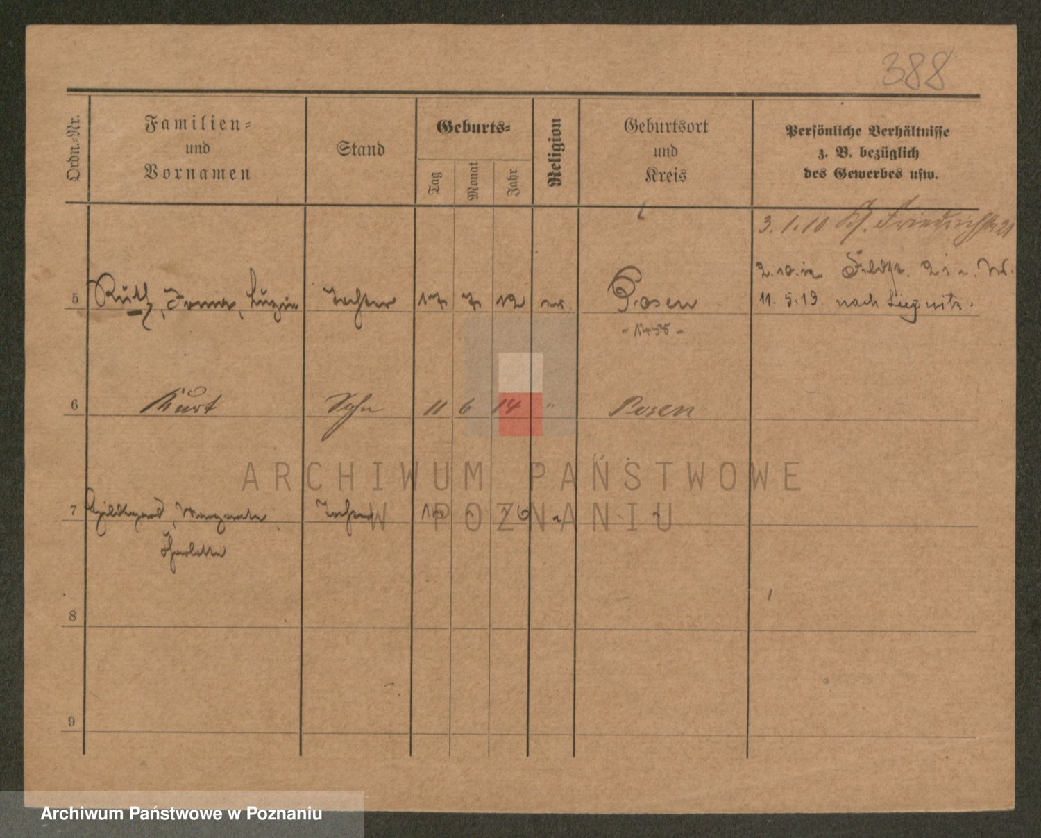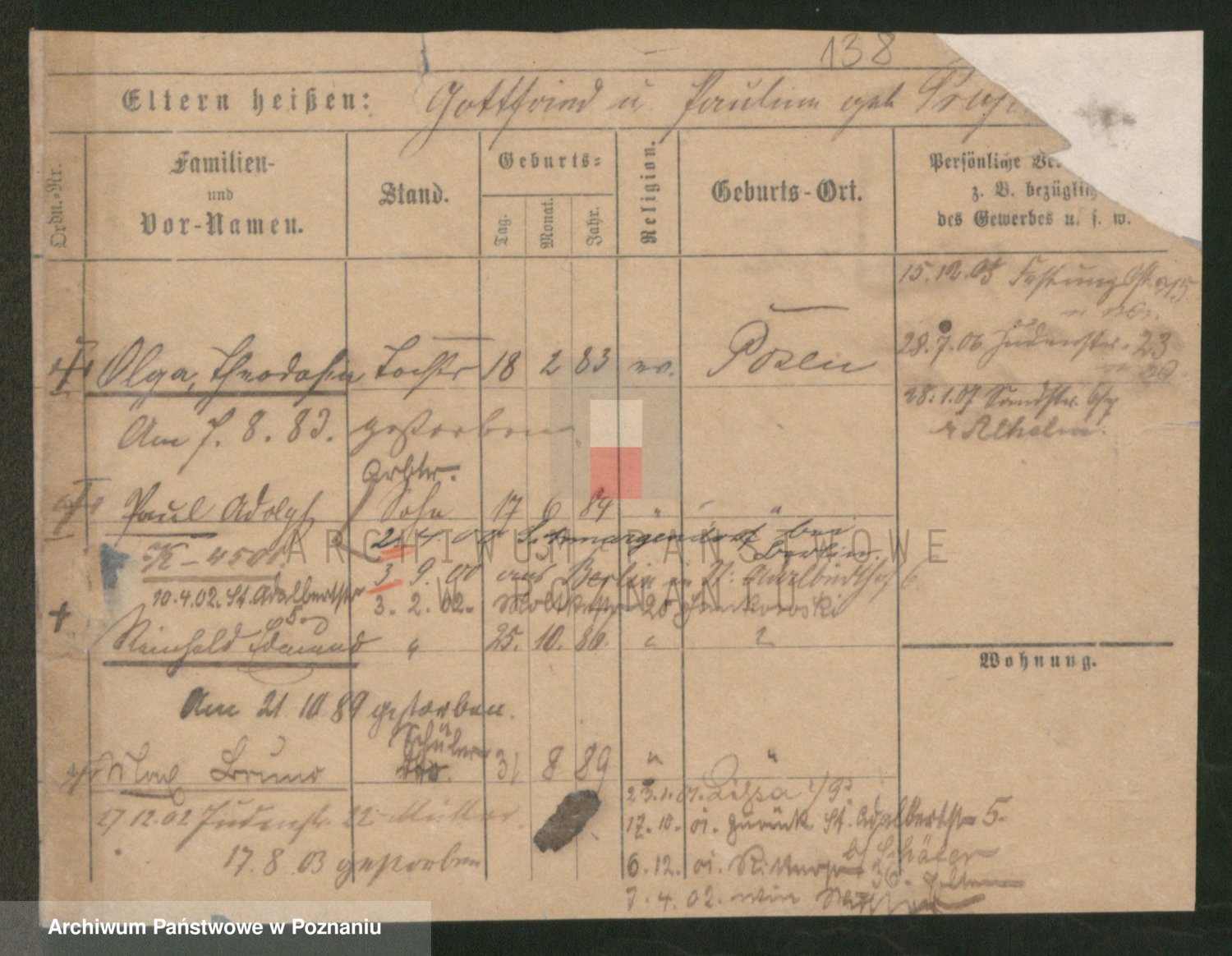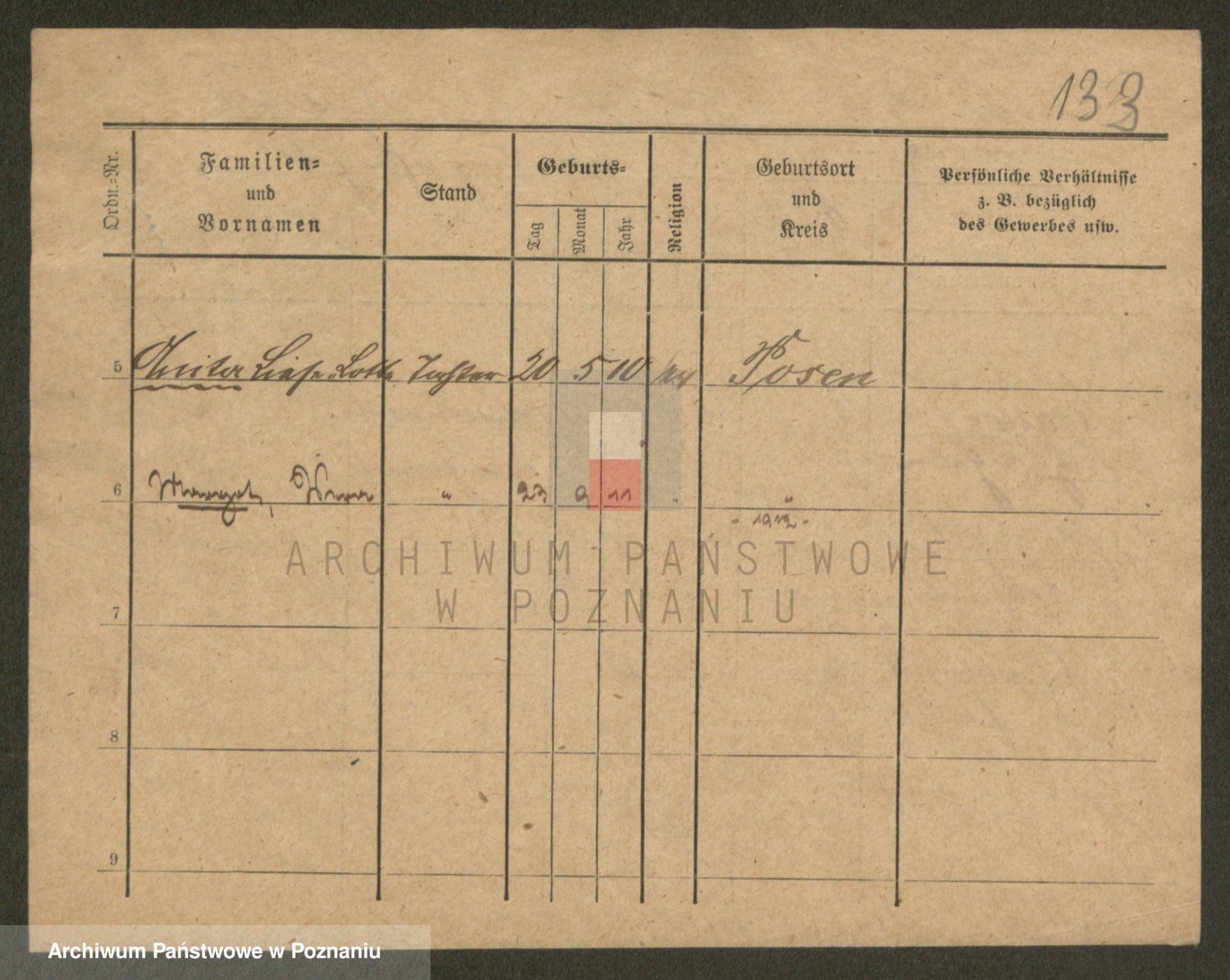Podgląd karty osobowej dostępny jest po kliknięciu na nazwisko lub ikonkę karty. Można dokonywać powiększenia (ikony na górze) lub przechodzić między kolejnymi skanami (strzałki po bokach).