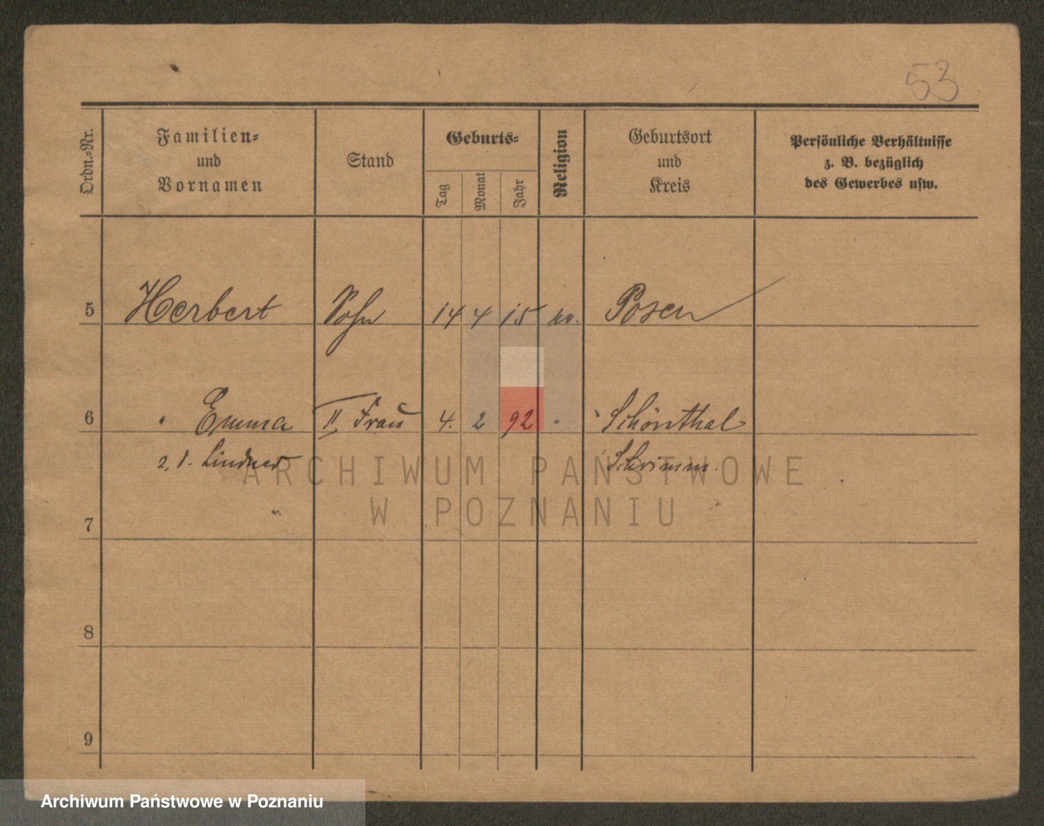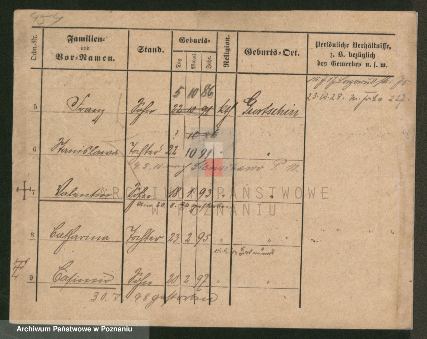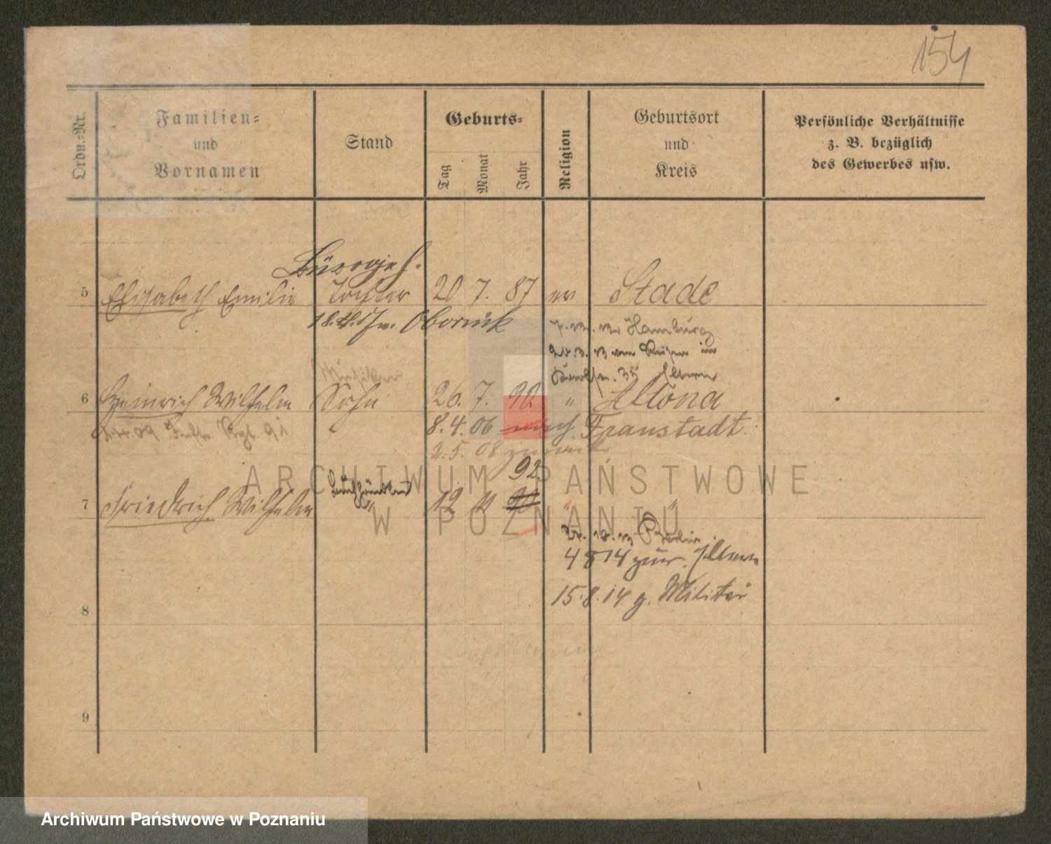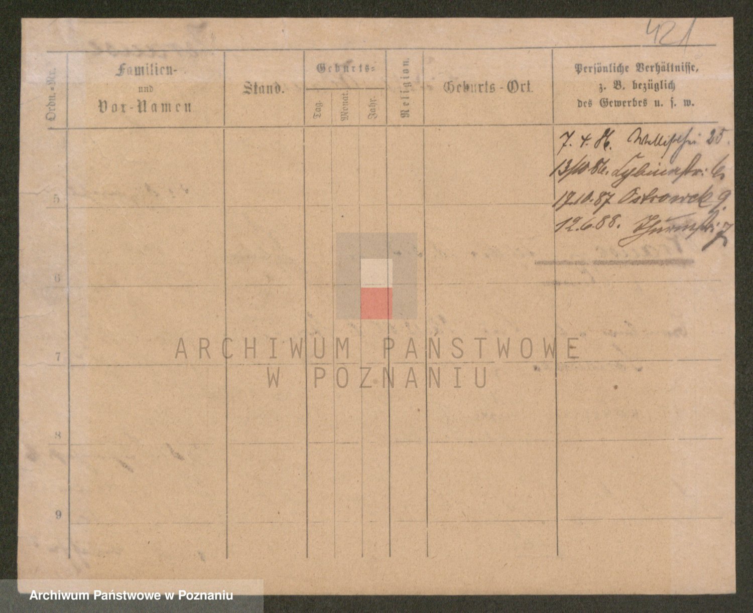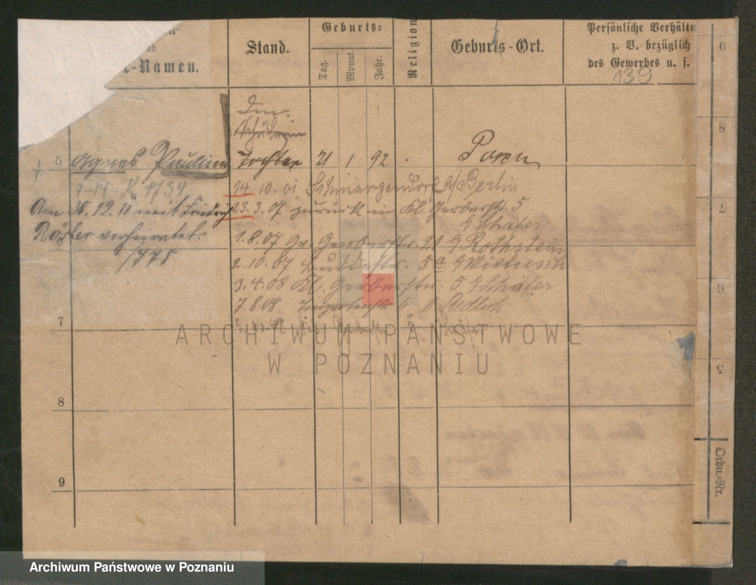 Podgląd karty osobowej dostępny jest po kliknięciu na nazwisko lub ikonkę karty. Można dokonywać powiększenia (ikony na górze) lub przechodzić między kolejnymi skanami (strzałki po bokach).
