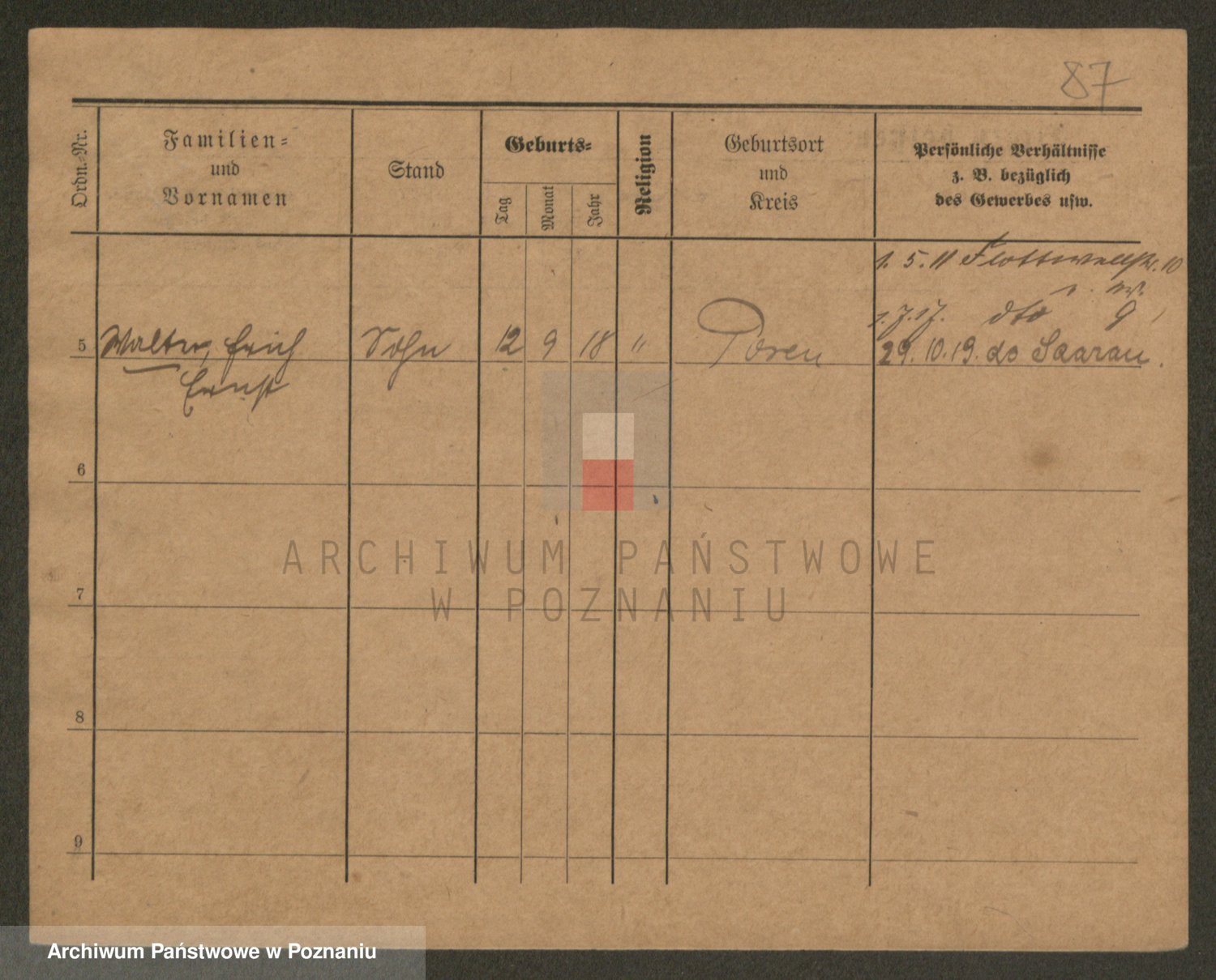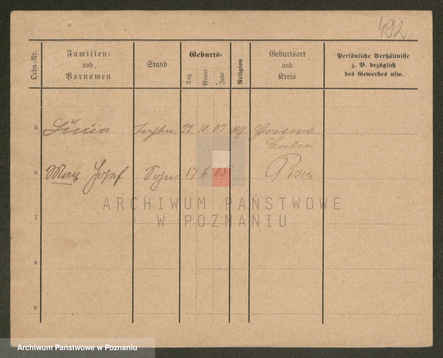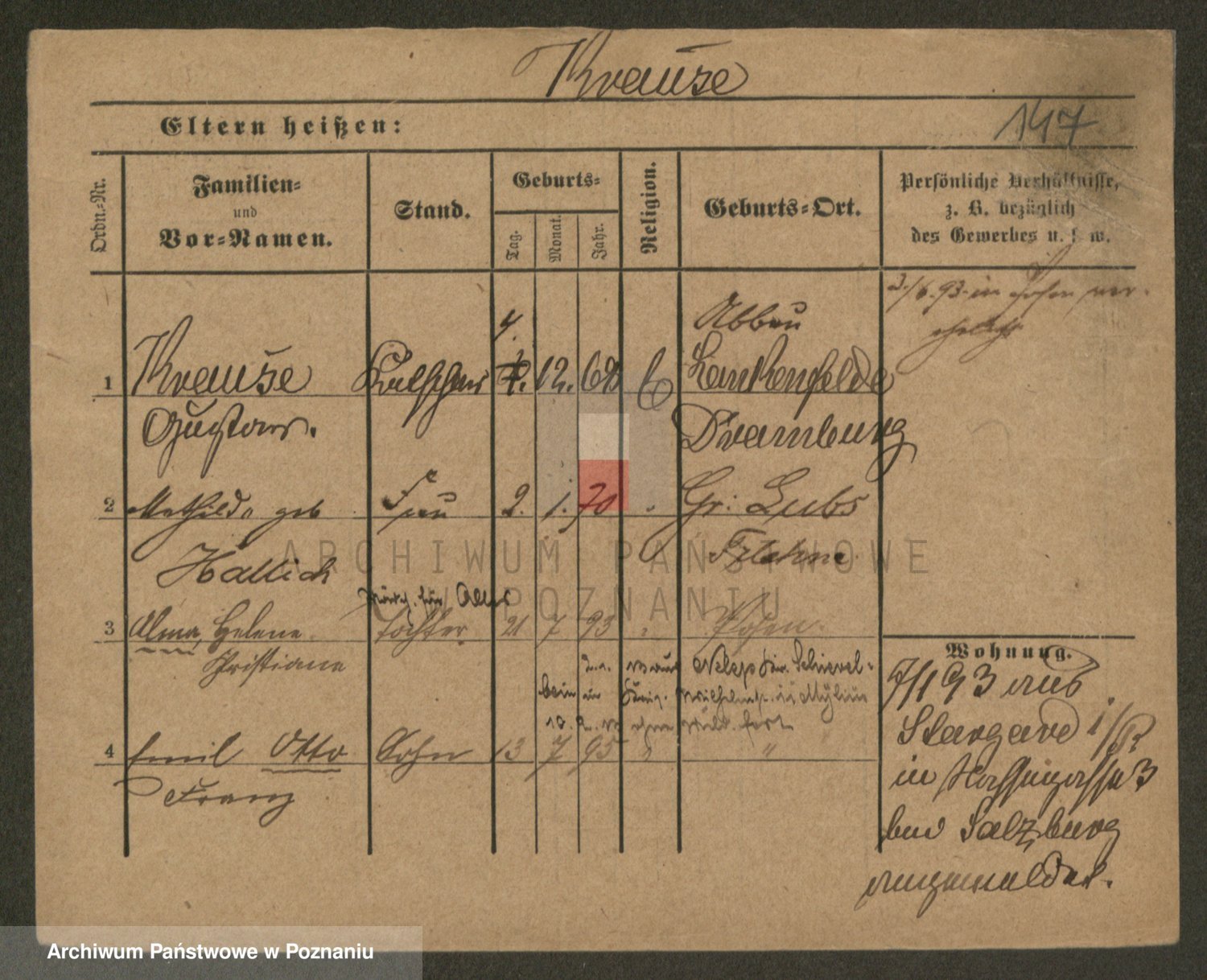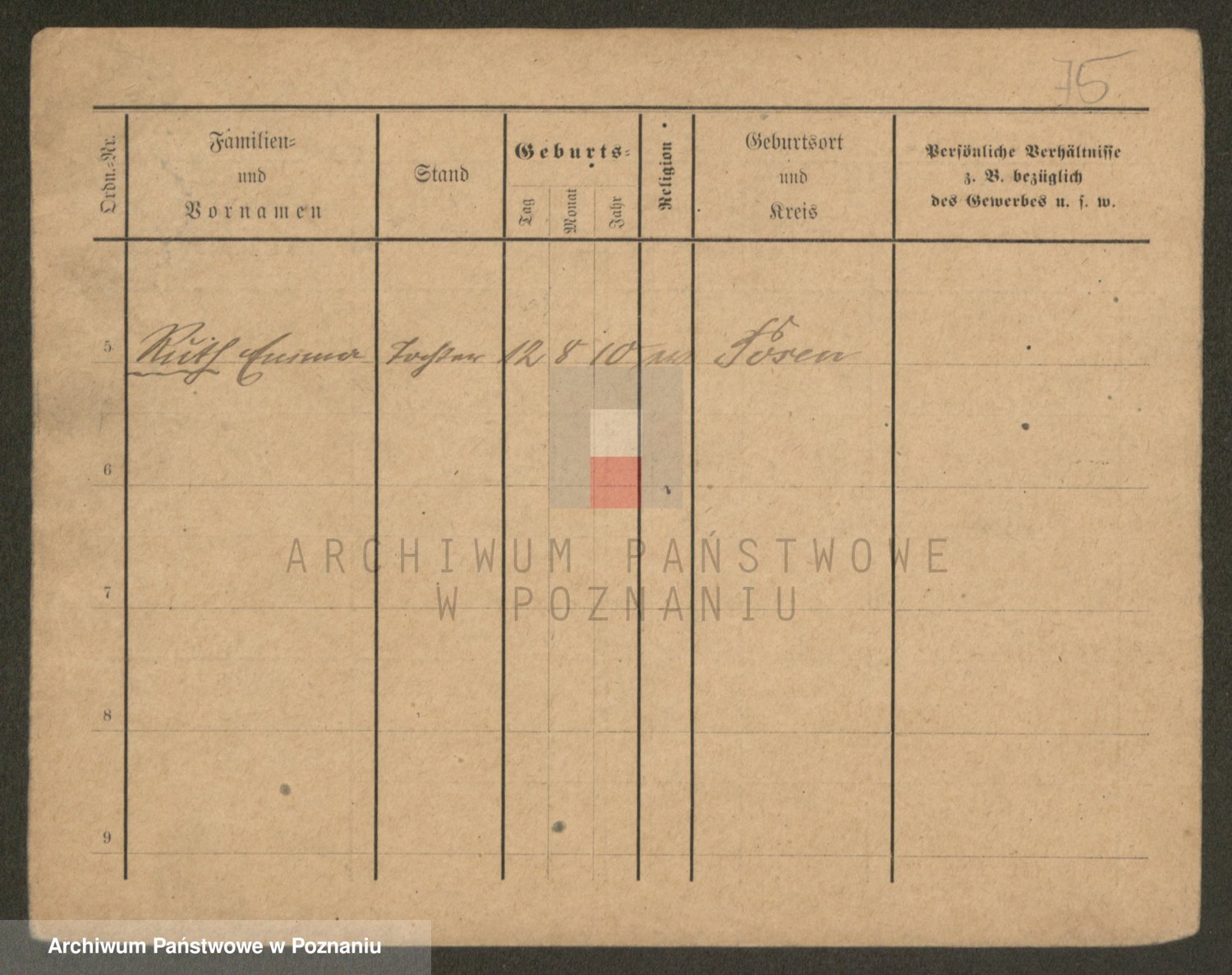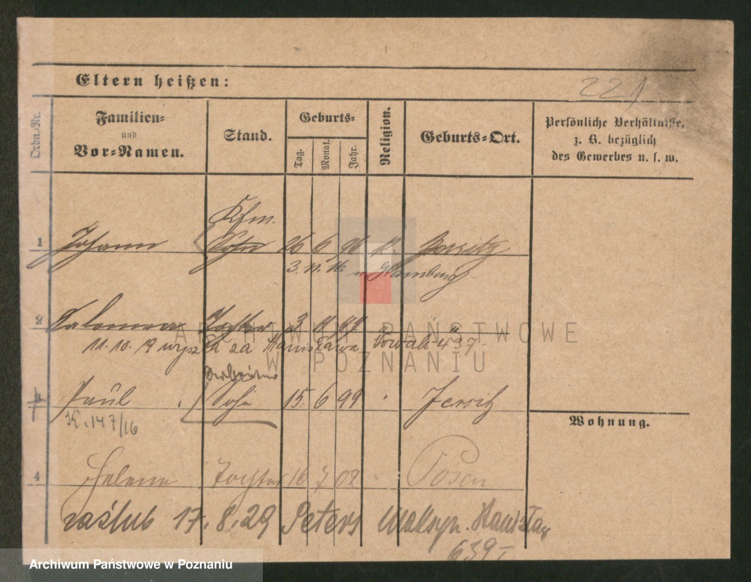 Podgląd karty osobowej dostępny jest po kliknięciu na nazwisko lub ikonkę karty. Można dokonywać powiększenia (ikony na górze) lub przechodzić między kolejnymi skanami (strzałki po bokach).