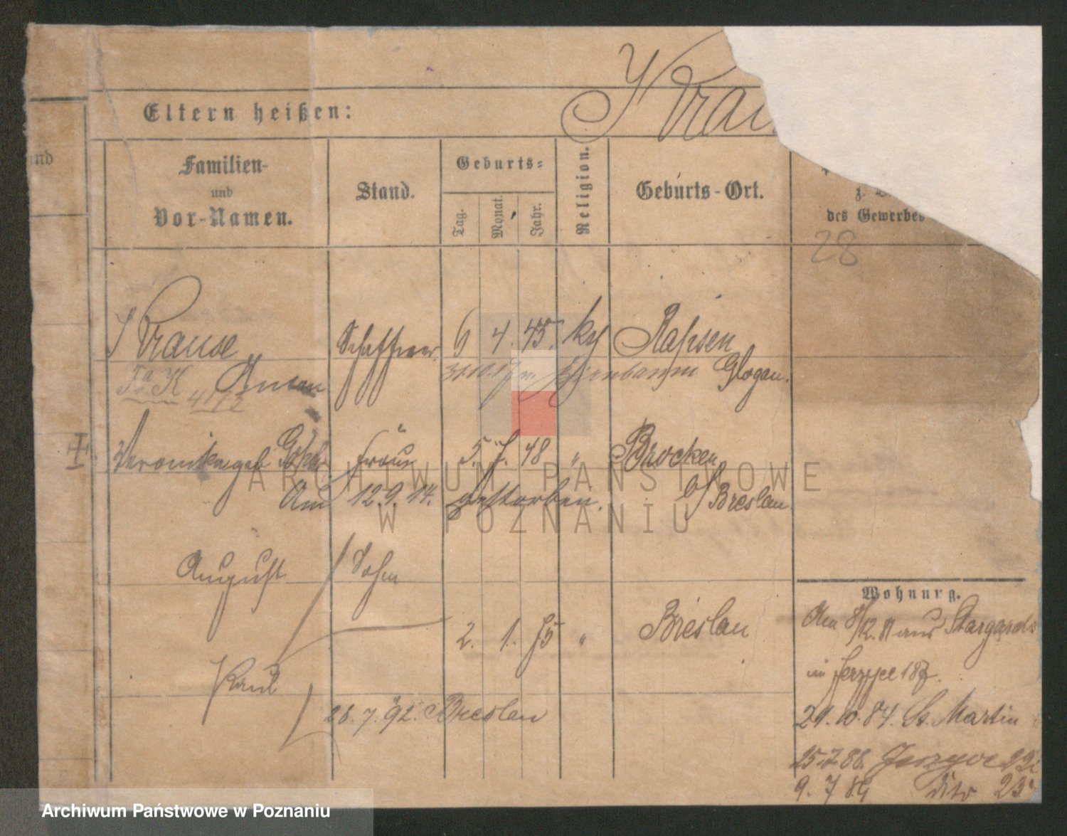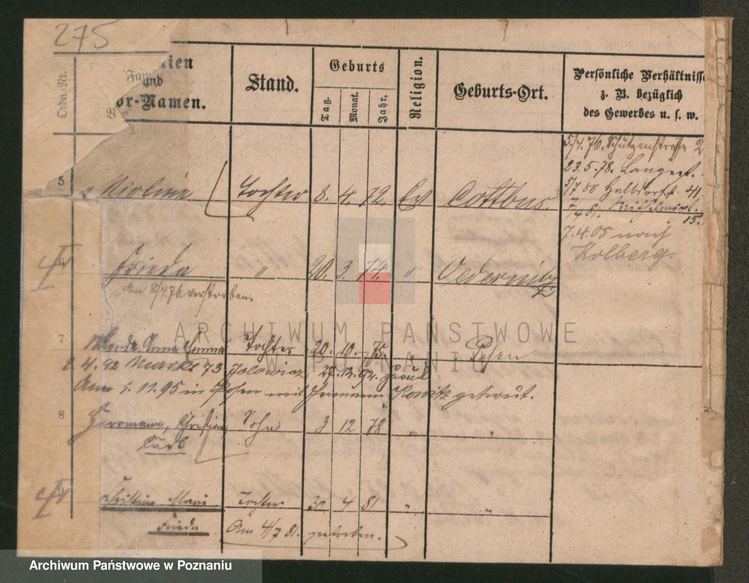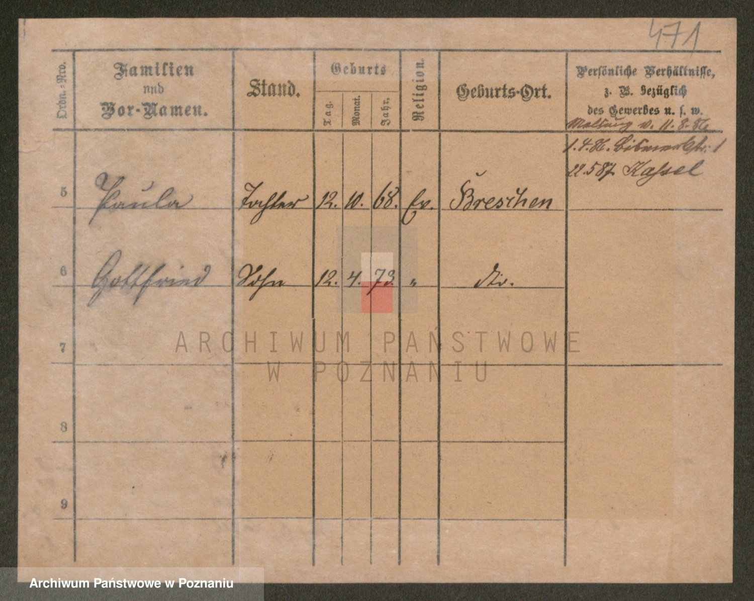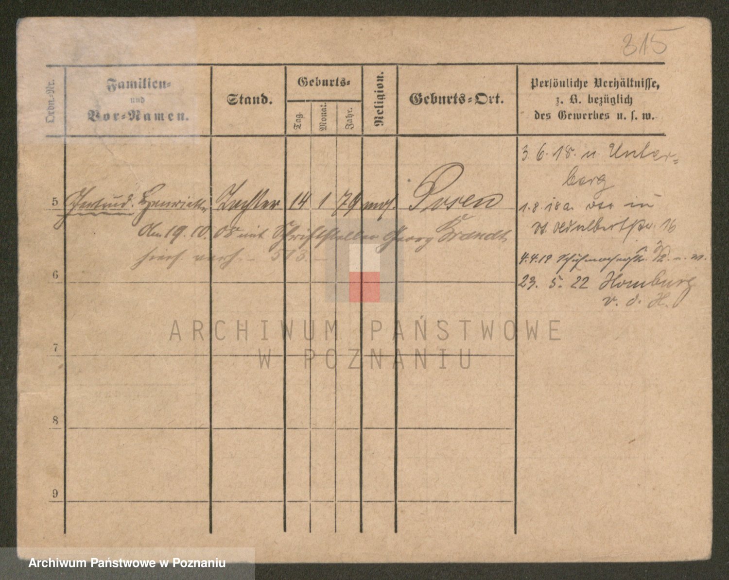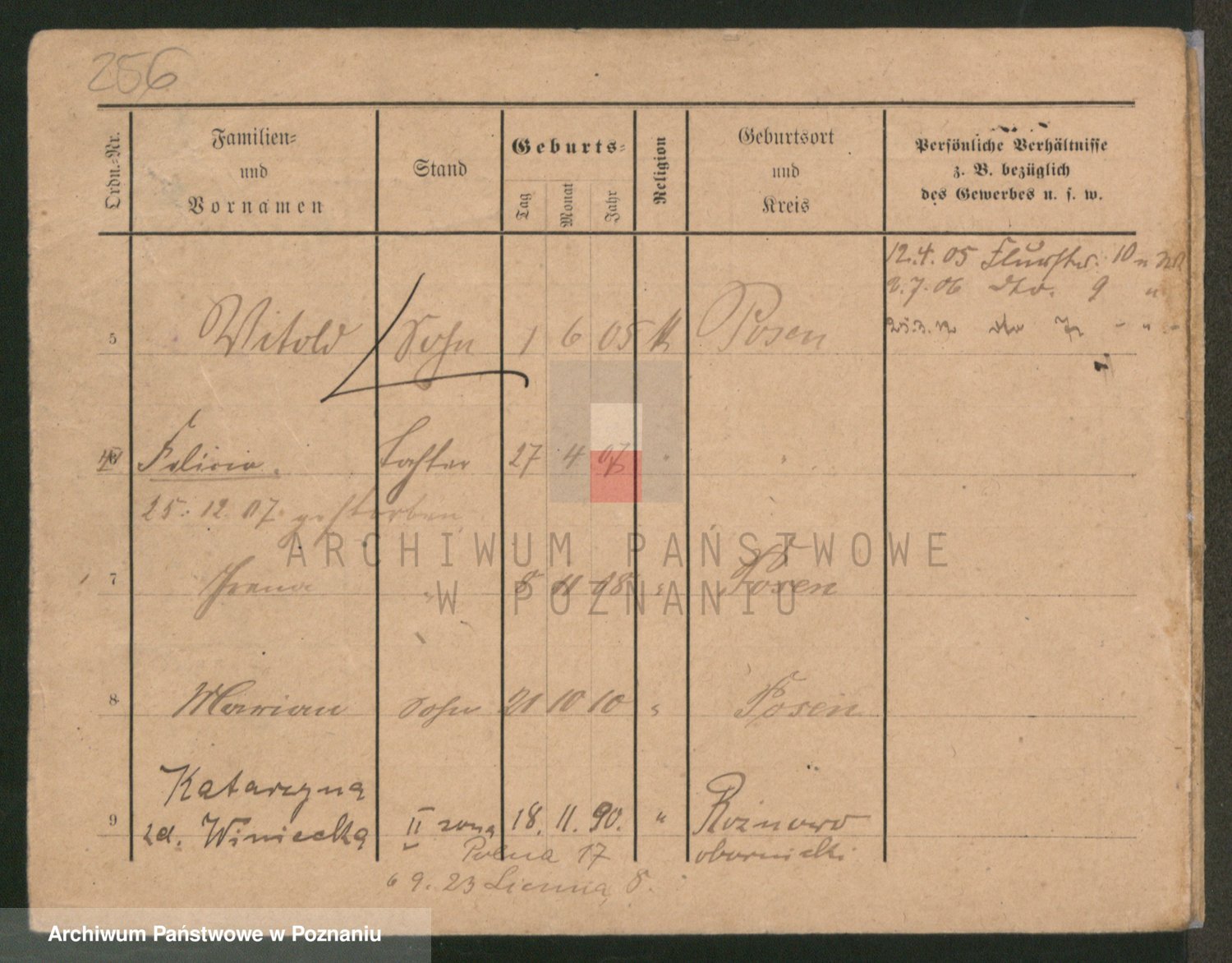 Podgląd karty osobowej dostępny jest po kliknięciu na nazwisko lub ikonkę karty. Można dokonywać powiększenia (ikony na górze) lub przechodzić między kolejnymi skanami (strzałki po bokach).
