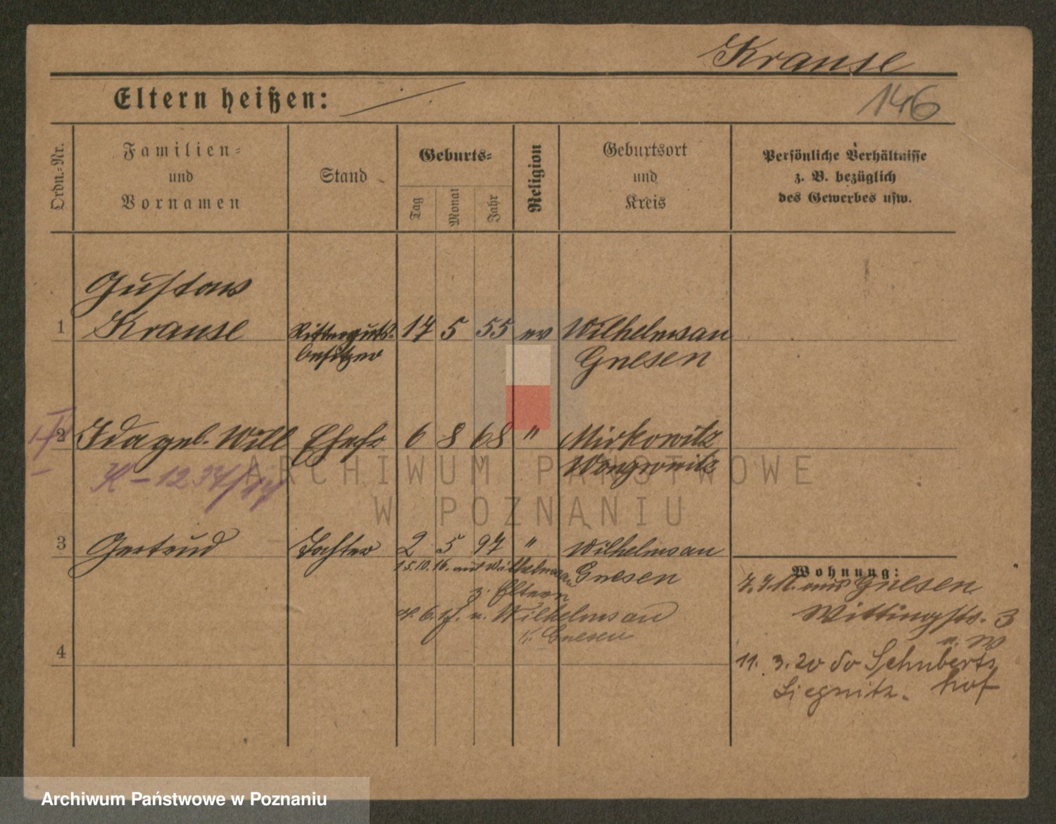 Krause z d. Niedergerach, Wilhelmine