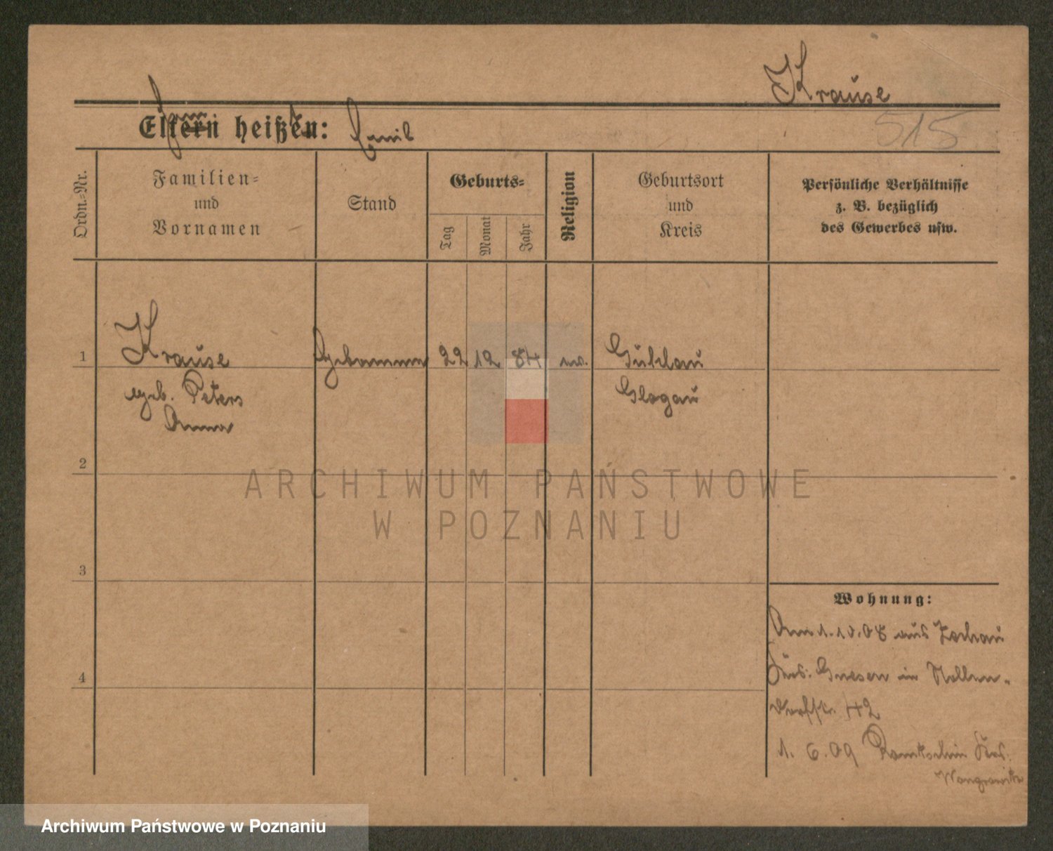 Krause z d. Schpielvogel, Emilie Pauline Johanna