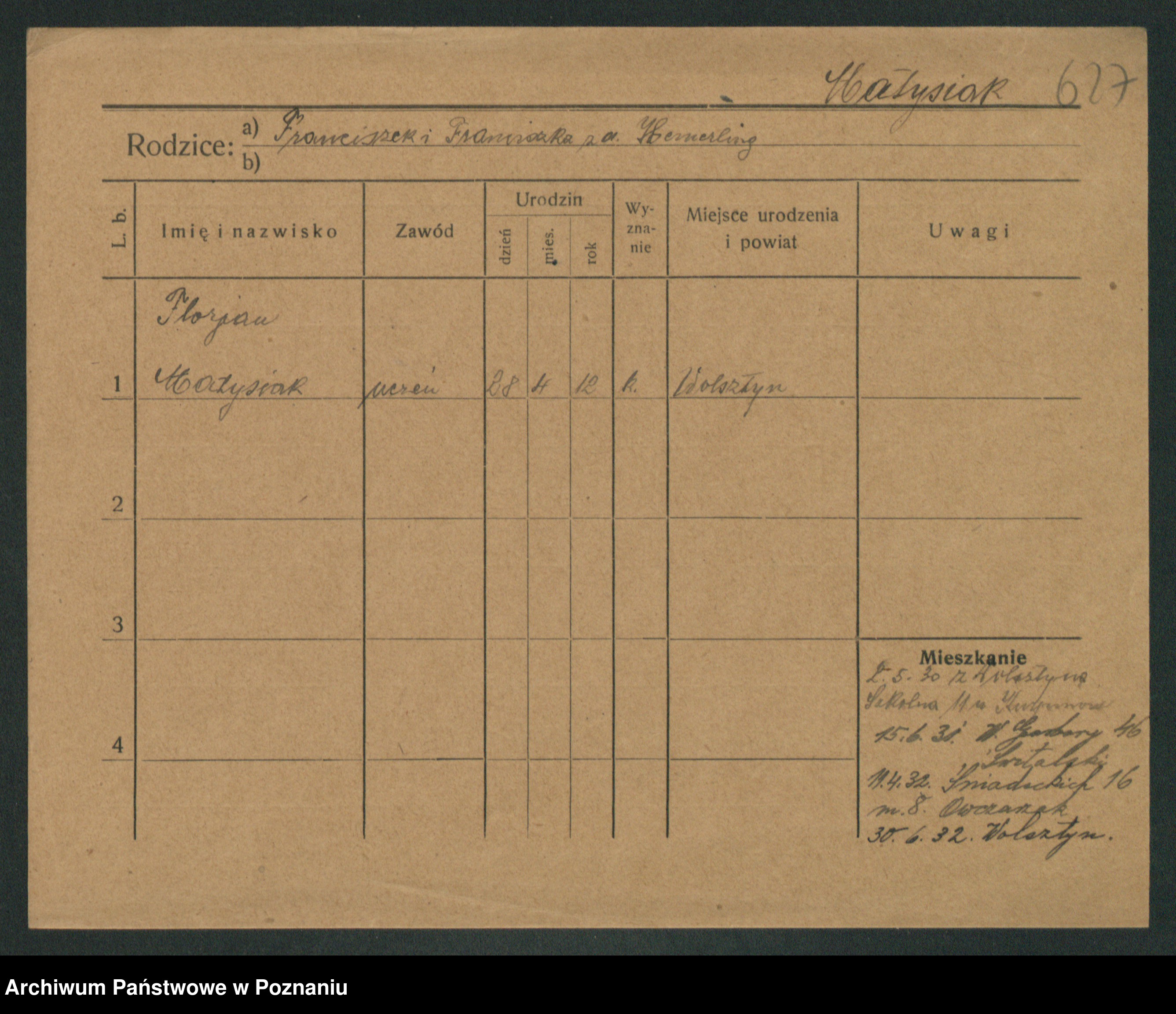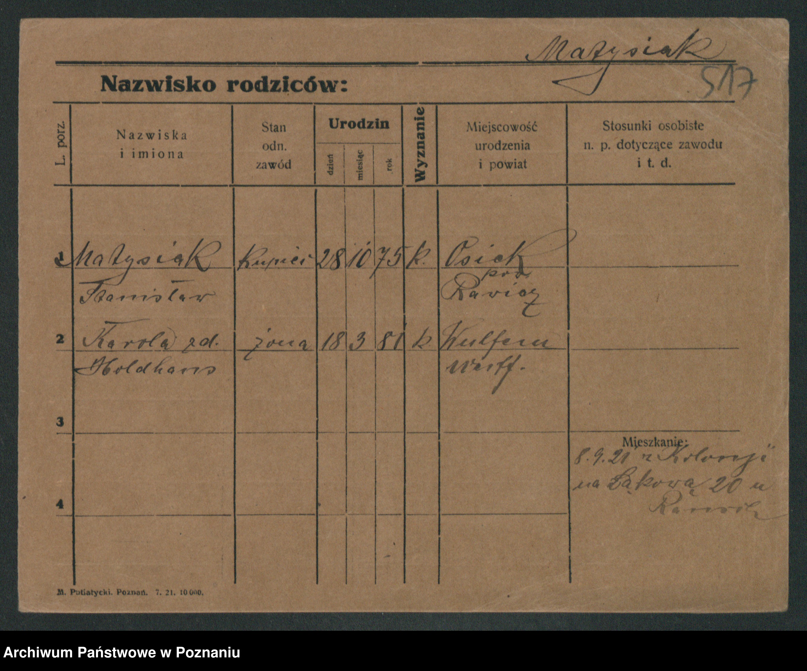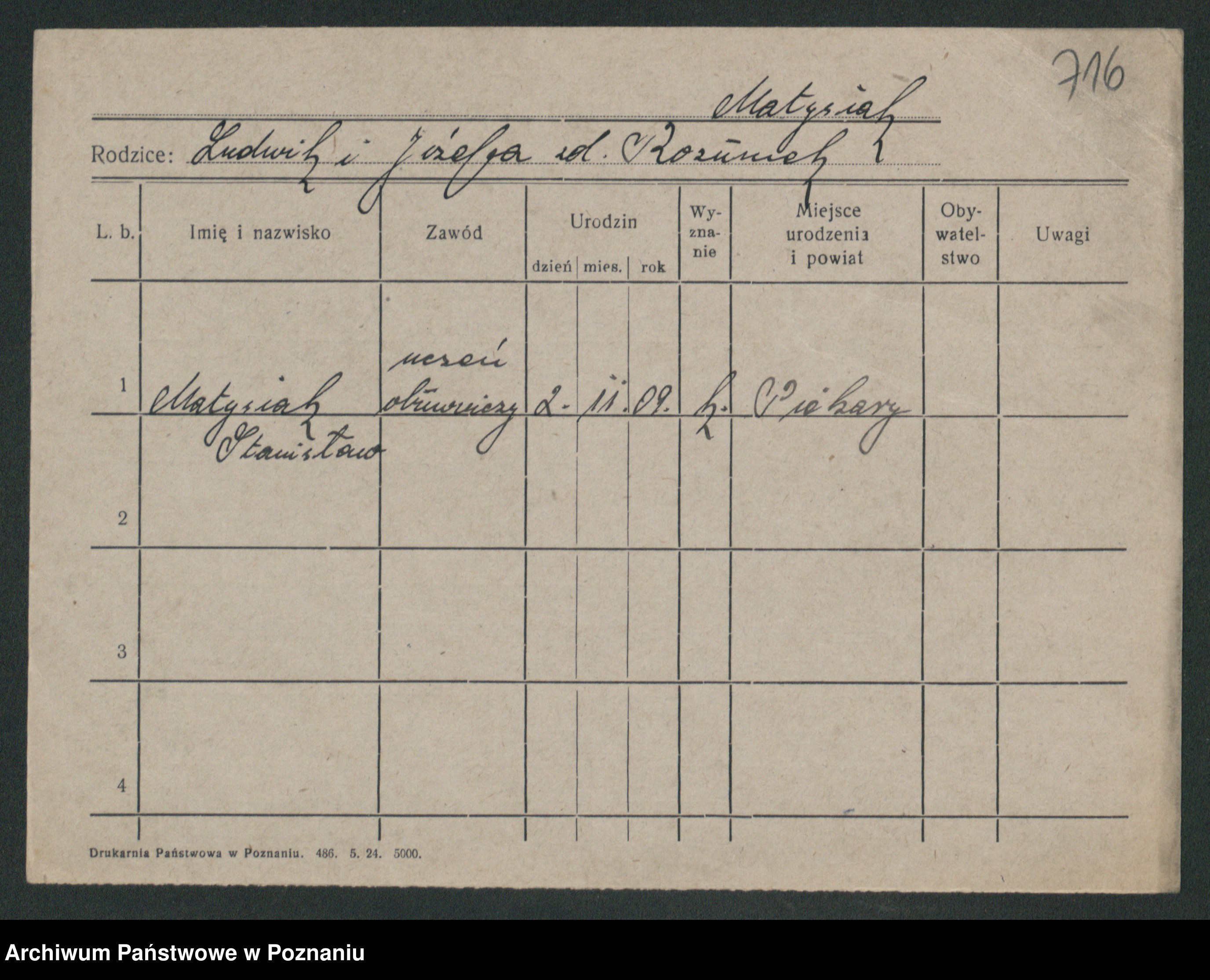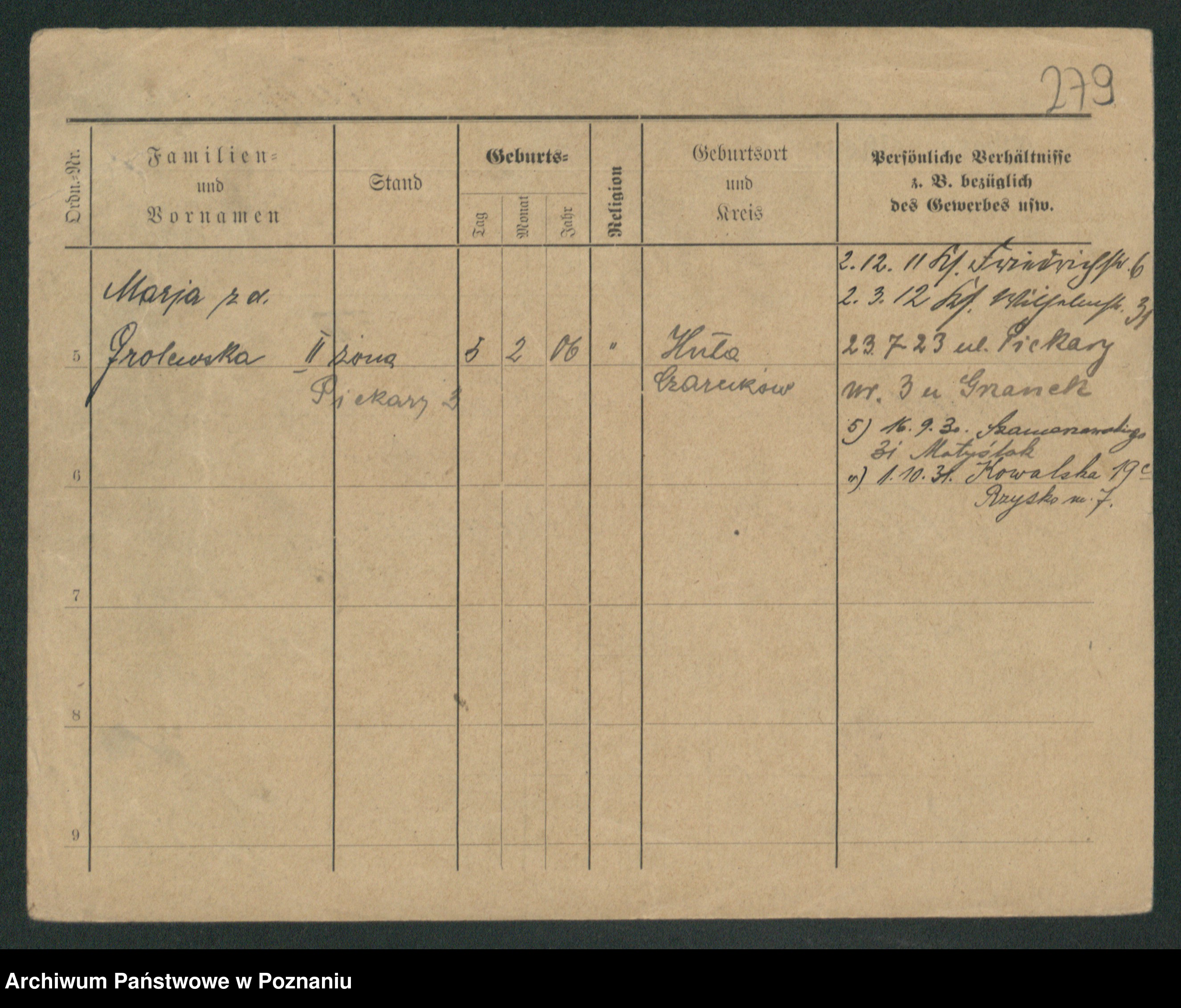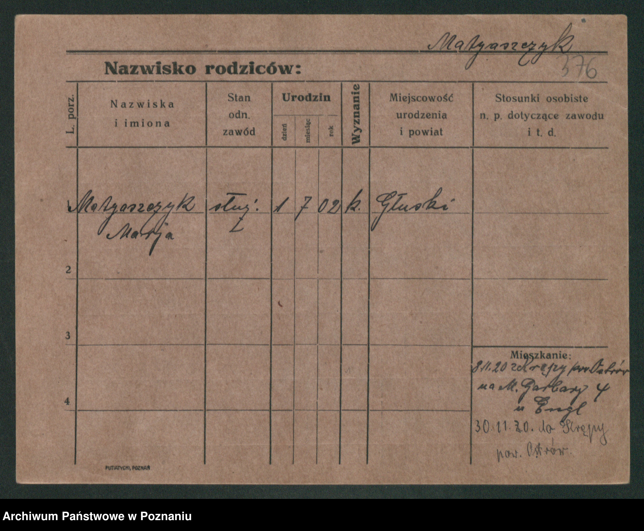 Podgląd karty osobowej dostępny jest po kliknięciu na nazwisko lub ikonkę karty. Można dokonywać powiększenia (ikony na górze) lub przechodzić między kolejnymi skanami (strzałki po bokach).