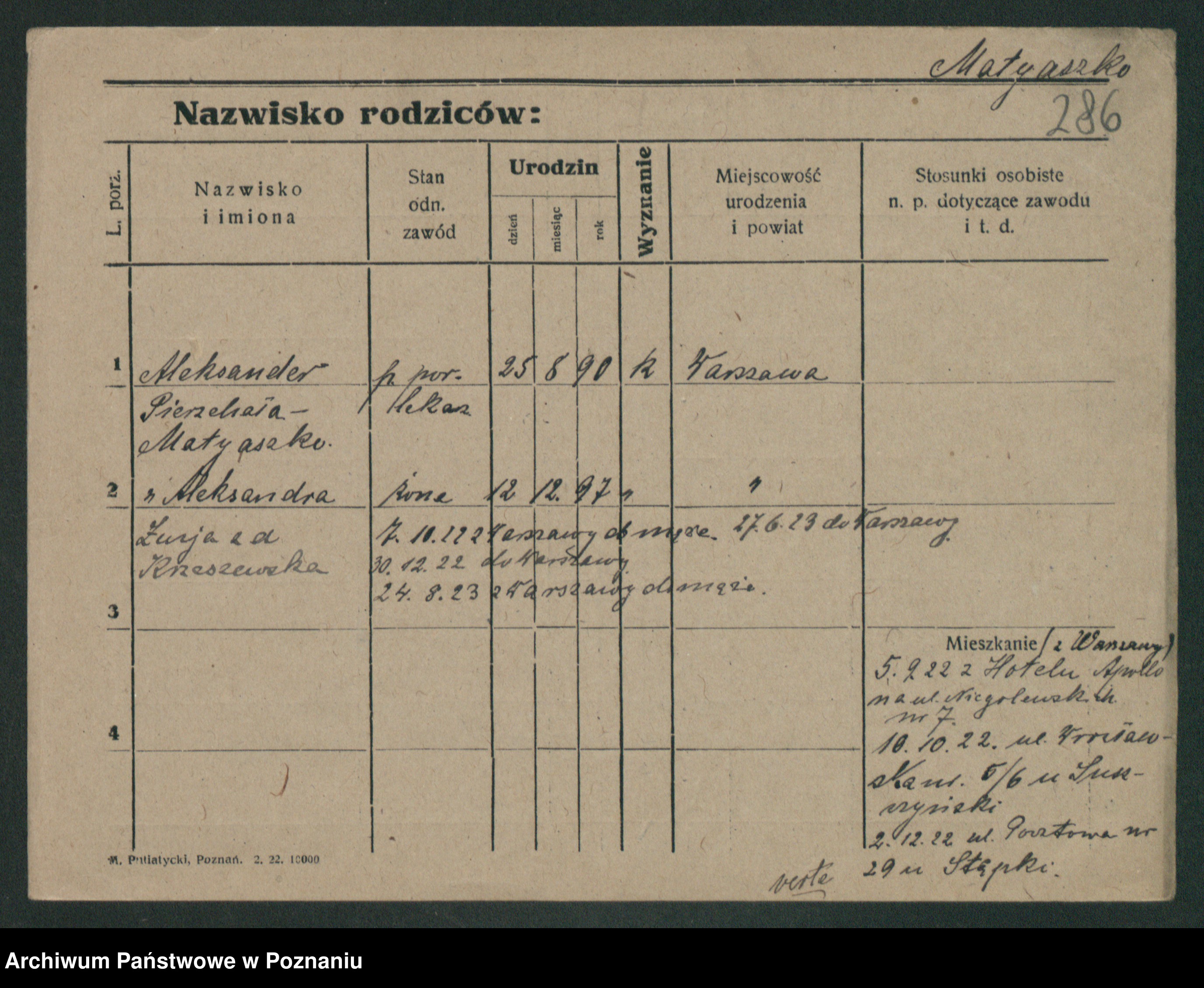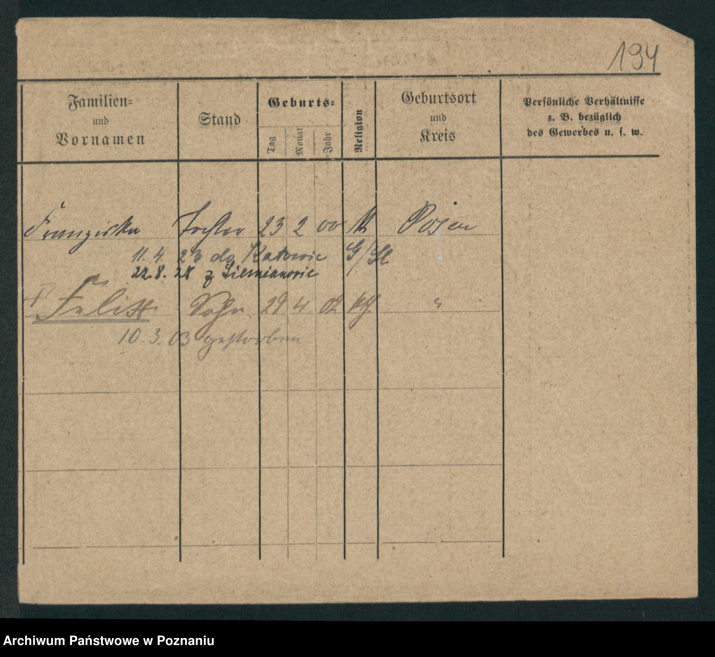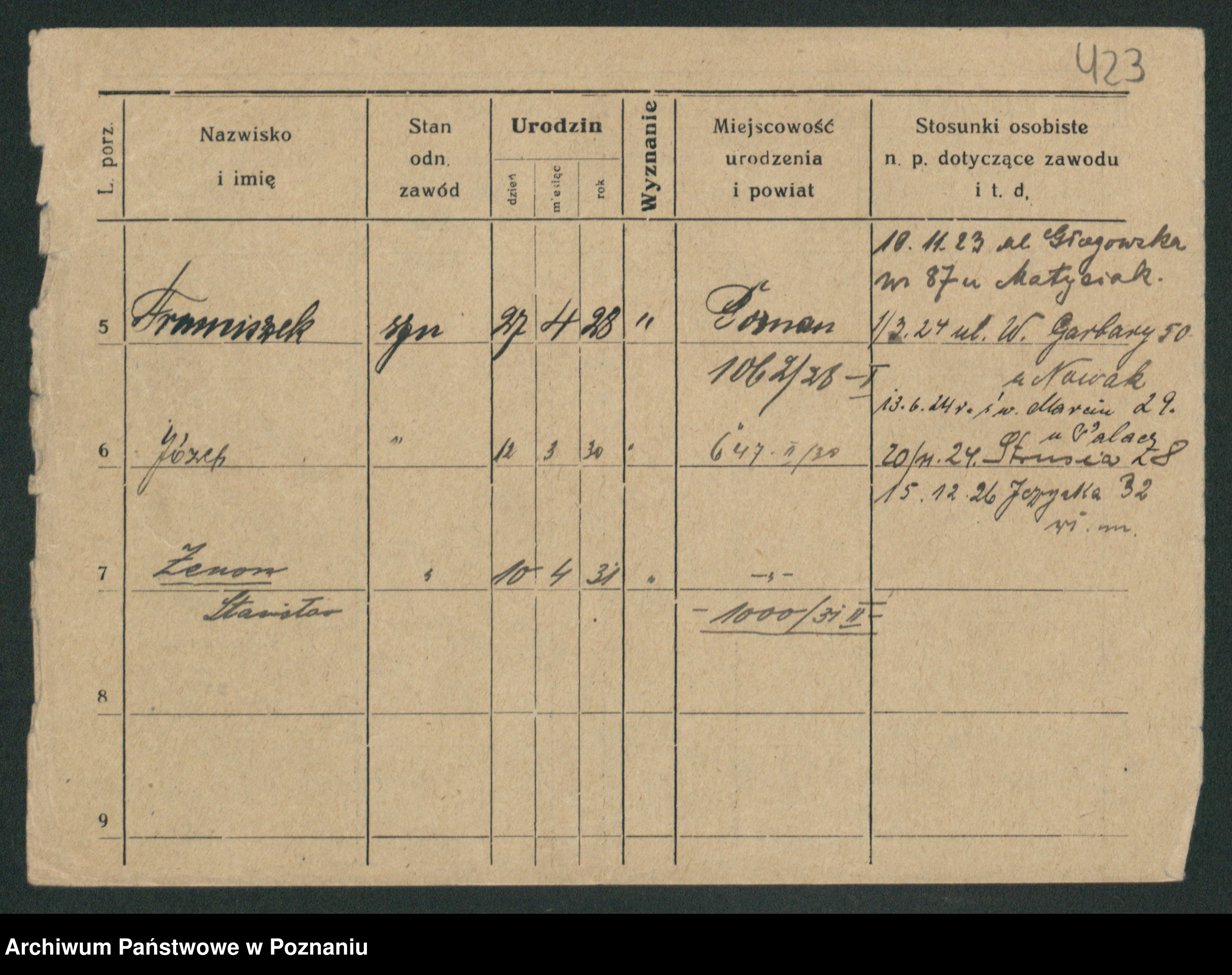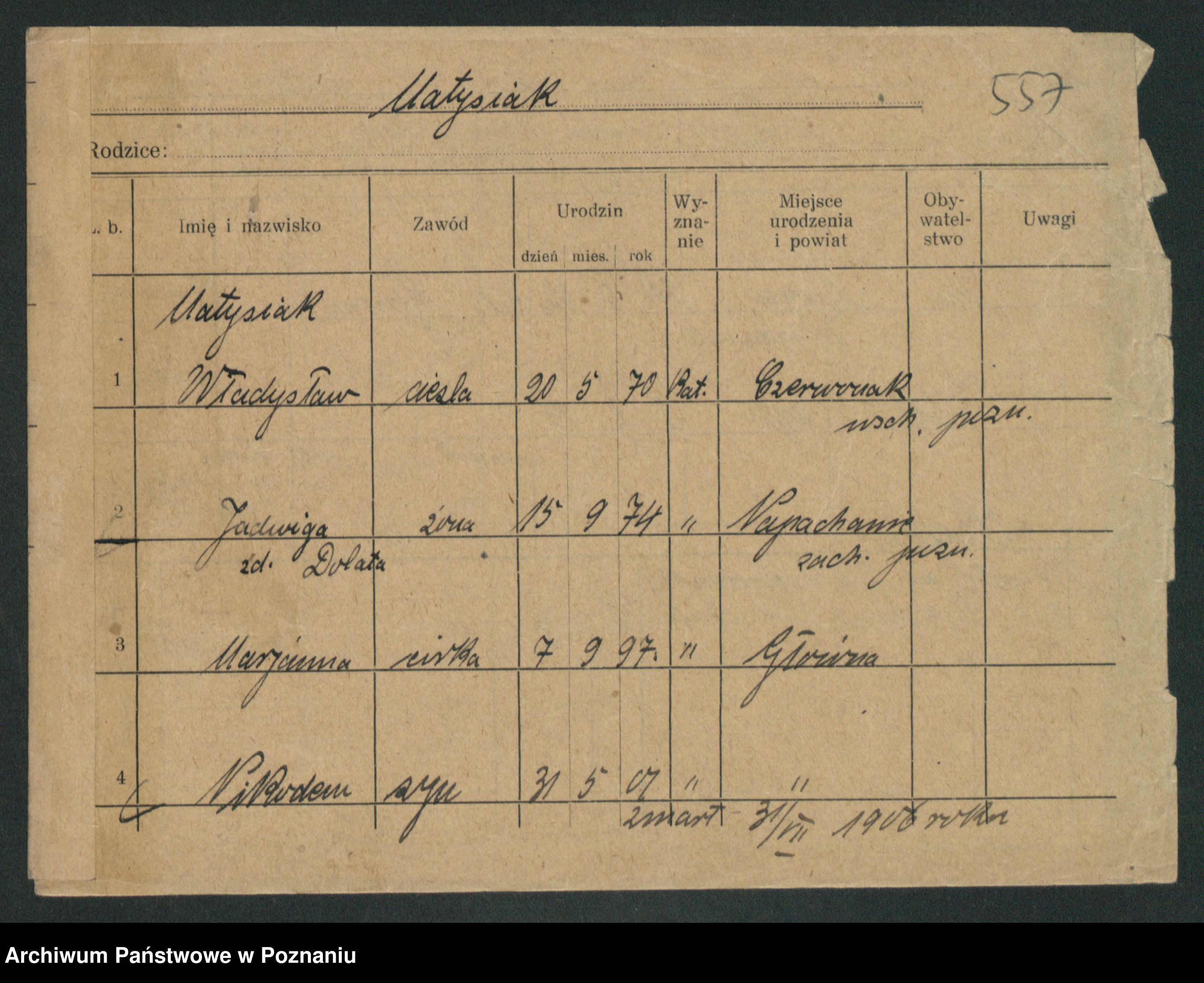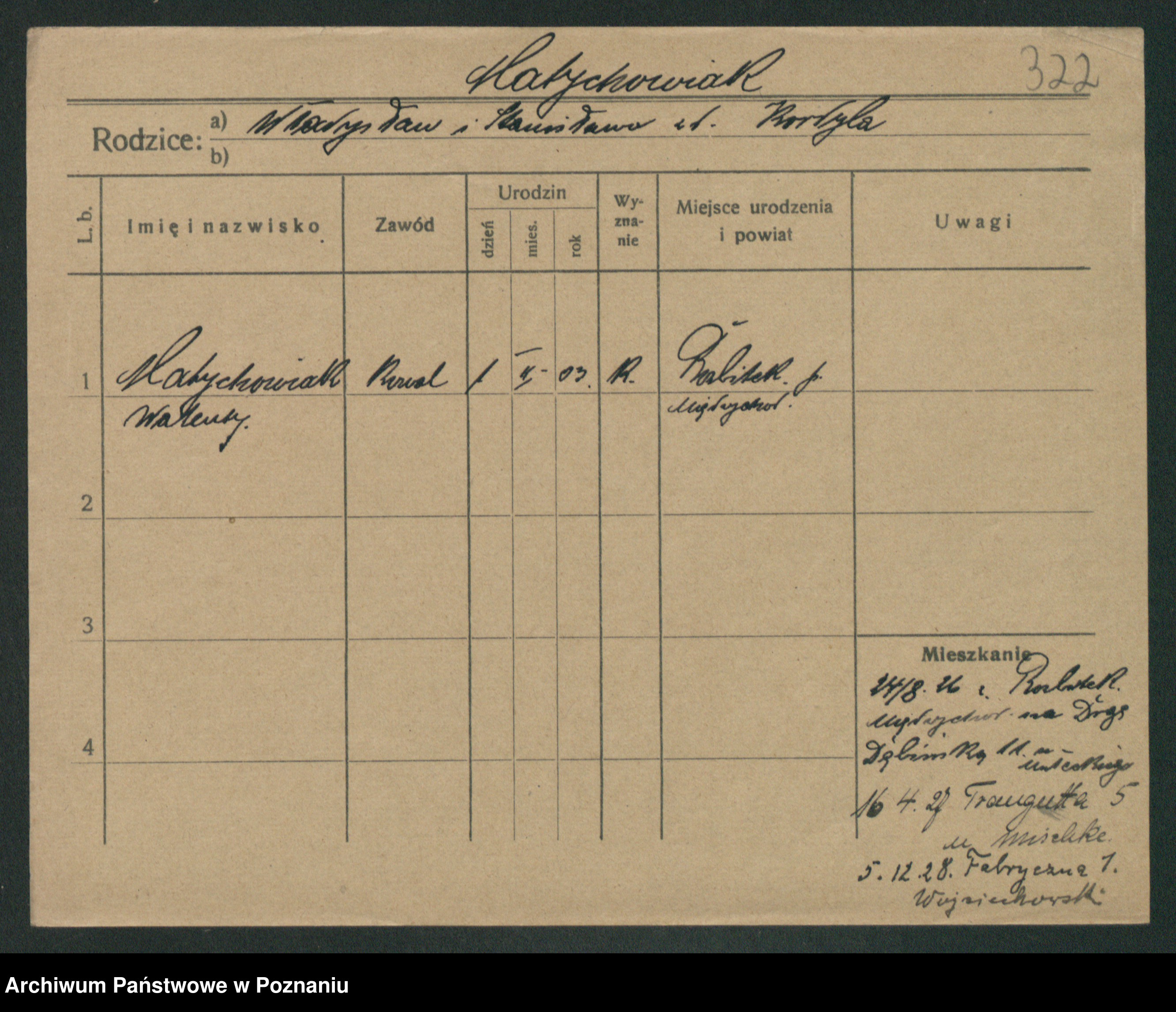 Podgląd karty osobowej dostępny jest po kliknięciu na nazwisko lub ikonkę karty. Można dokonywać powiększenia (ikony na górze) lub przechodzić między kolejnymi skanami (strzałki po bokach).