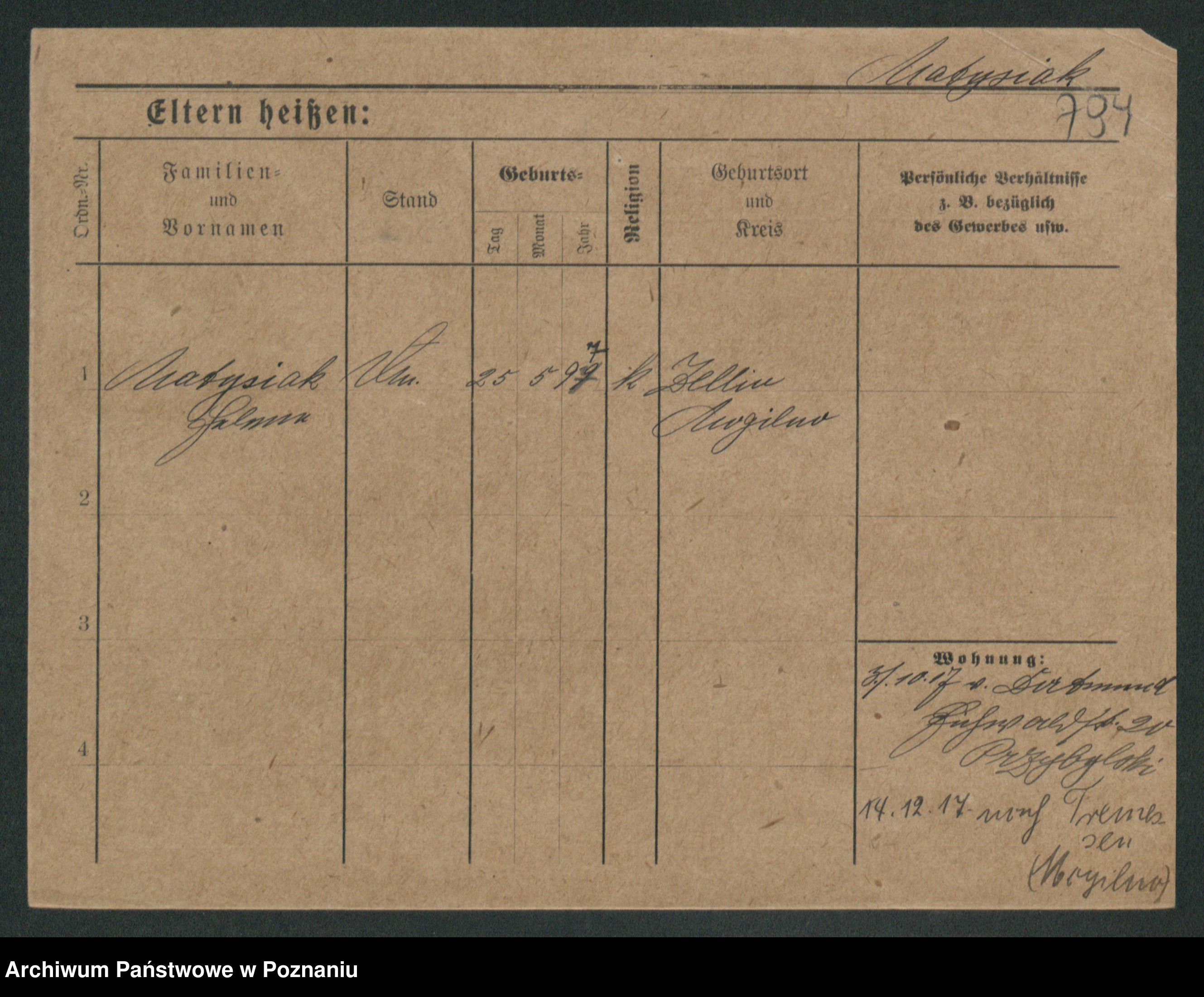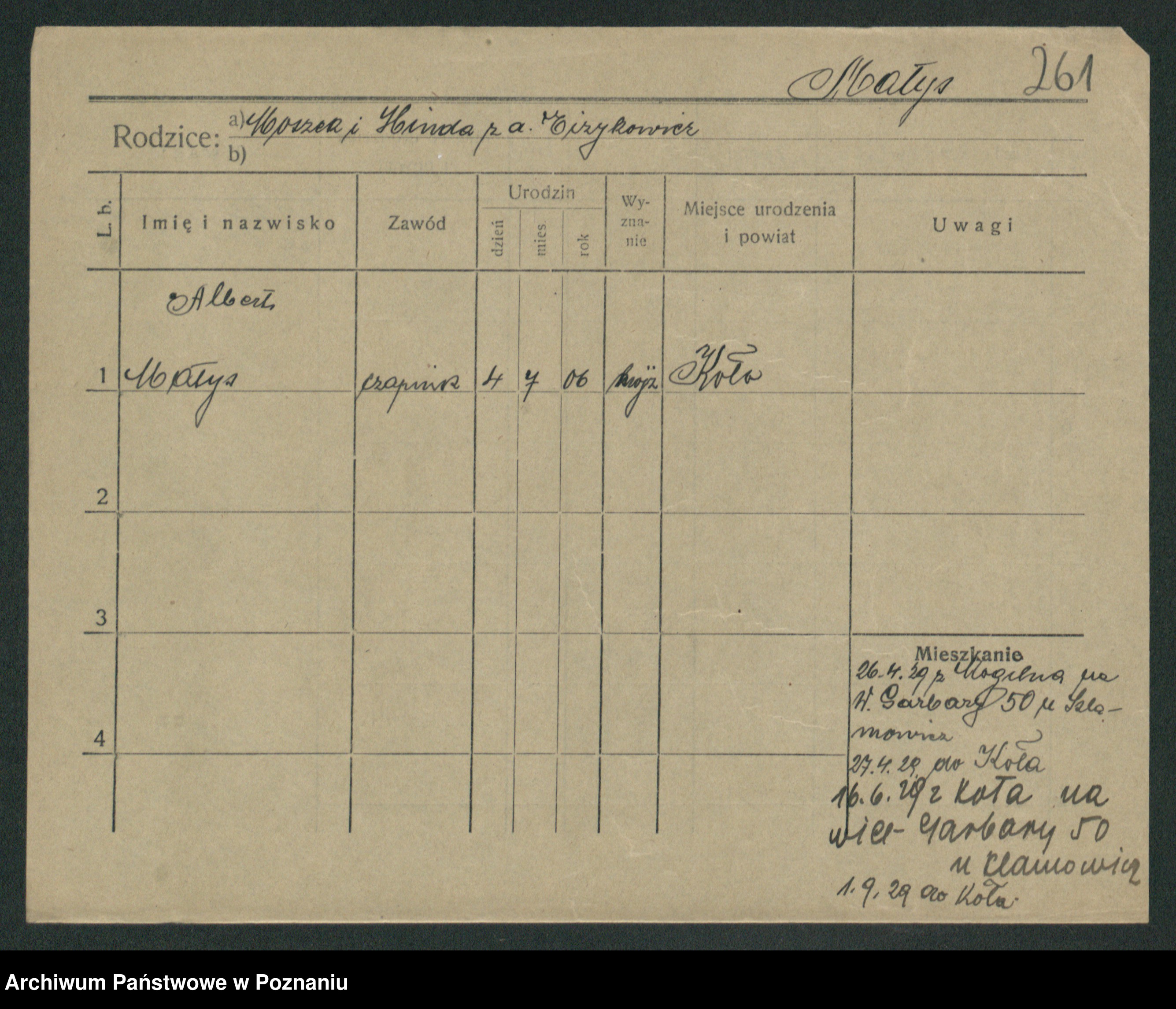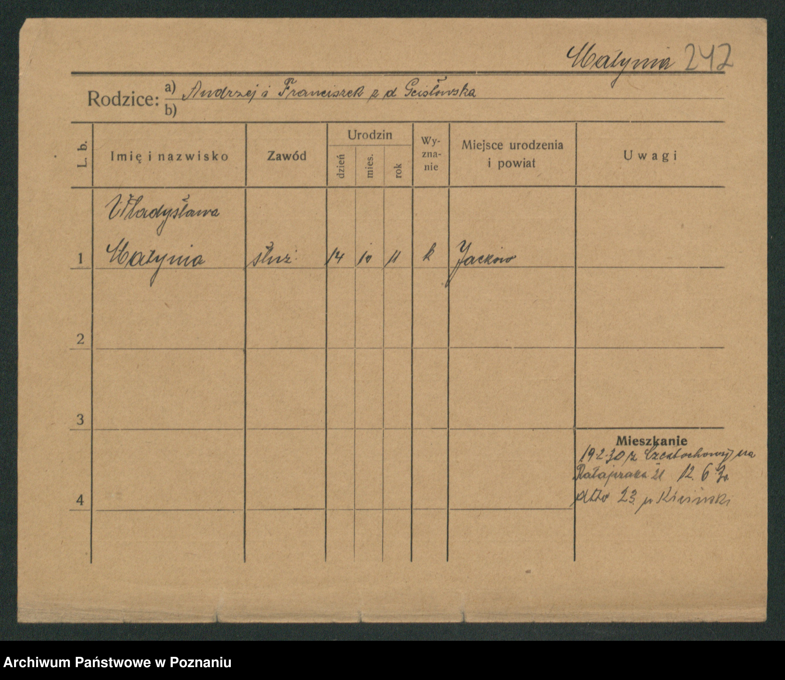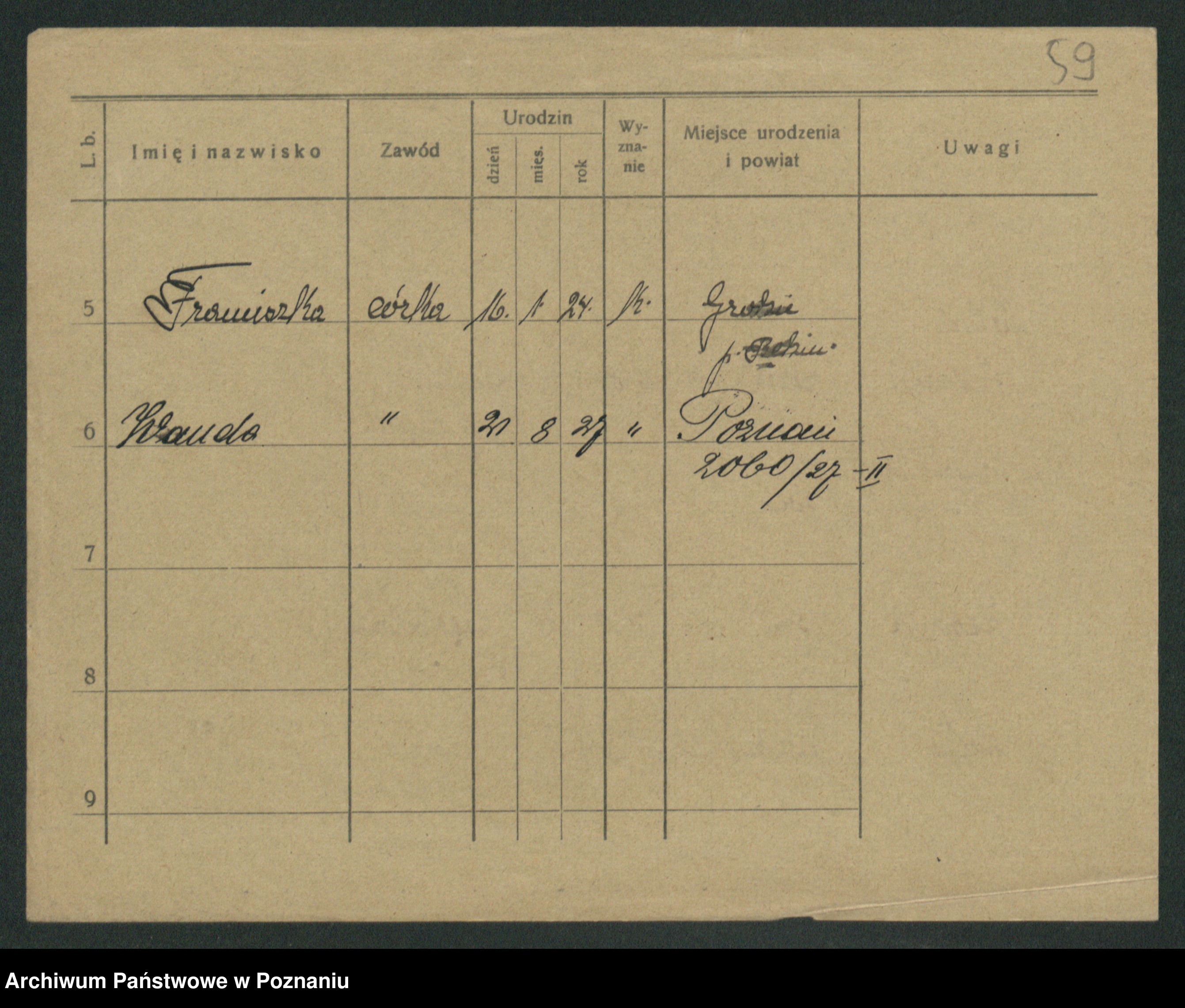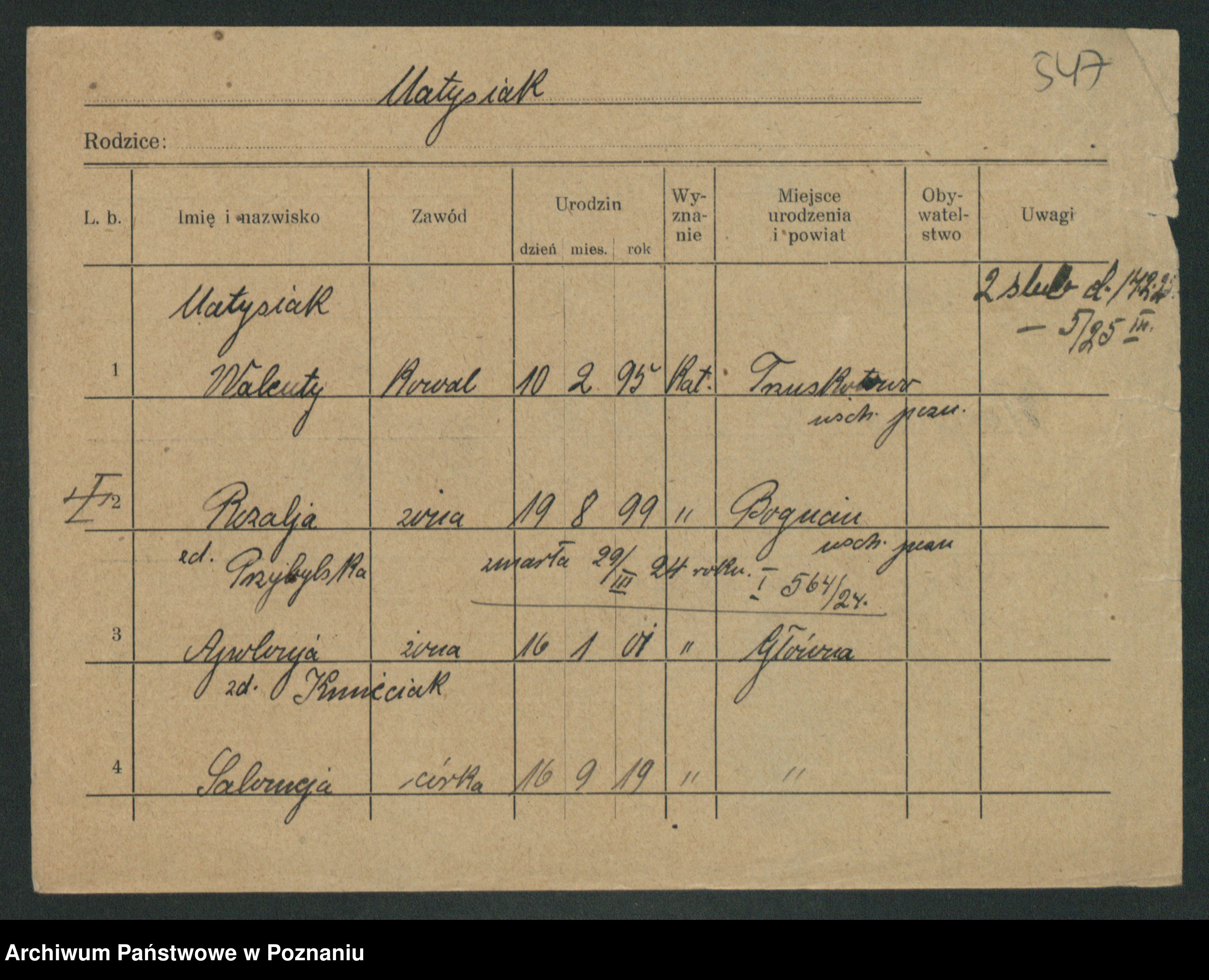 Podgląd karty osobowej dostępny jest po kliknięciu na nazwisko lub ikonkę karty. Można dokonywać powiększenia (ikony na górze) lub przechodzić między kolejnymi skanami (strzałki po bokach).