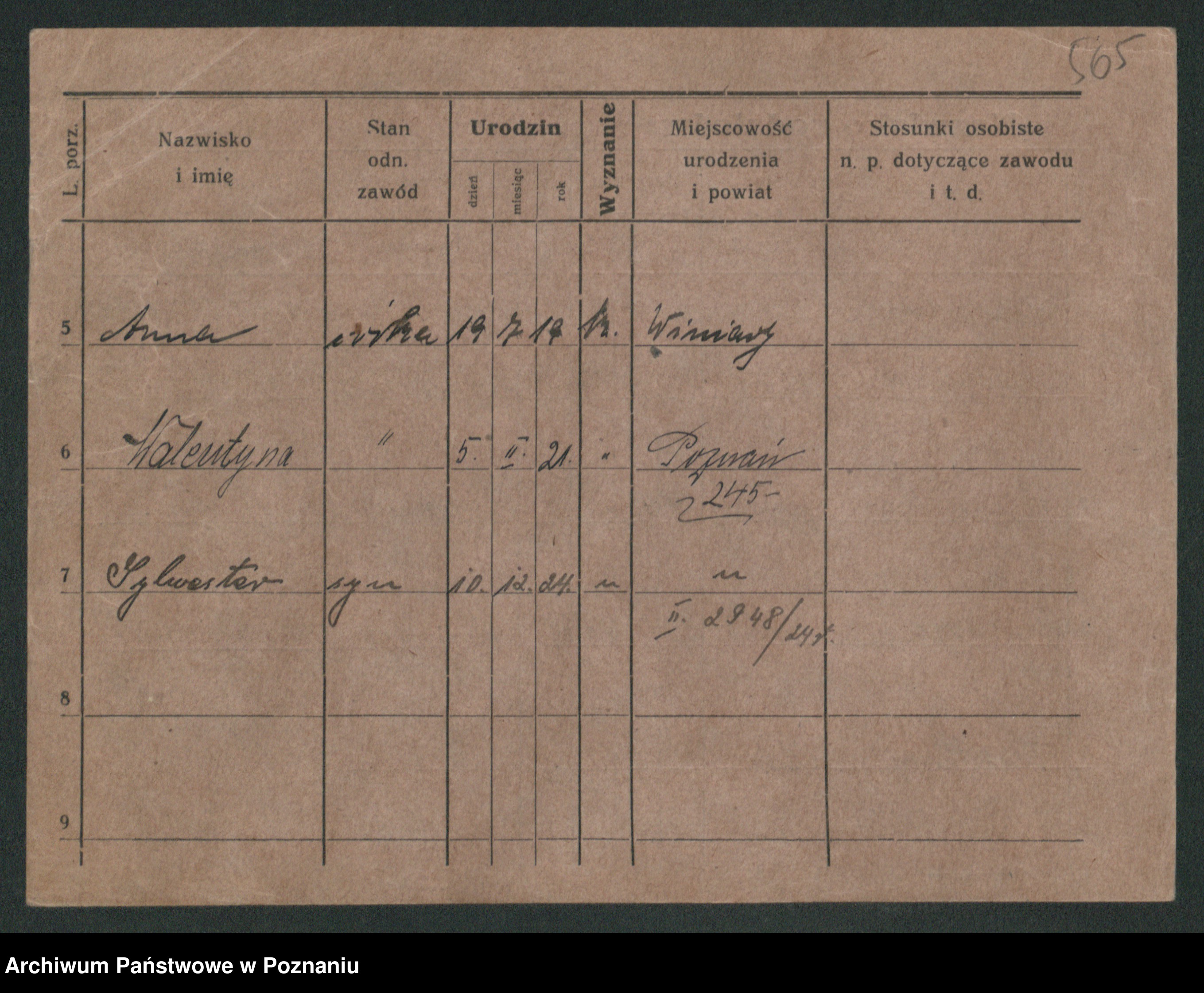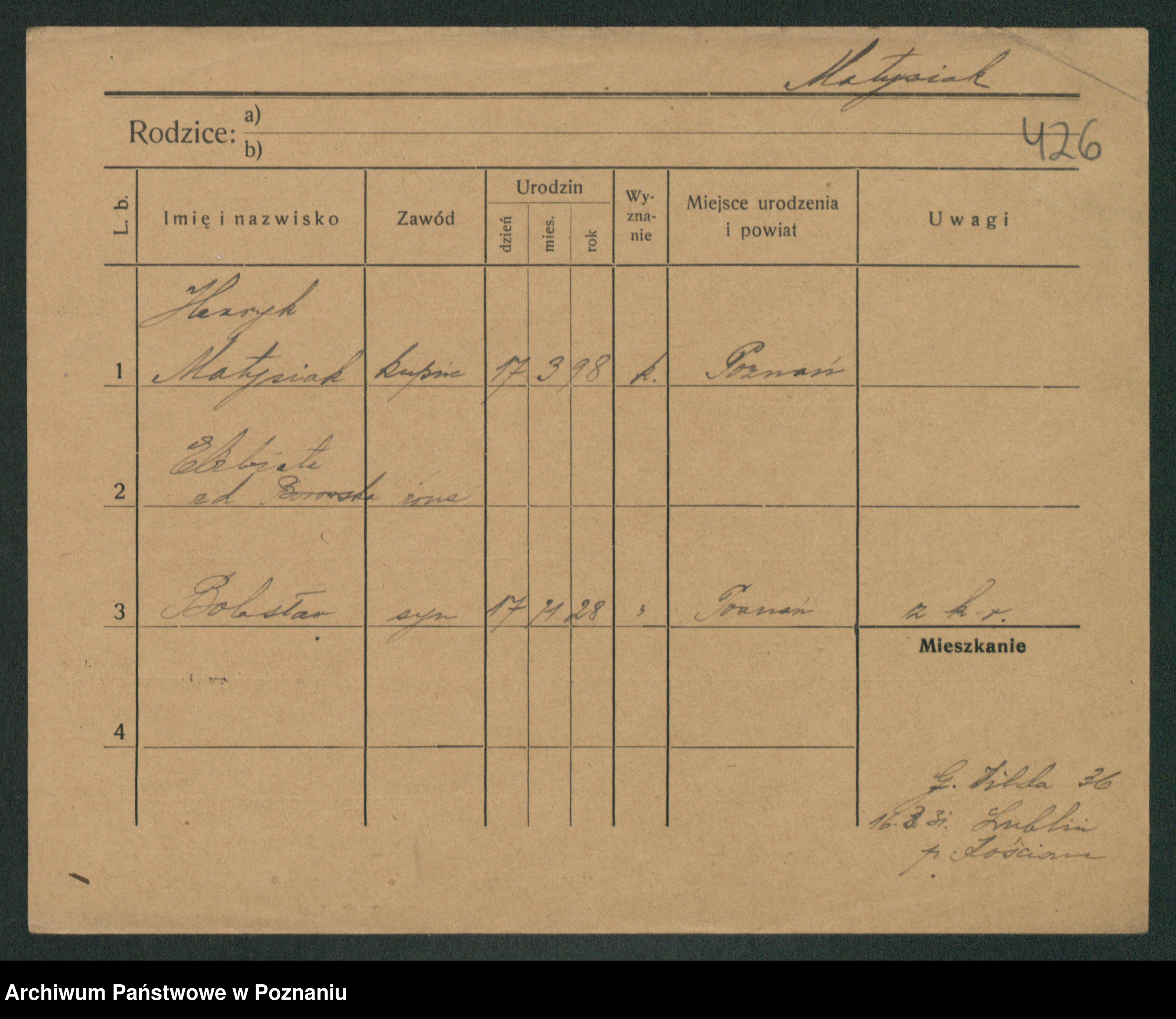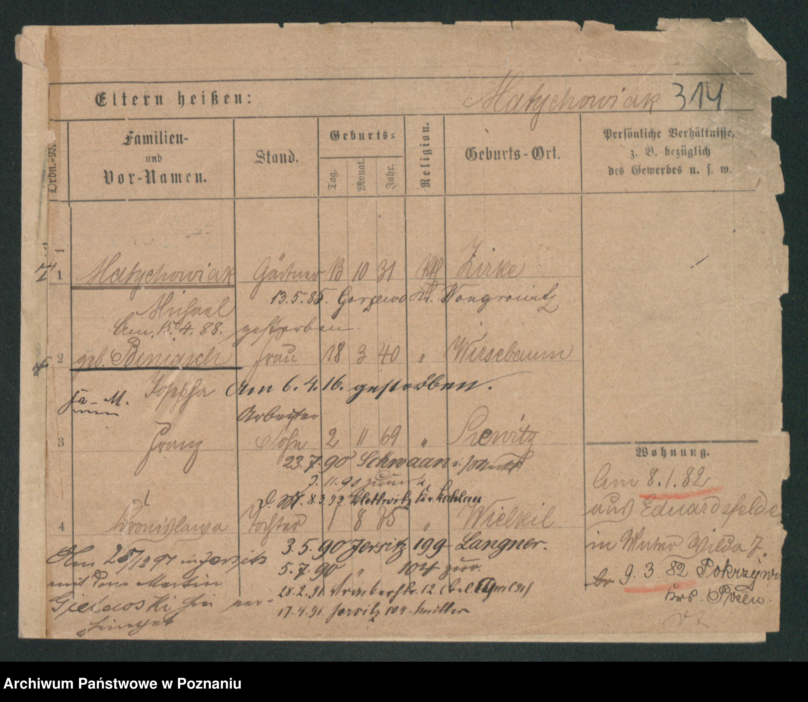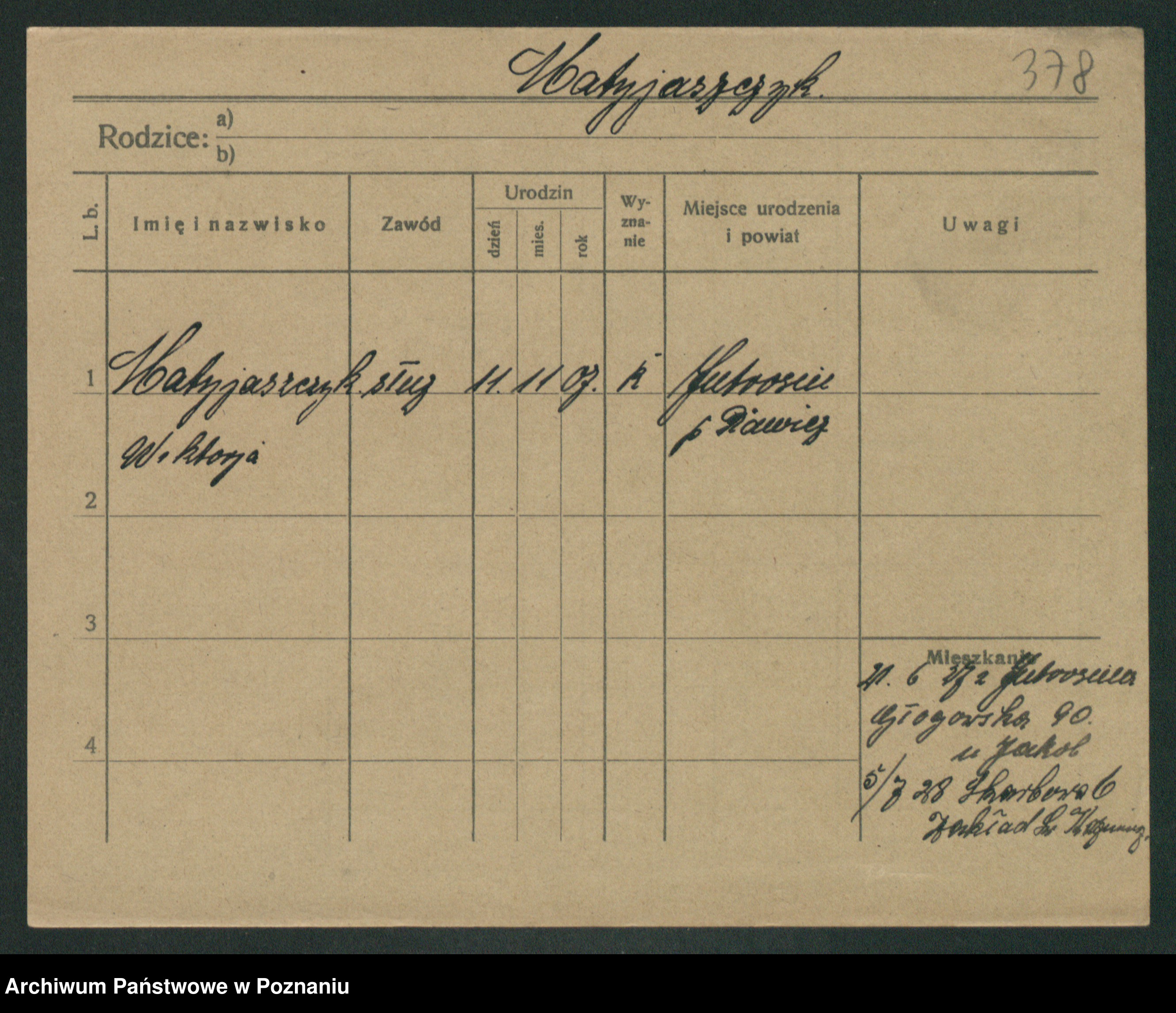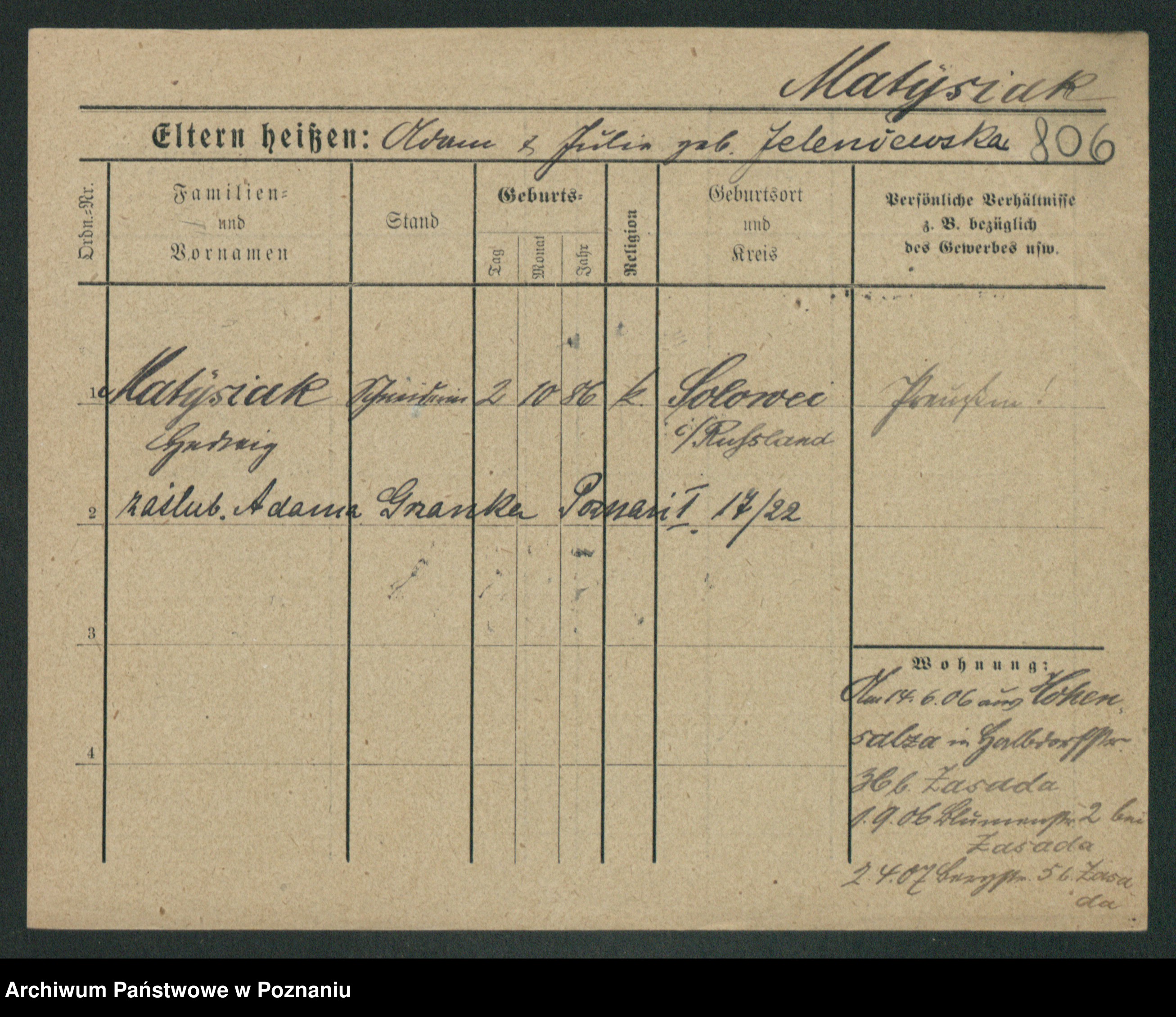 Podgląd karty osobowej dostępny jest po kliknięciu na nazwisko lub ikonkę karty. Można dokonywać powiększenia (ikony na górze) lub przechodzić między kolejnymi skanami (strzałki po bokach).