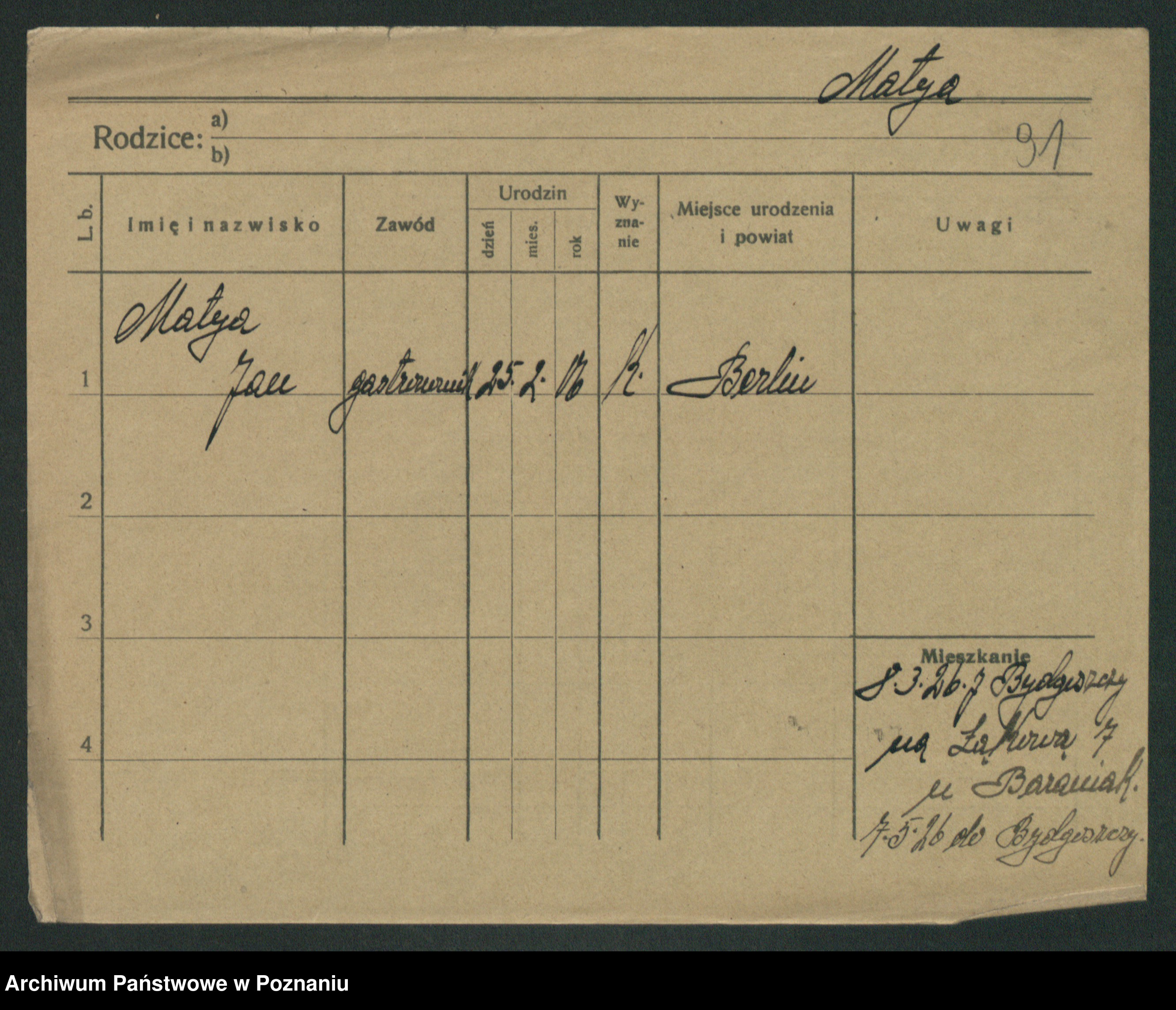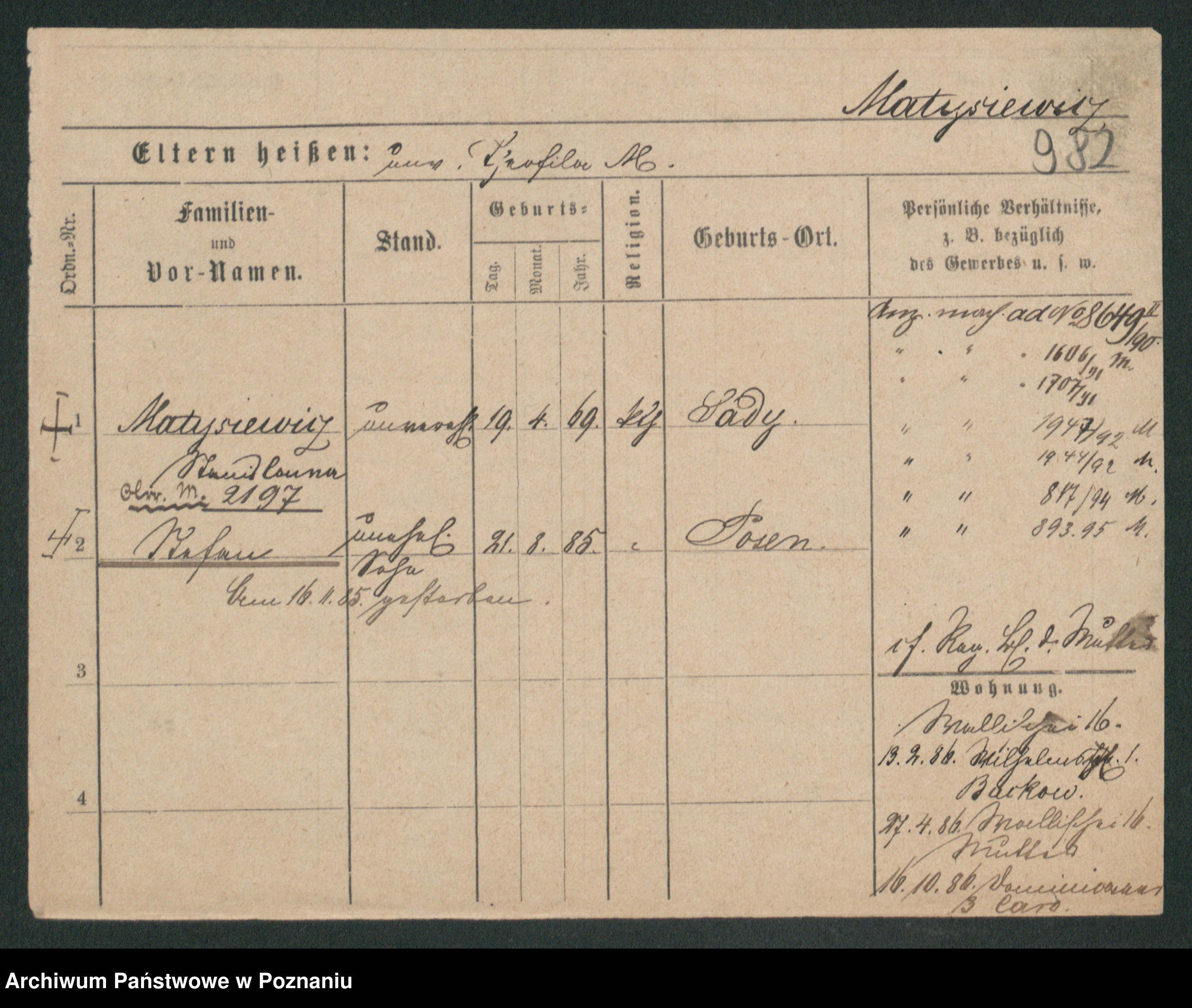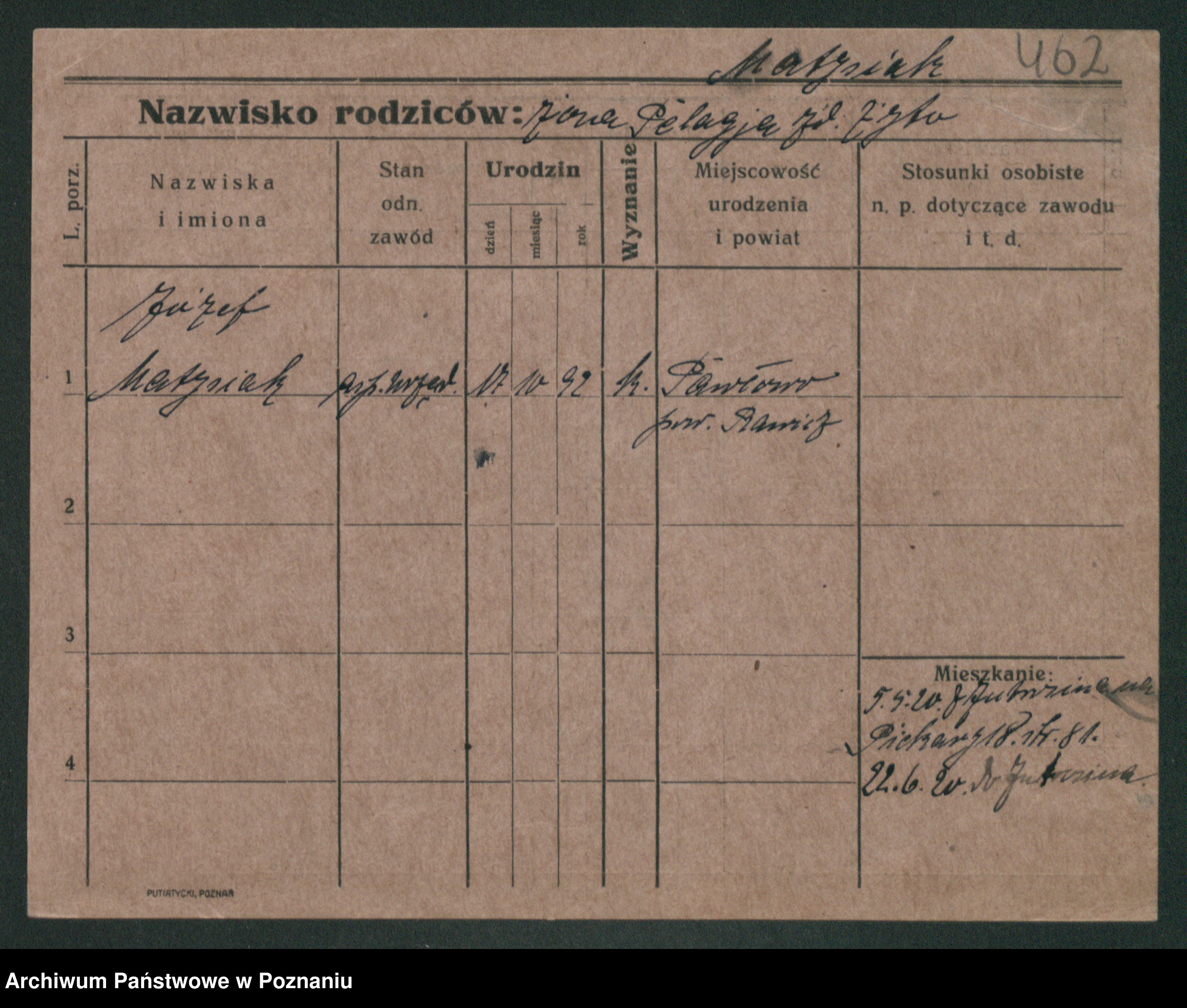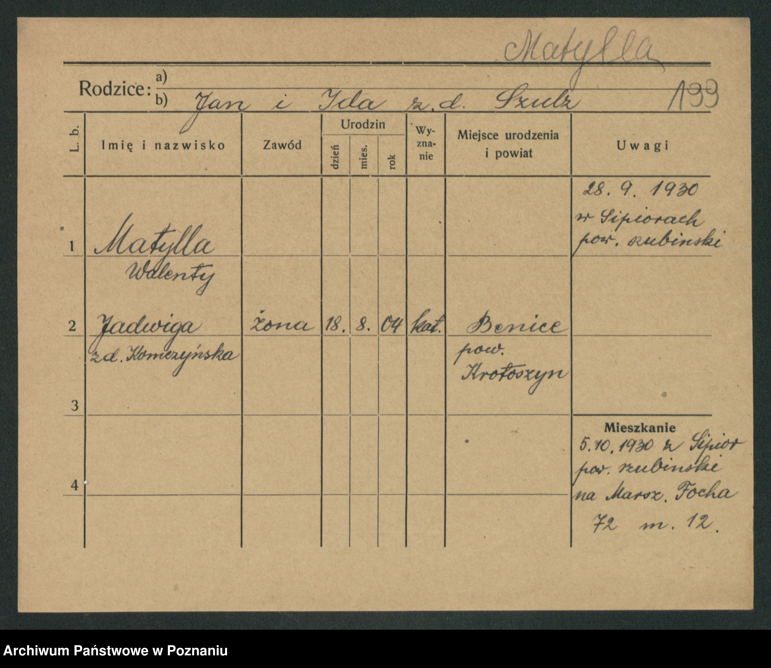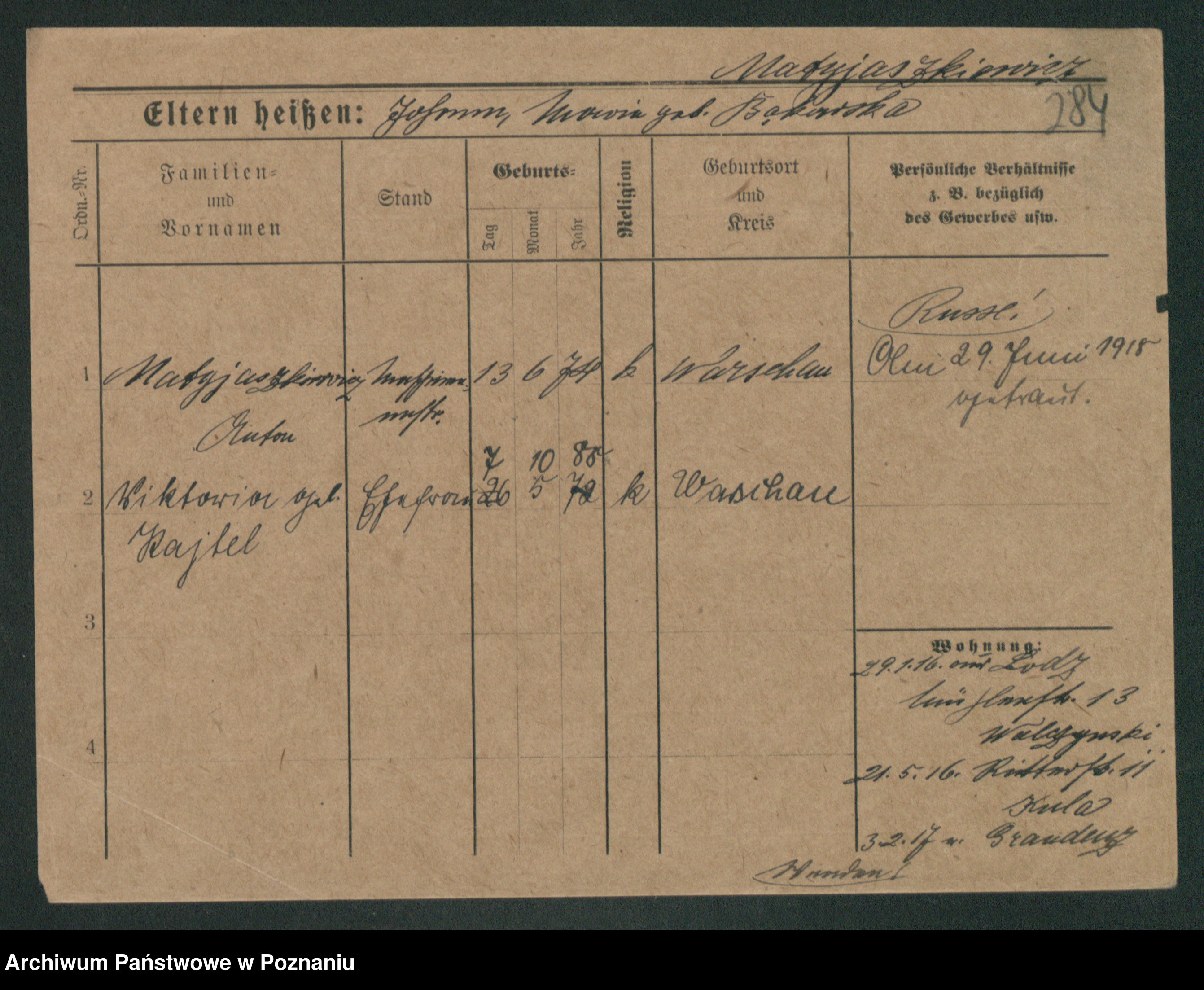 Podgląd karty osobowej dostępny jest po kliknięciu na nazwisko lub ikonkę karty. Można dokonywać powiększenia (ikony na górze) lub przechodzić między kolejnymi skanami (strzałki po bokach).
