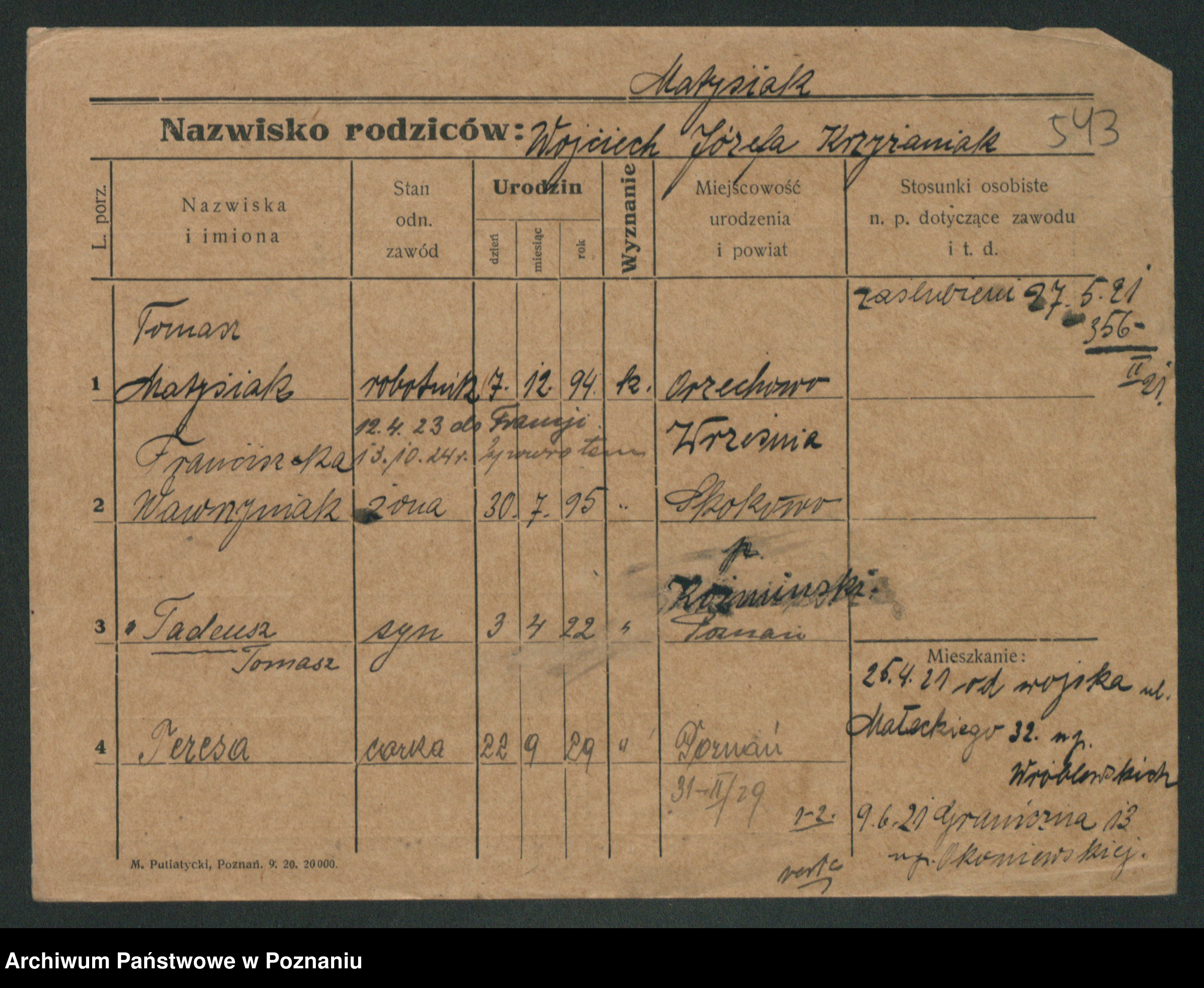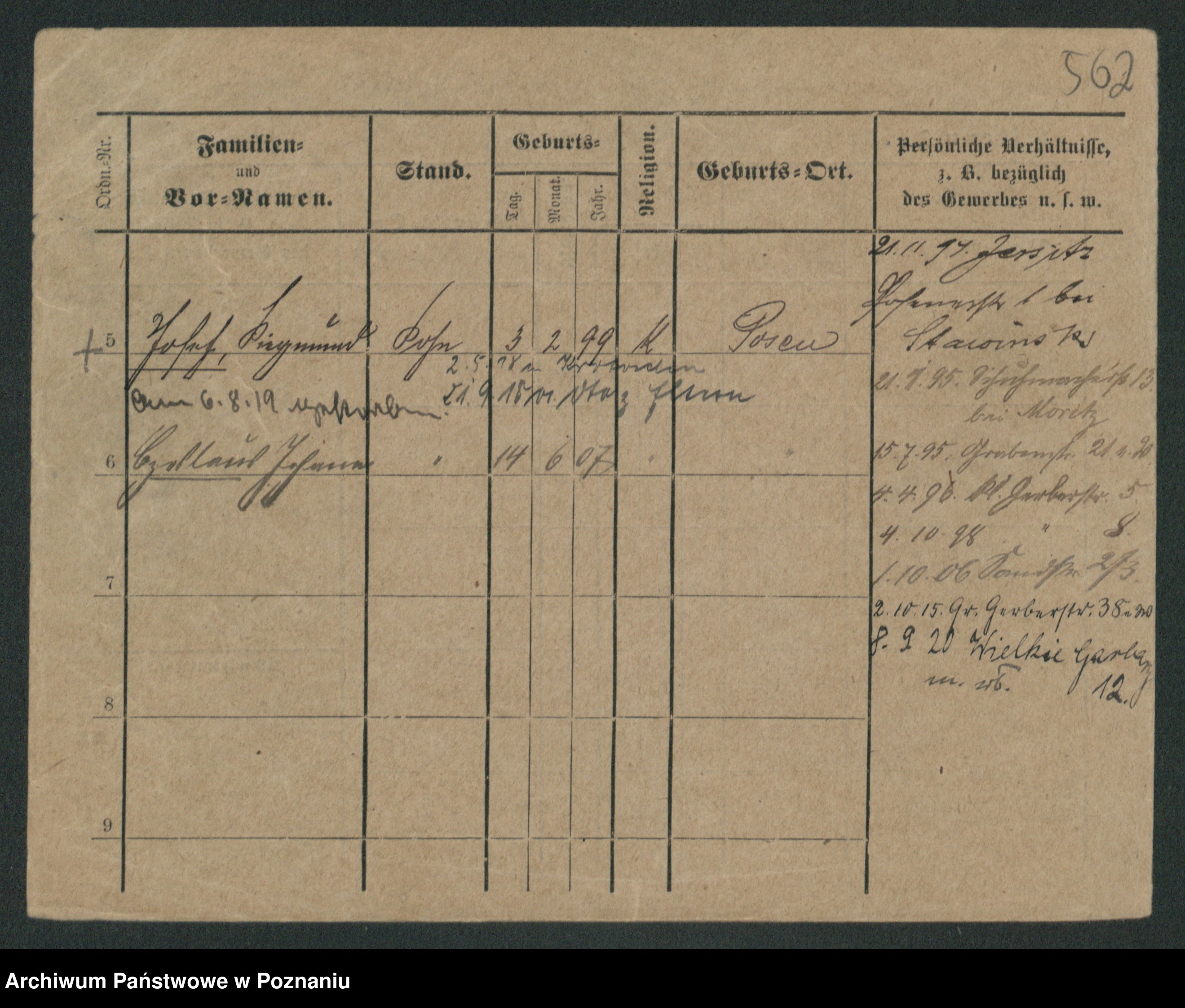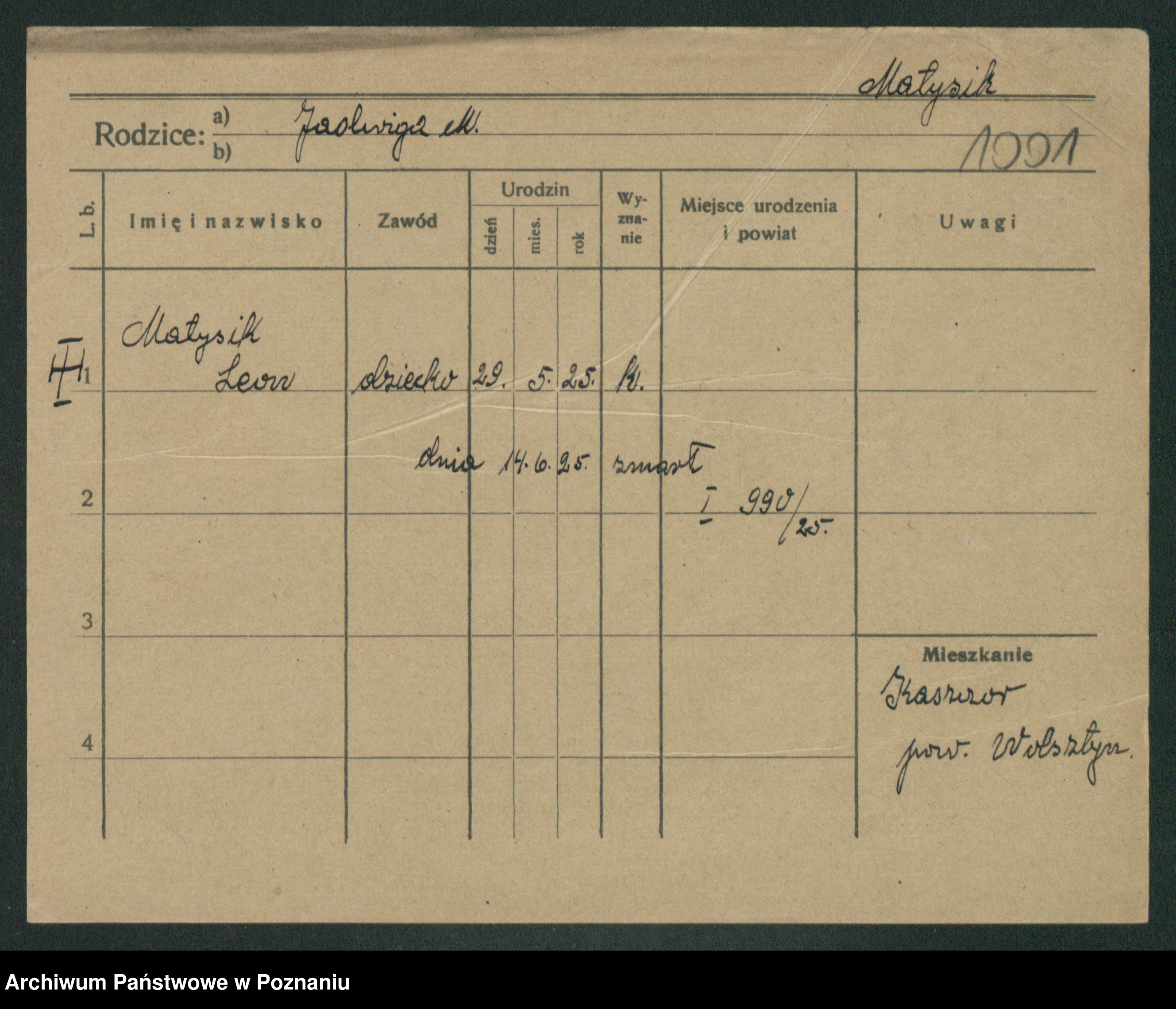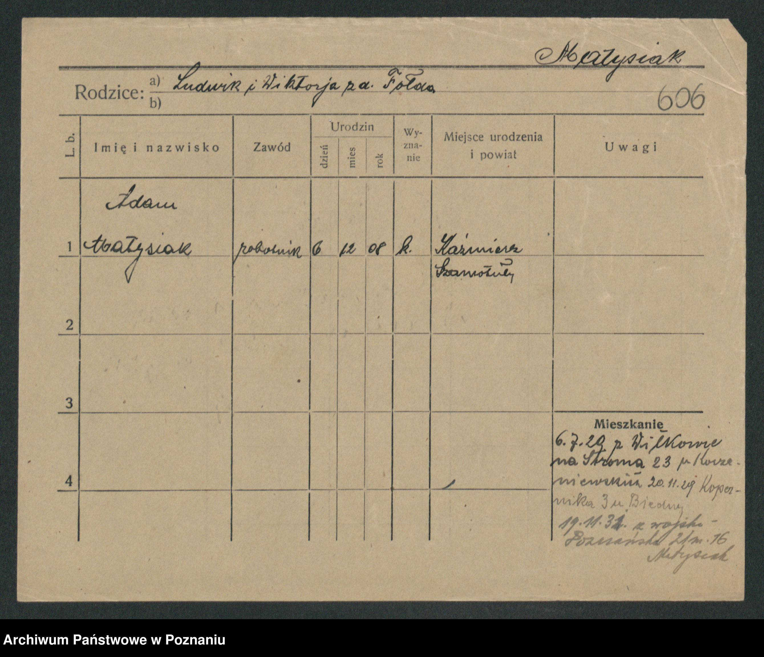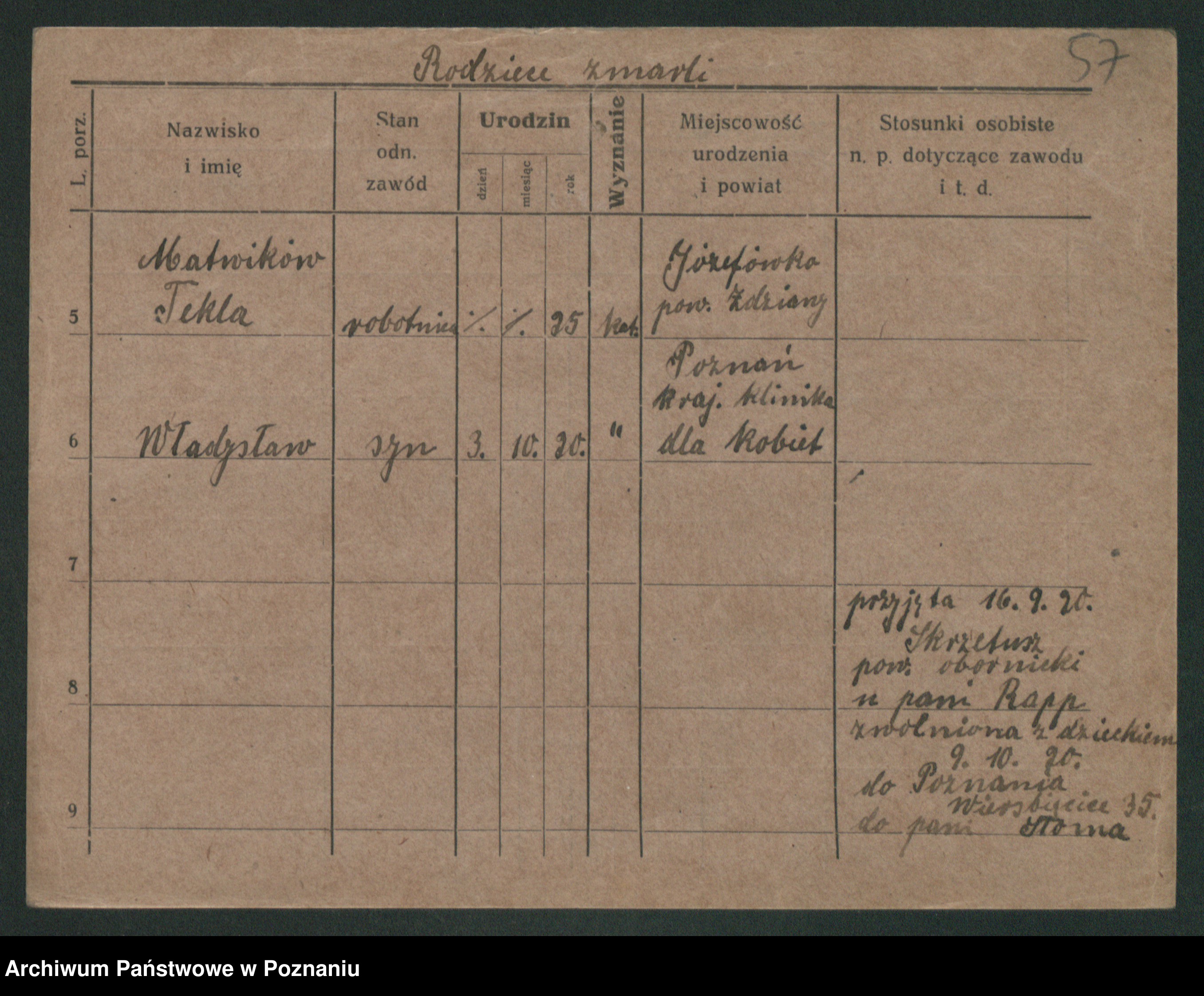 Podgląd karty osobowej dostępny jest po kliknięciu na nazwisko lub ikonkę karty. Można dokonywać powiększenia (ikony na górze) lub przechodzić między kolejnymi skanami (strzałki po bokach).