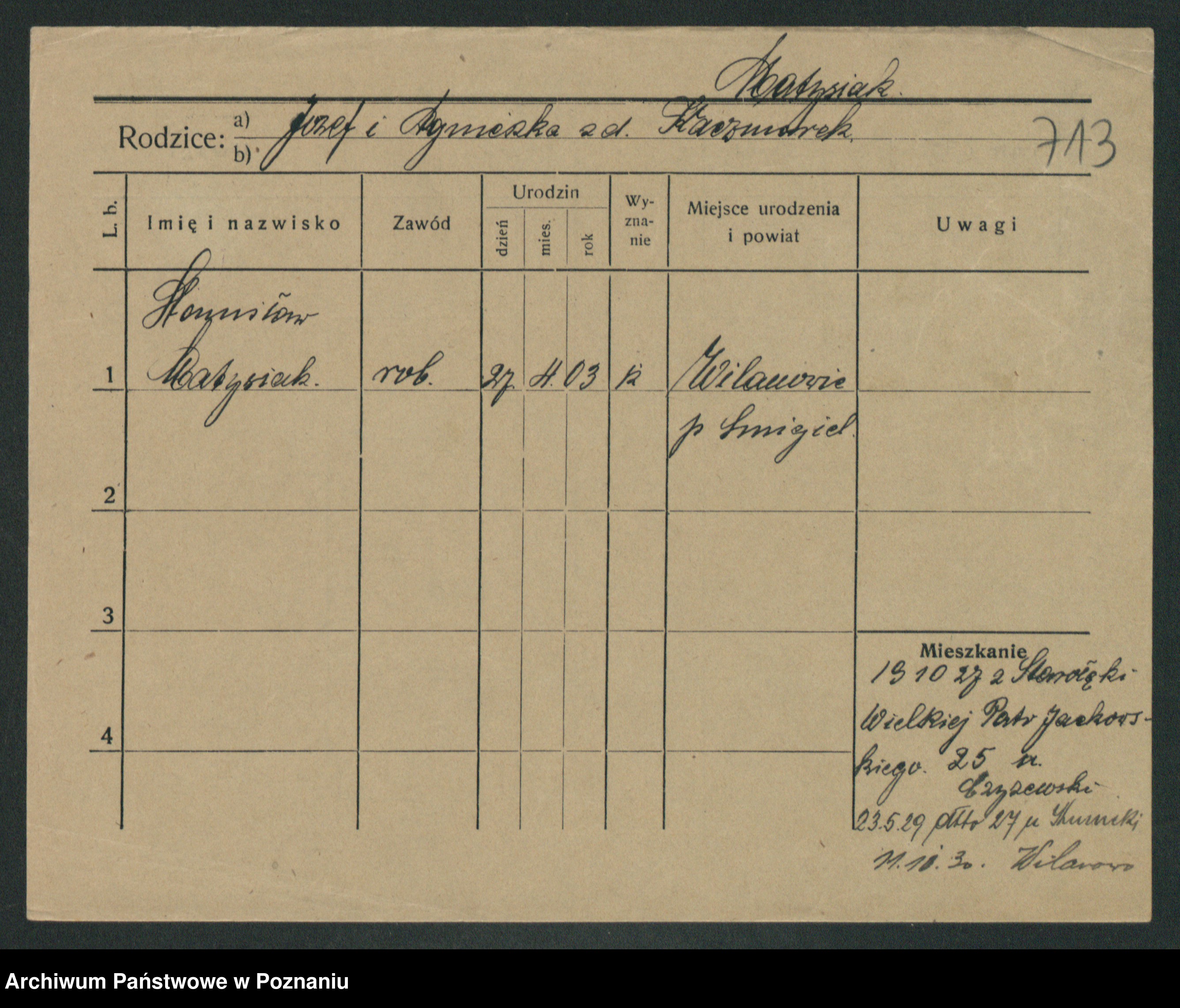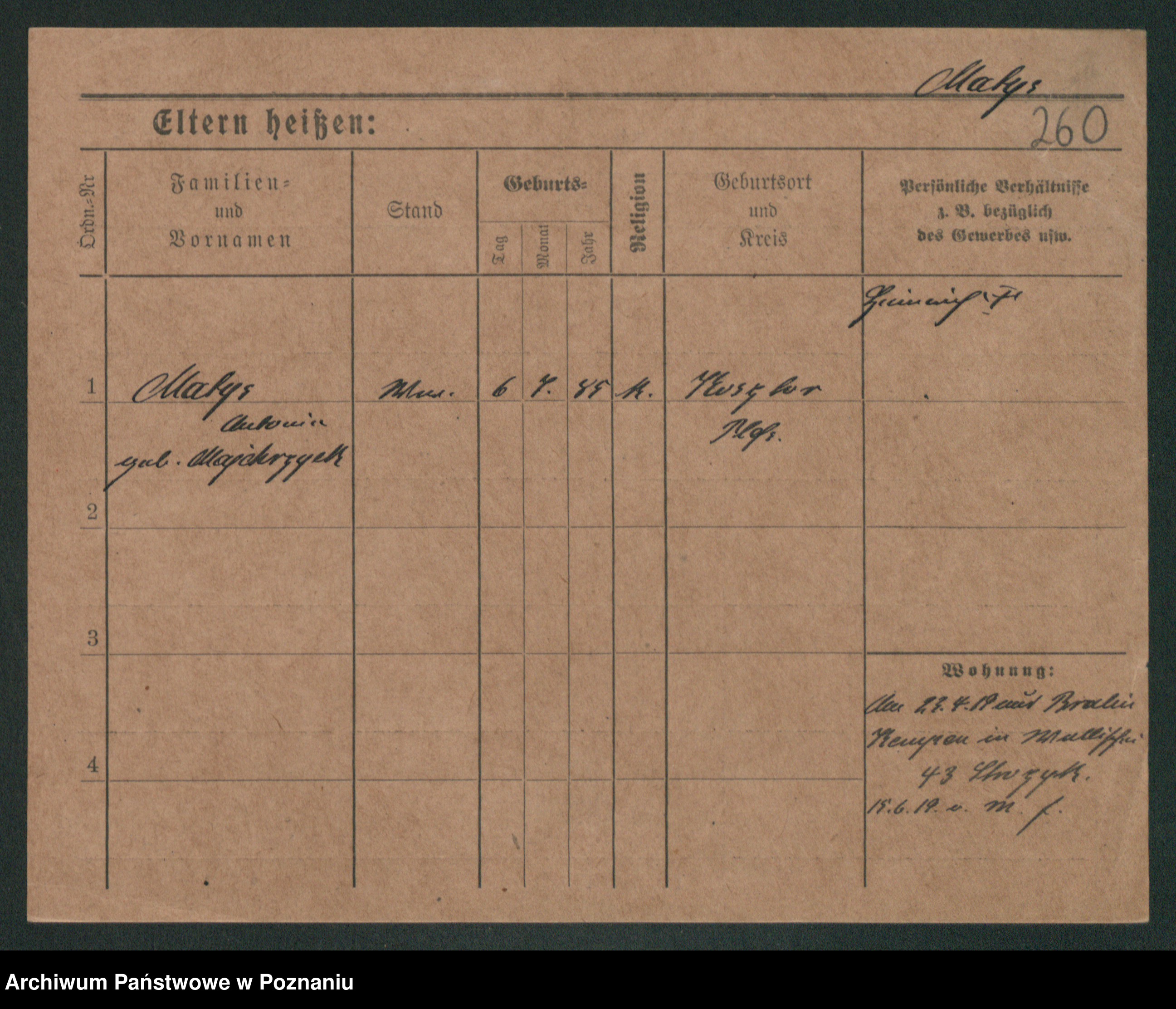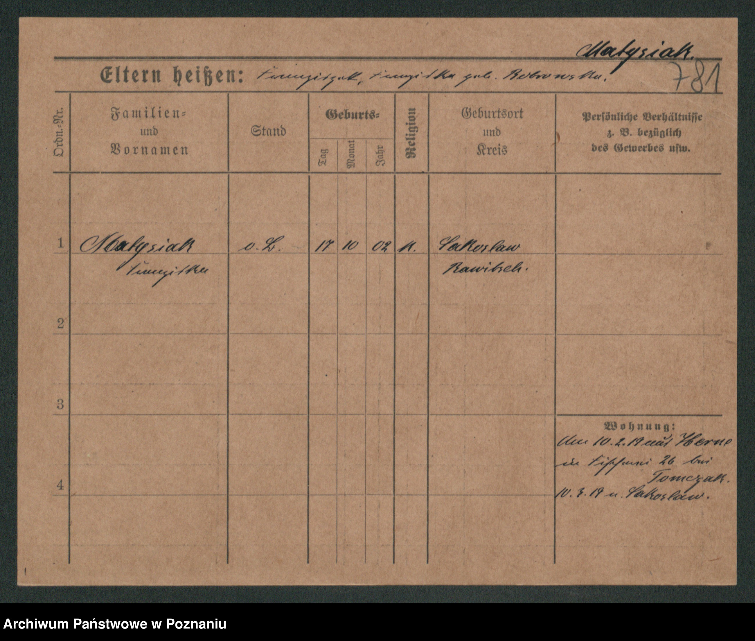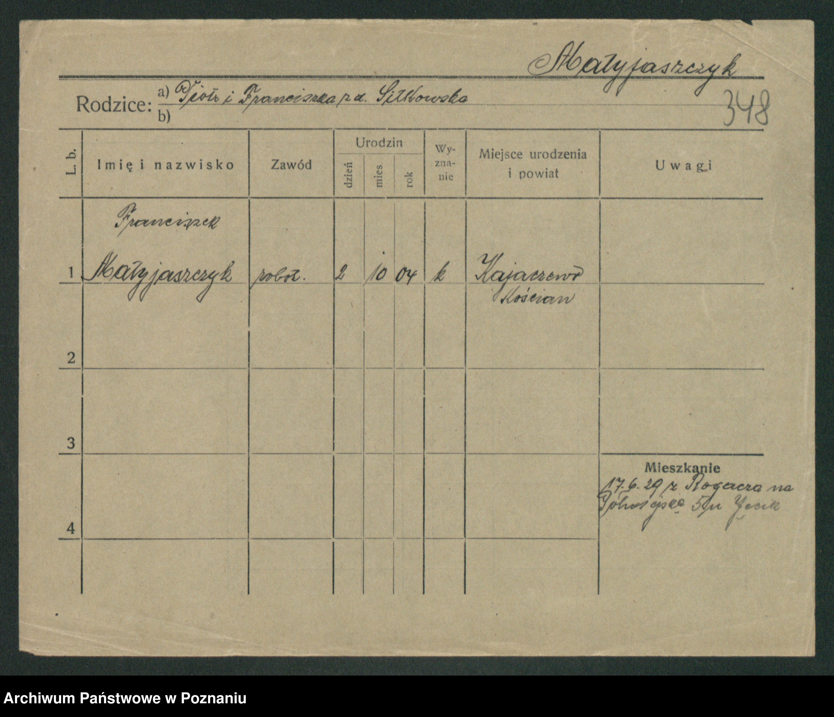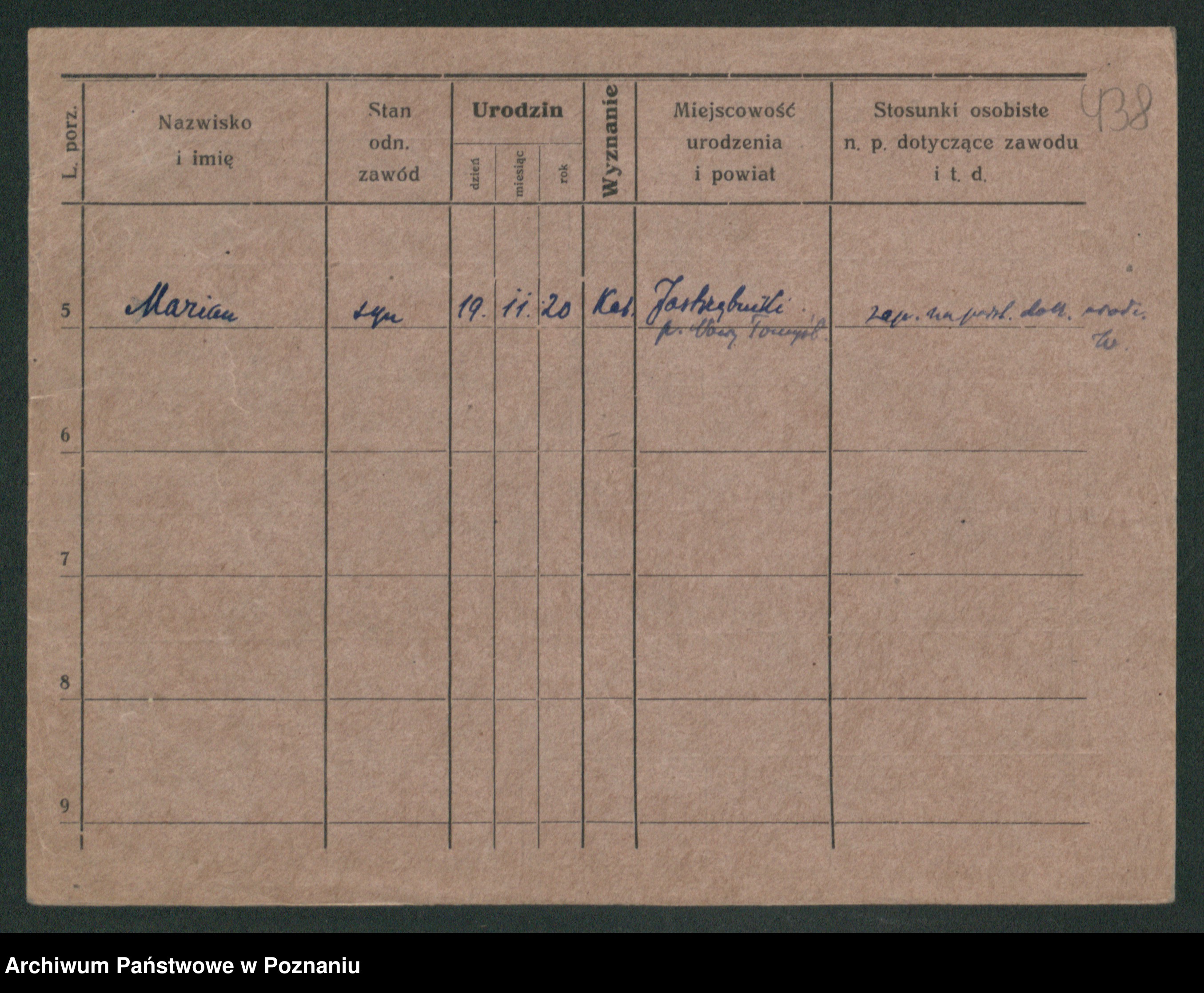 Podgląd karty osobowej dostępny jest po kliknięciu na nazwisko lub ikonkę karty. Można dokonywać powiększenia (ikony na górze) lub przechodzić między kolejnymi skanami (strzałki po bokach).