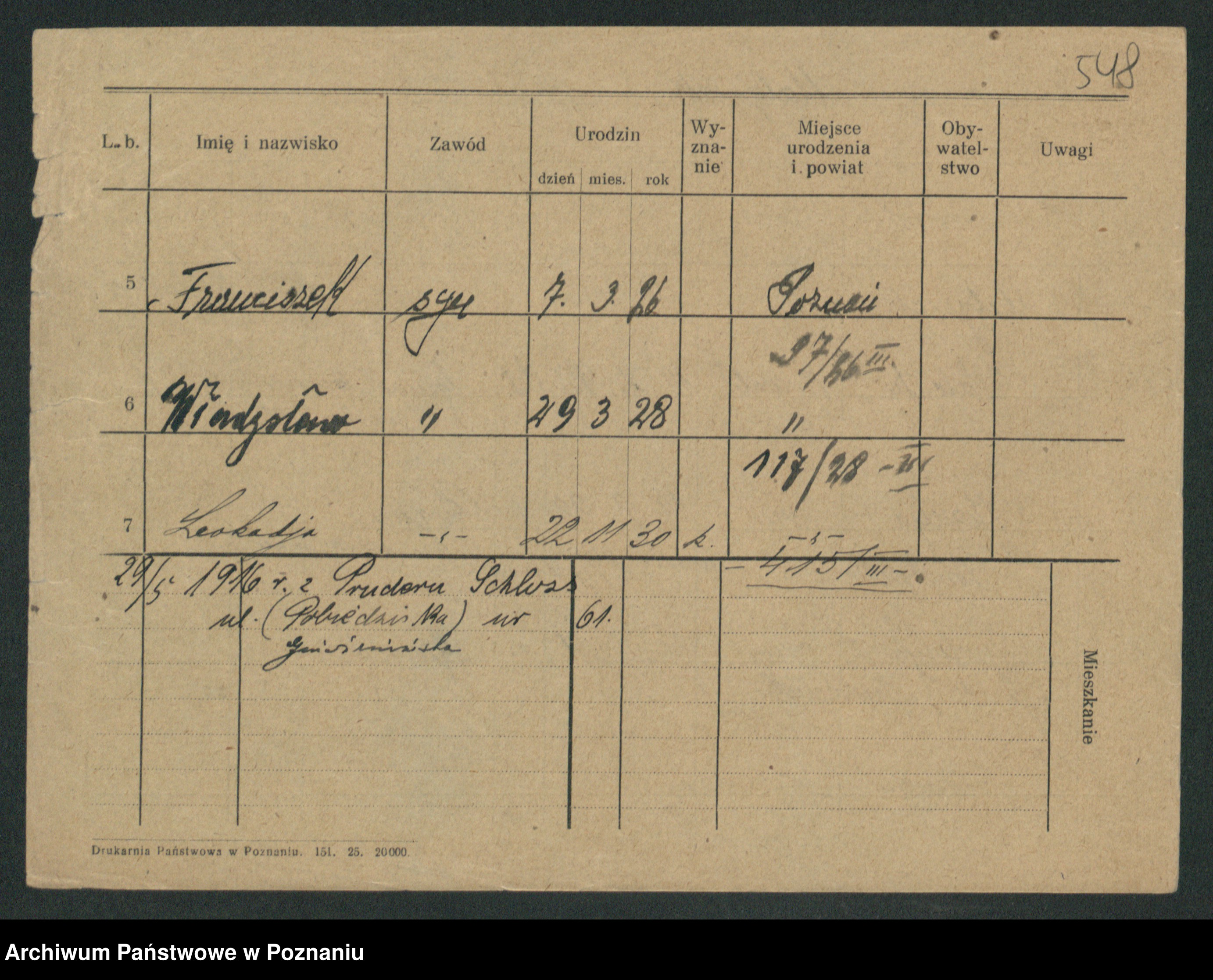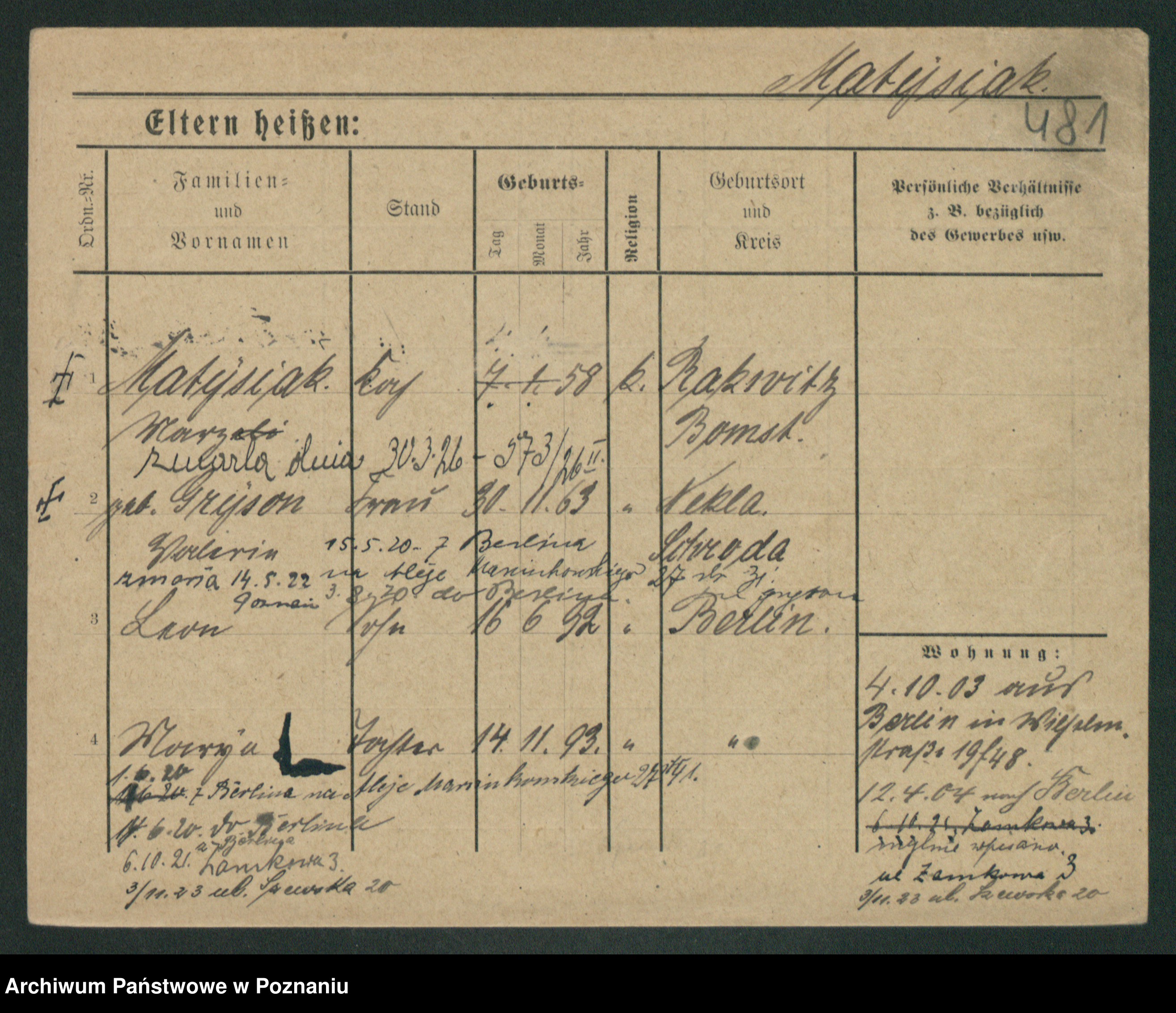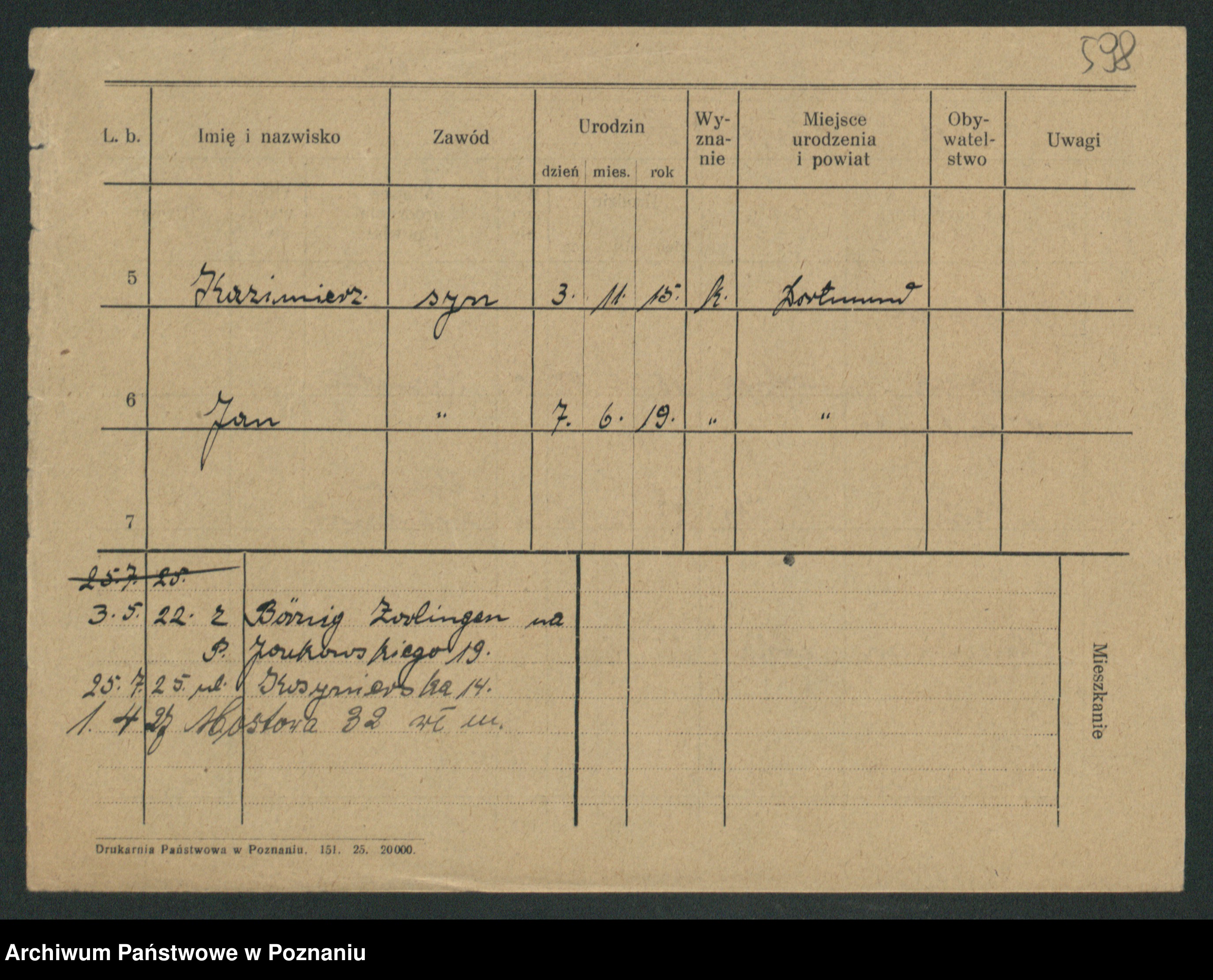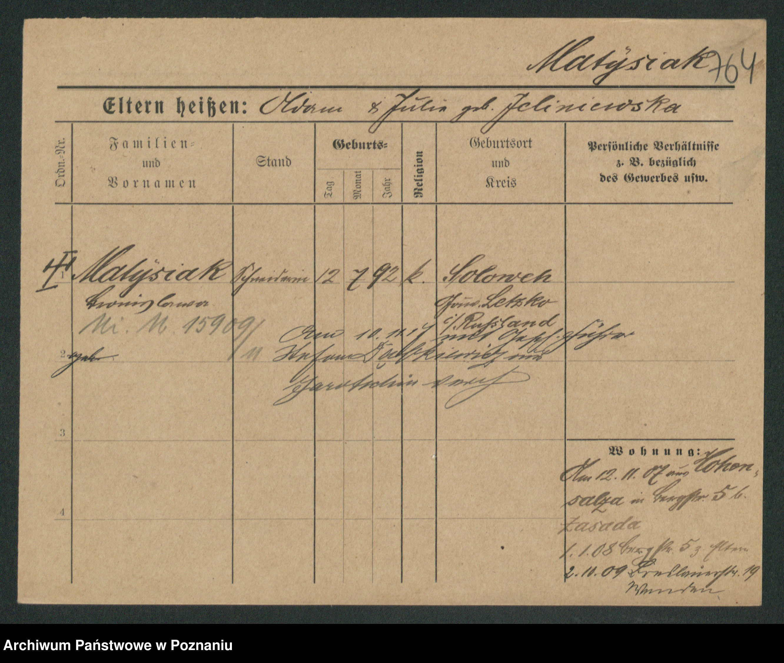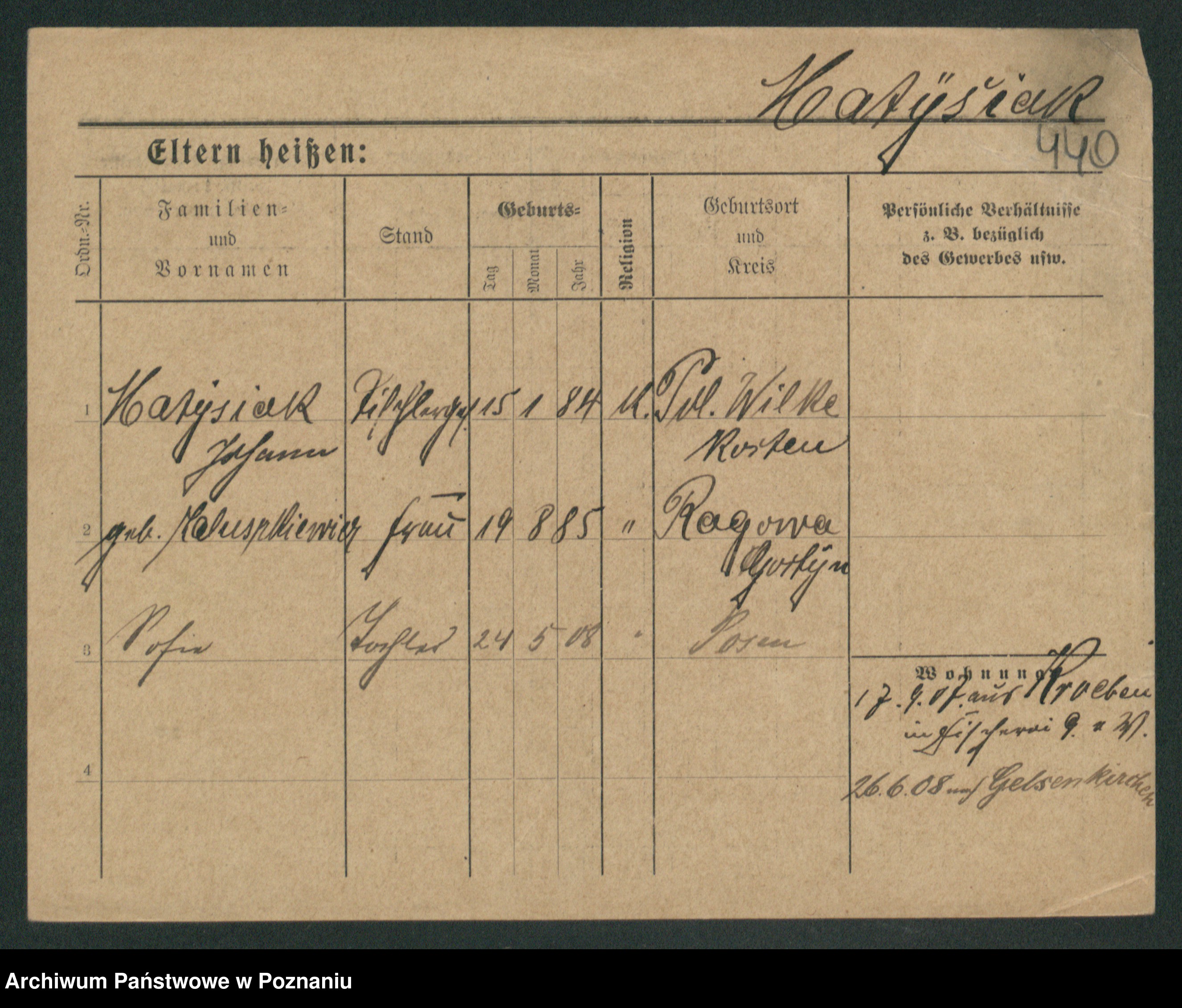 Podgląd karty osobowej dostępny jest po kliknięciu na nazwisko lub ikonkę karty. Można dokonywać powiększenia (ikony na górze) lub przechodzić między kolejnymi skanami (strzałki po bokach).