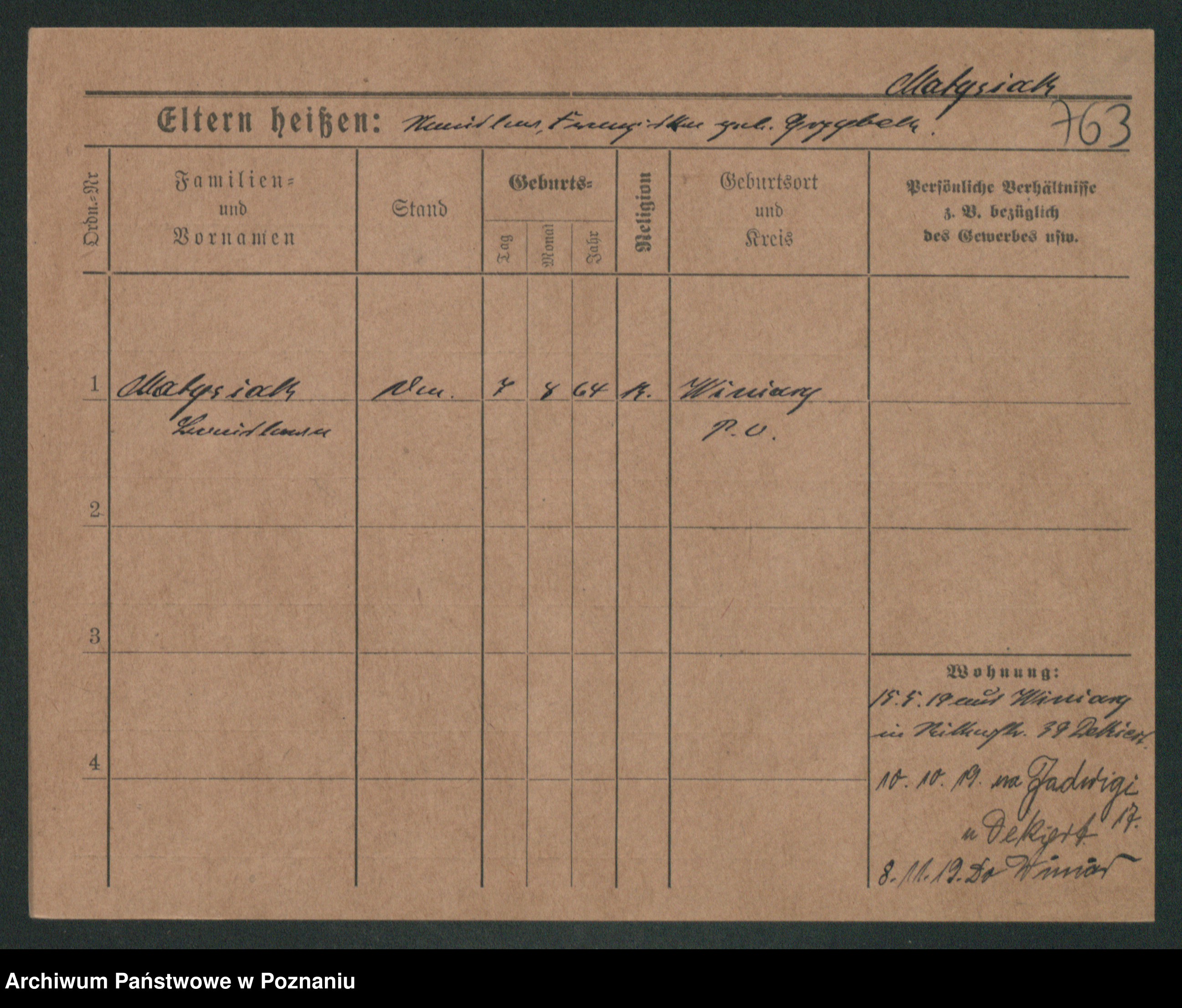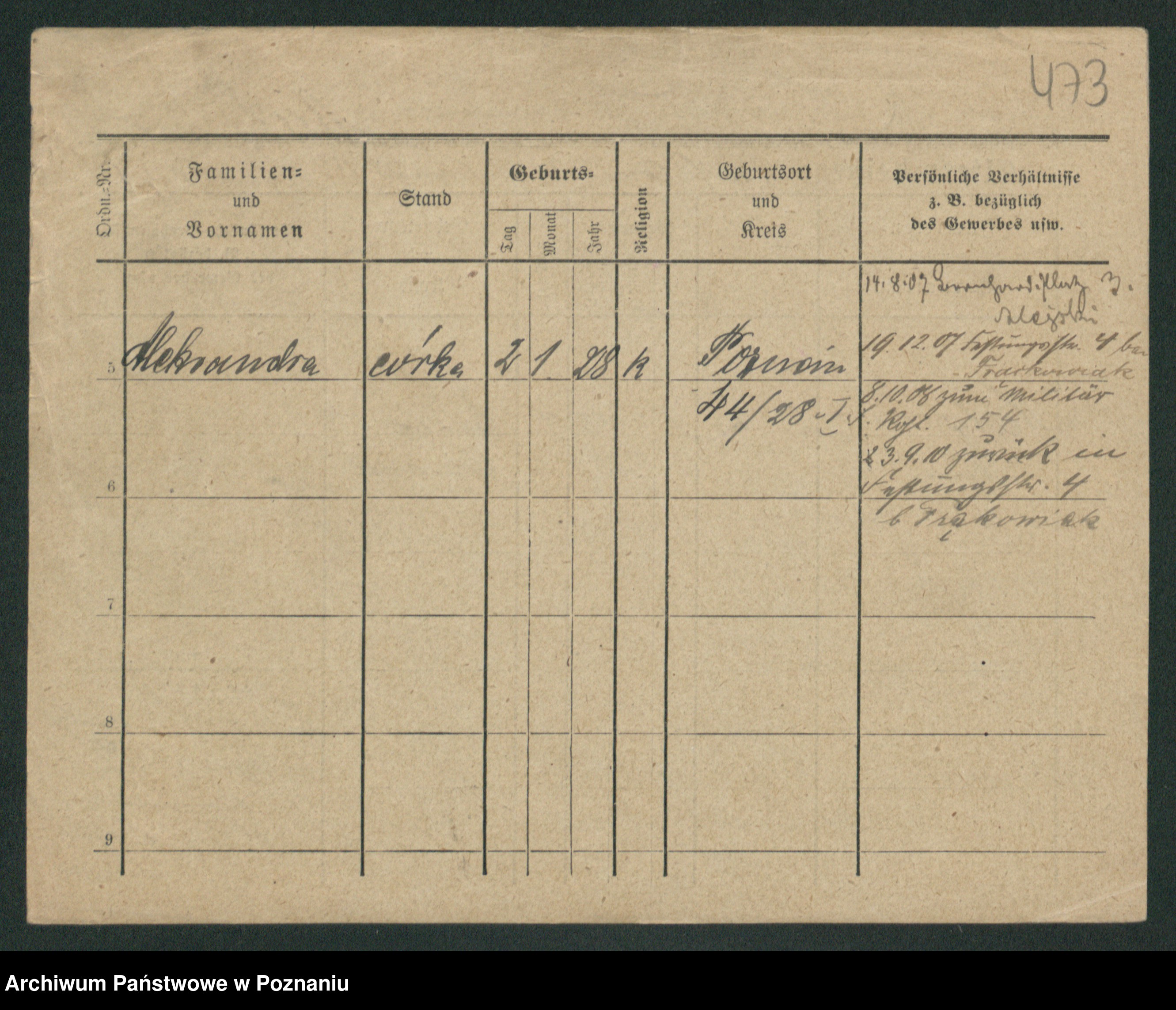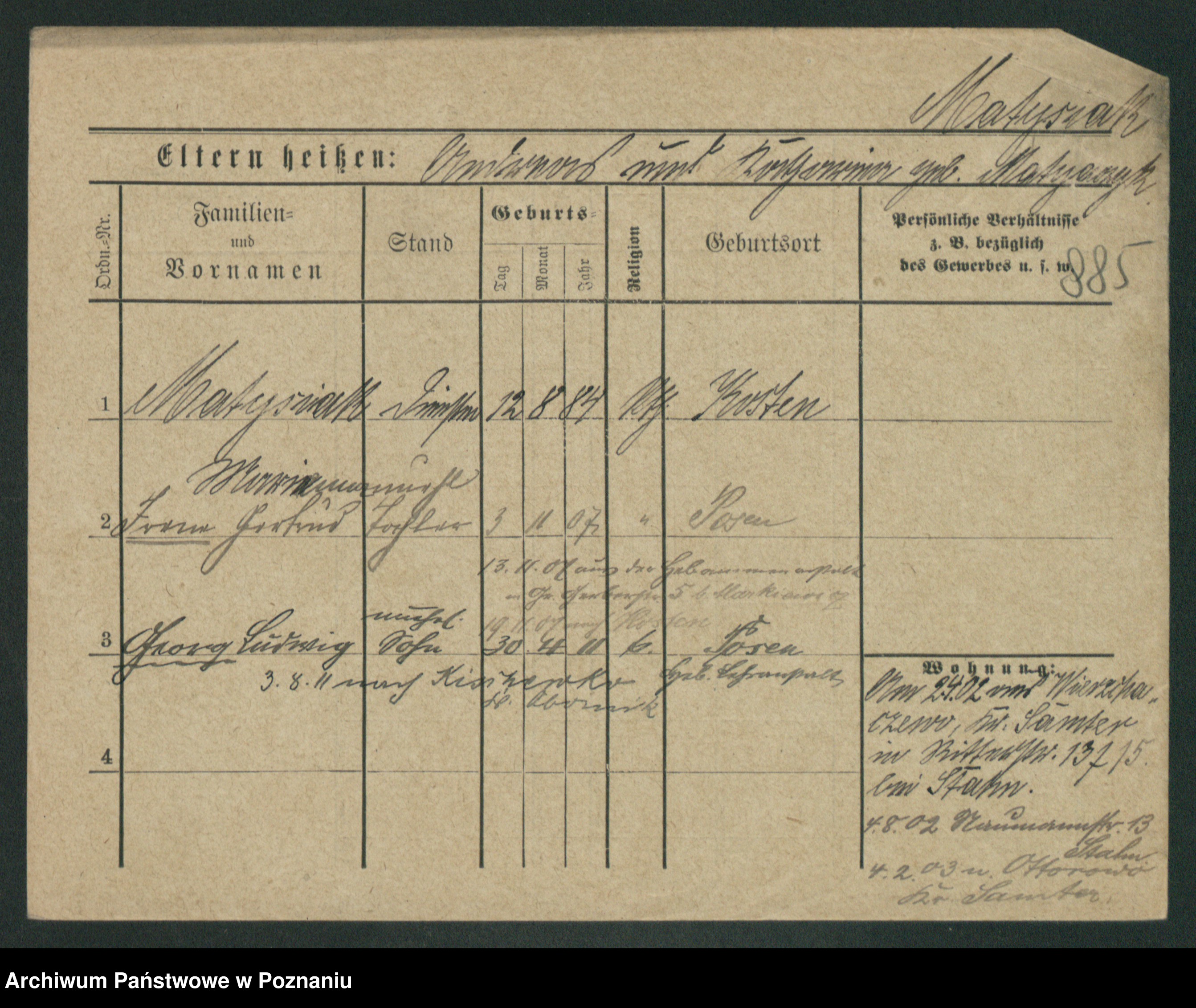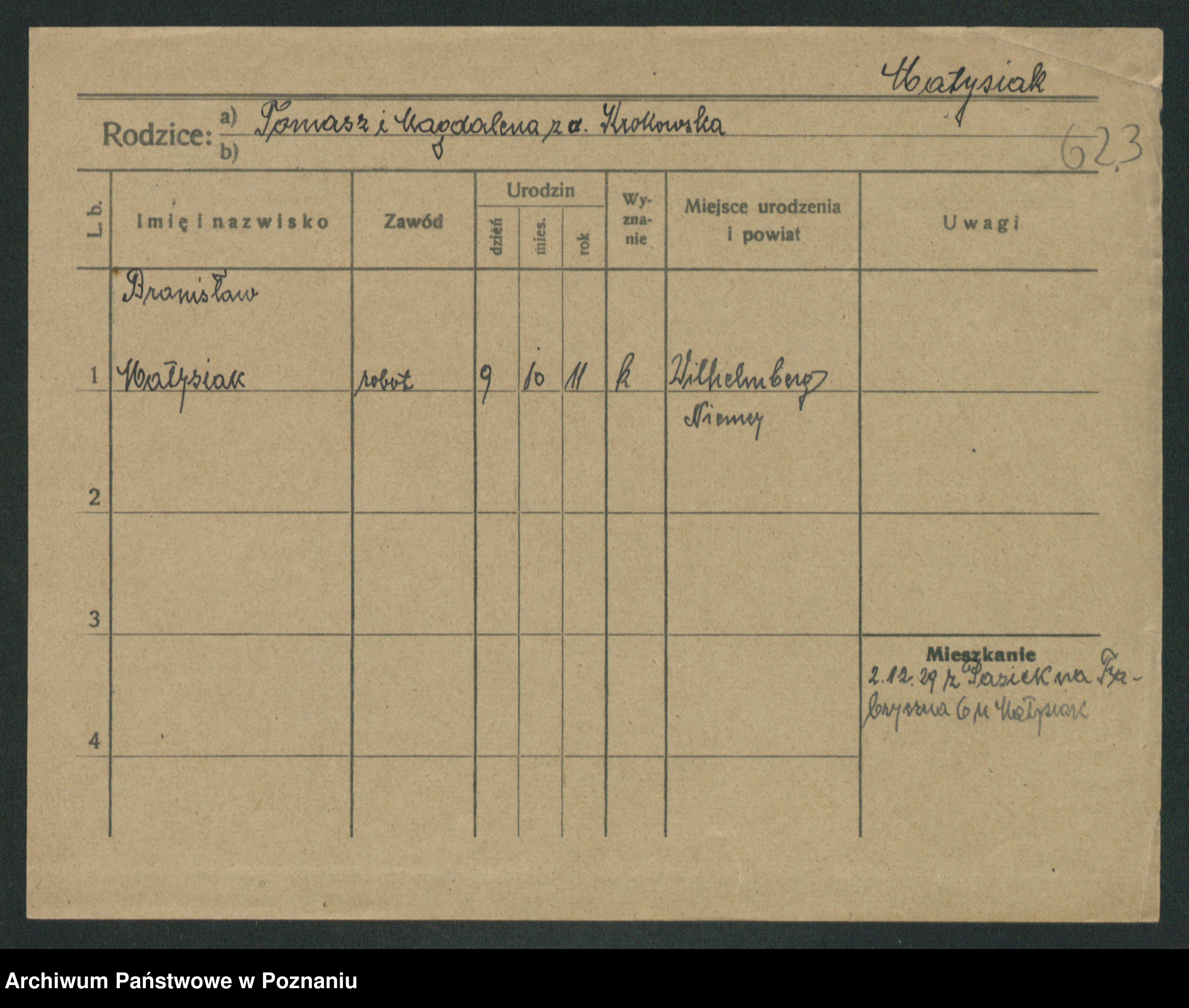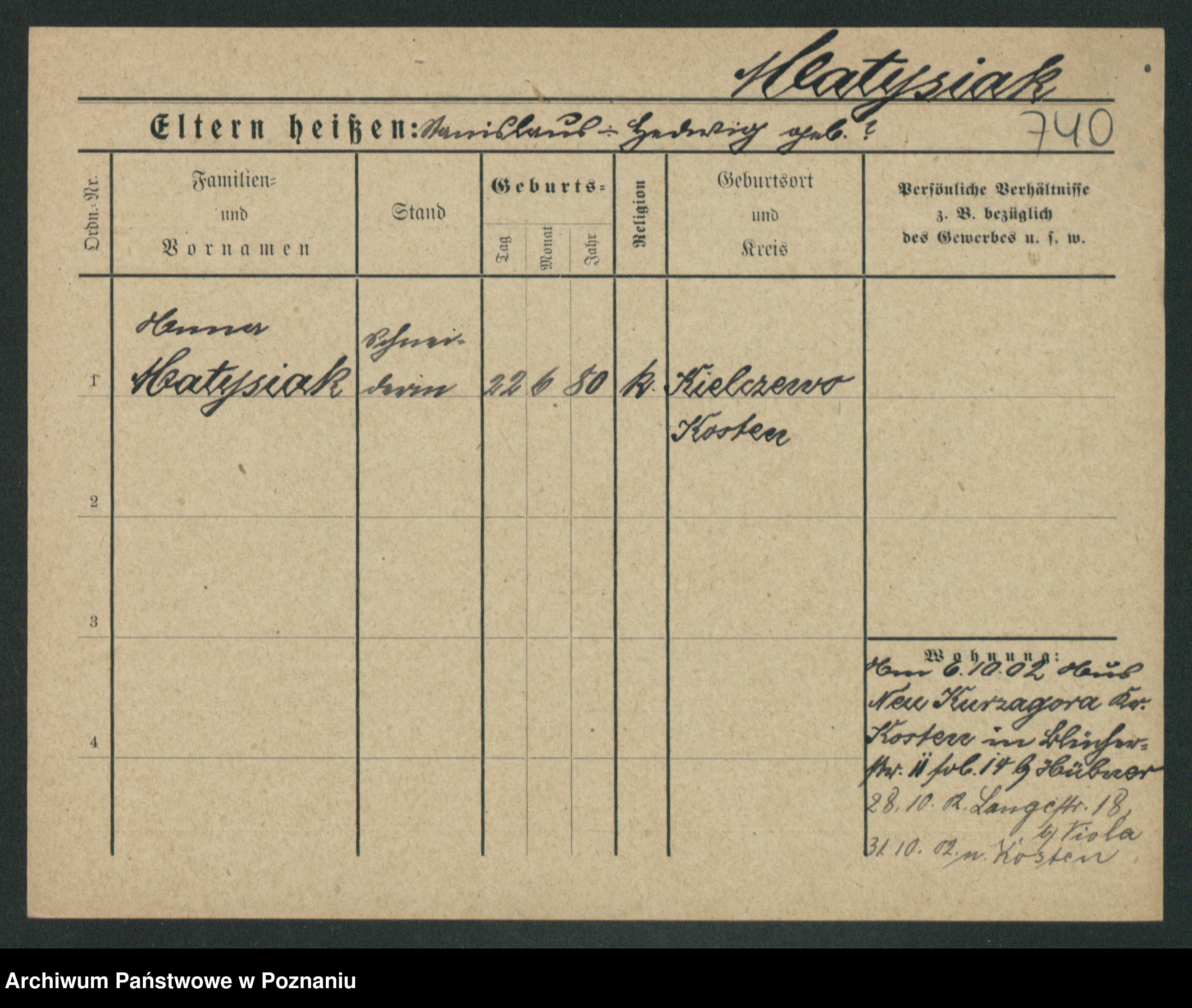 Podgląd karty osobowej dostępny jest po kliknięciu na nazwisko lub ikonkę karty. Można dokonywać powiększenia (ikony na górze) lub przechodzić między kolejnymi skanami (strzałki po bokach).