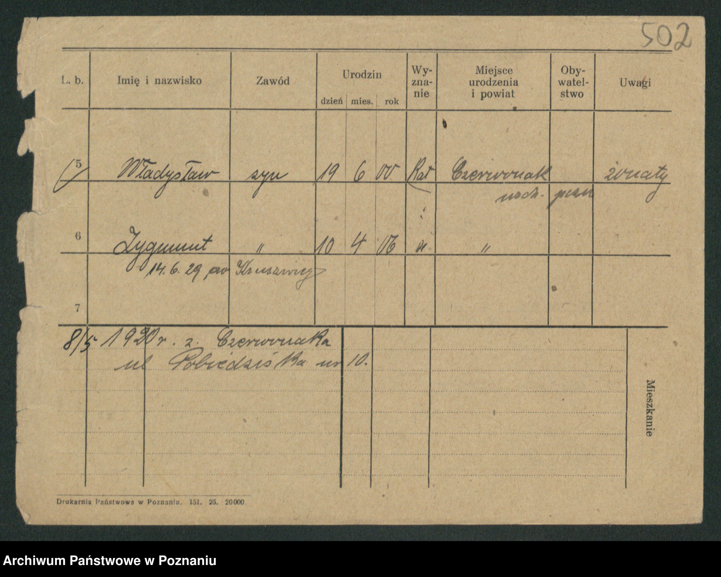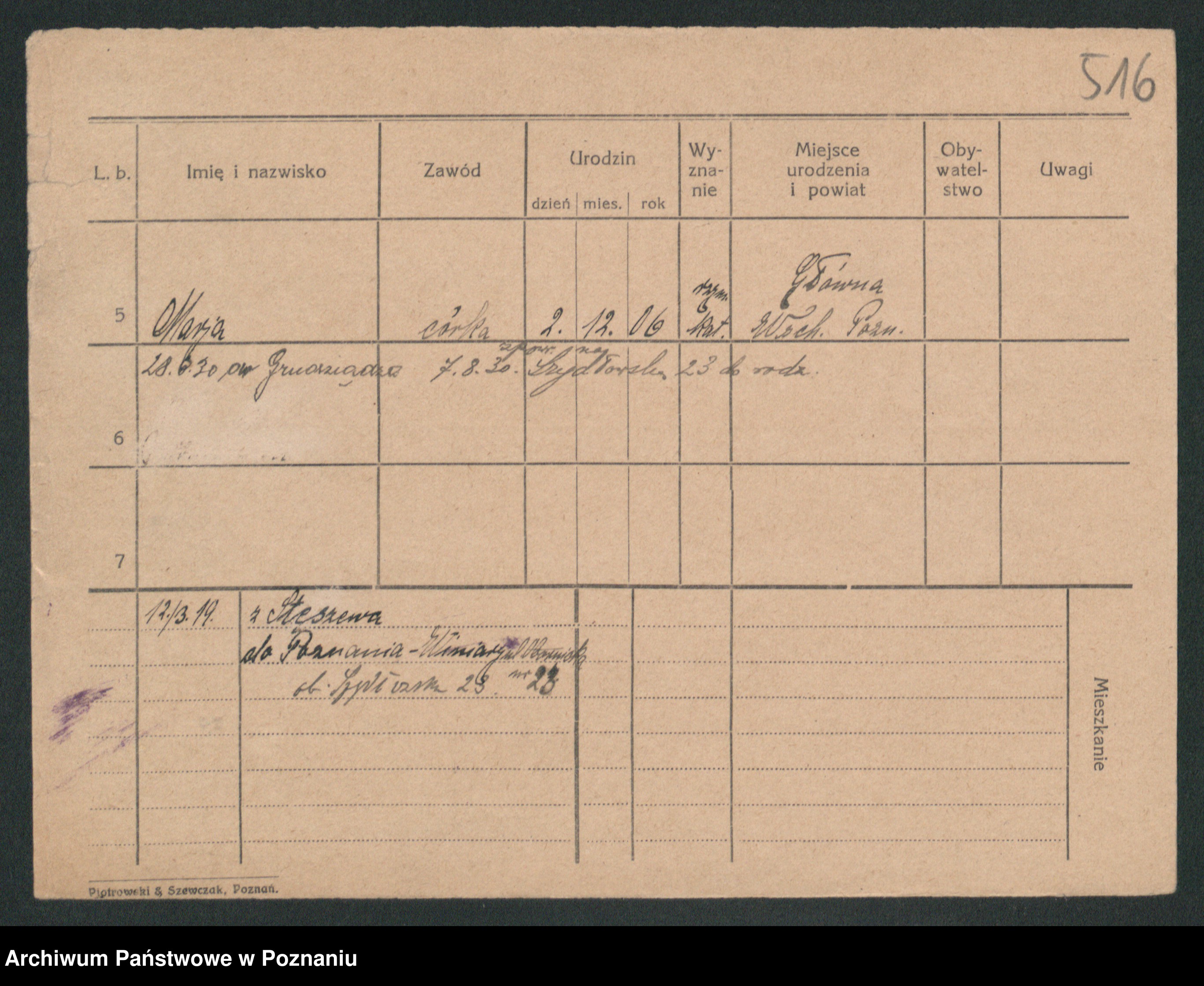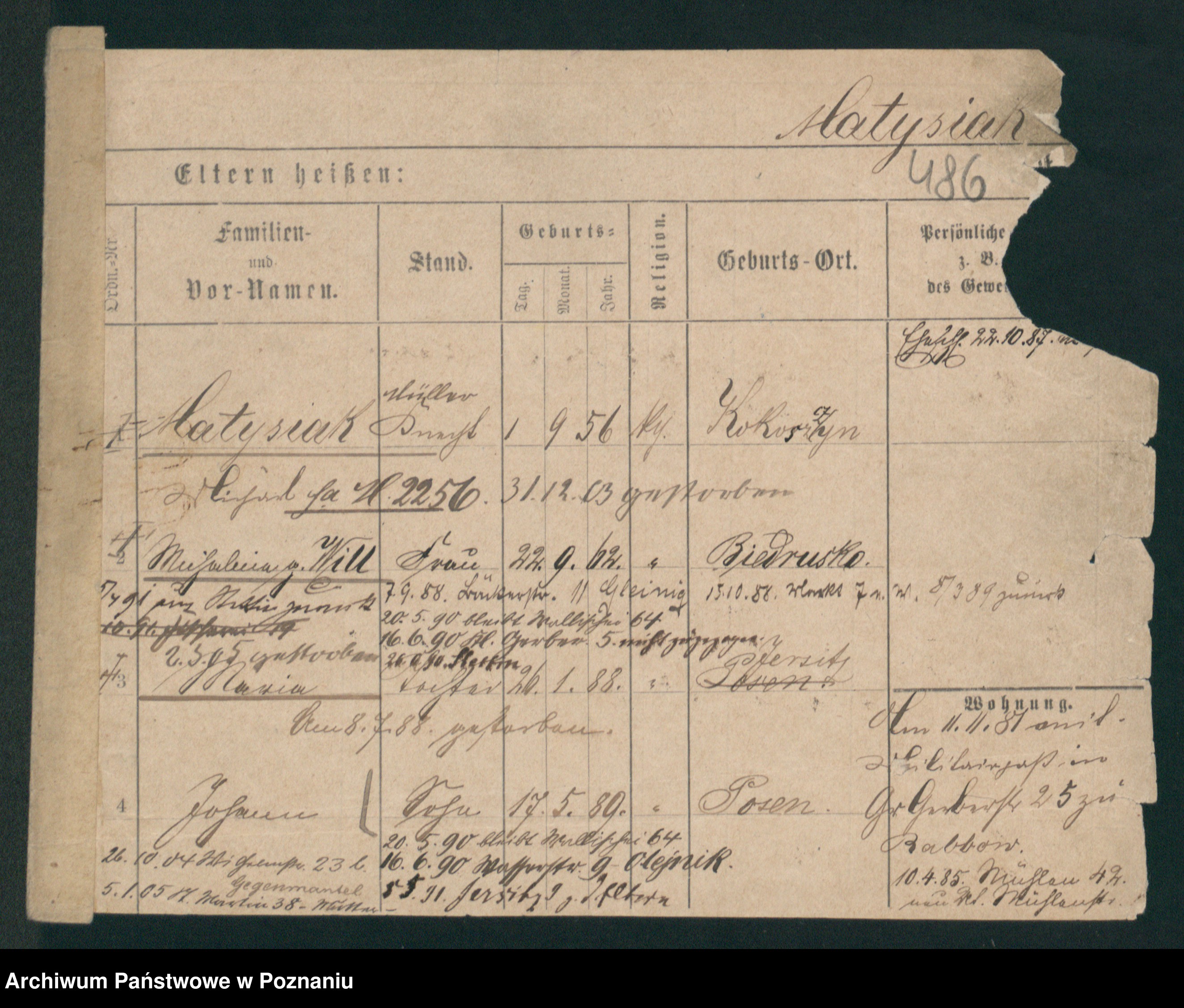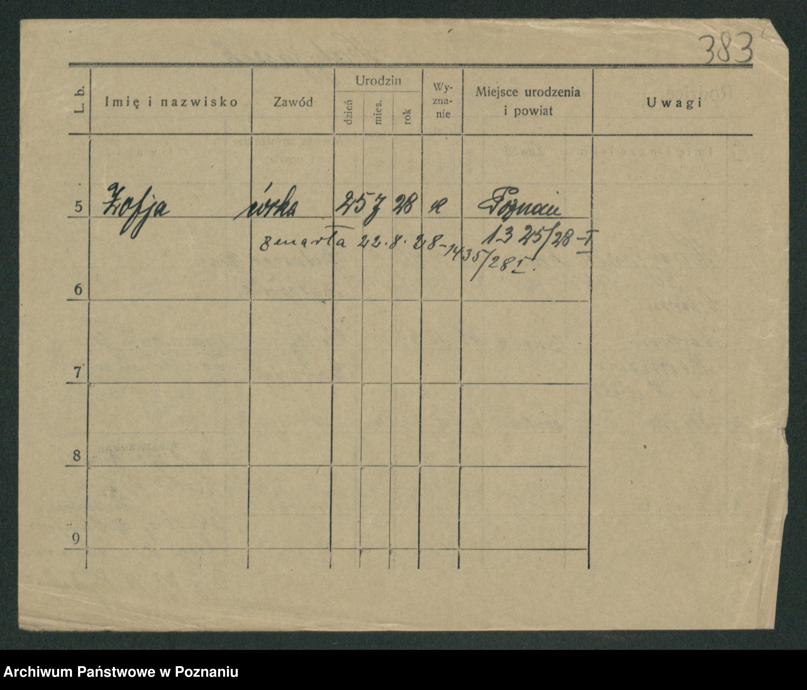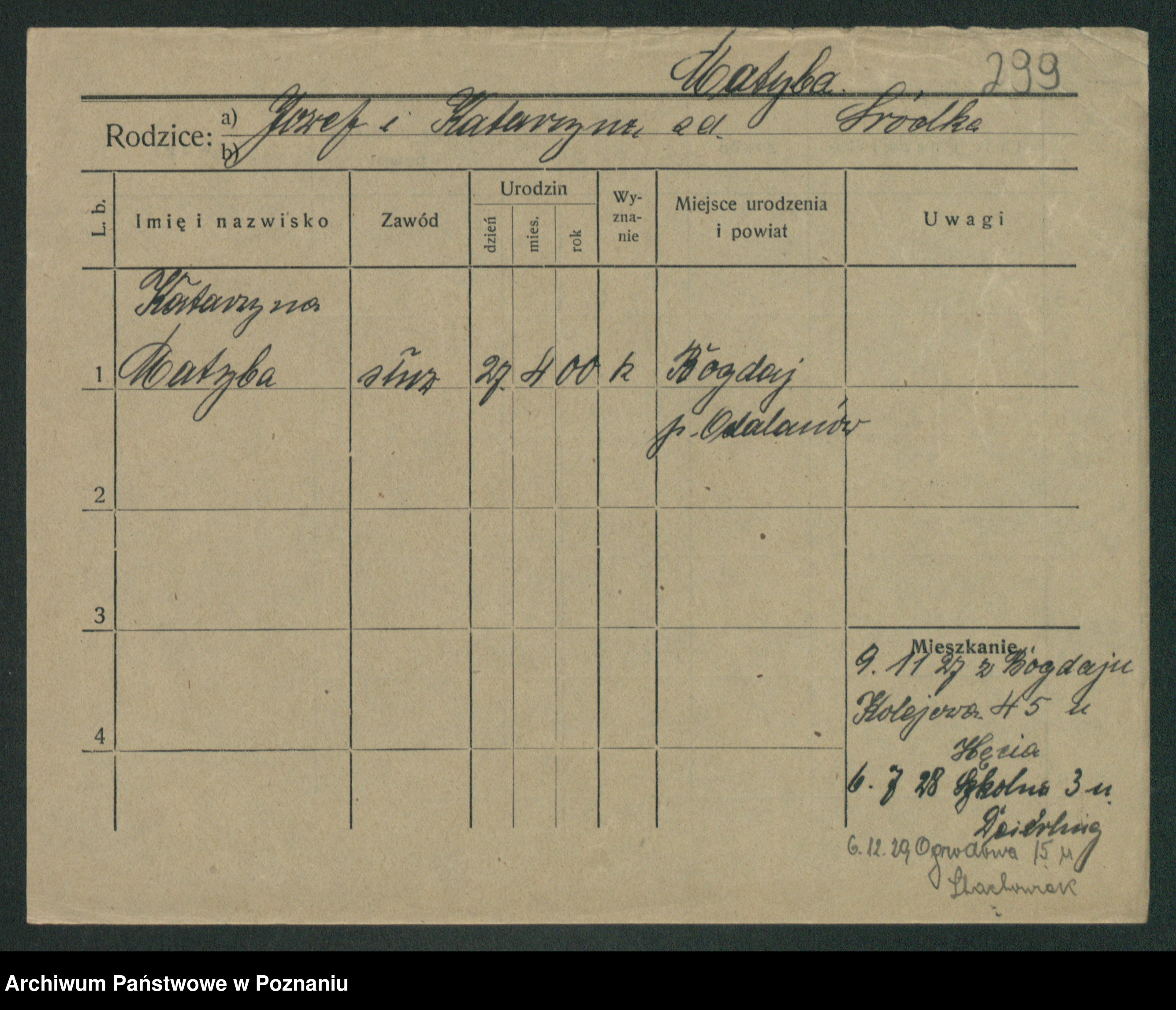 Podgląd karty osobowej dostępny jest po kliknięciu na nazwisko lub ikonkę karty. Można dokonywać powiększenia (ikony na górze) lub przechodzić między kolejnymi skanami (strzałki po bokach).
