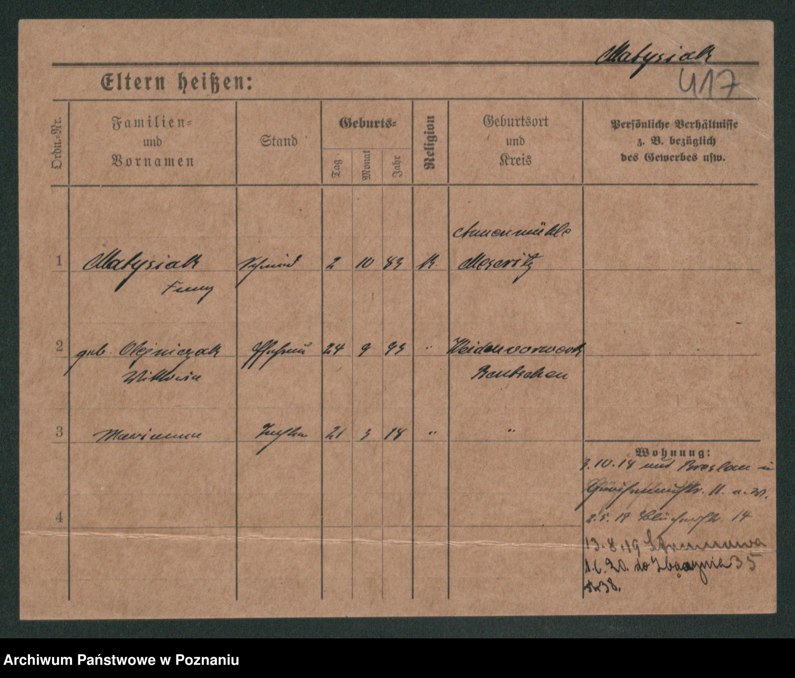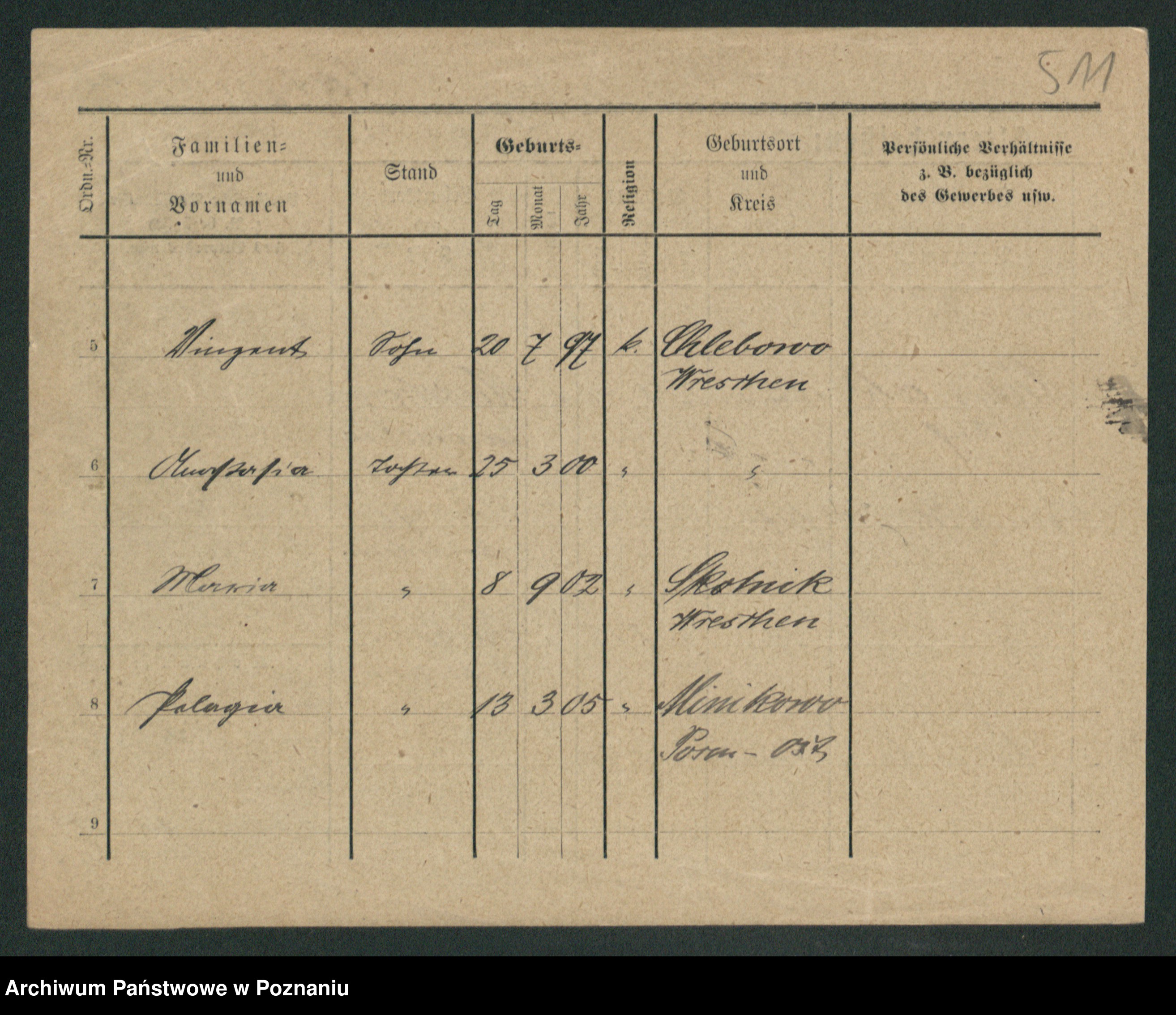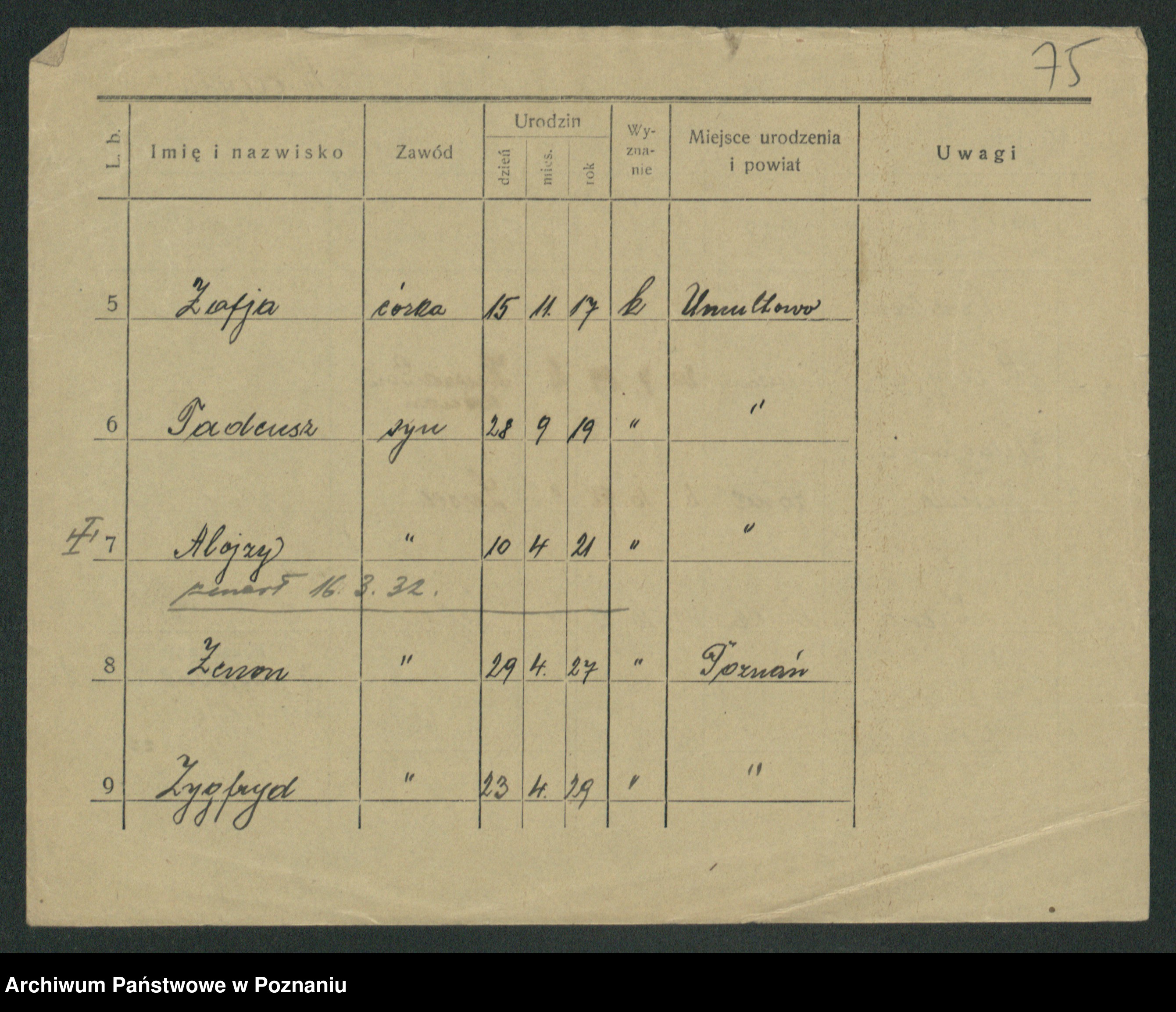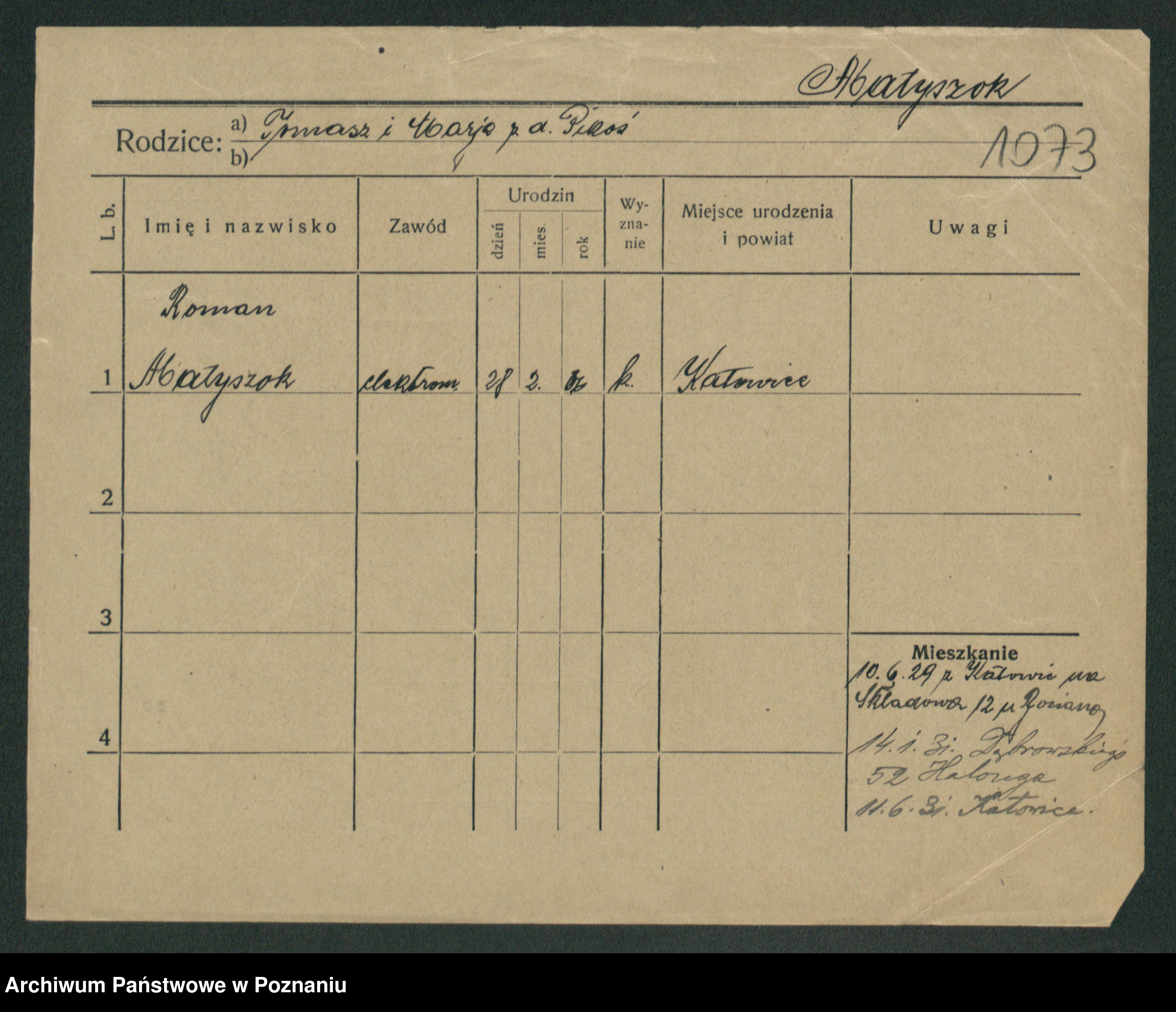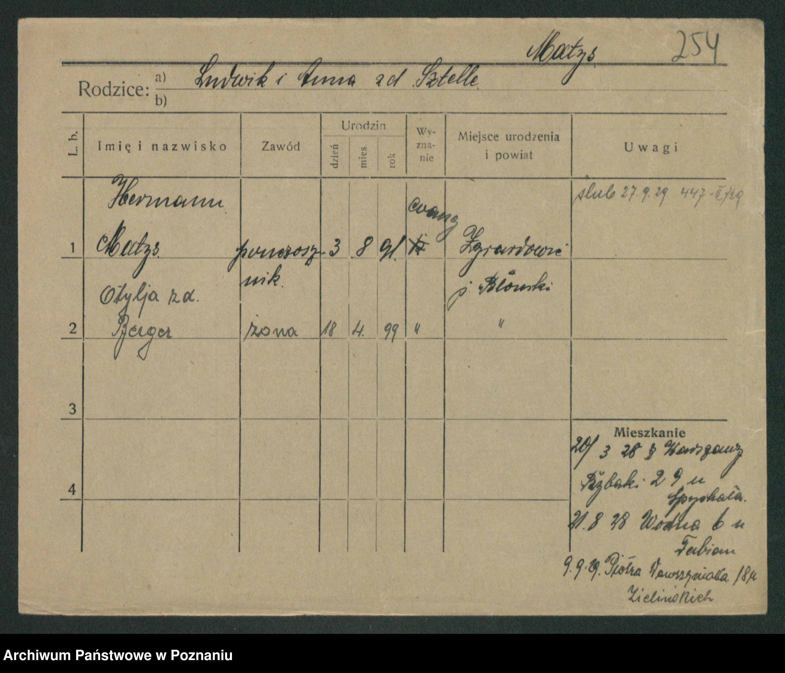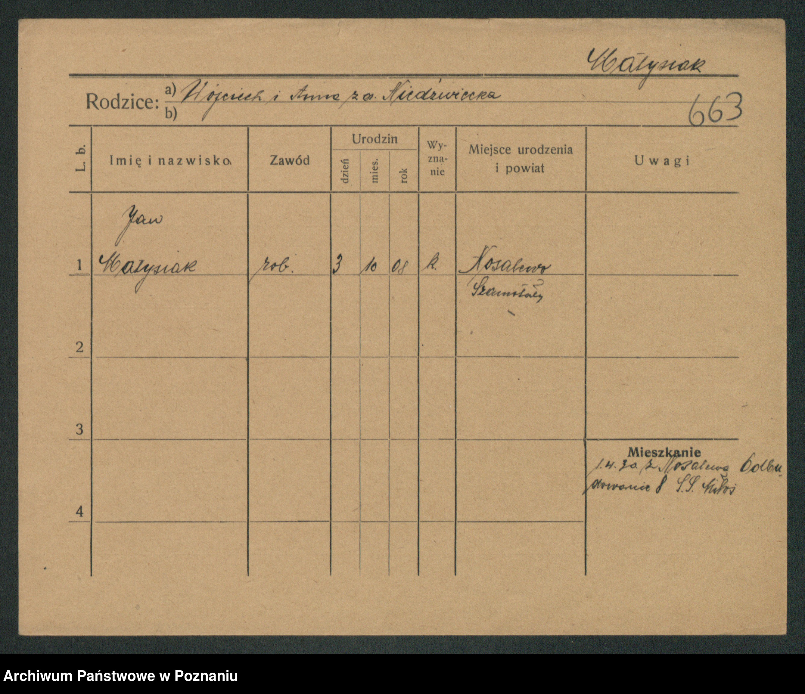 Podgląd karty osobowej dostępny jest po kliknięciu na nazwisko lub ikonkę karty. Można dokonywać powiększenia (ikony na górze) lub przechodzić między kolejnymi skanami (strzałki po bokach).