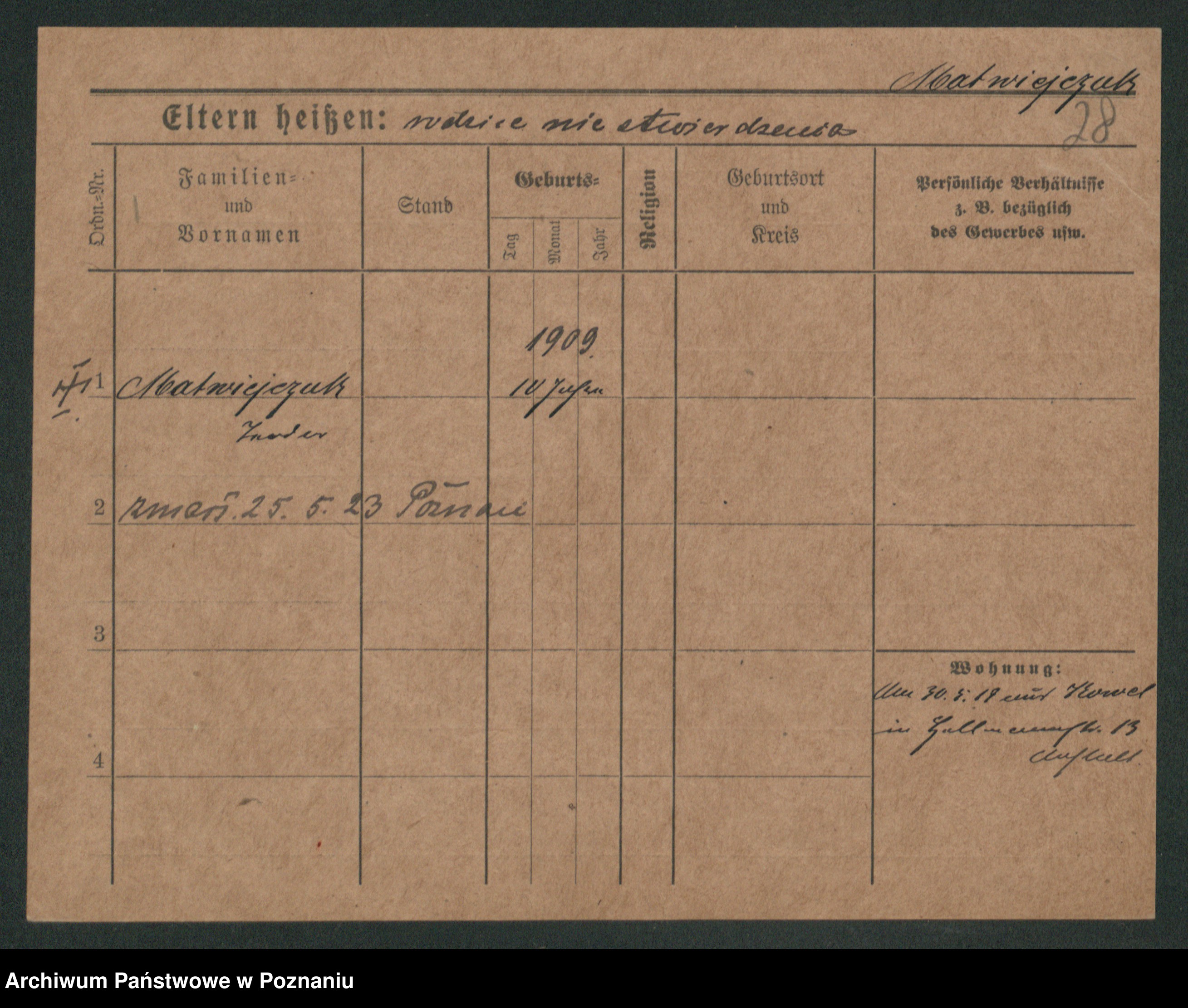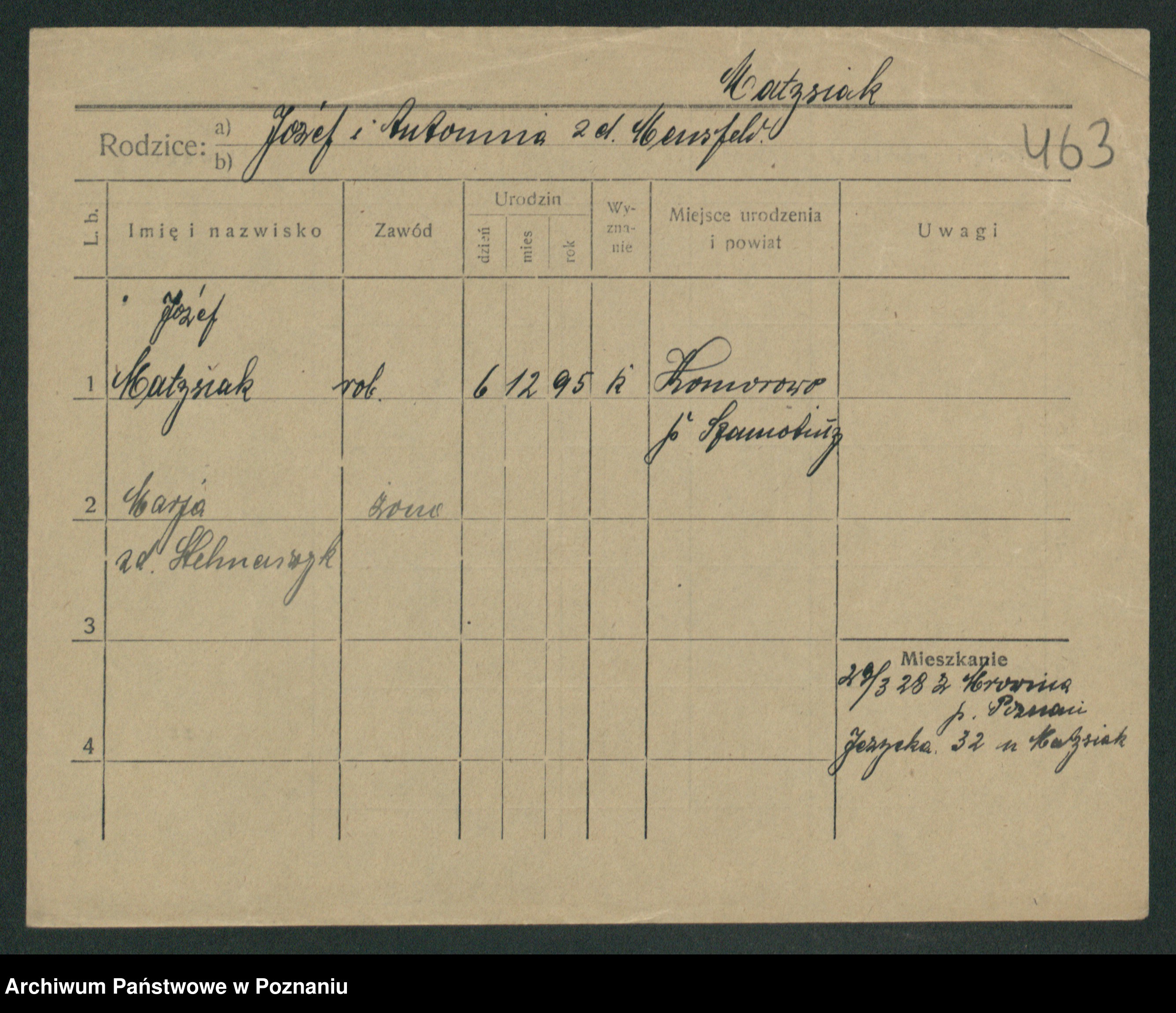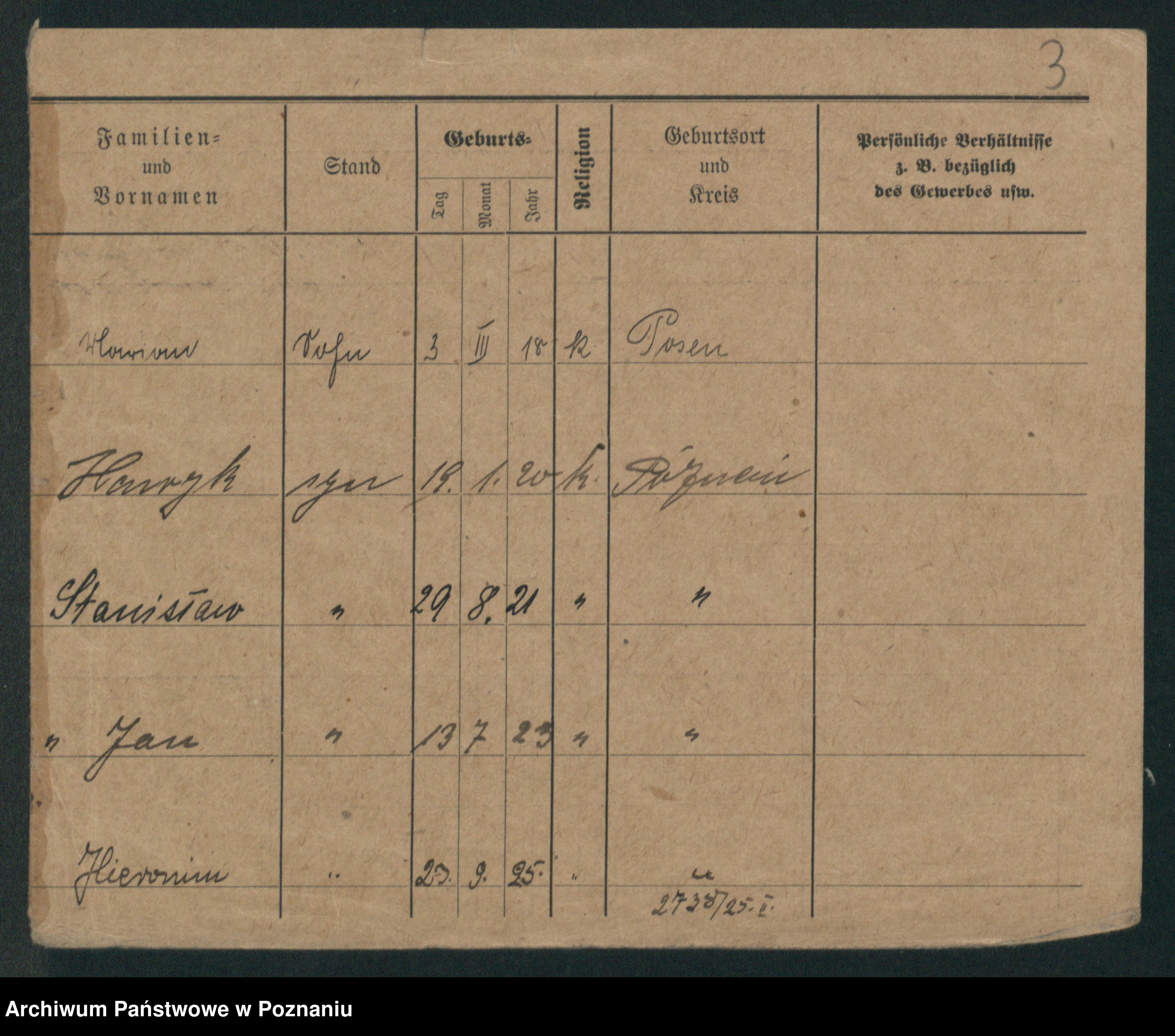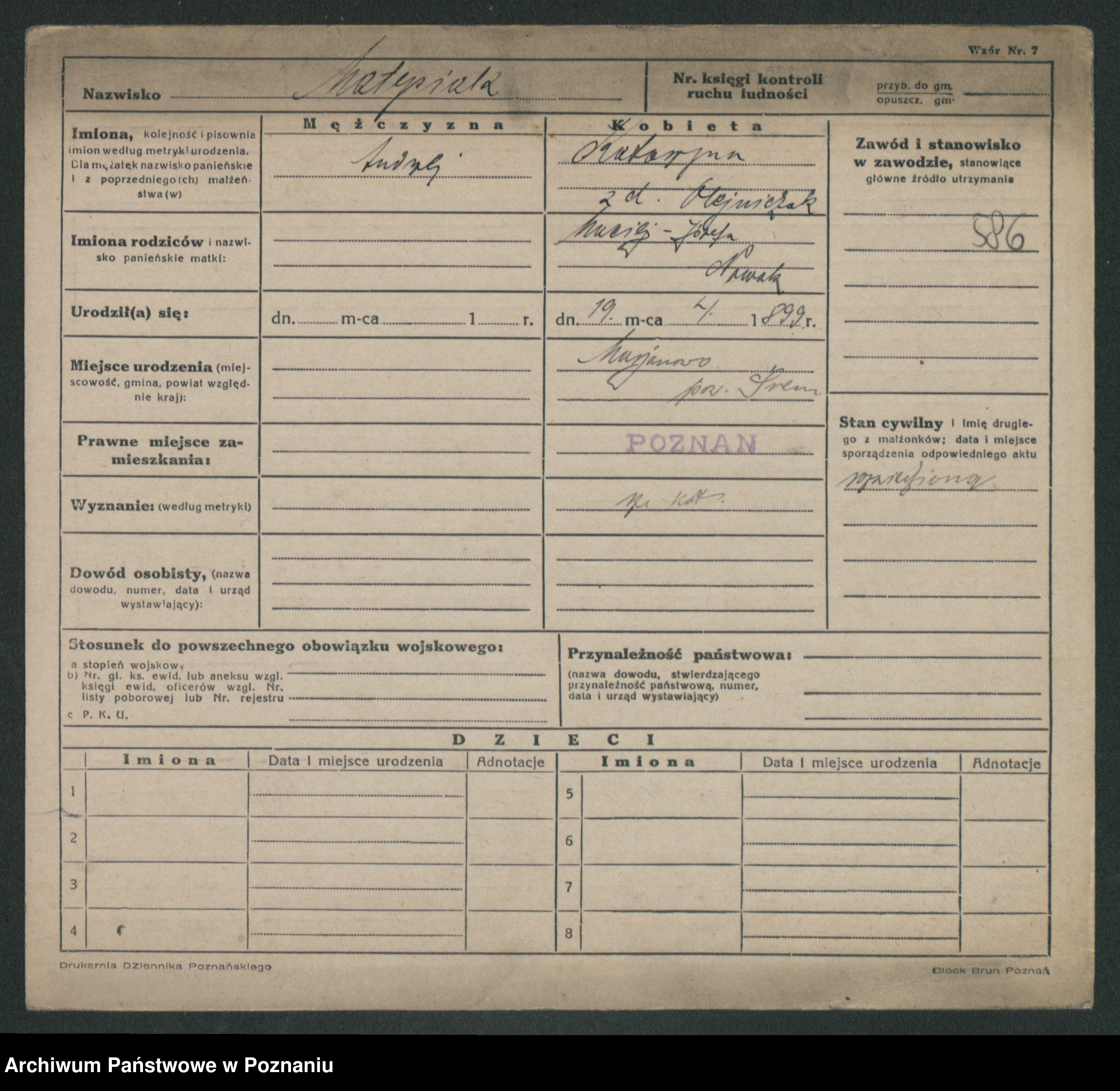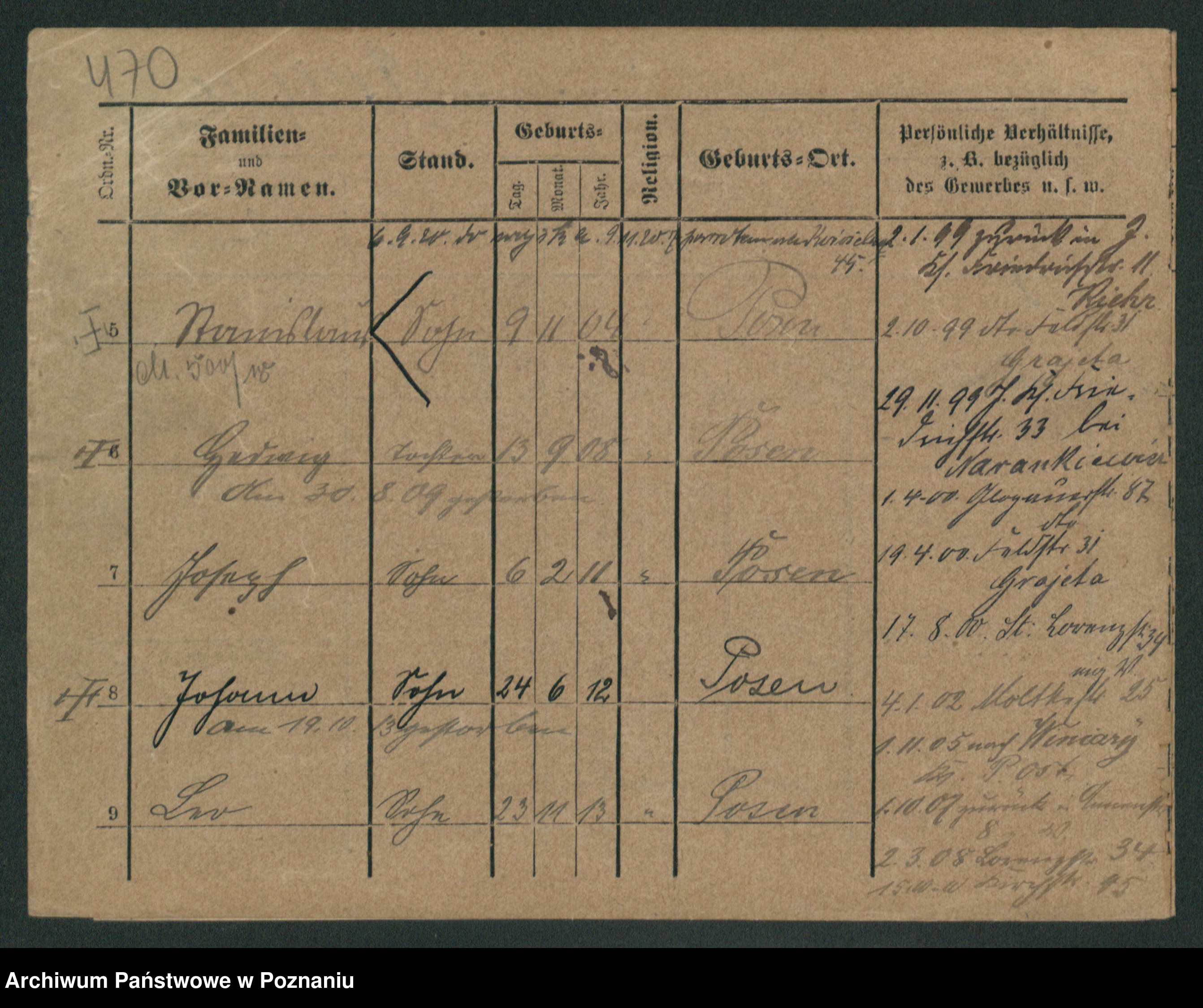 Podgląd karty osobowej dostępny jest po kliknięciu na nazwisko lub ikonkę karty. Można dokonywać powiększenia (ikony na górze) lub przechodzić między kolejnymi skanami (strzałki po bokach).