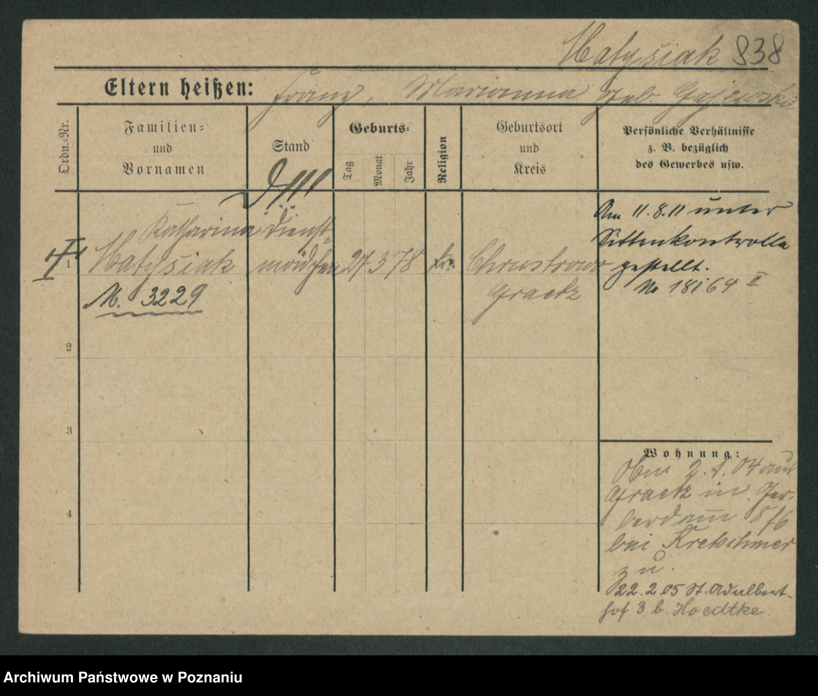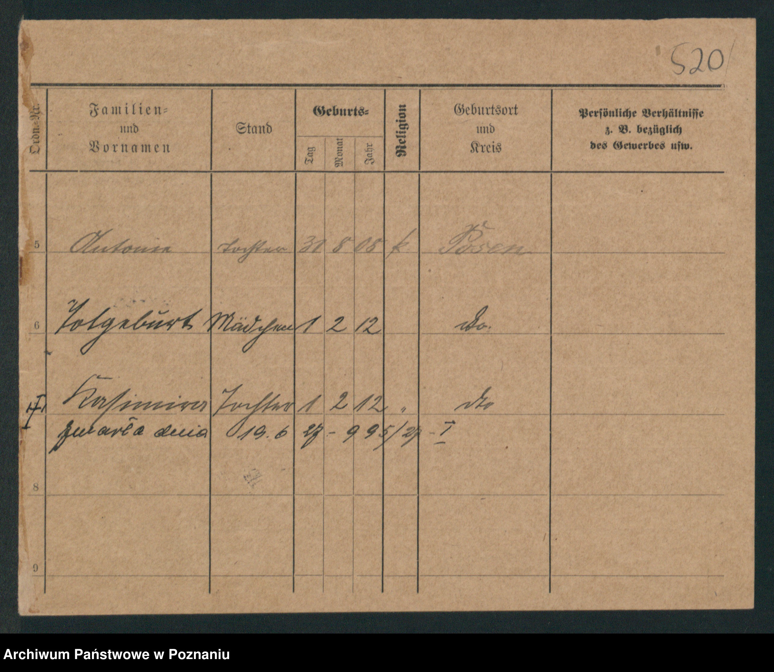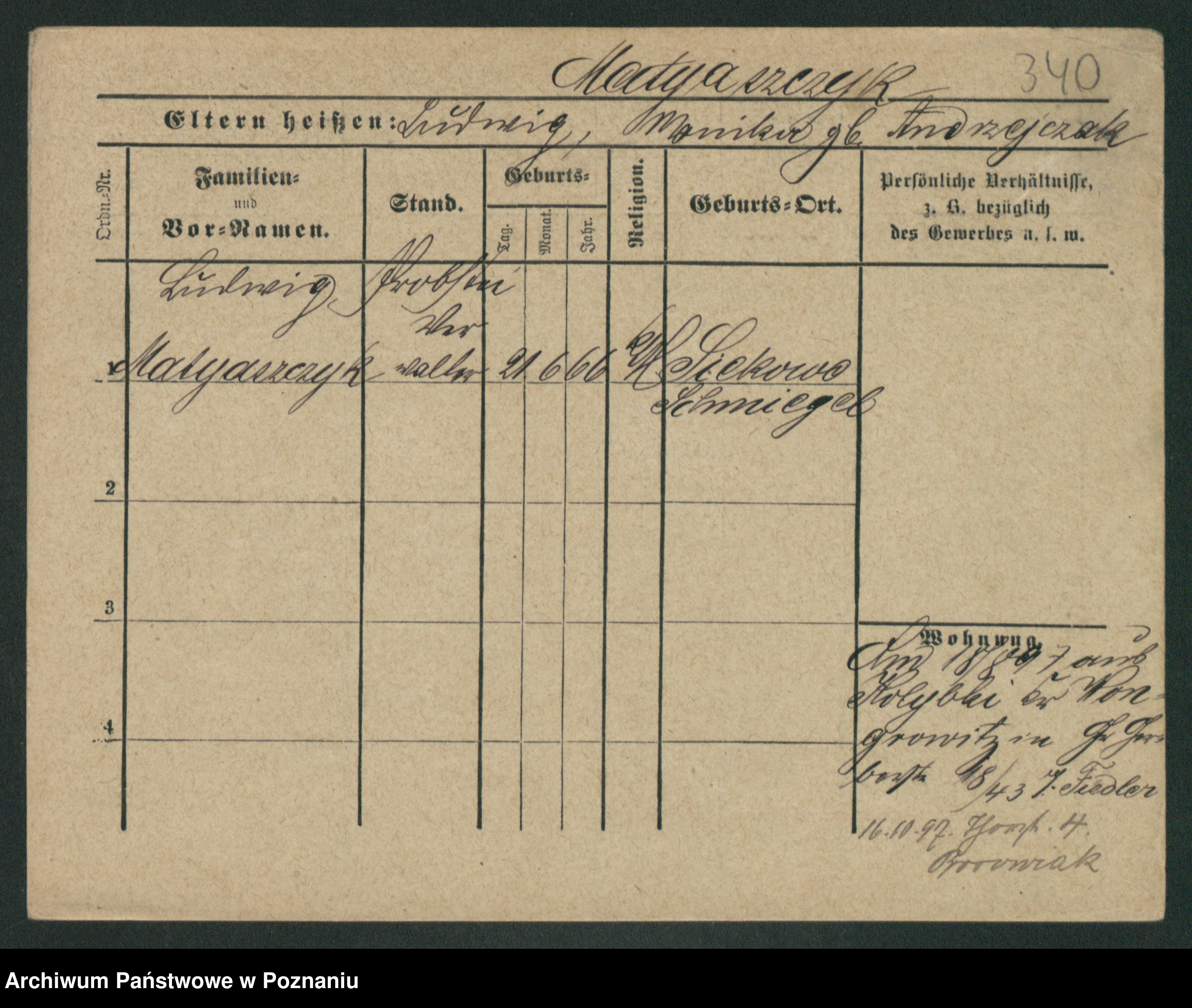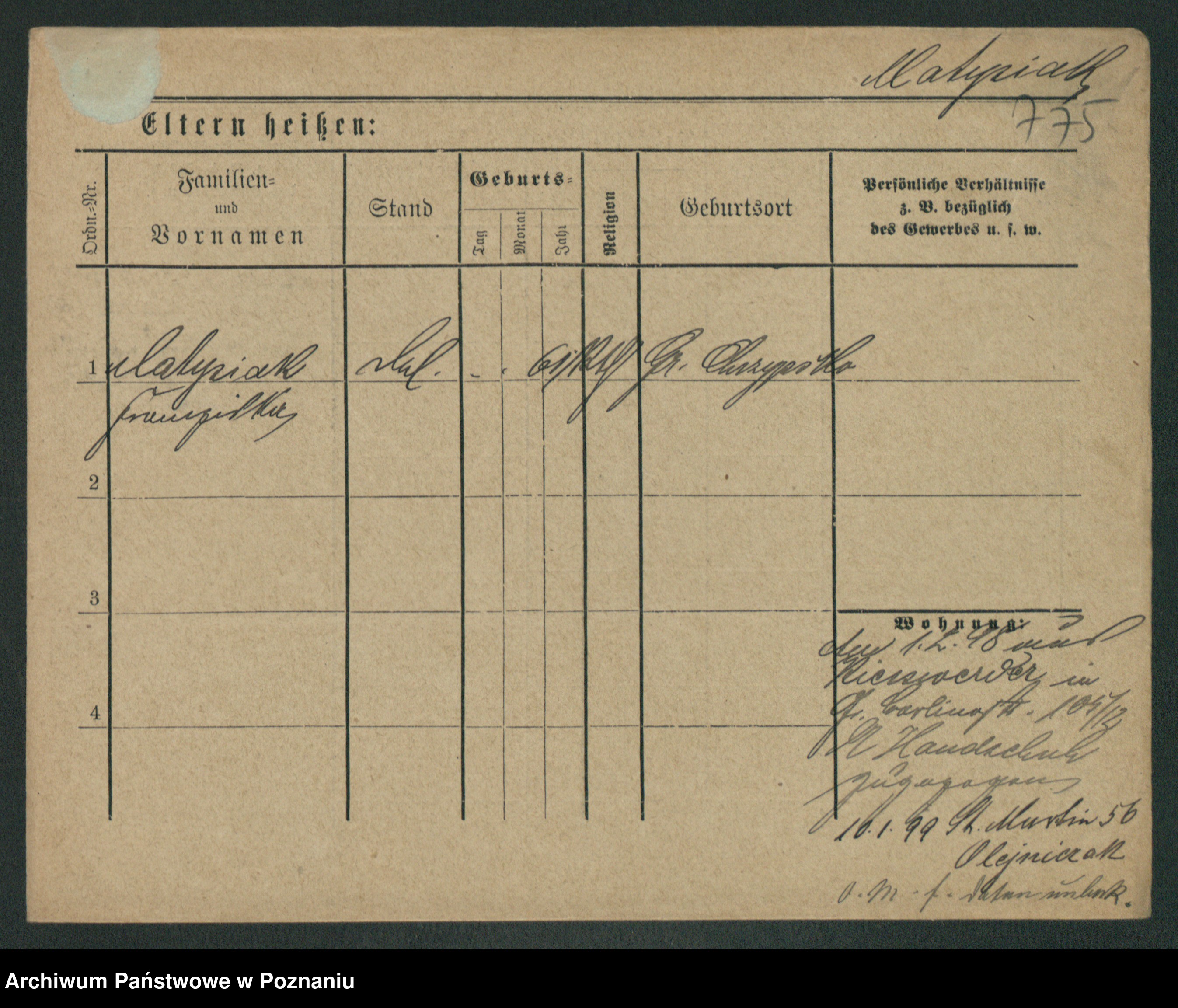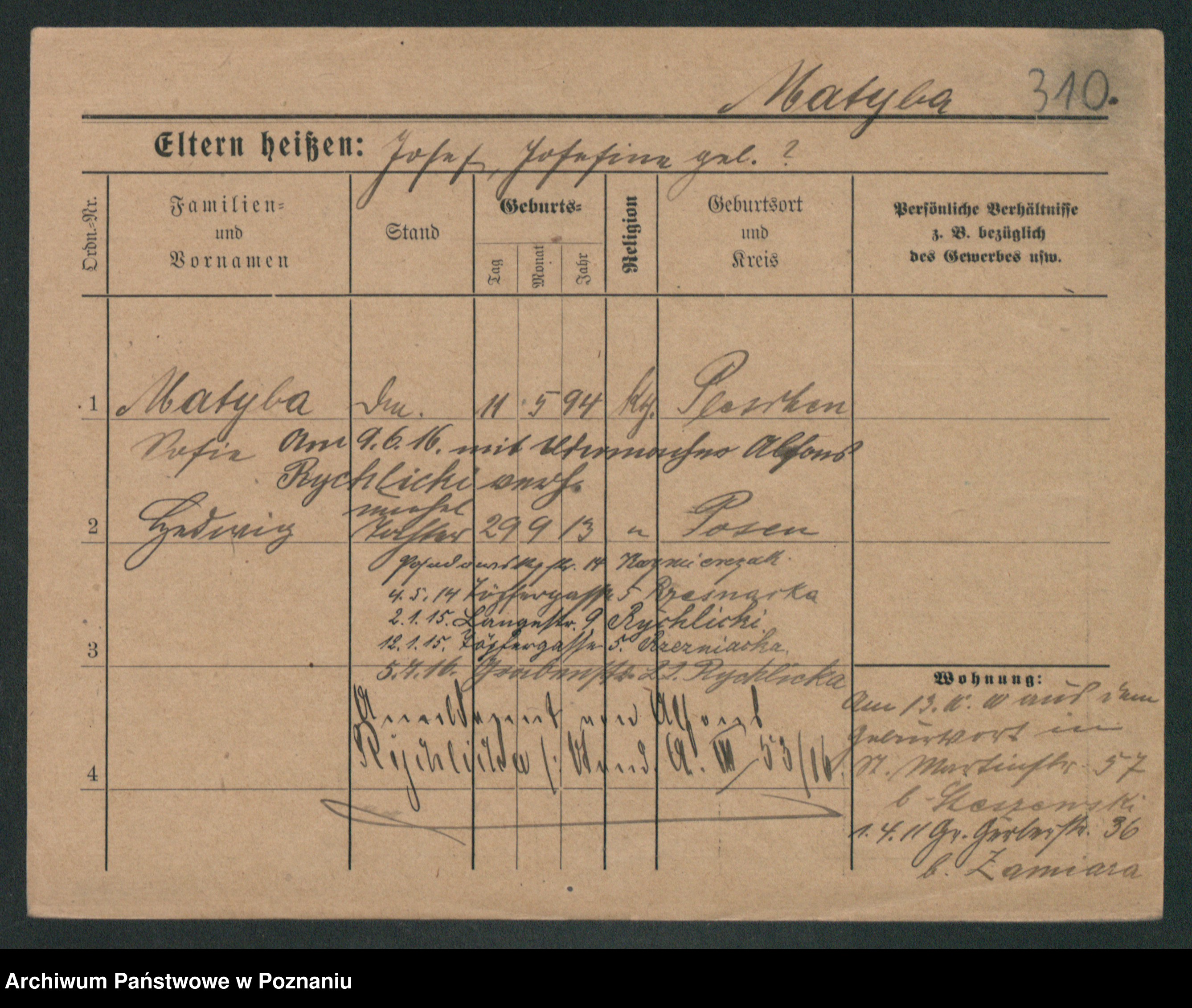 Podgląd karty osobowej dostępny jest po kliknięciu na nazwisko lub ikonkę karty. Można dokonywać powiększenia (ikony na górze) lub przechodzić między kolejnymi skanami (strzałki po bokach).