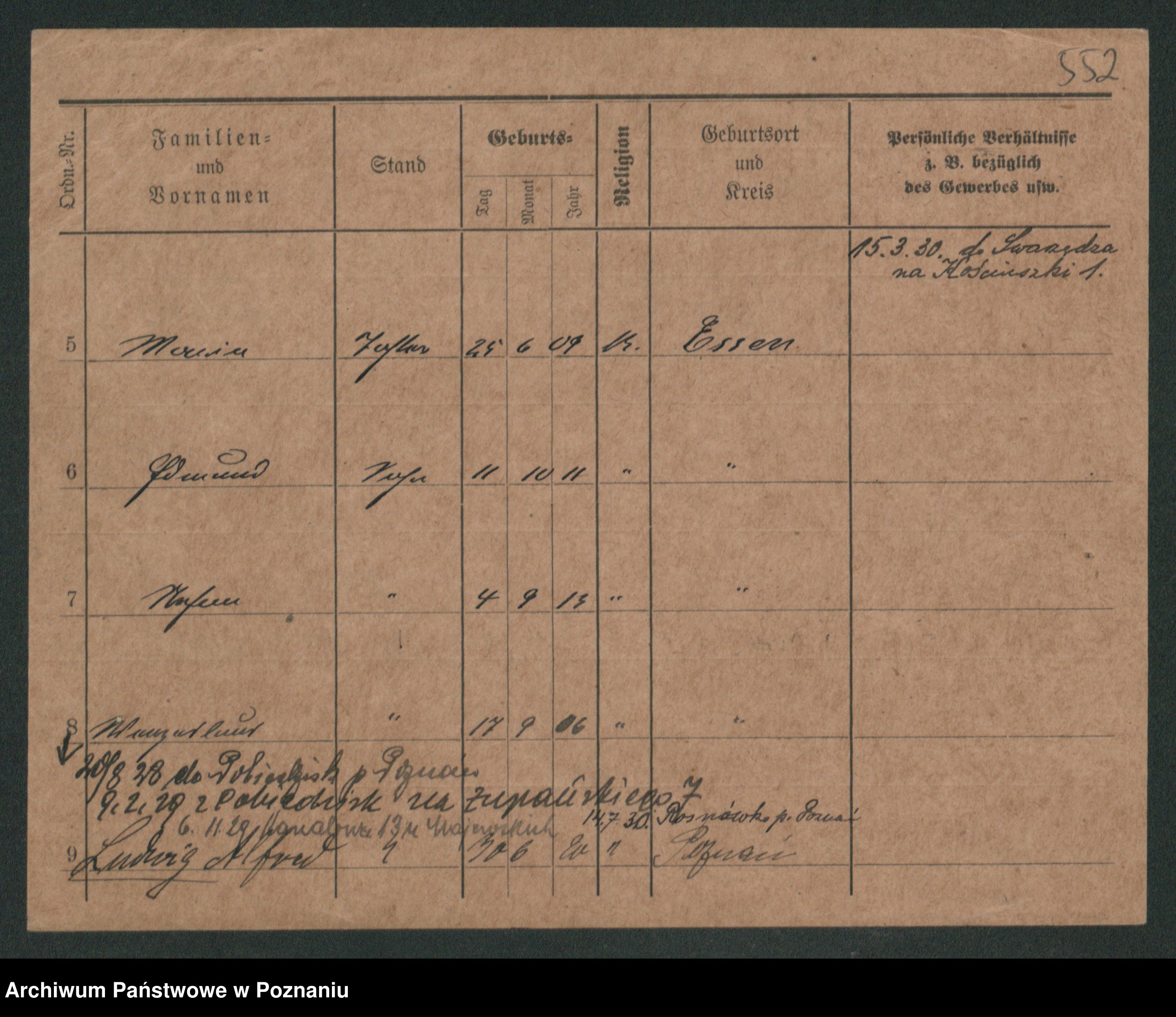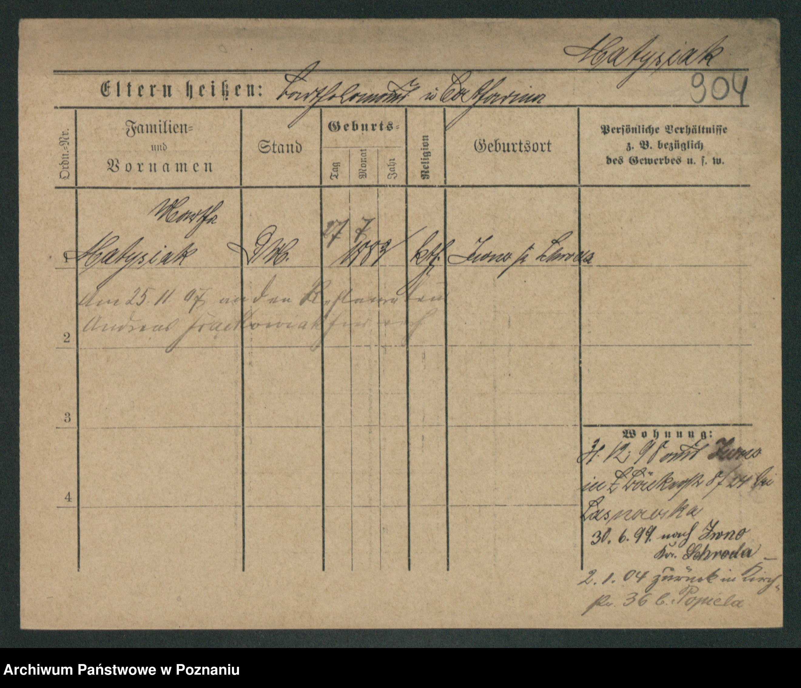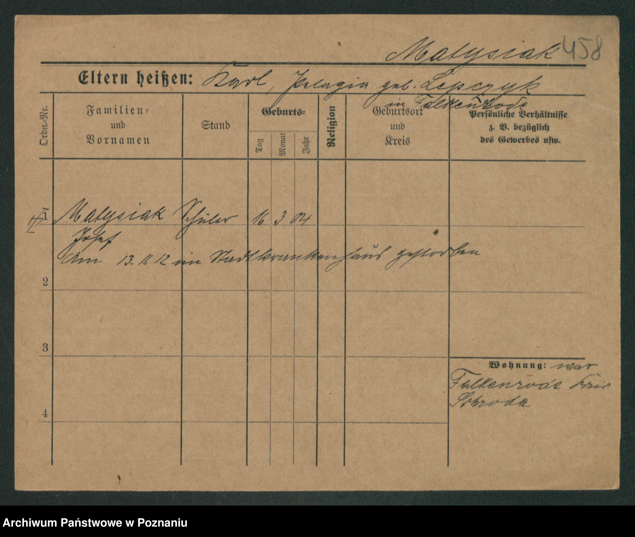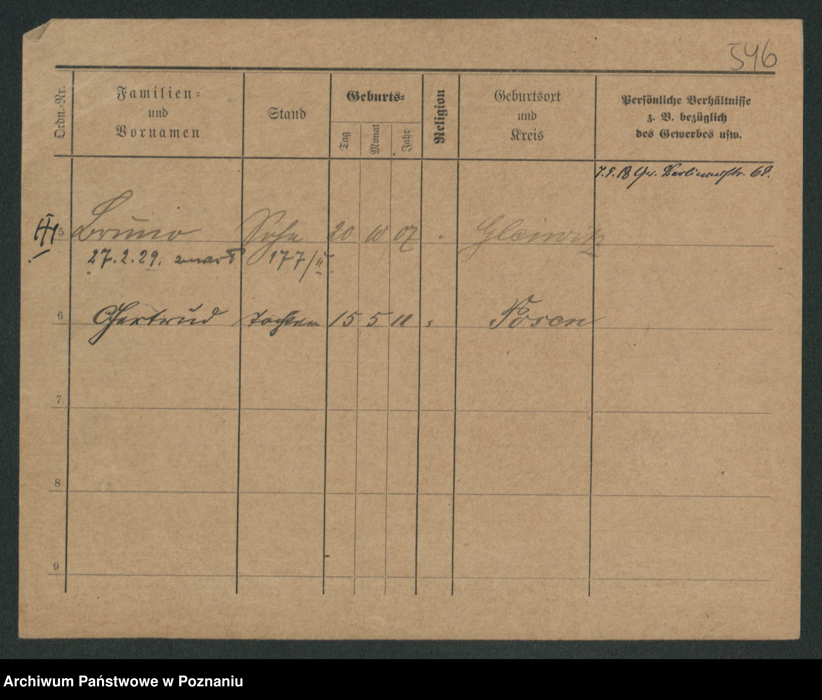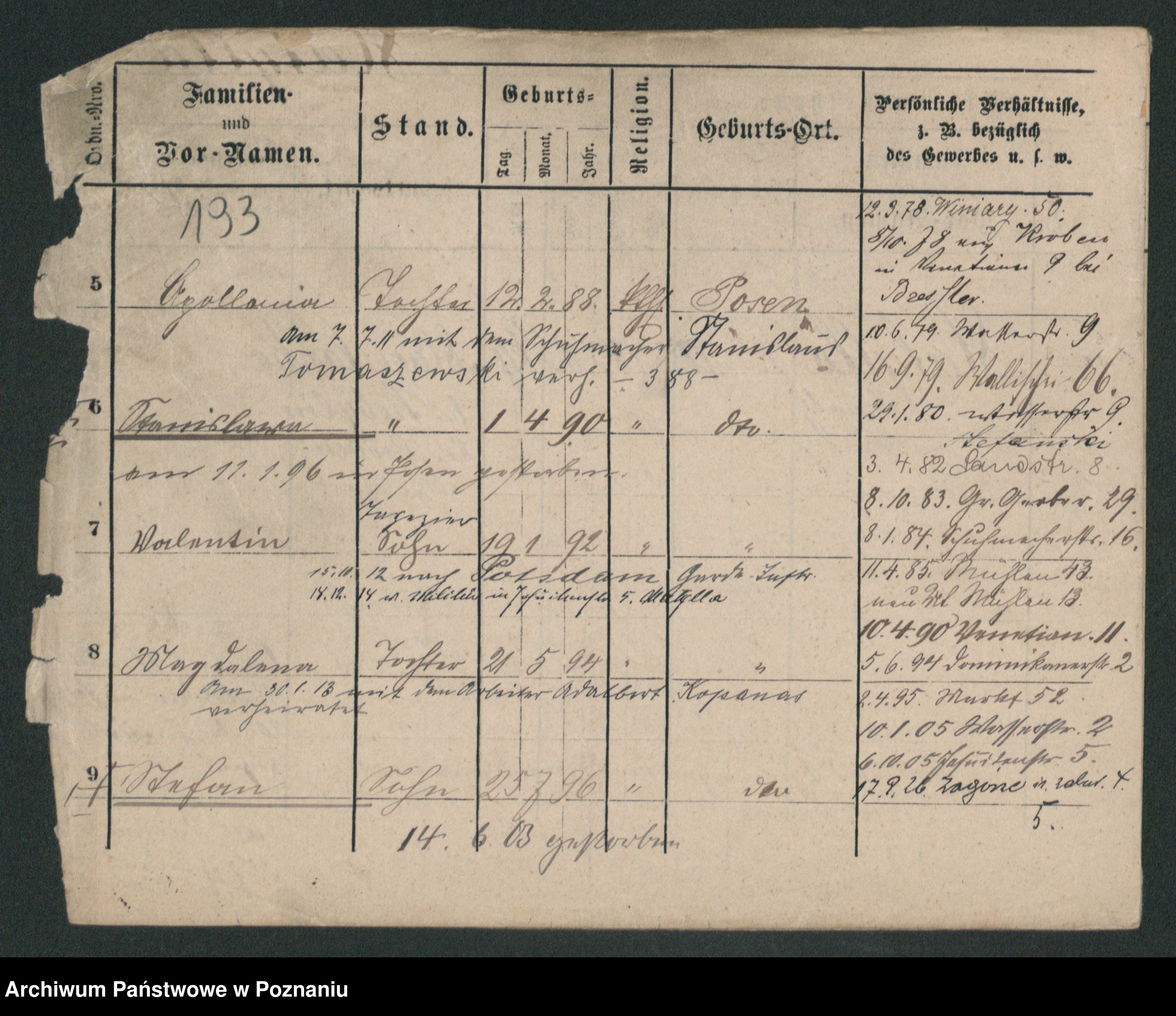 Podgląd karty osobowej dostępny jest po kliknięciu na nazwisko lub ikonkę karty. Można dokonywać powiększenia (ikony na górze) lub przechodzić między kolejnymi skanami (strzałki po bokach).