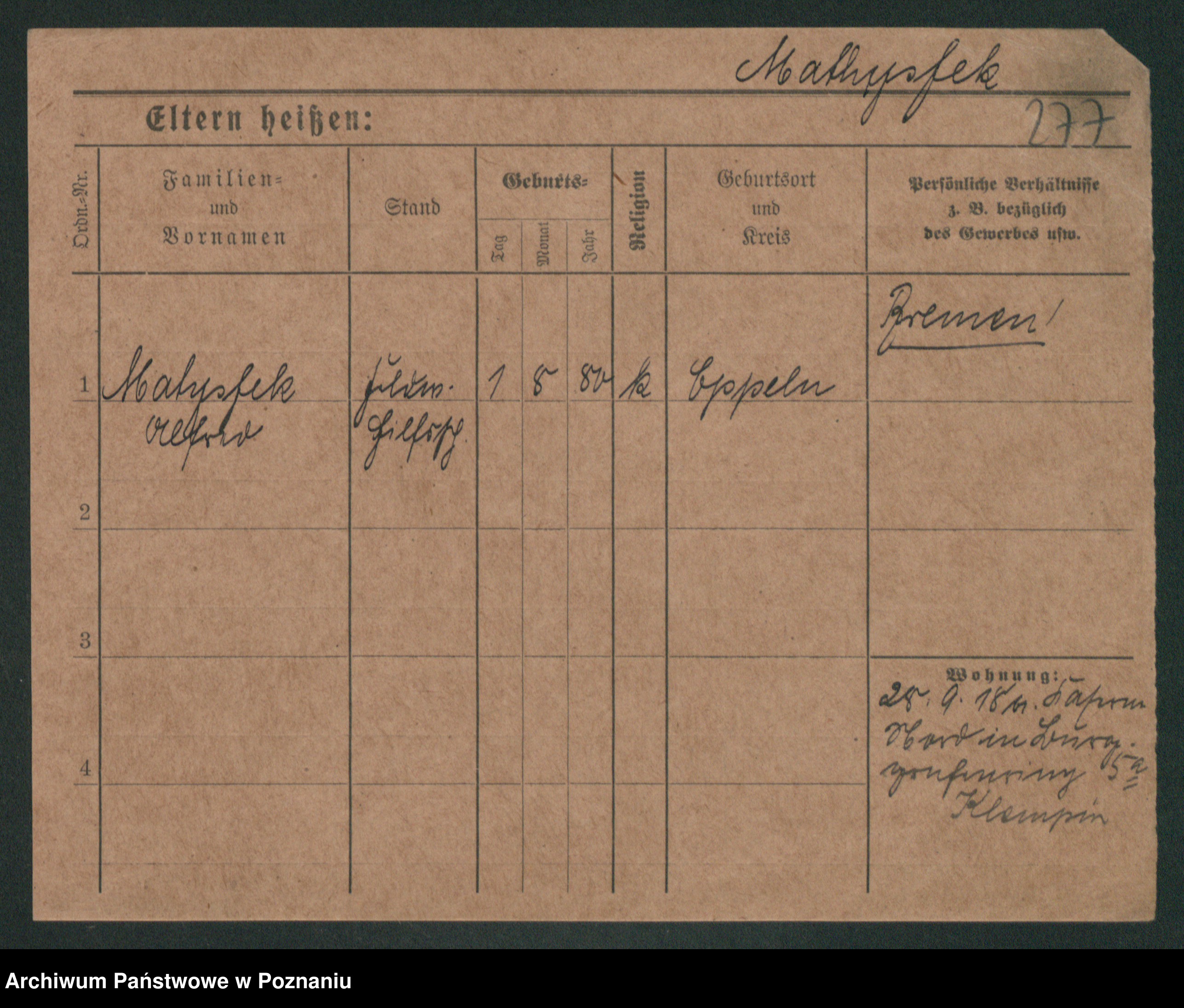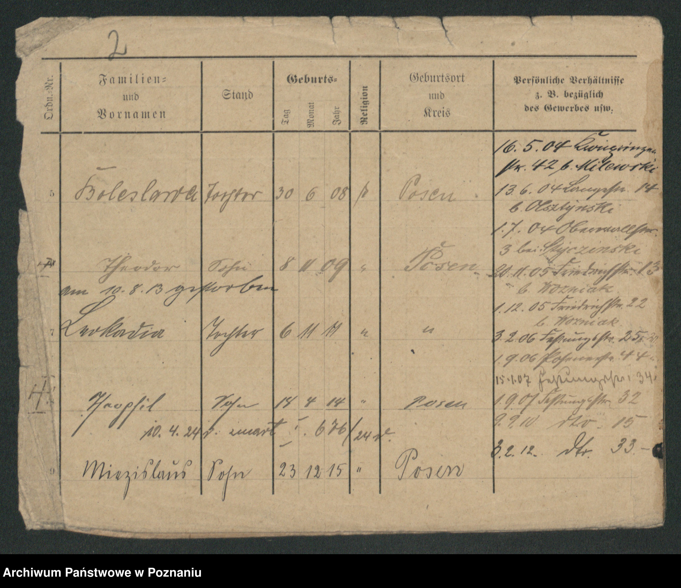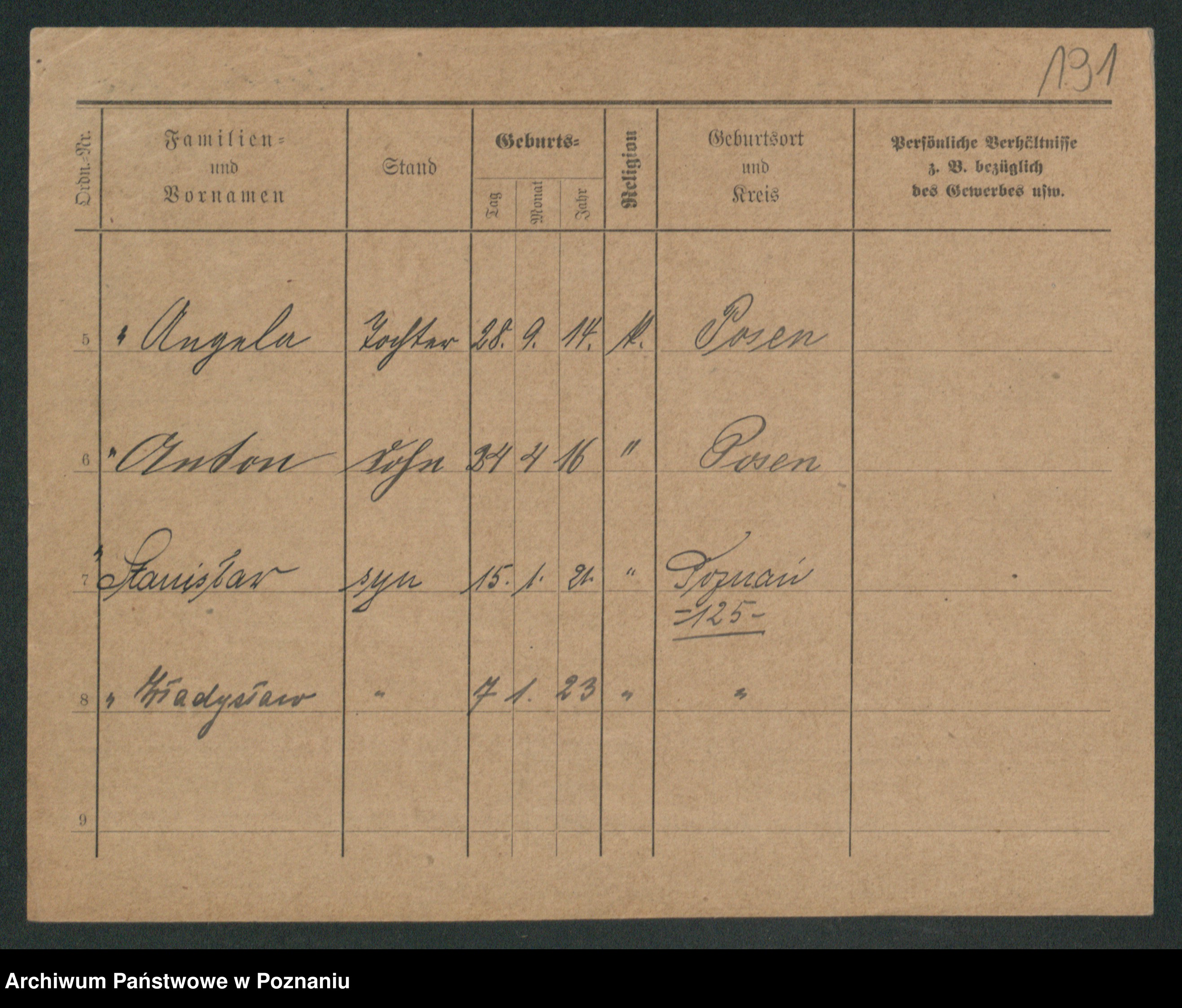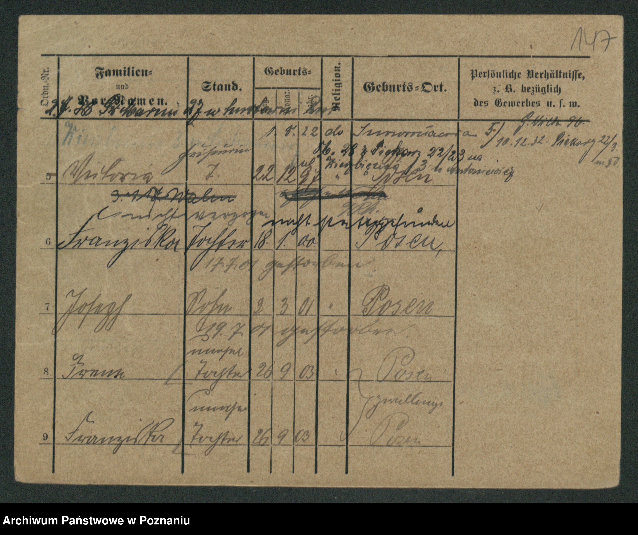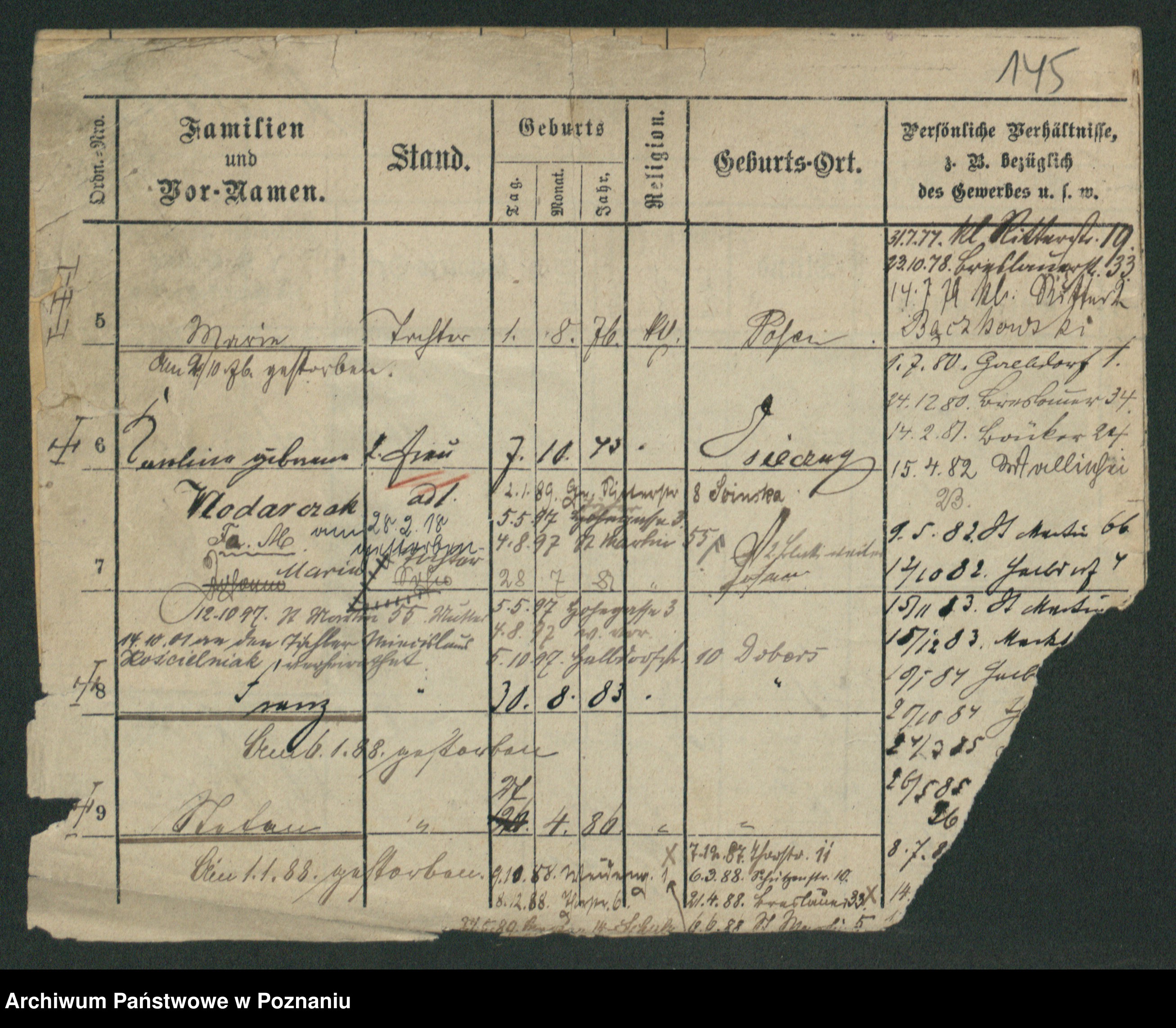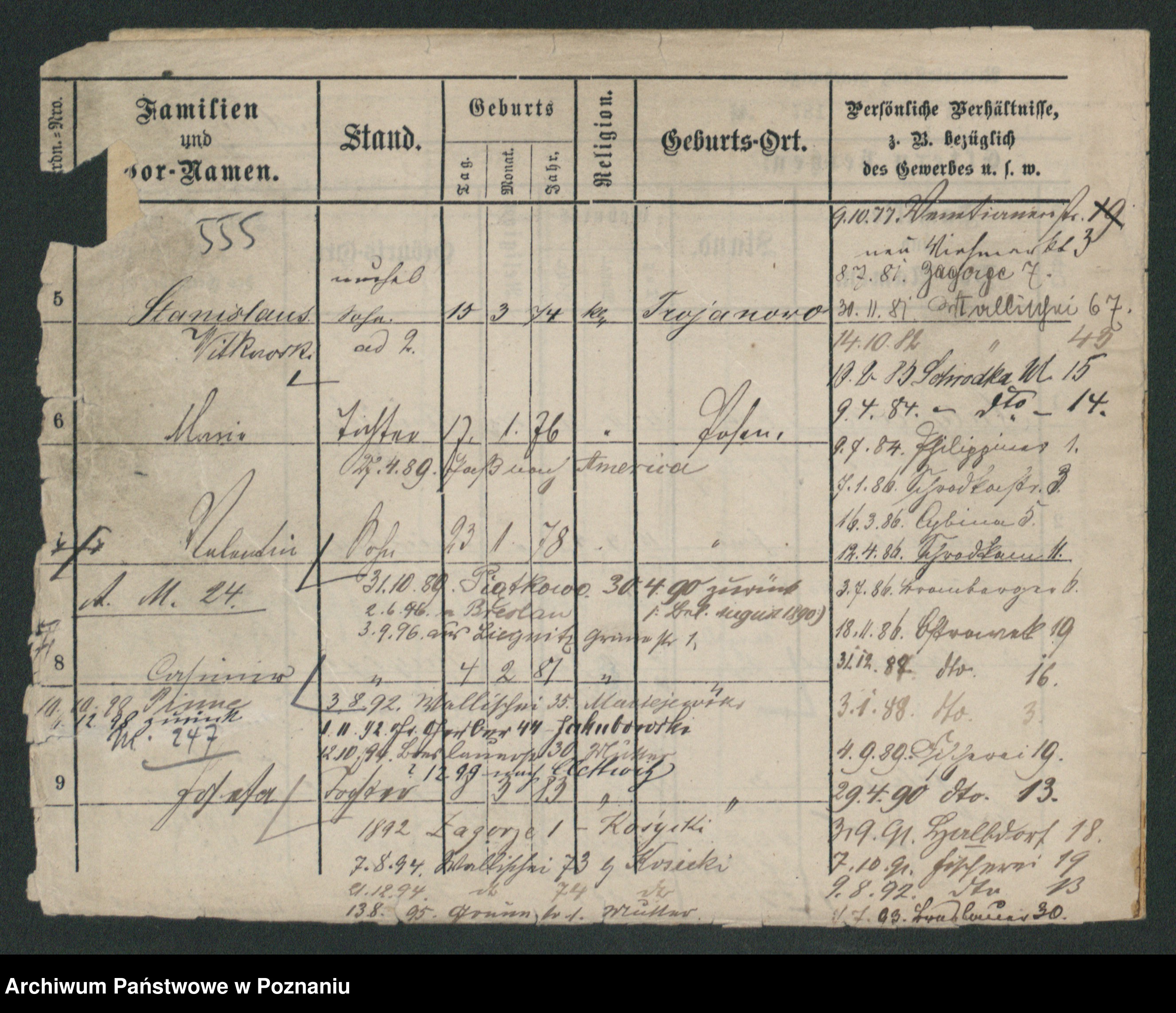 Podgląd karty osobowej dostępny jest po kliknięciu na nazwisko lub ikonkę karty. Można dokonywać powiększenia (ikony na górze) lub przechodzić między kolejnymi skanami (strzałki po bokach).