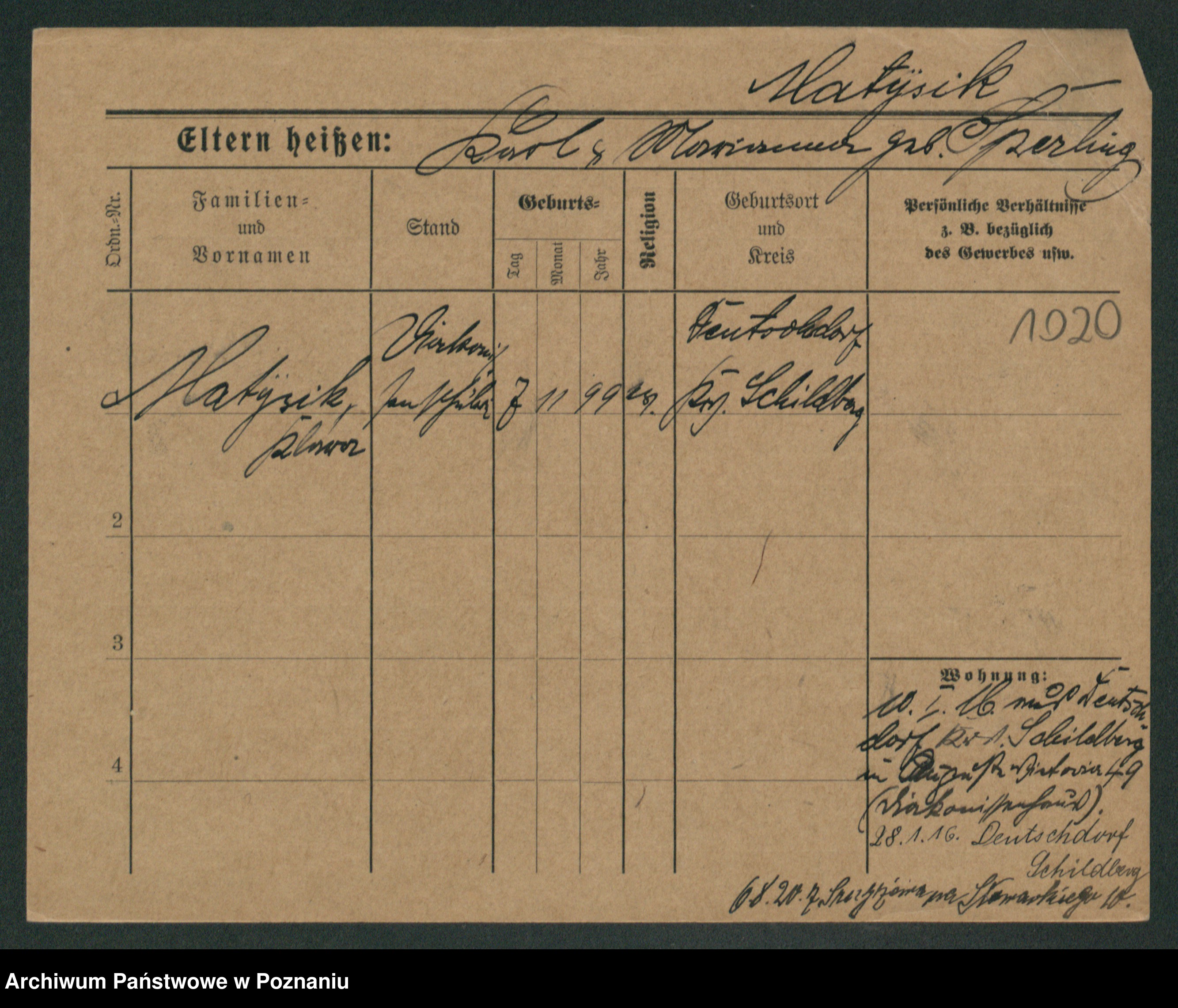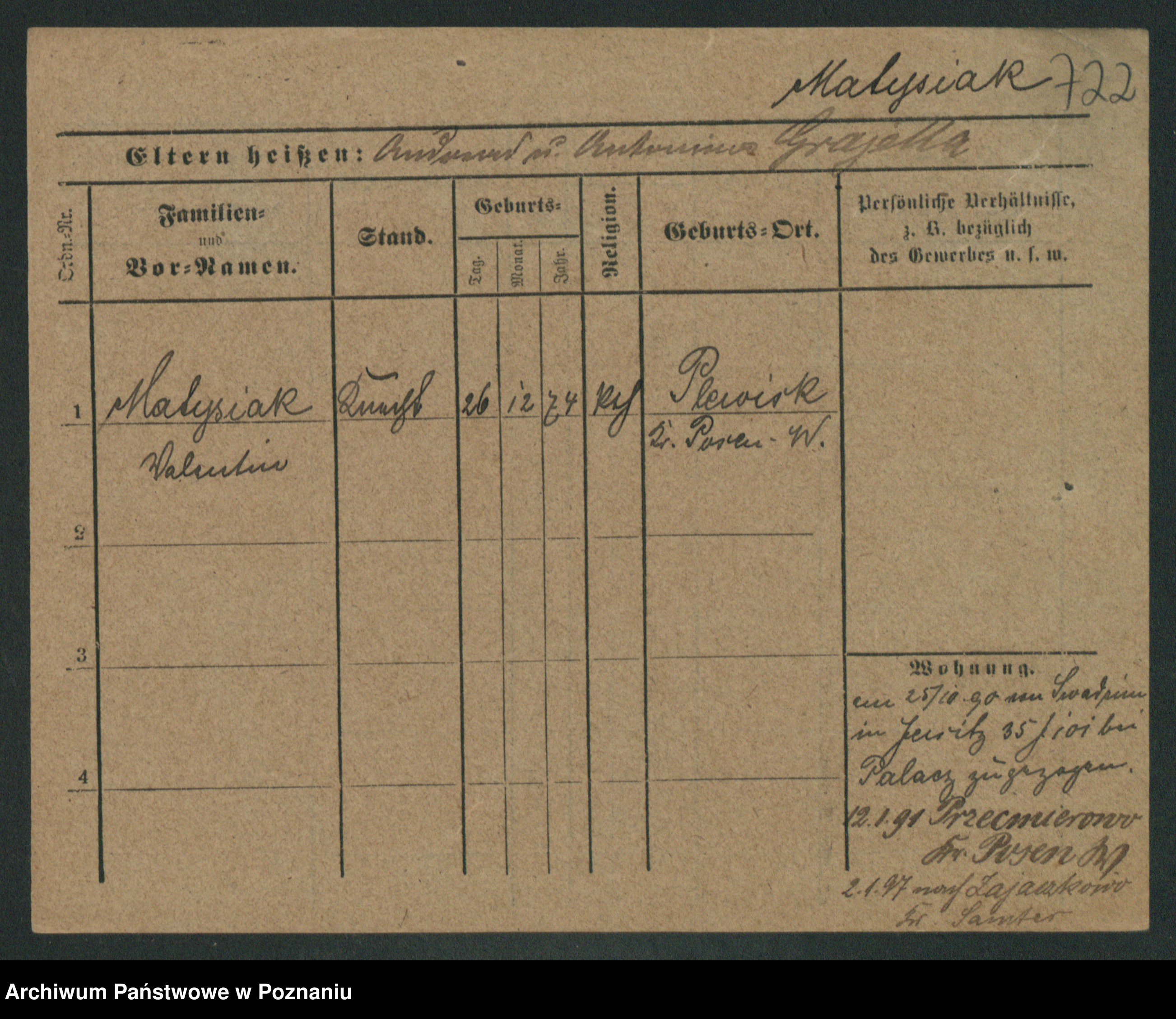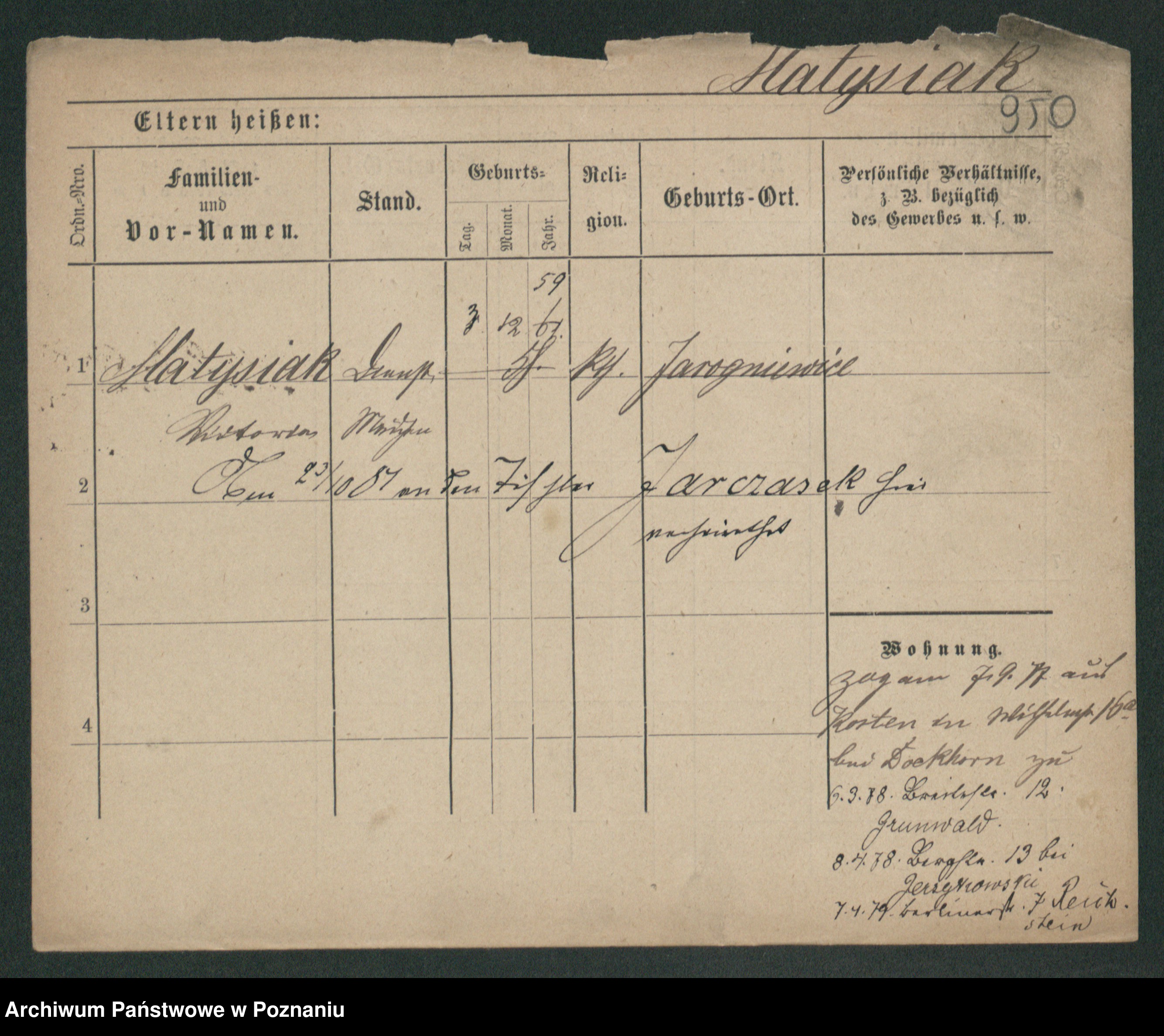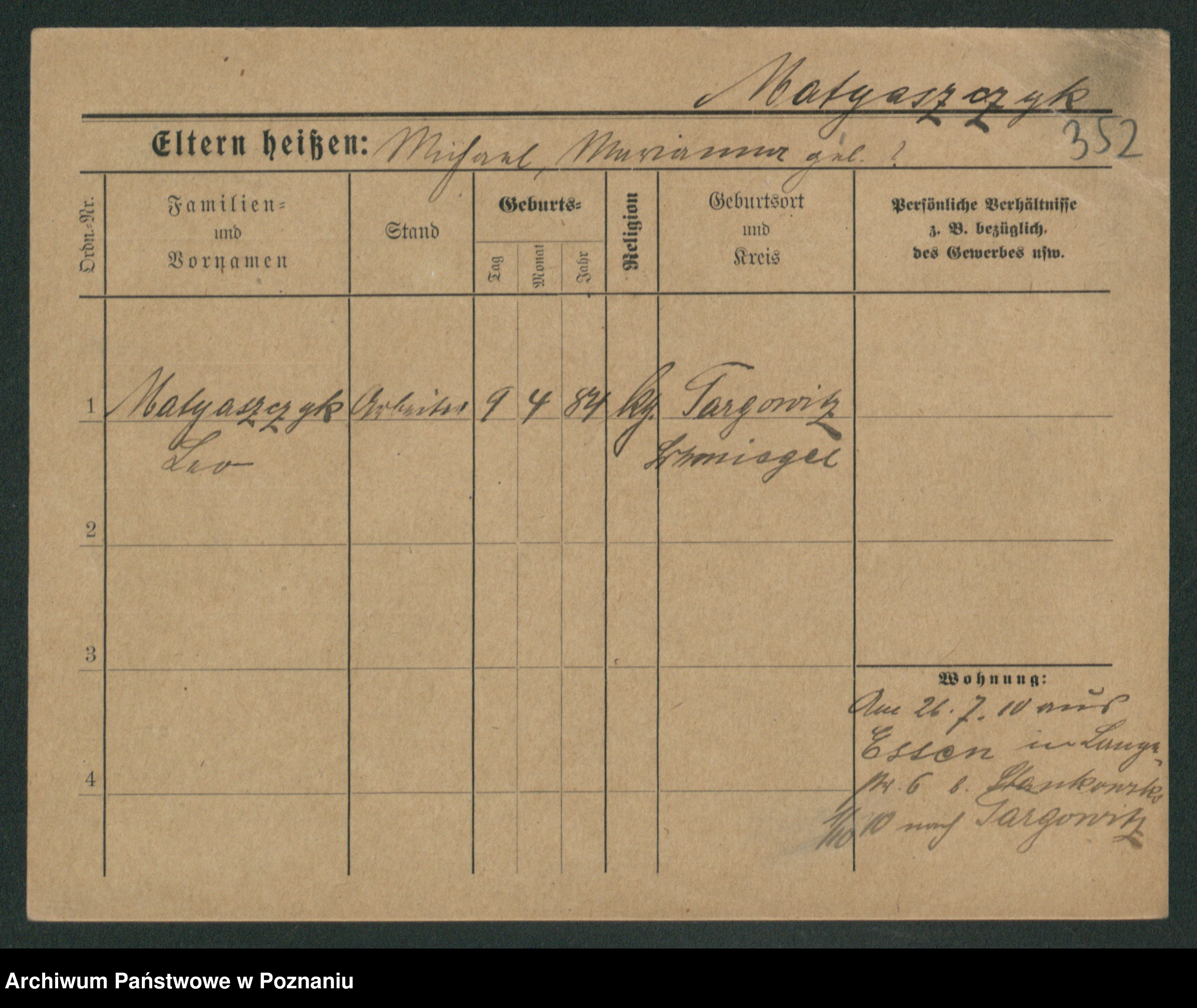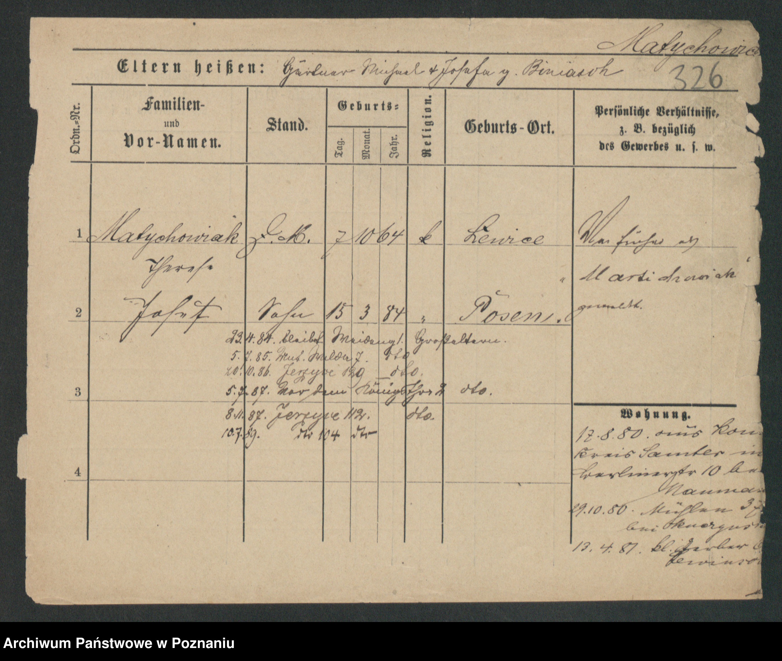 Podgląd karty osobowej dostępny jest po kliknięciu na nazwisko lub ikonkę karty. Można dokonywać powiększenia (ikony na górze) lub przechodzić między kolejnymi skanami (strzałki po bokach).