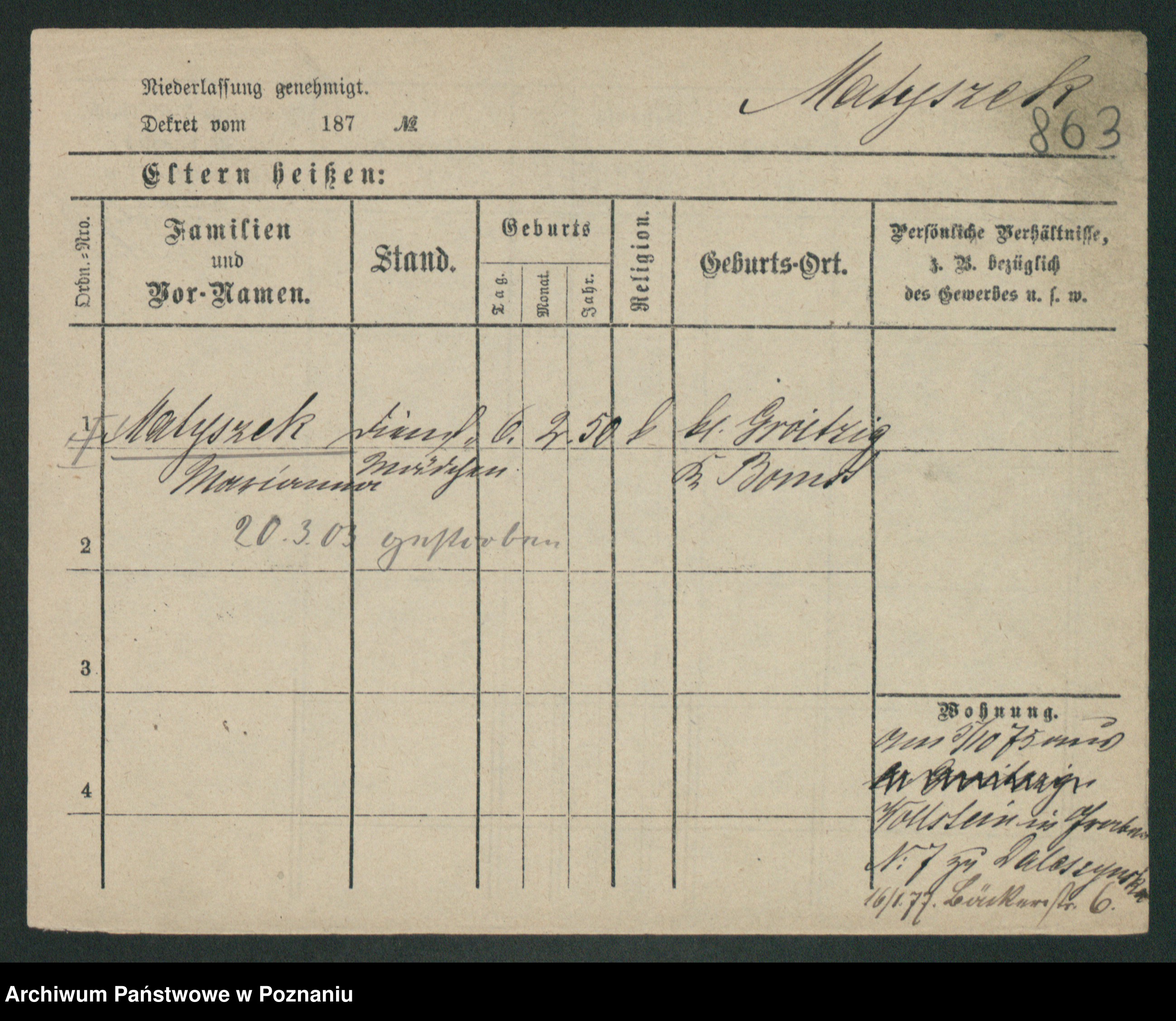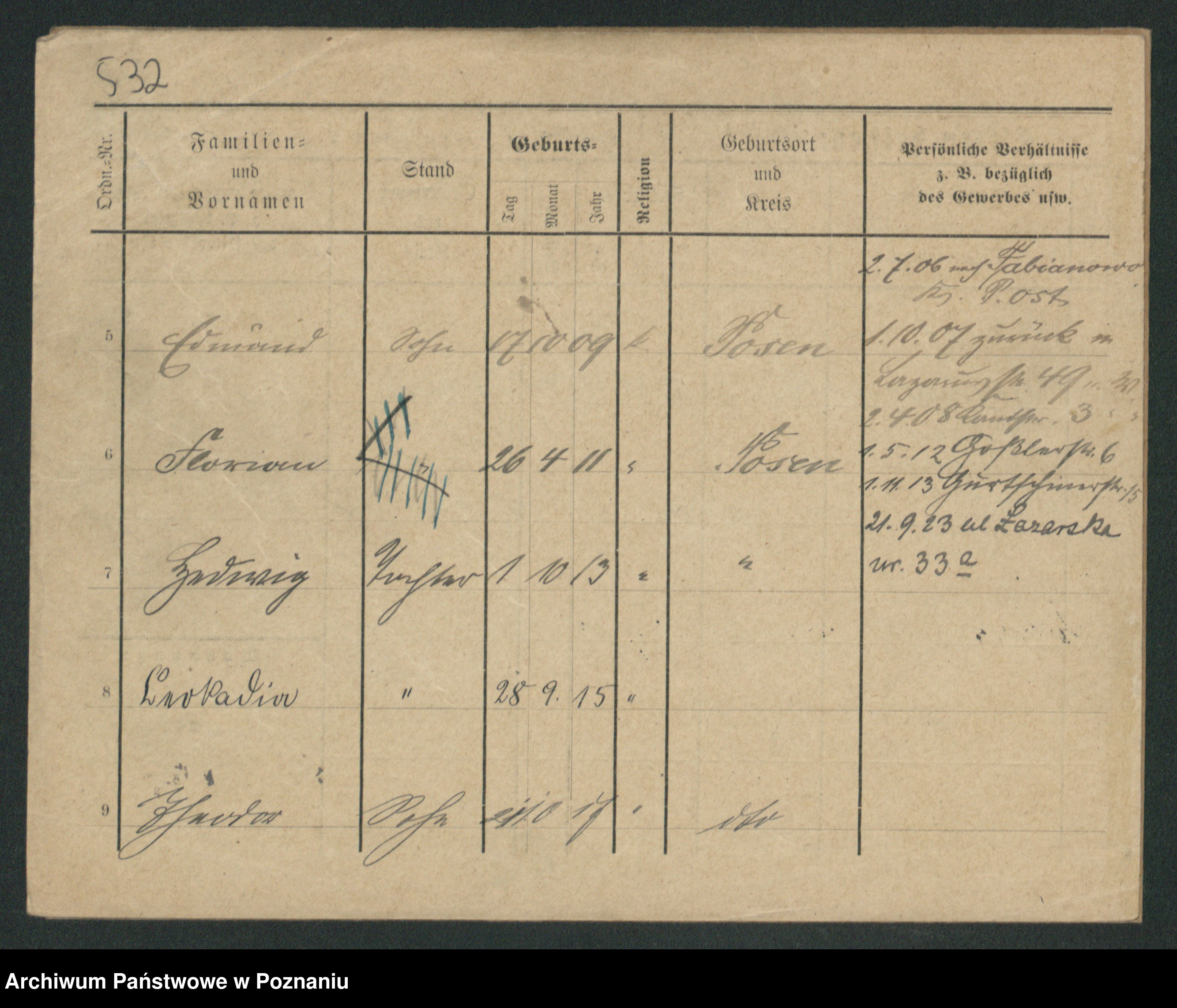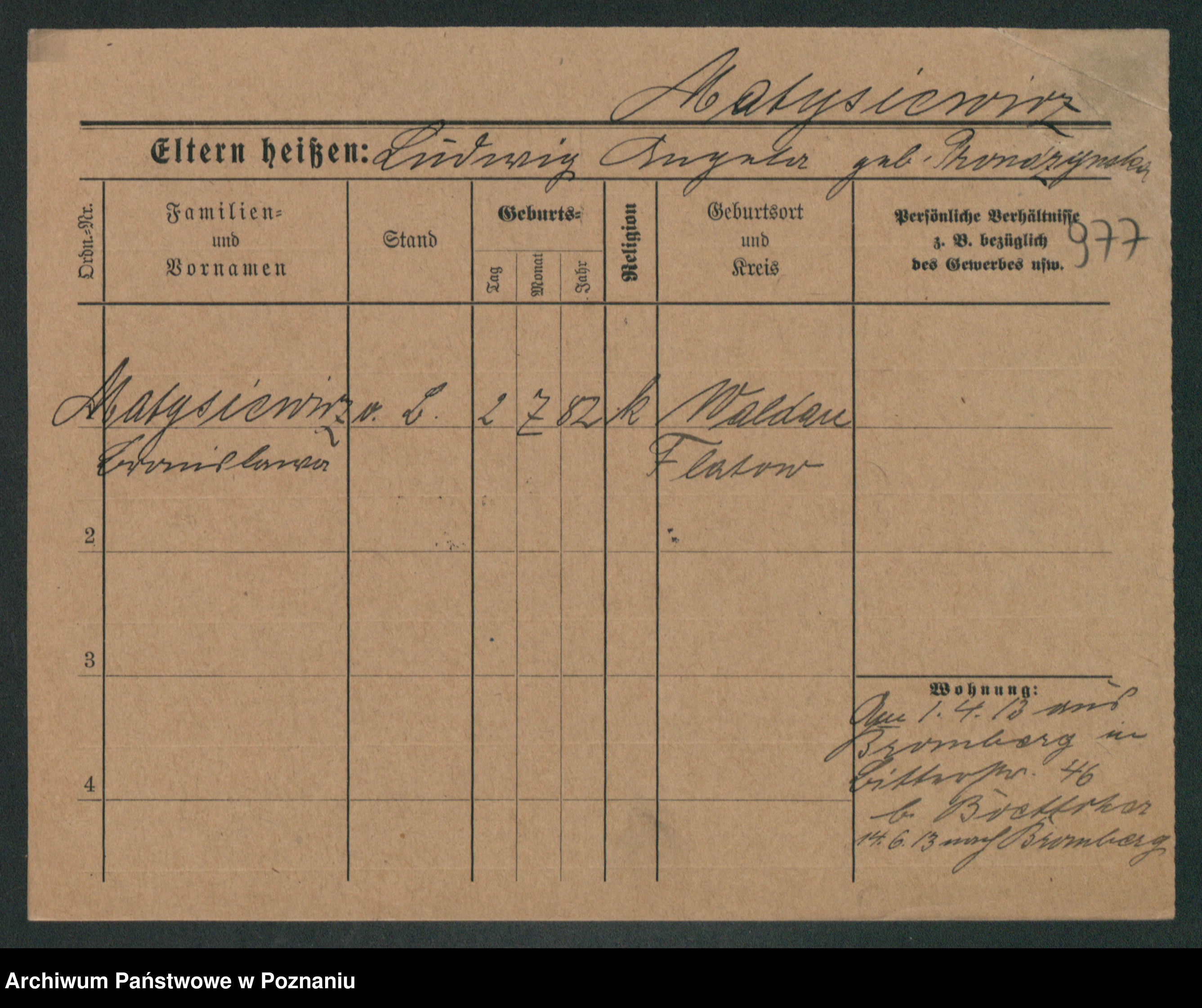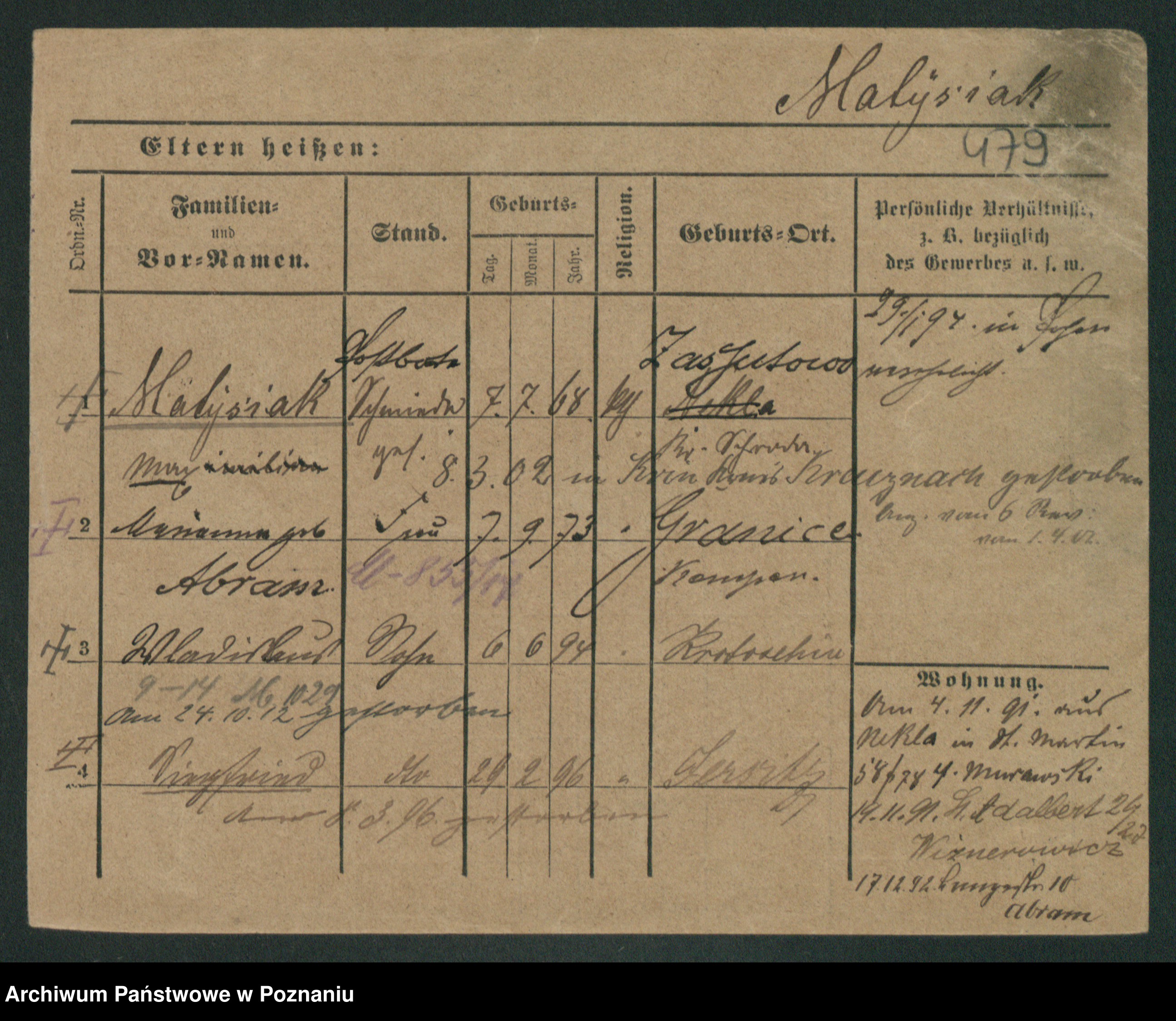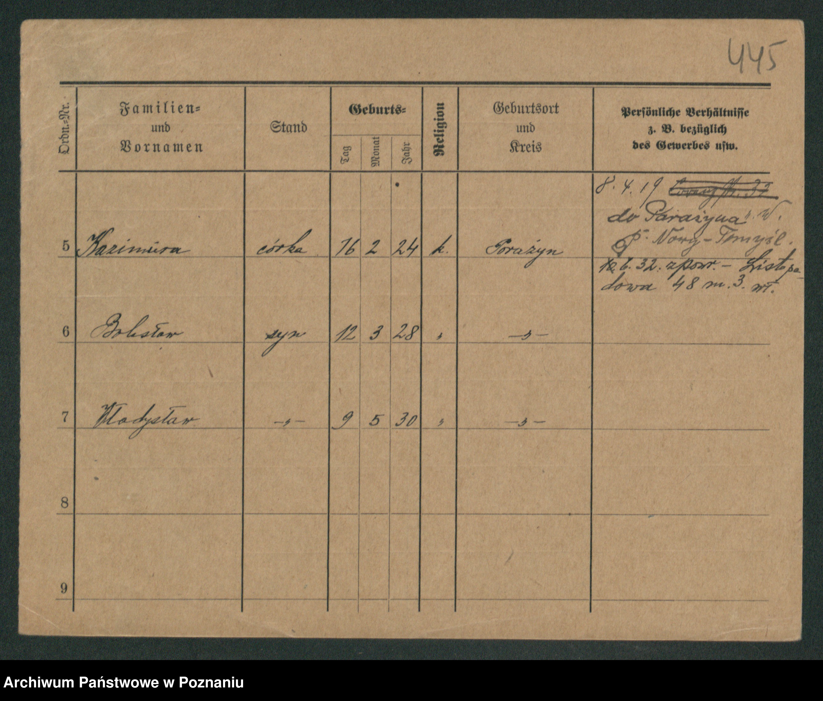 Podgląd karty osobowej dostępny jest po kliknięciu na nazwisko lub ikonkę karty. Można dokonywać powiększenia (ikony na górze) lub przechodzić między kolejnymi skanami (strzałki po bokach).