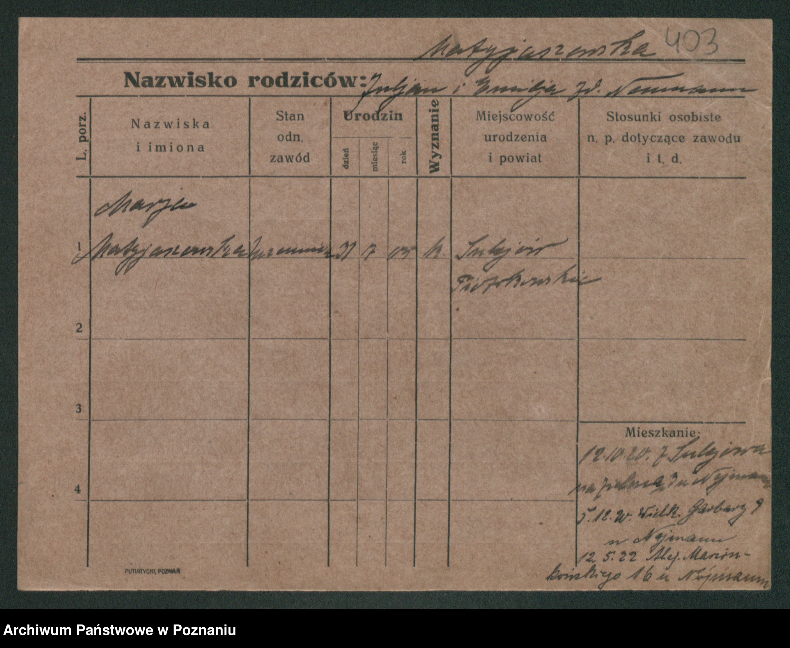 Matyśkiewicz, Marja