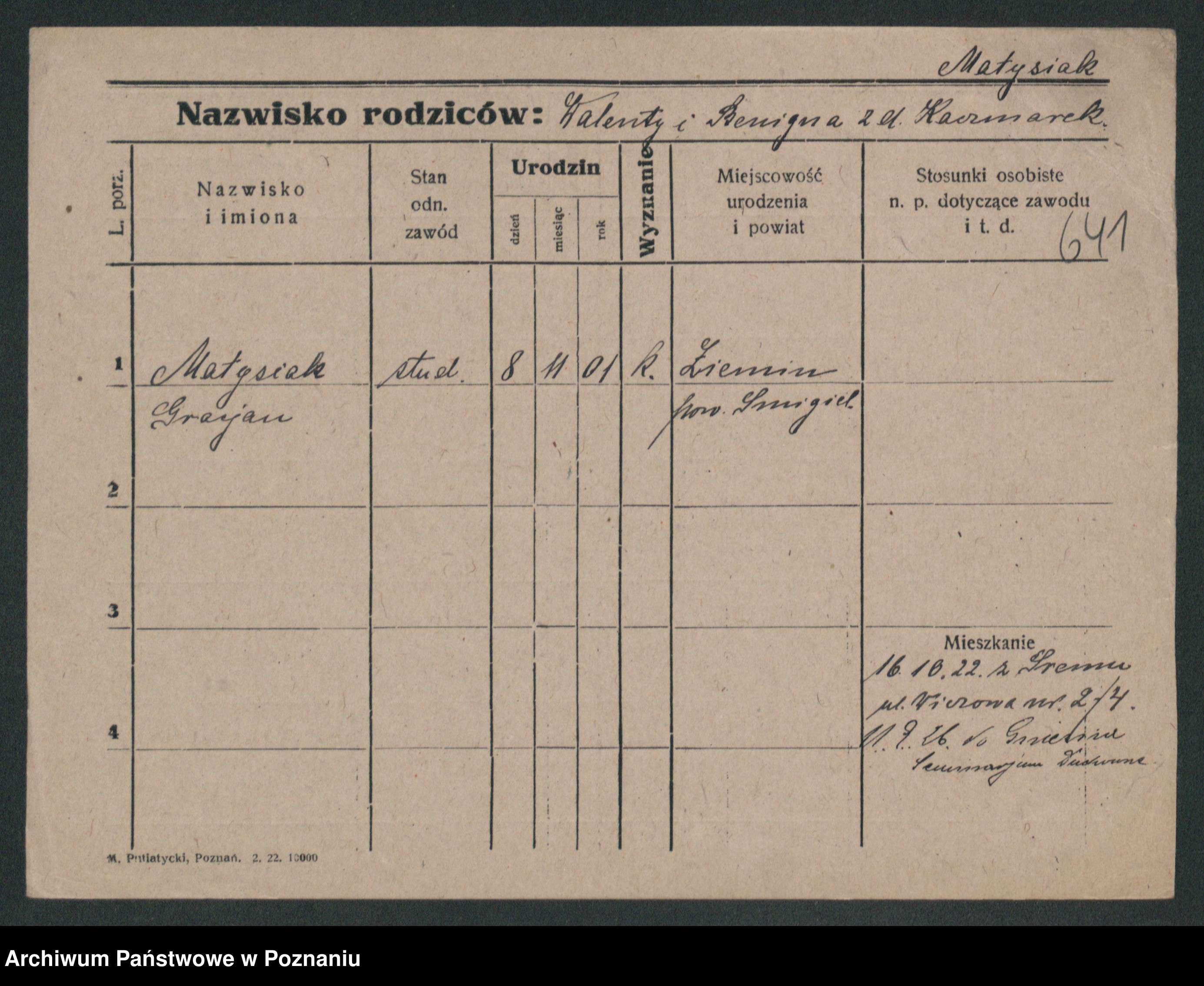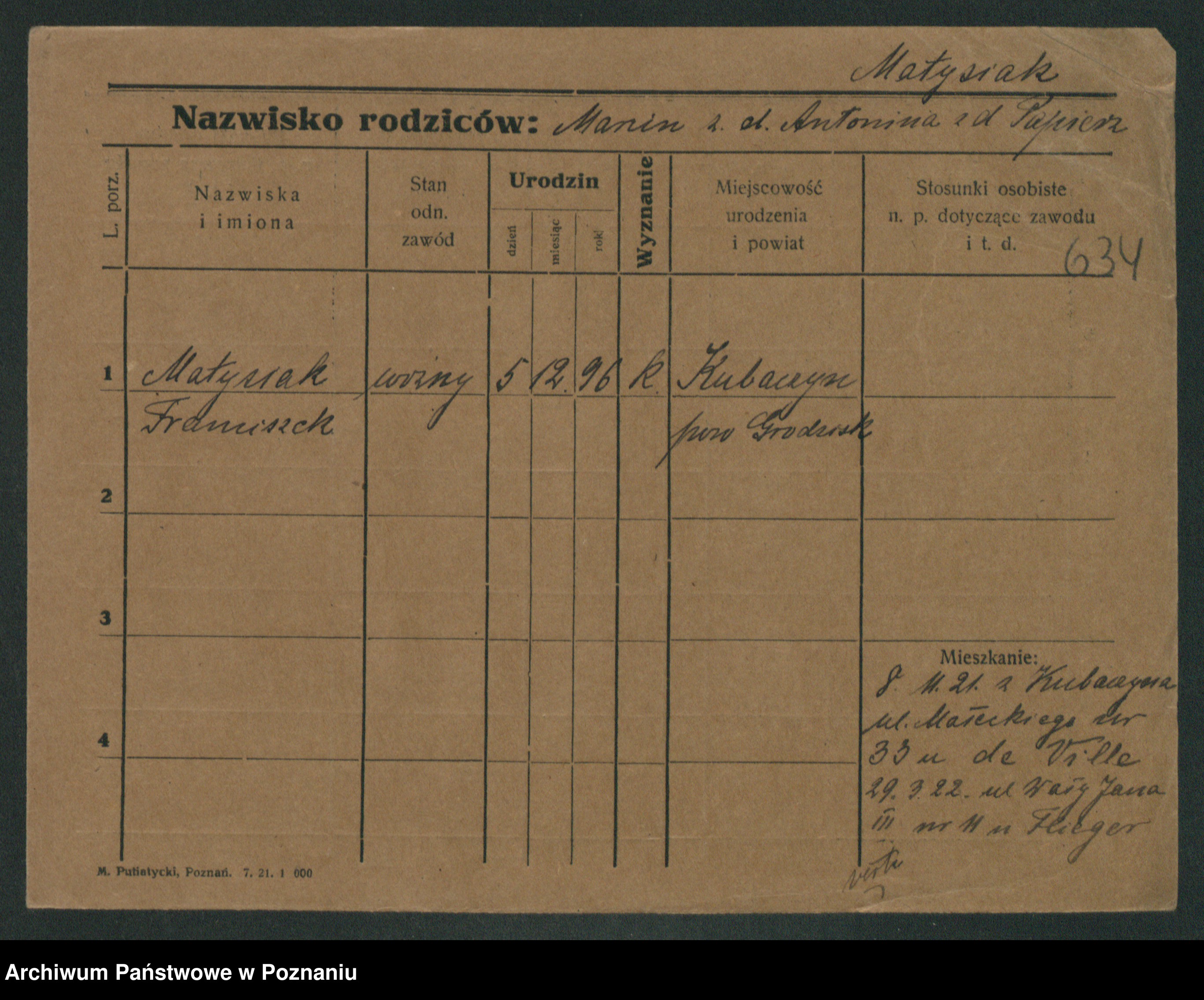 Matysik Kaczmarek, Marjan Mieczysław