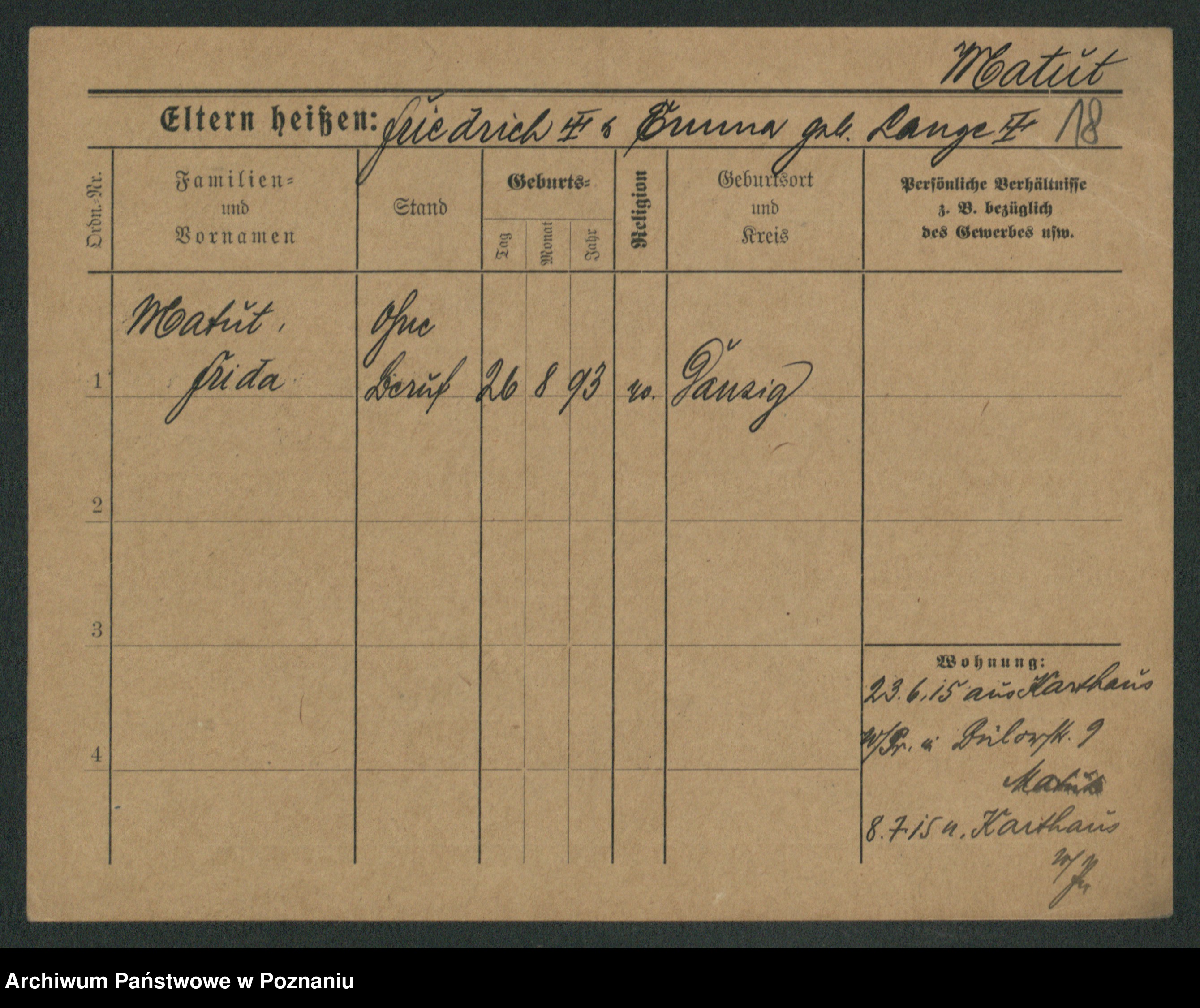 Matut, Frieda Klara Anna