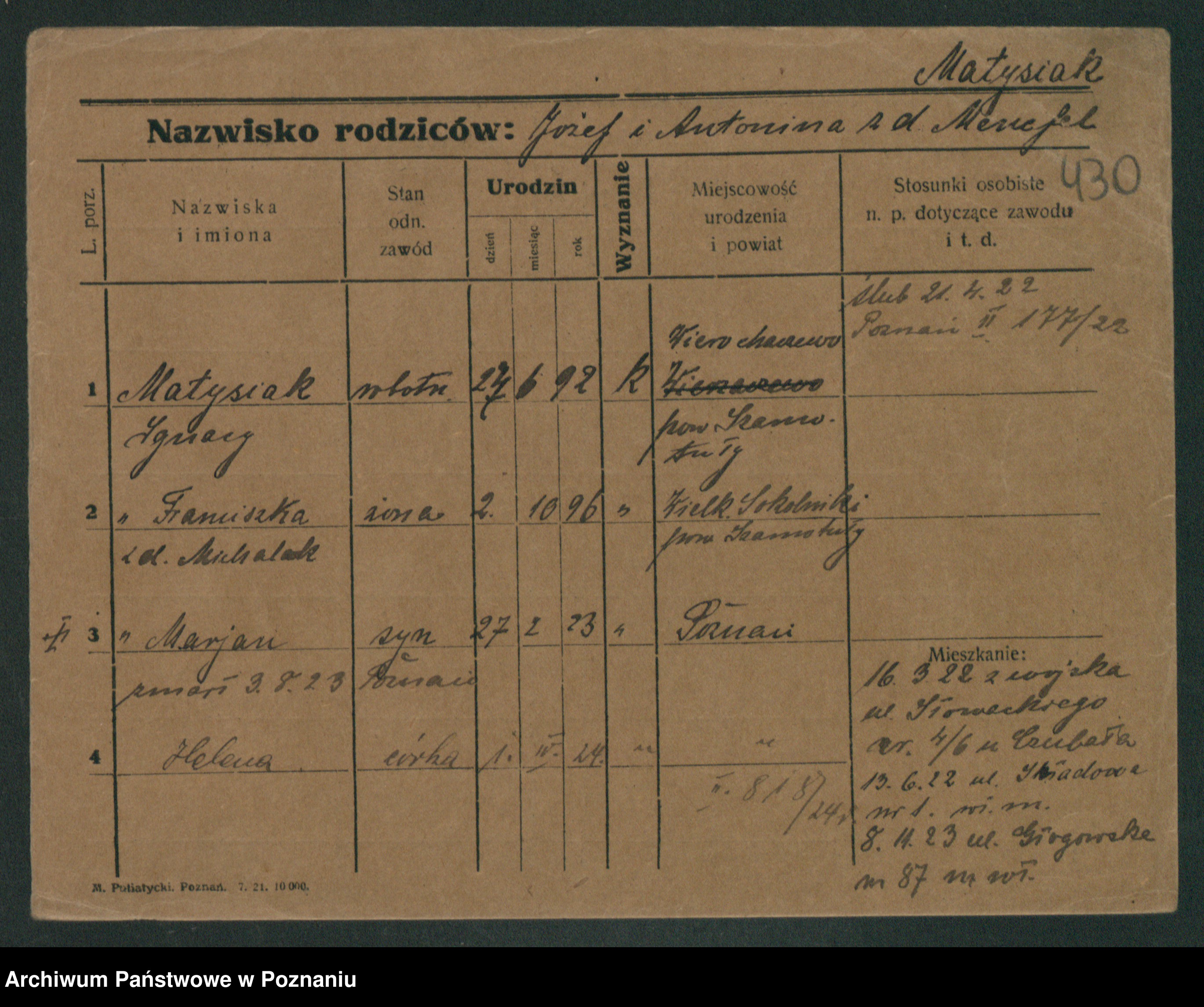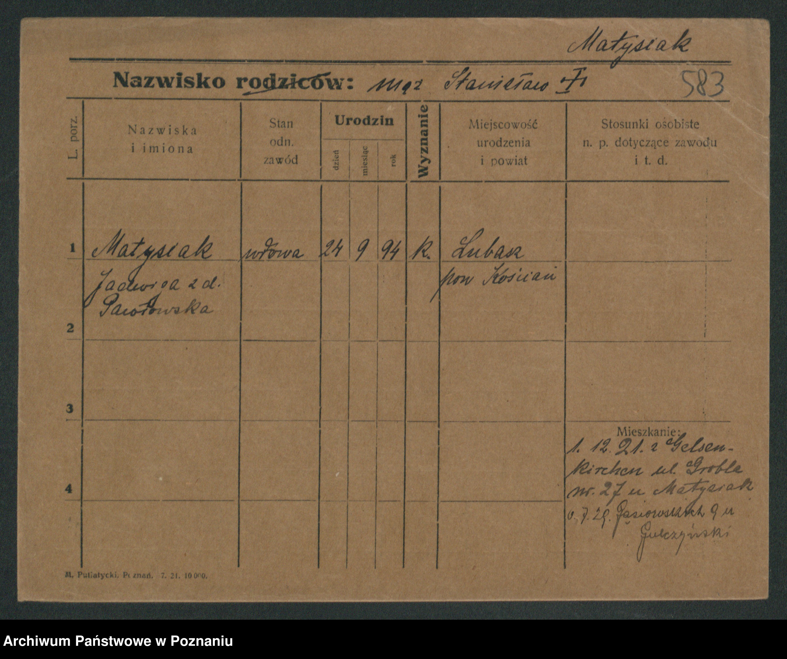 Matysik, Stanisława