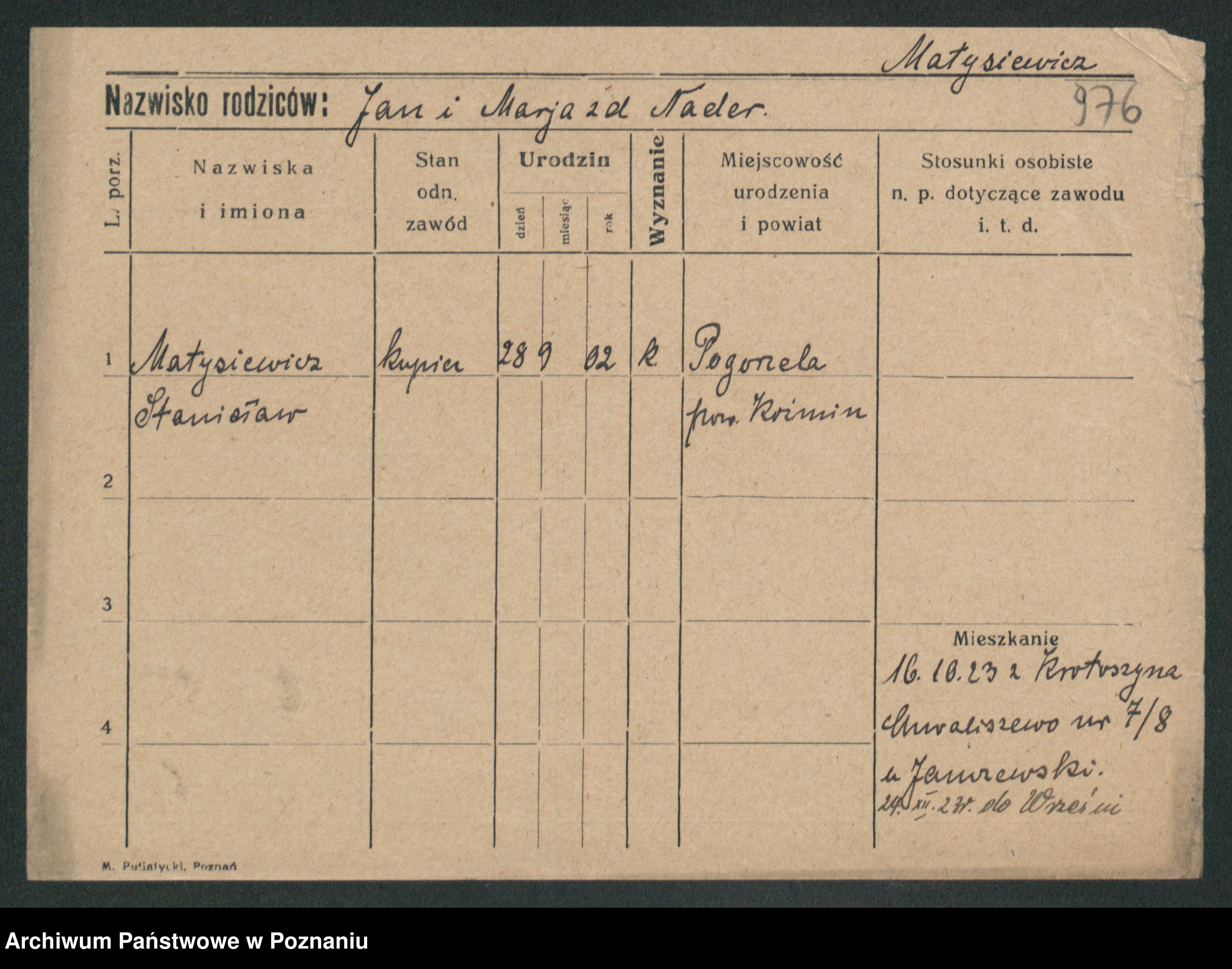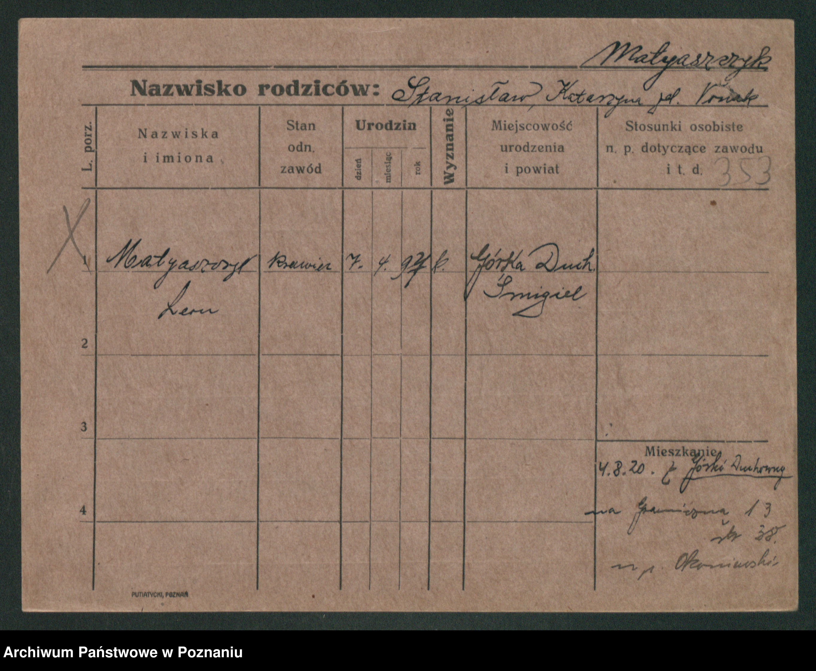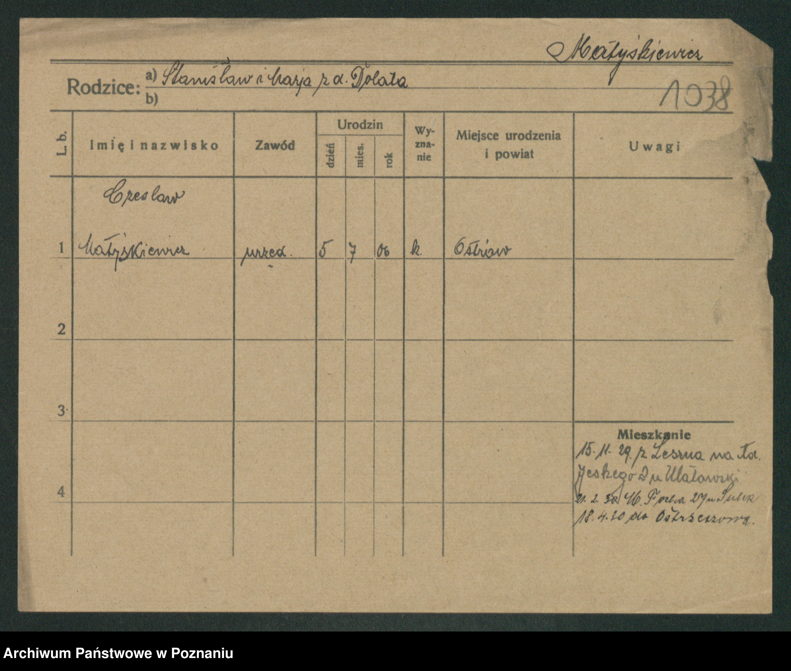 Matyszkiewicz, Stanisalus