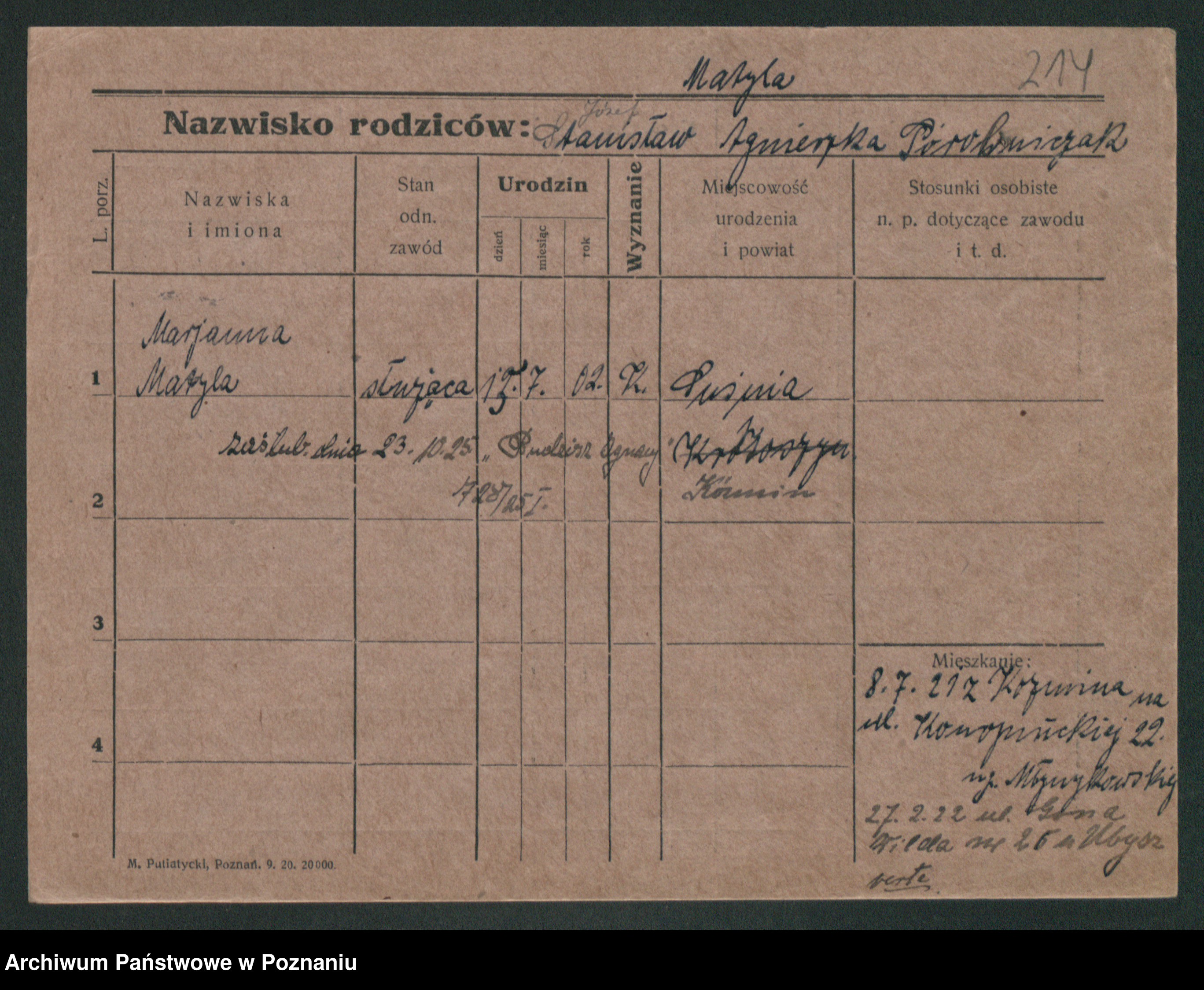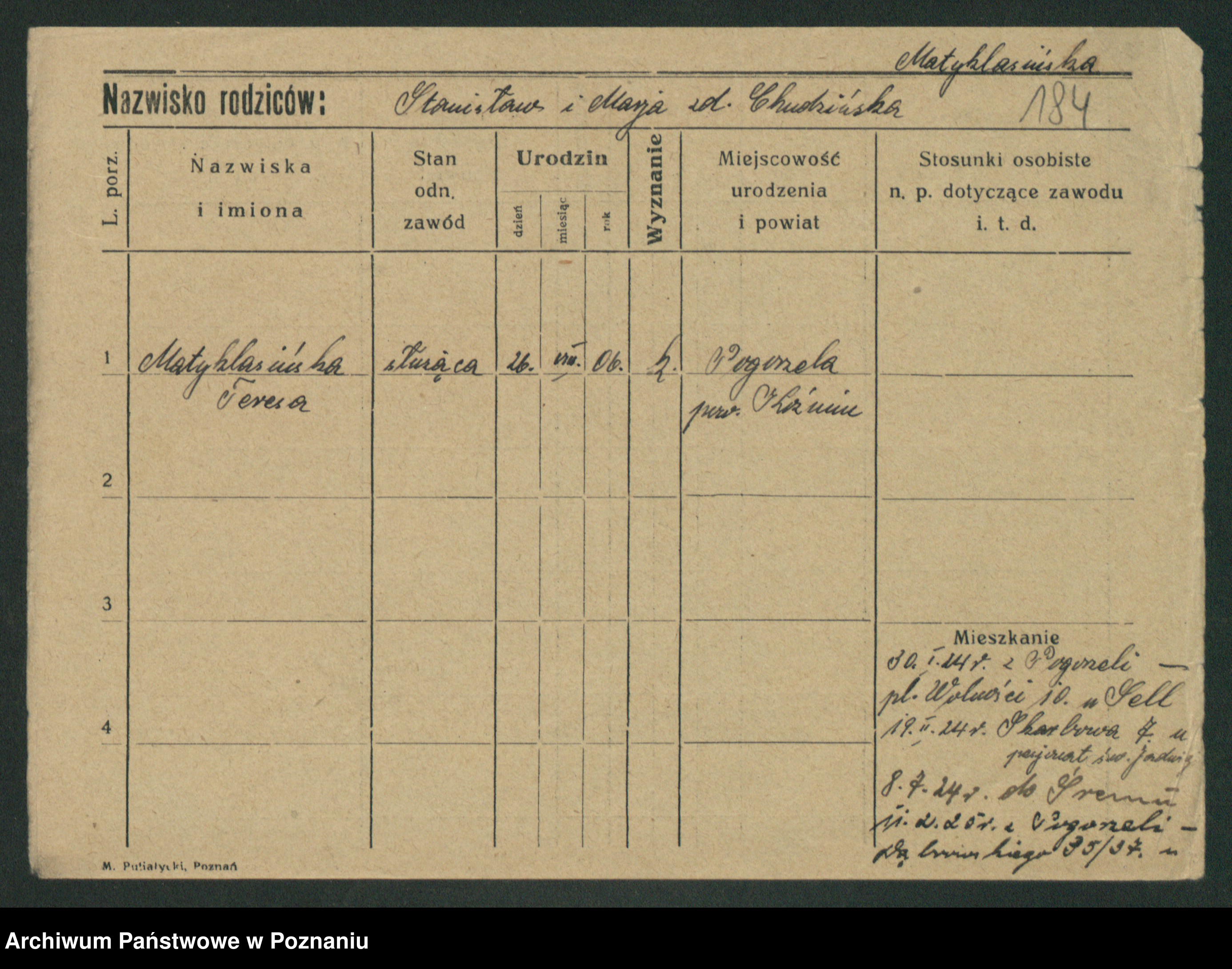 Matuszyńska, Marja