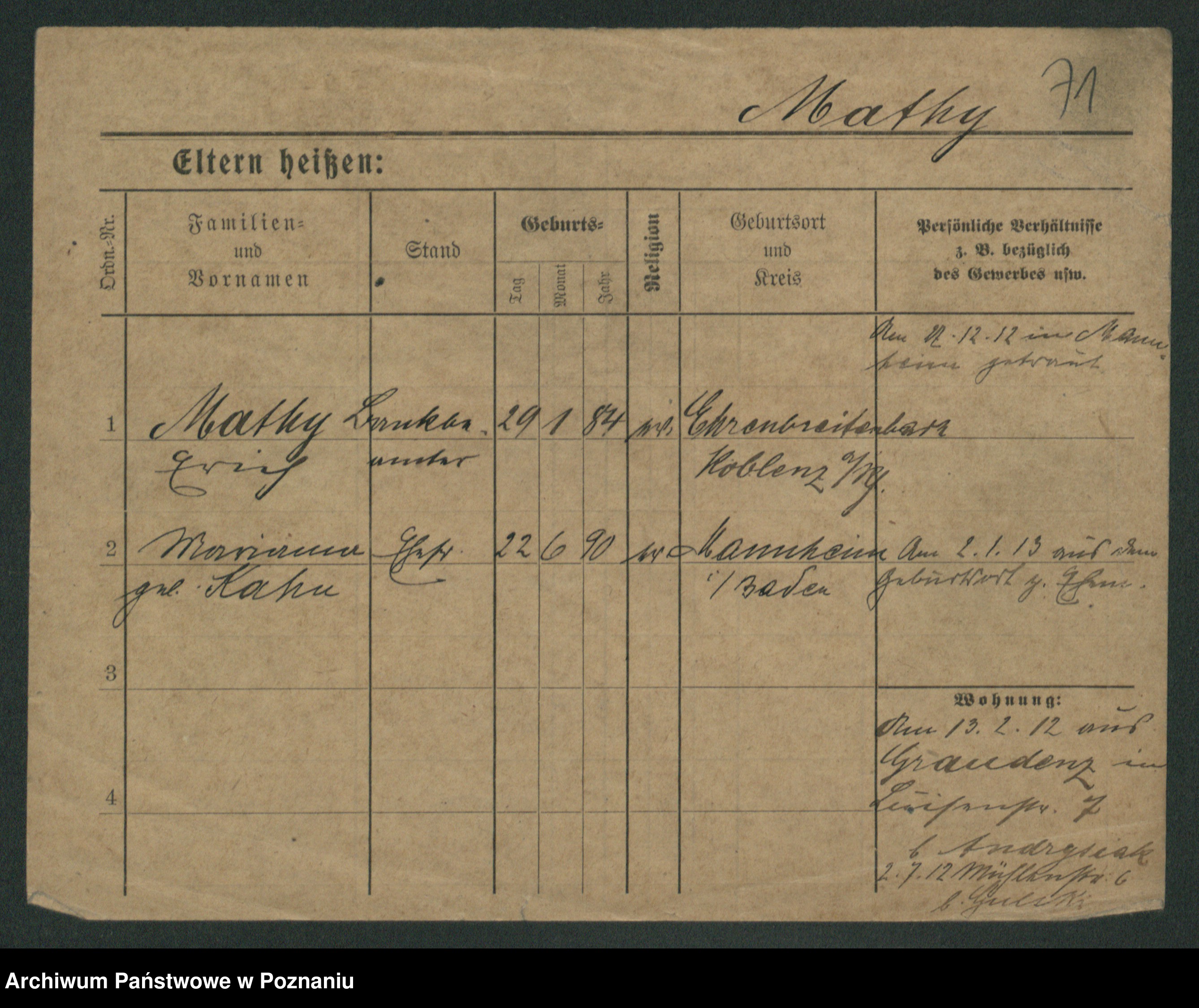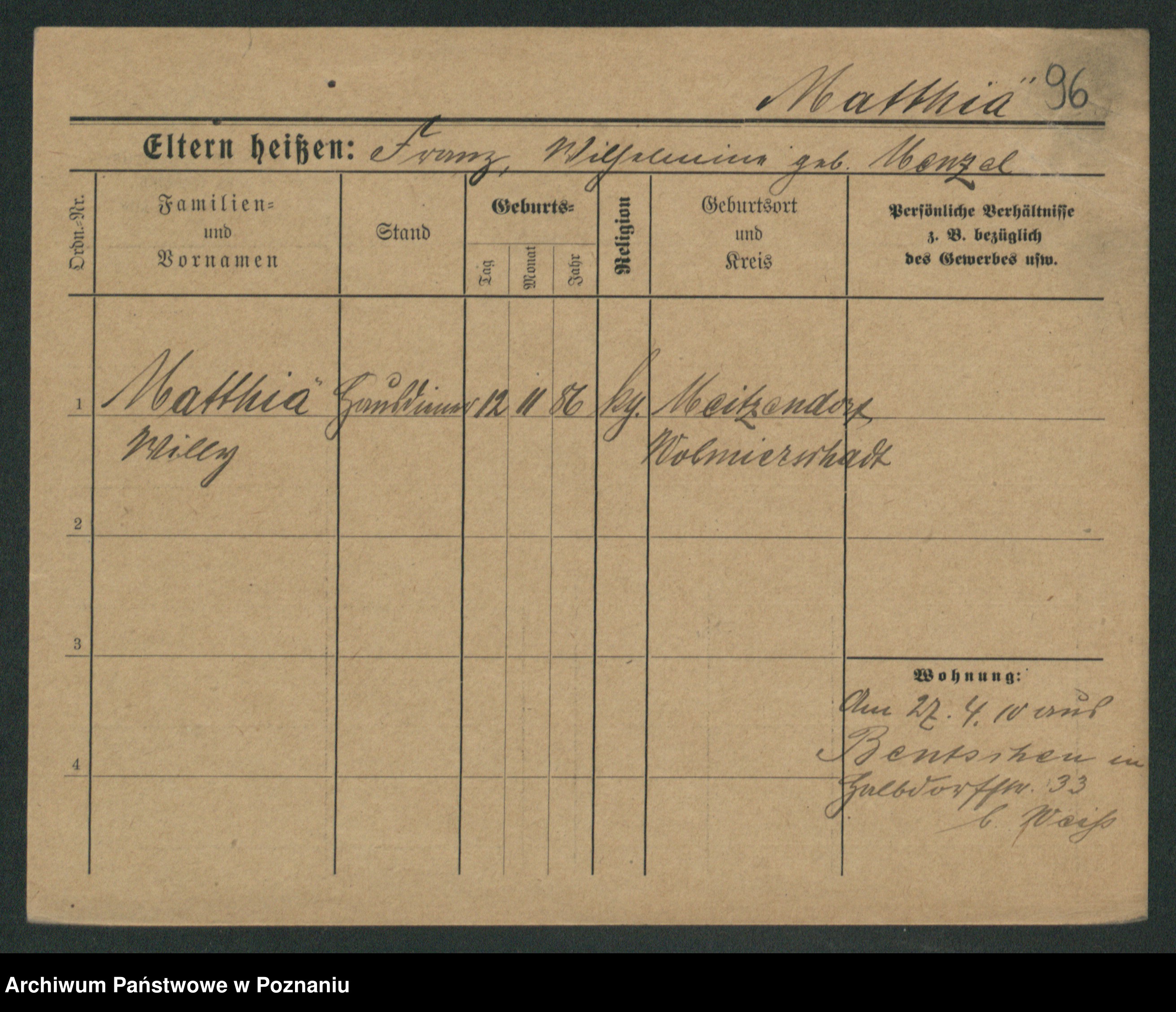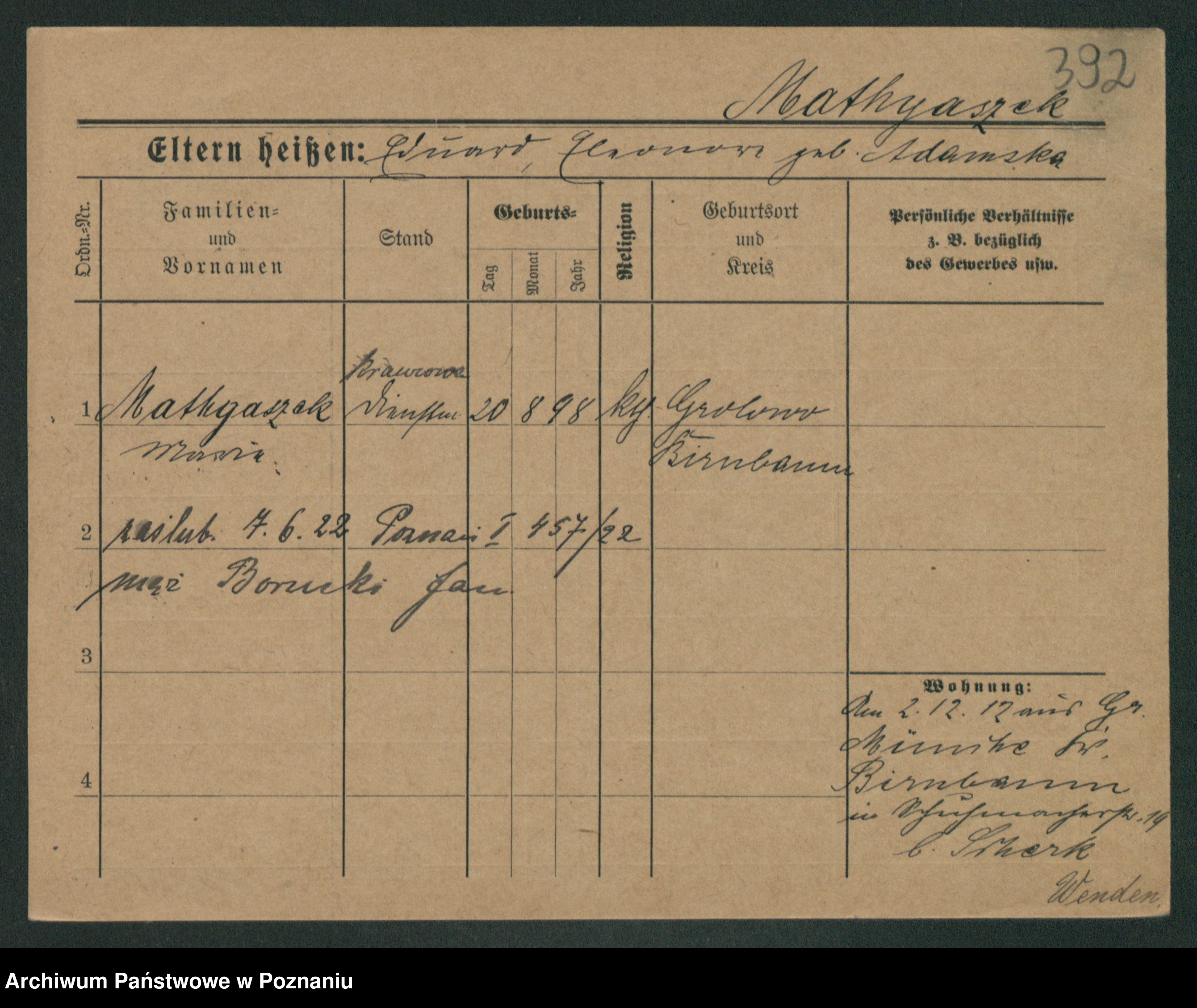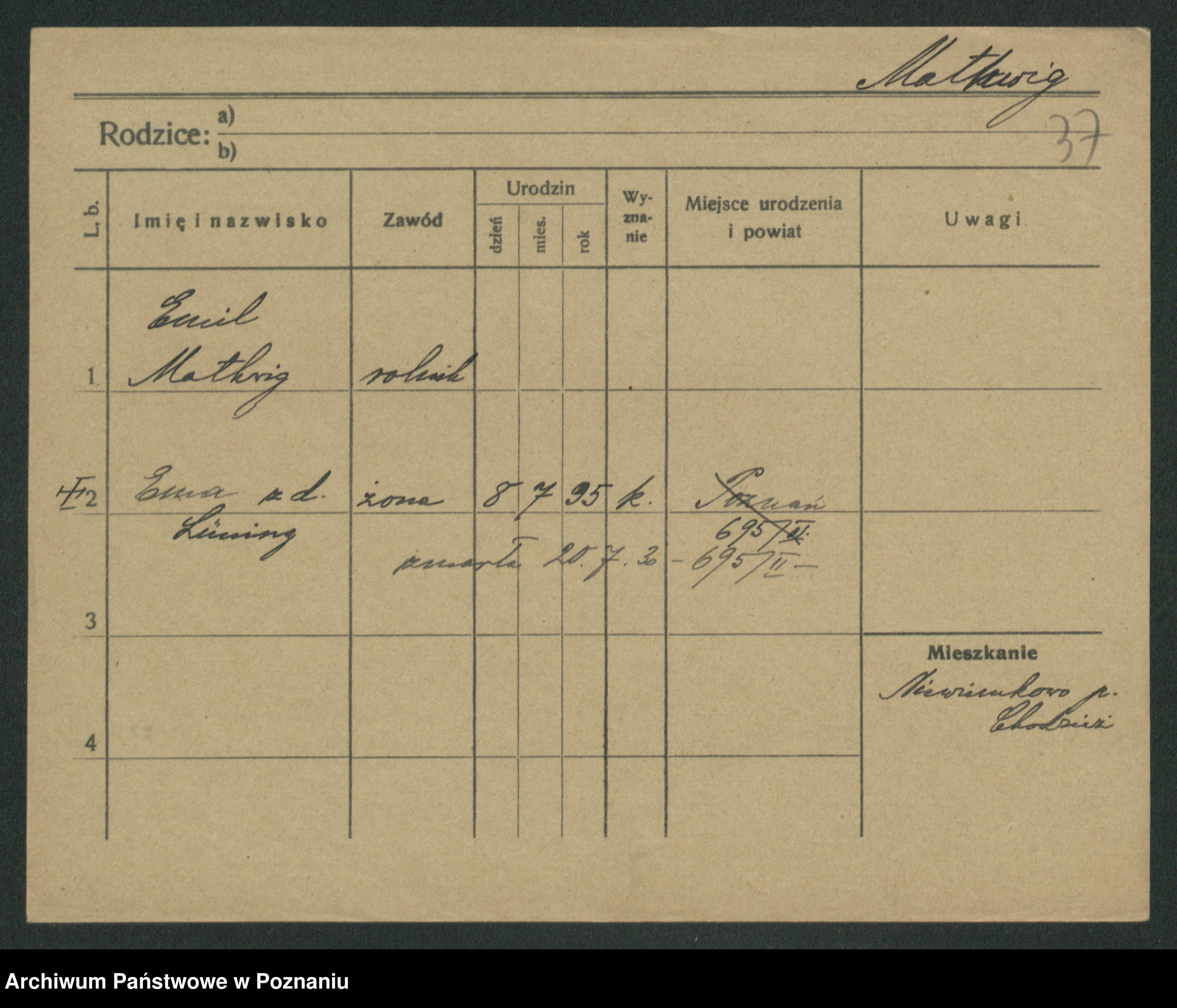 Mathwig zd. Lüning, Ema