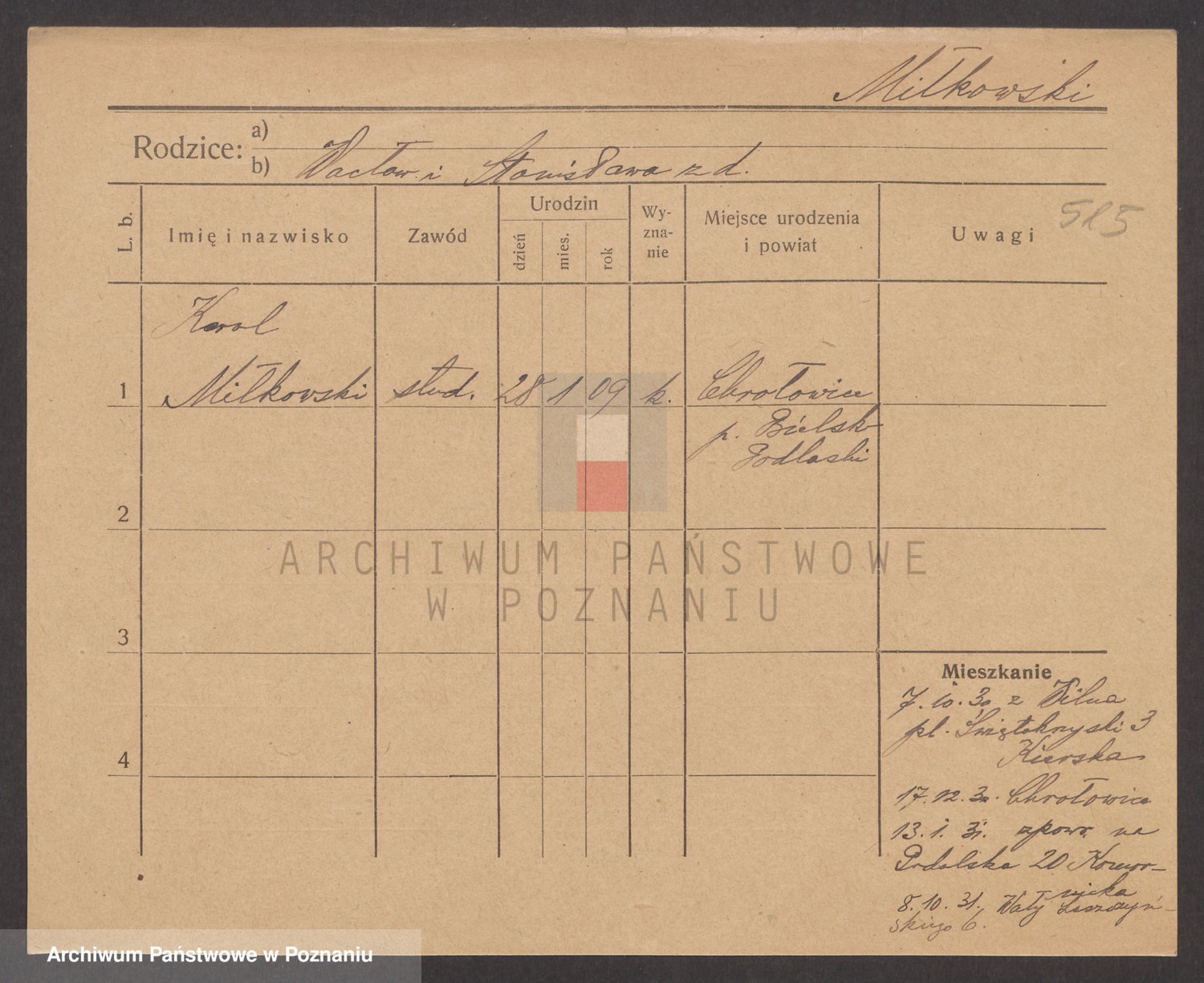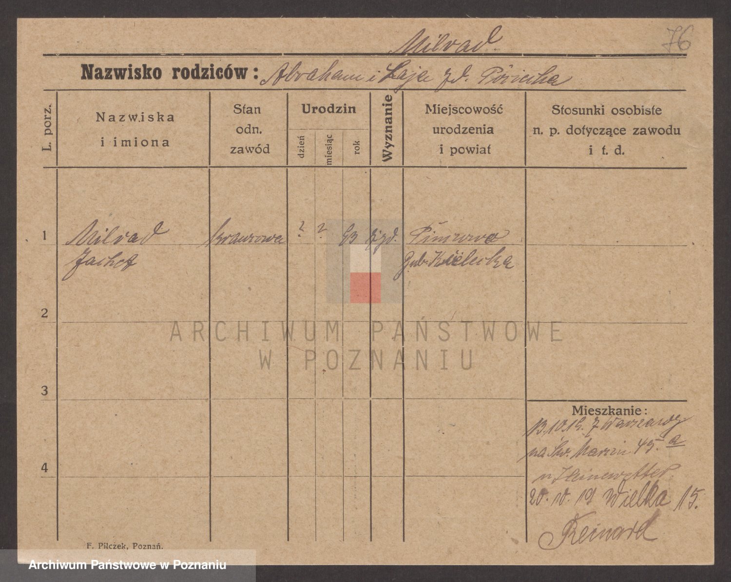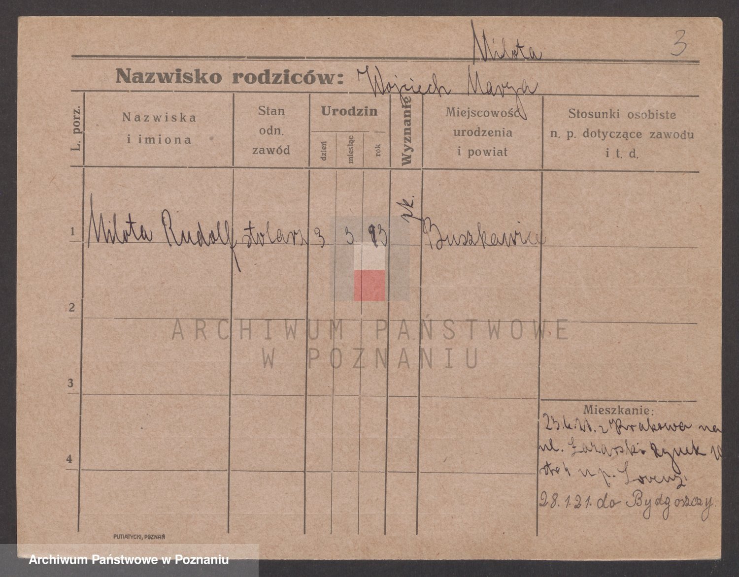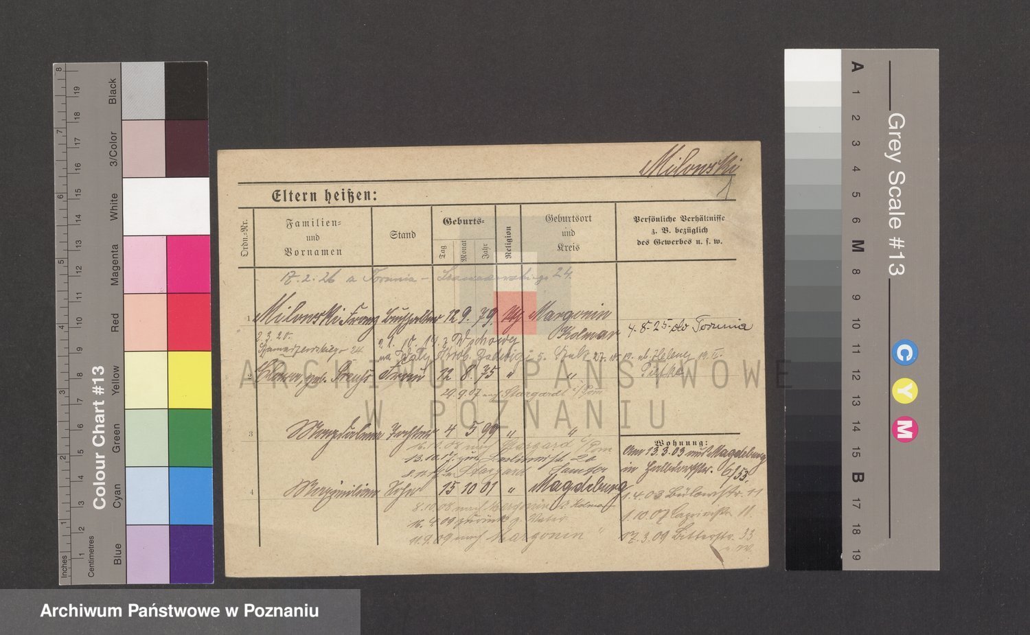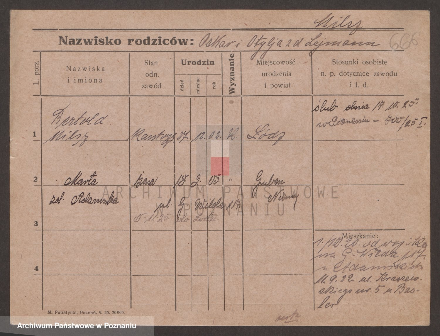Podgląd karty osobowej dostępny jest po kliknięciu na nazwisko lub ikonkę karty. Można dokonywać powiększenia (ikony na górze) lub przechodzić między kolejnymi skanami (strzałki po bokach).