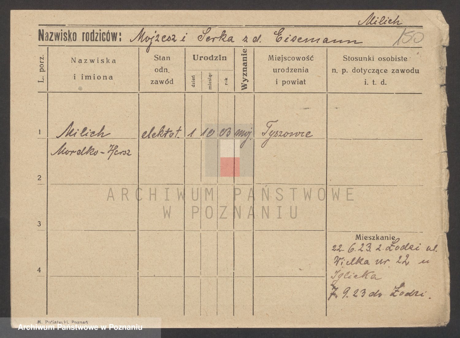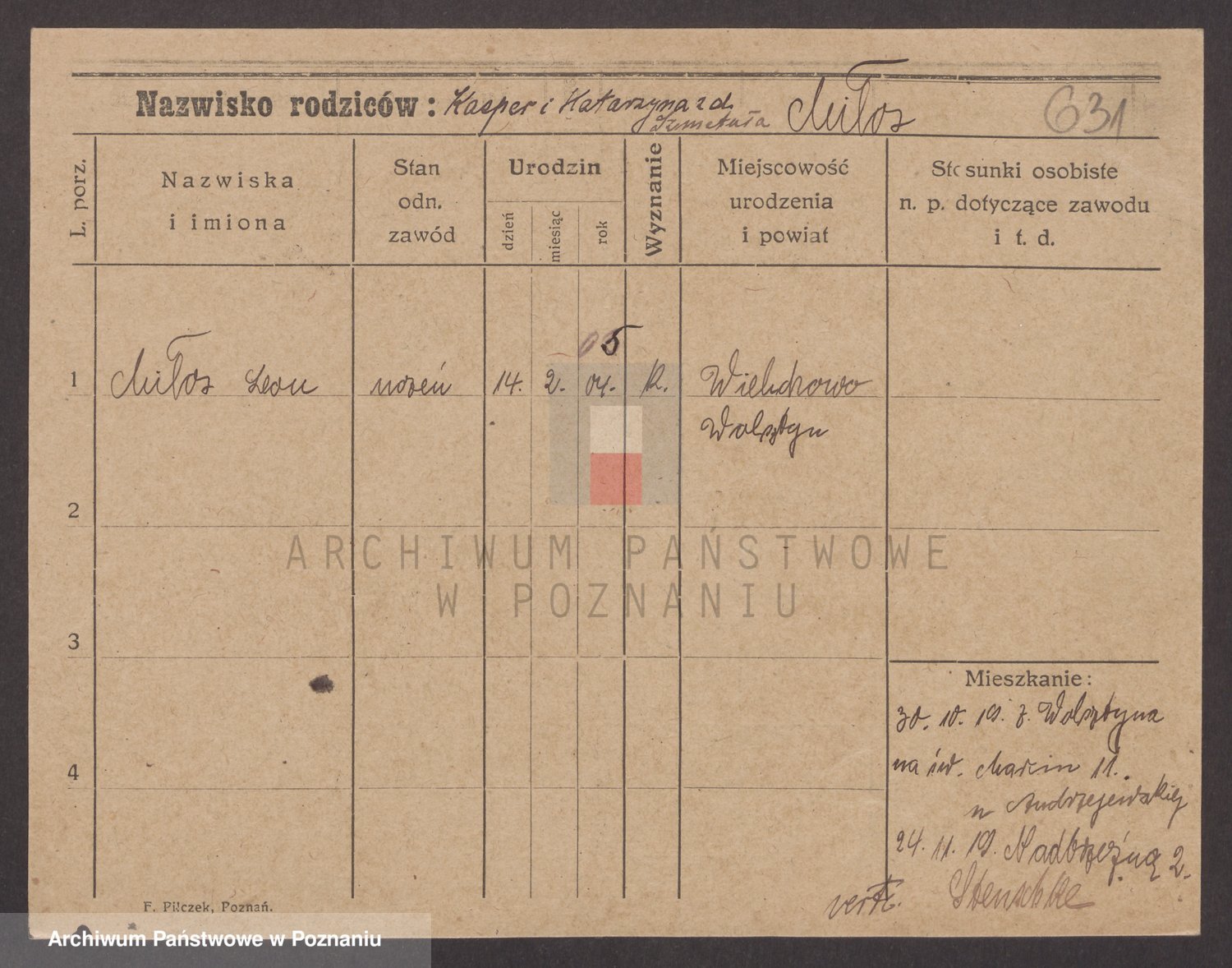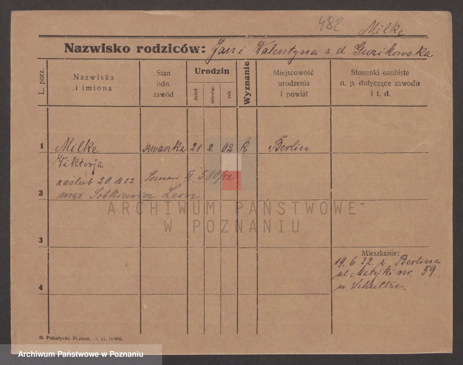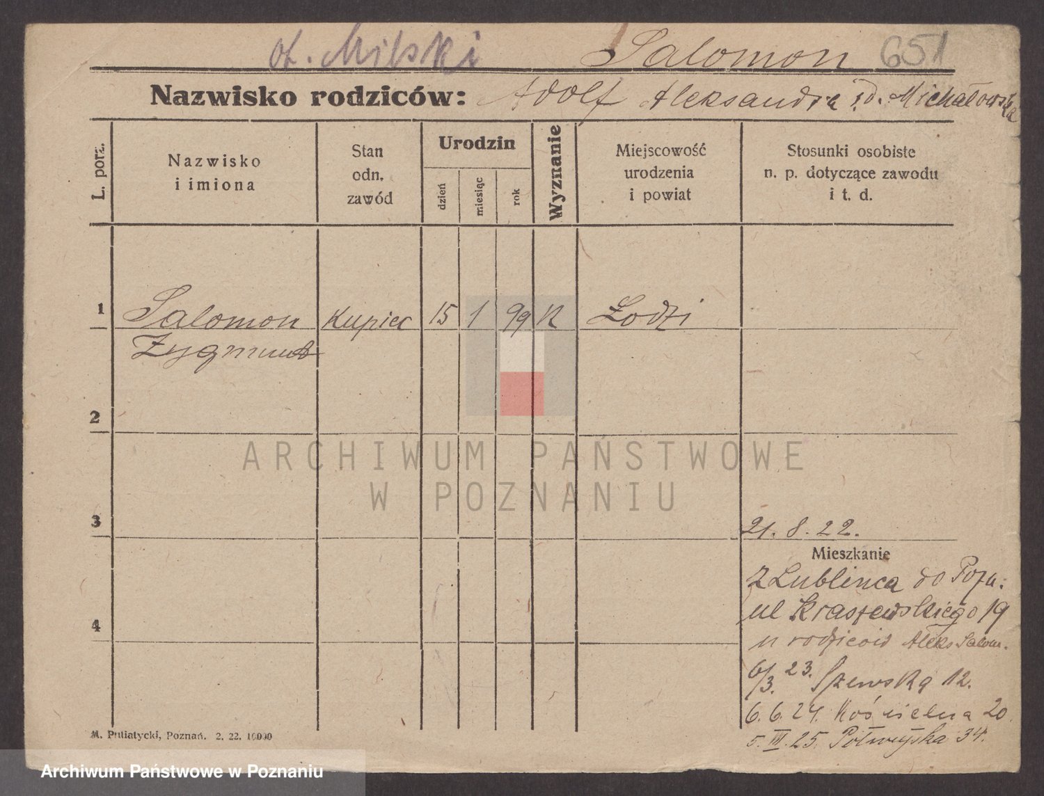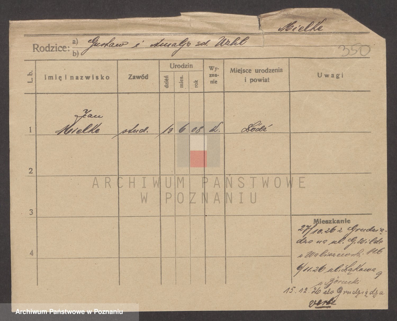Podgląd karty osobowej dostępny jest po kliknięciu na nazwisko lub ikonkę karty. Można dokonywać powiększenia (ikony na górze) lub przechodzić między kolejnymi skanami (strzałki po bokach).