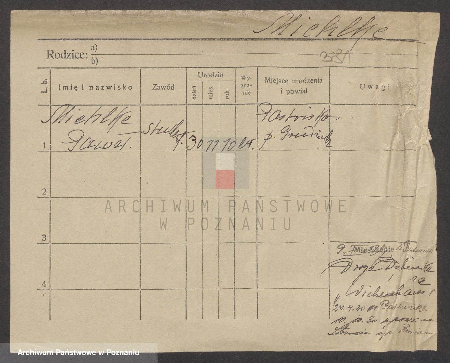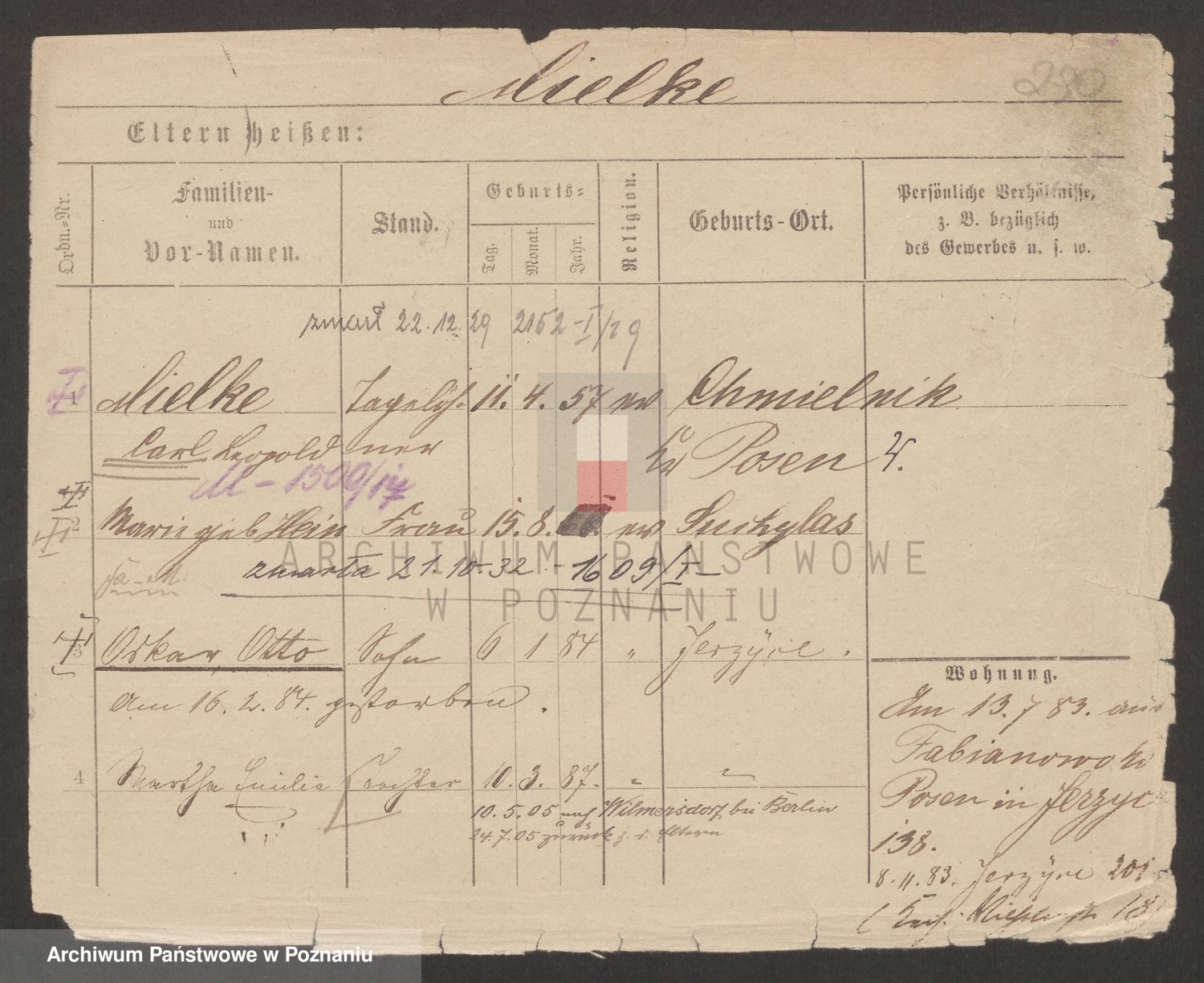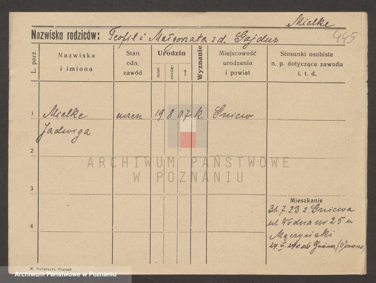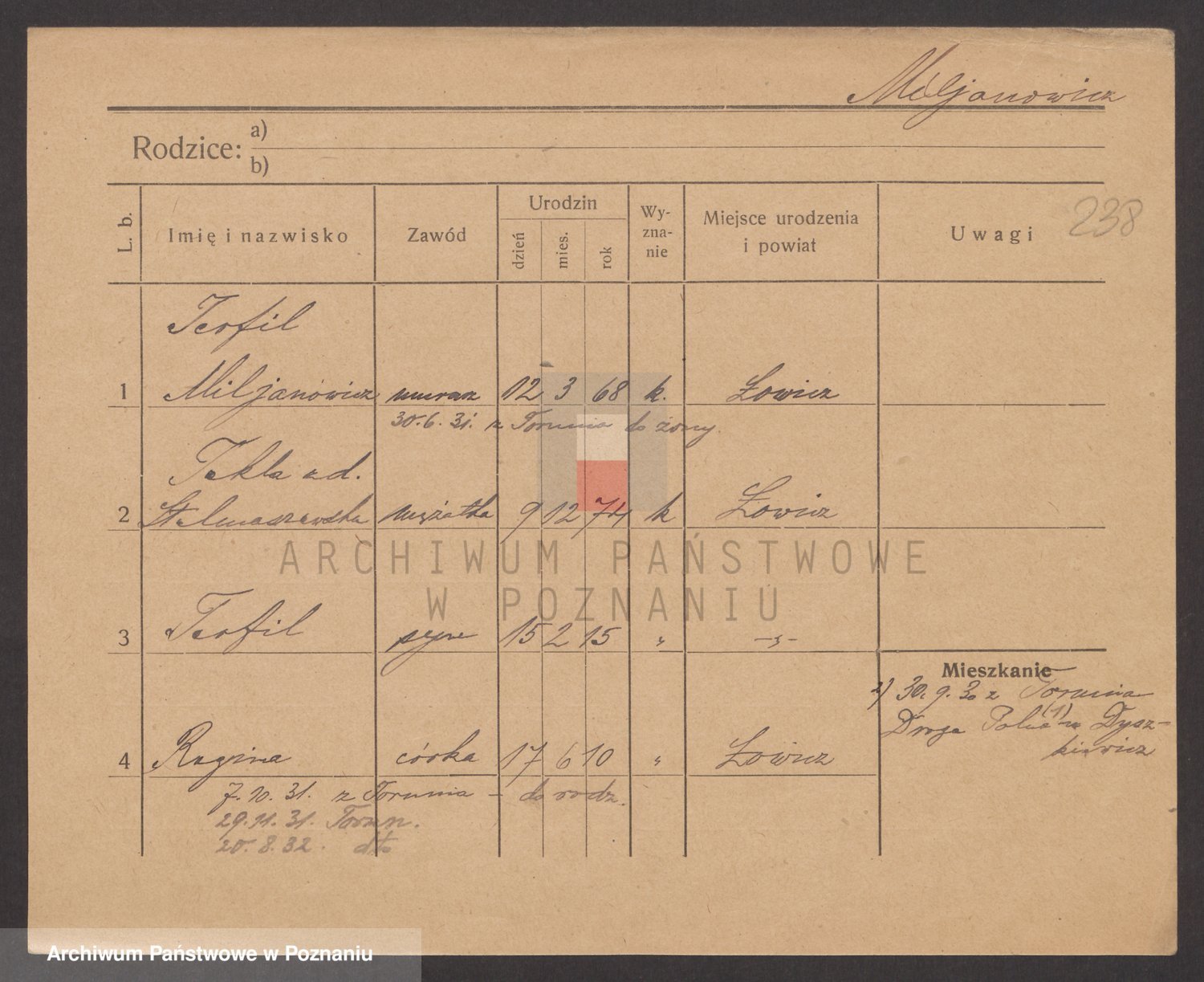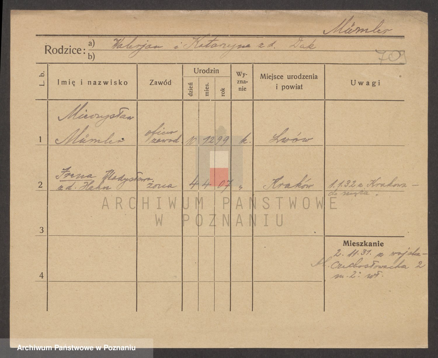 Podgląd karty osobowej dostępny jest po kliknięciu na nazwisko lub ikonkę karty. Można dokonywać powiększenia (ikony na górze) lub przechodzić między kolejnymi skanami (strzałki po bokach).