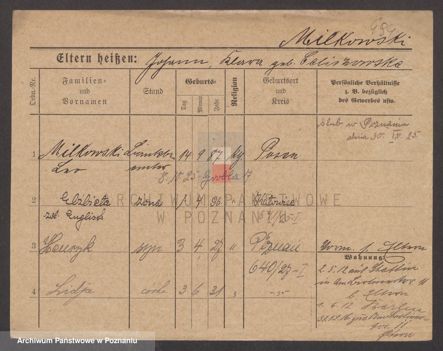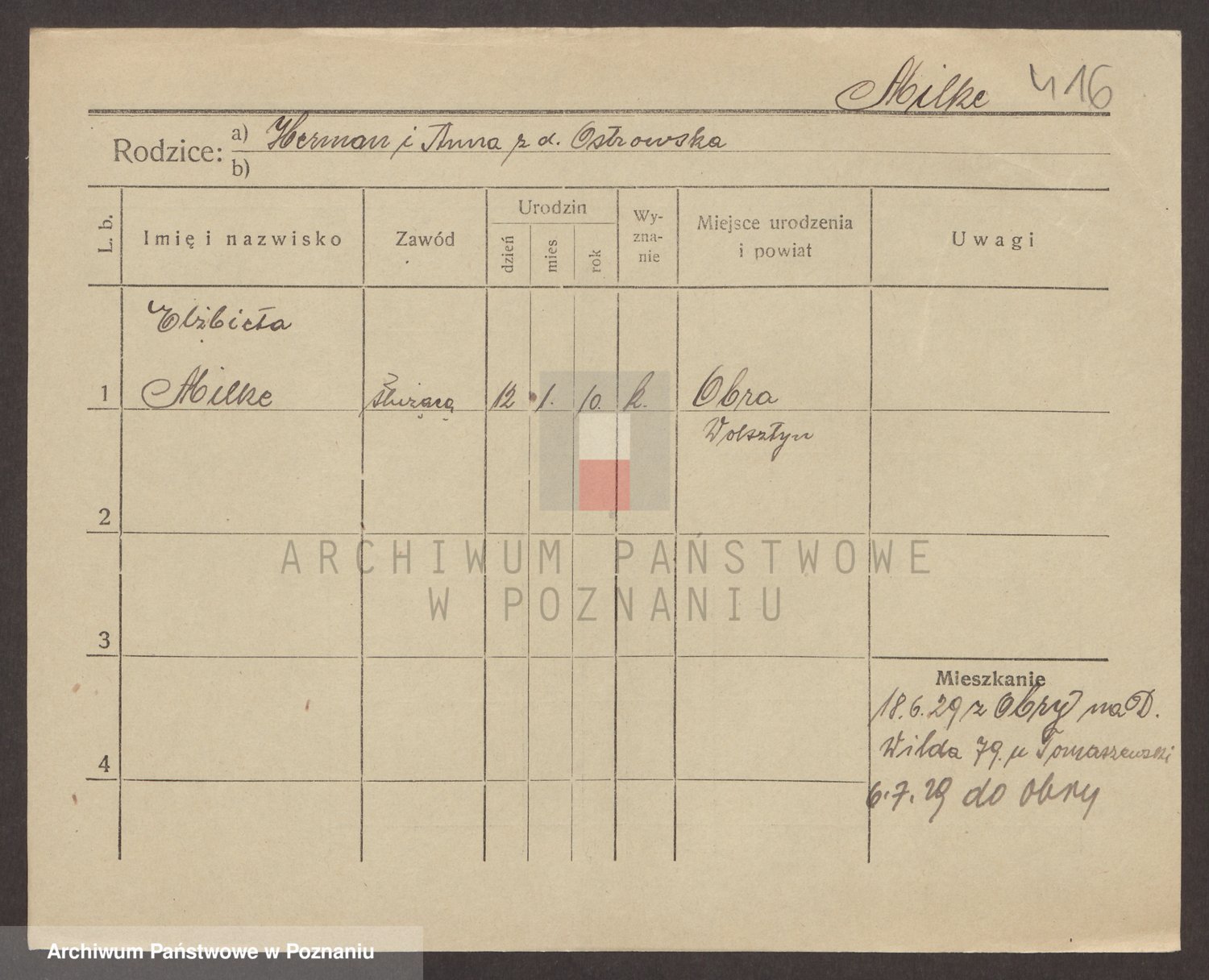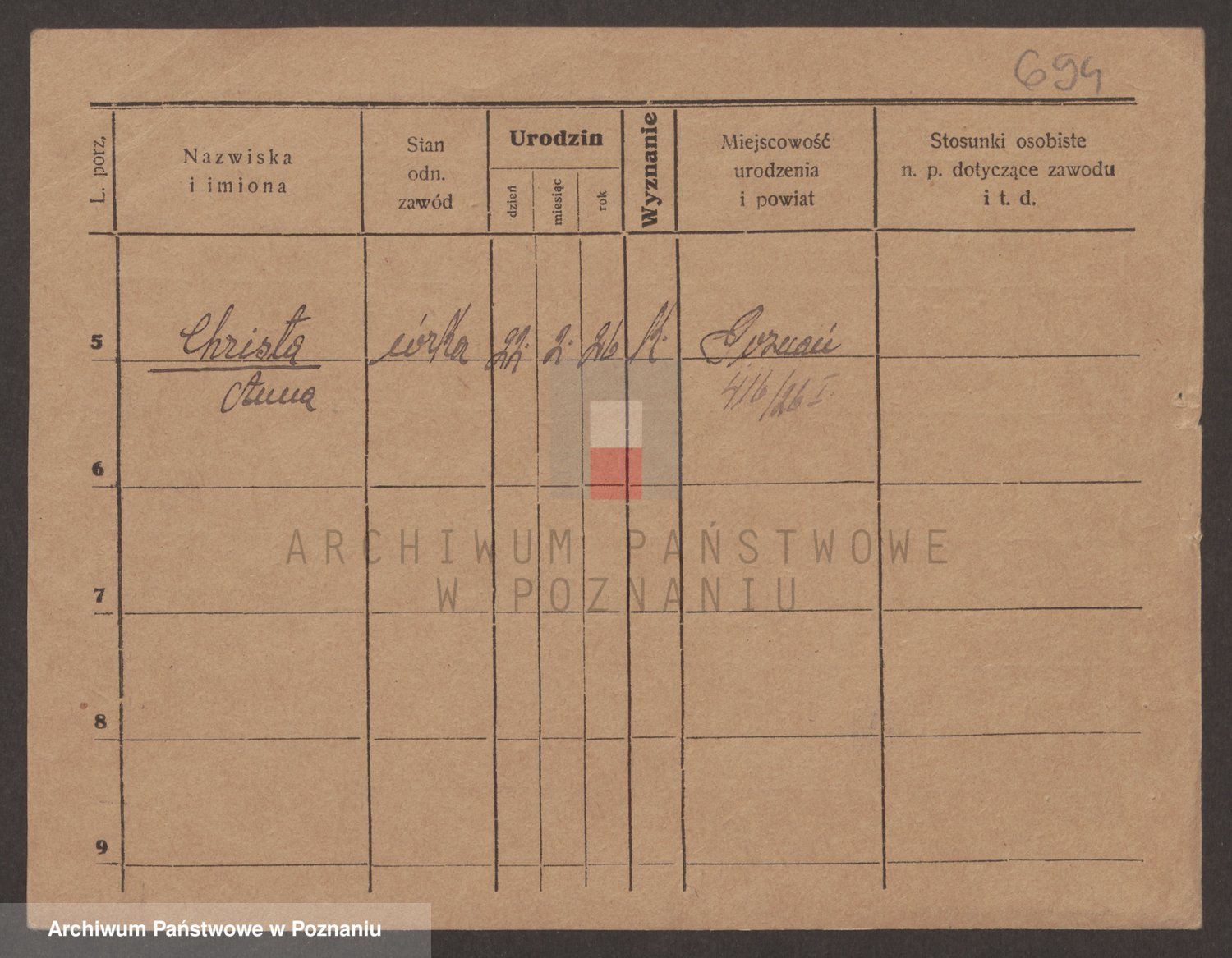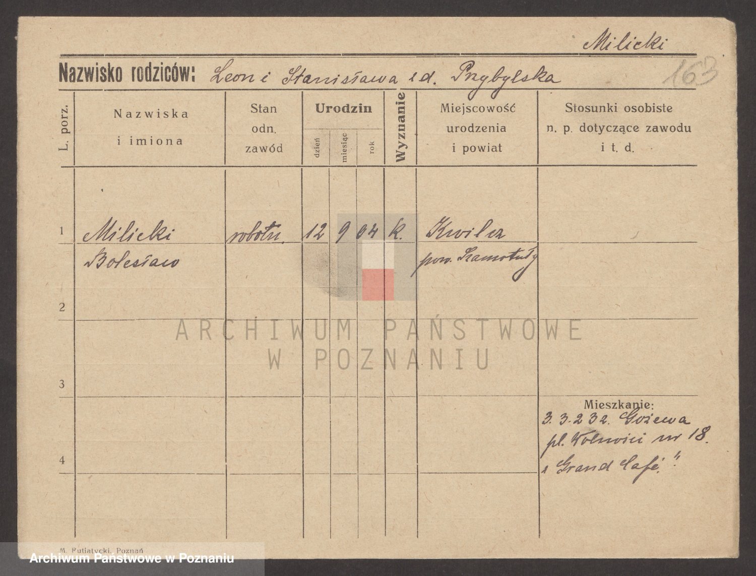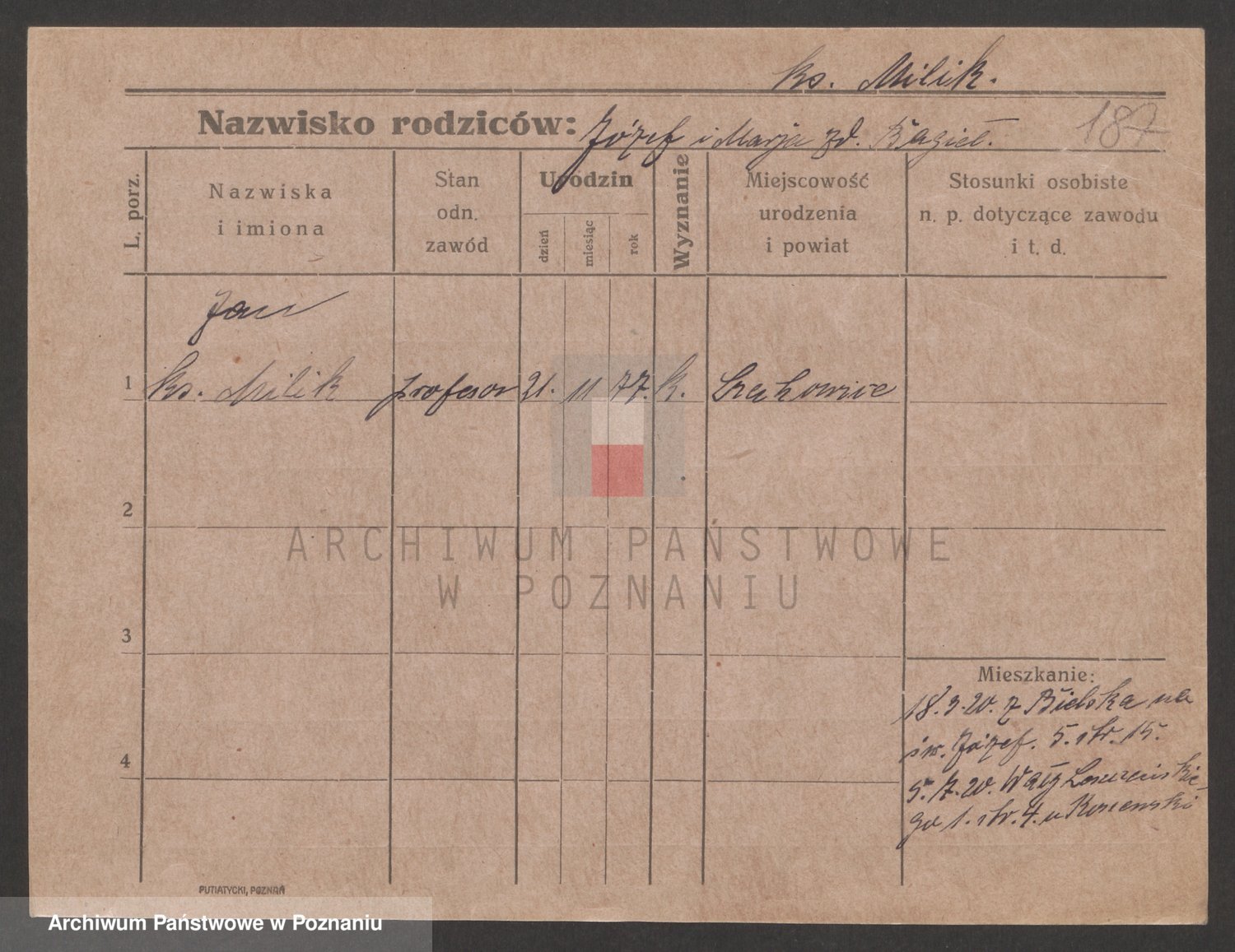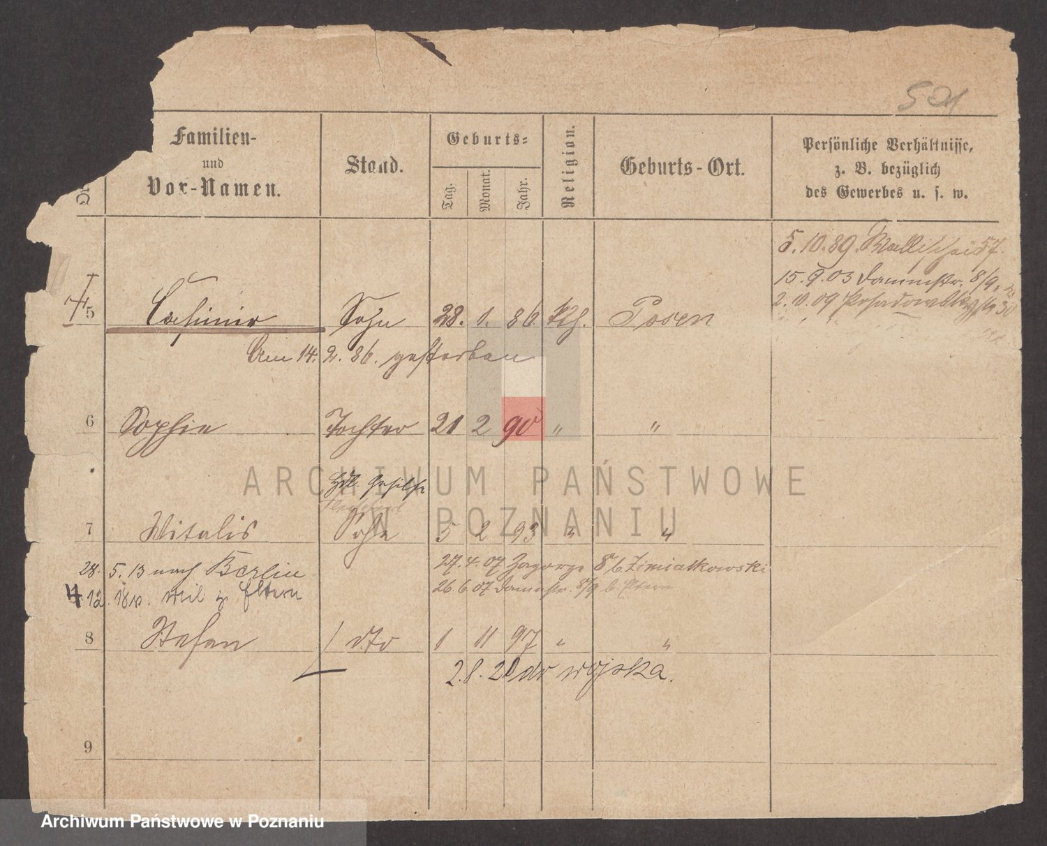 Podgląd karty osobowej dostępny jest po kliknięciu na nazwisko lub ikonkę karty. Można dokonywać powiększenia (ikony na górze) lub przechodzić między kolejnymi skanami (strzałki po bokach).