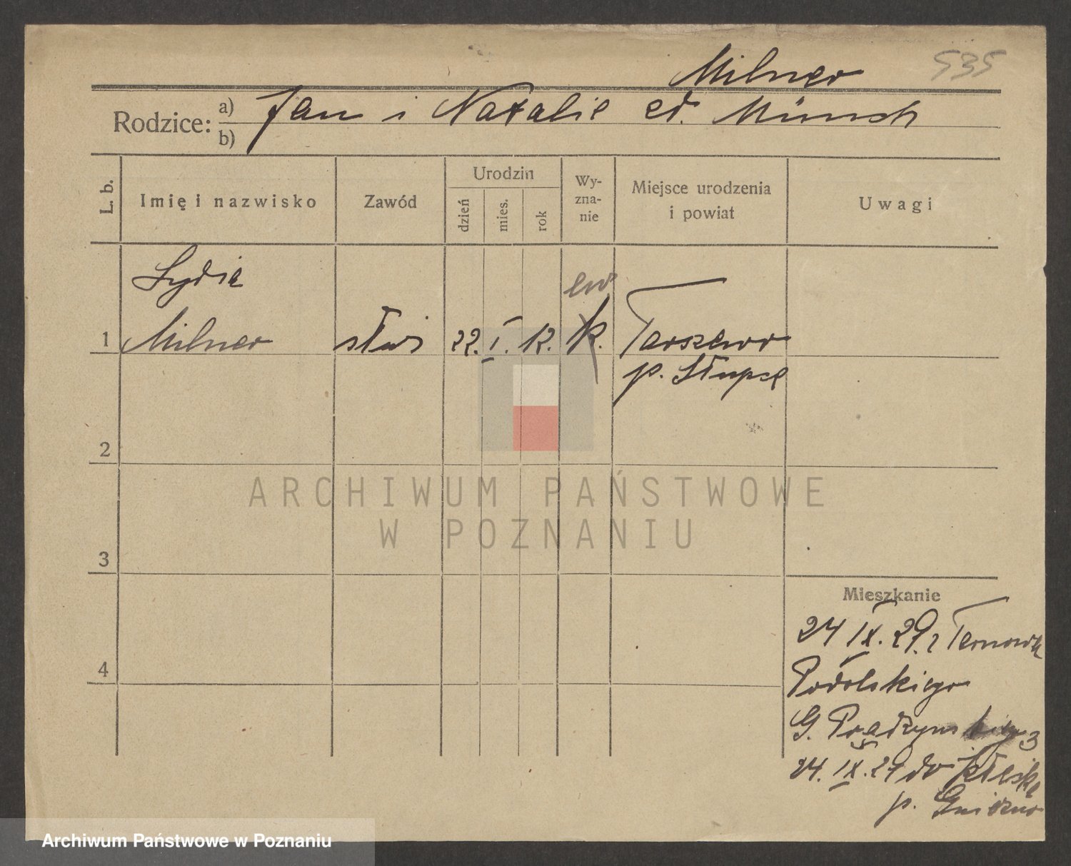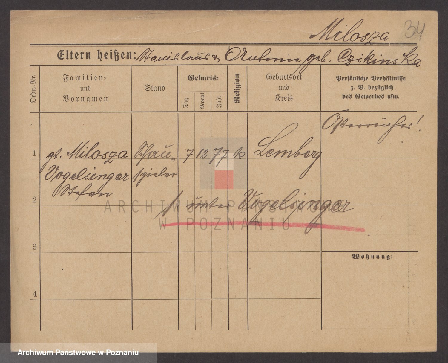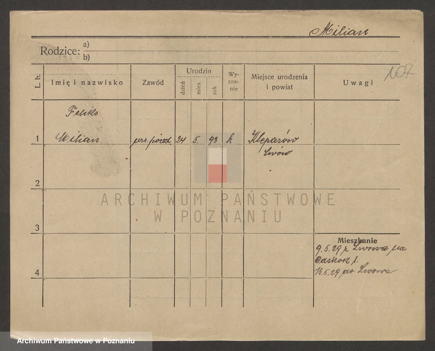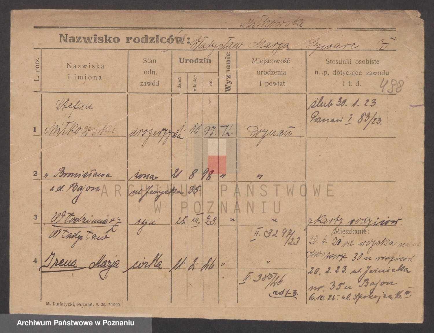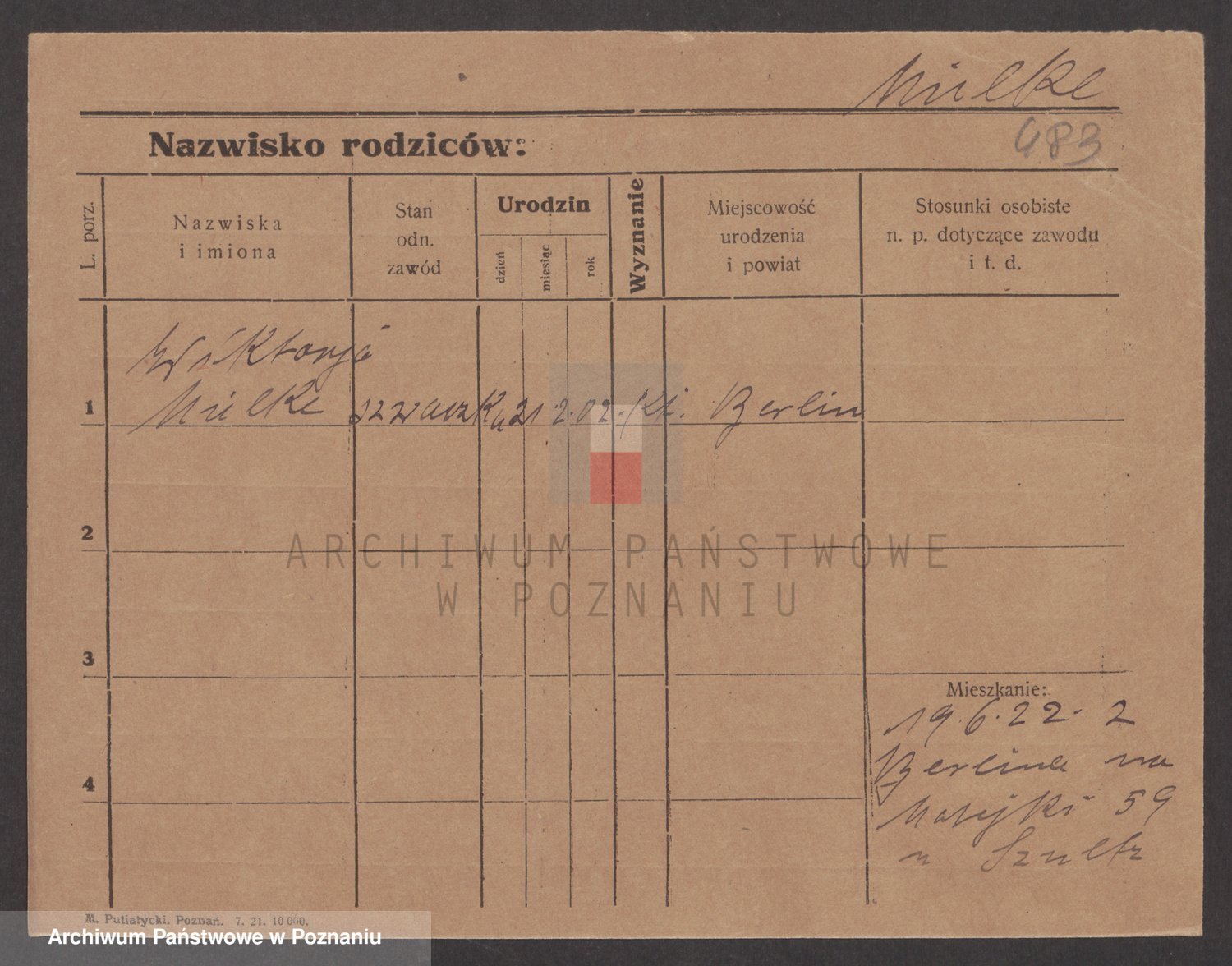 Podgląd karty osobowej dostępny jest po kliknięciu na nazwisko lub ikonkę karty. Można dokonywać powiększenia (ikony na górze) lub przechodzić między kolejnymi skanami (strzałki po bokach).