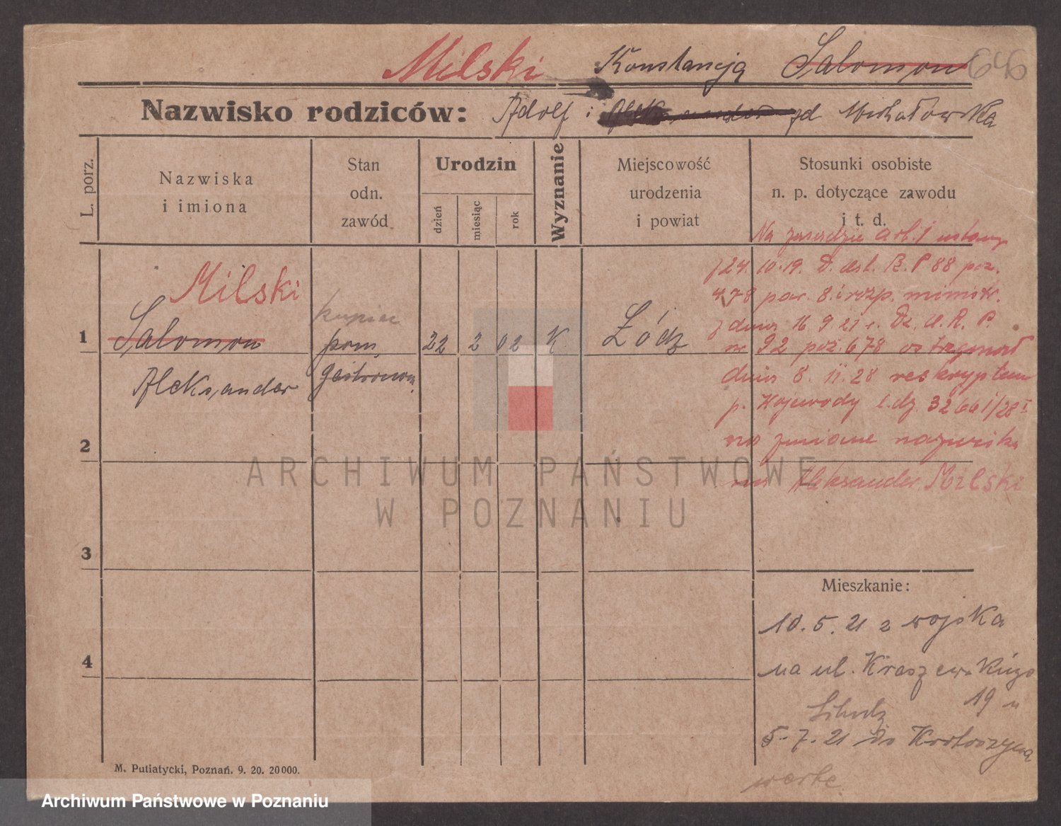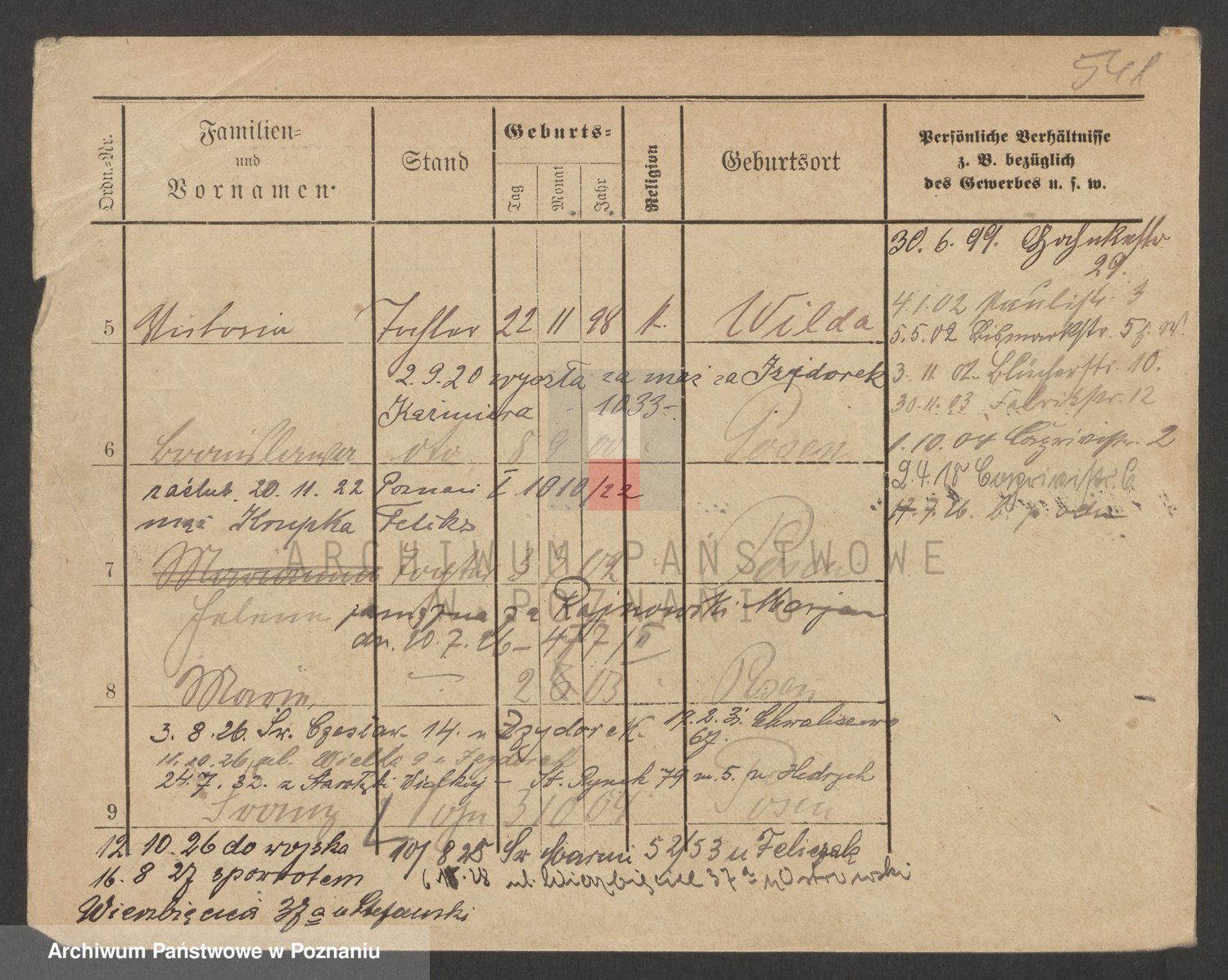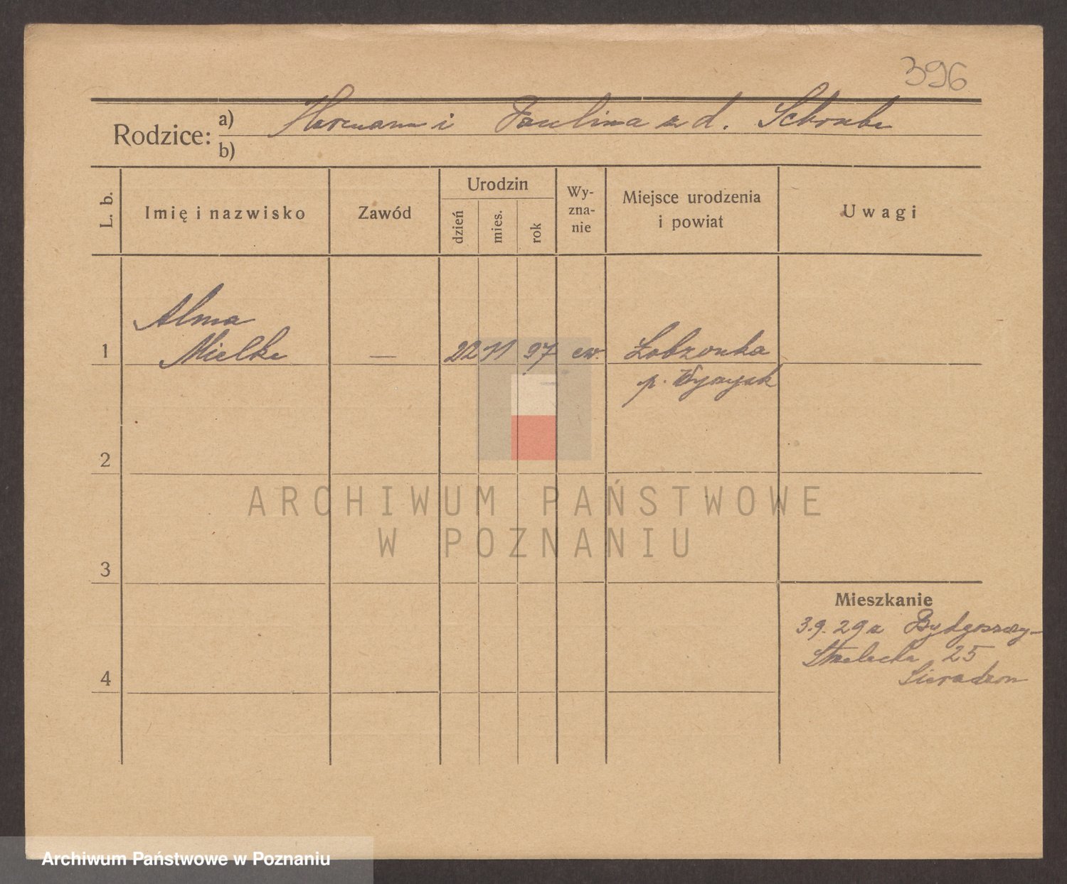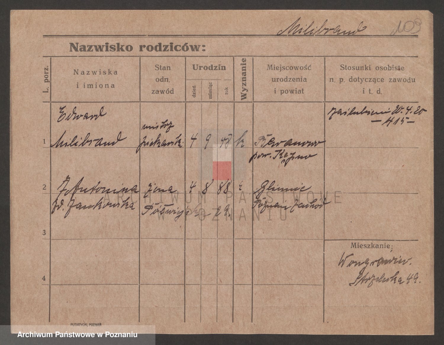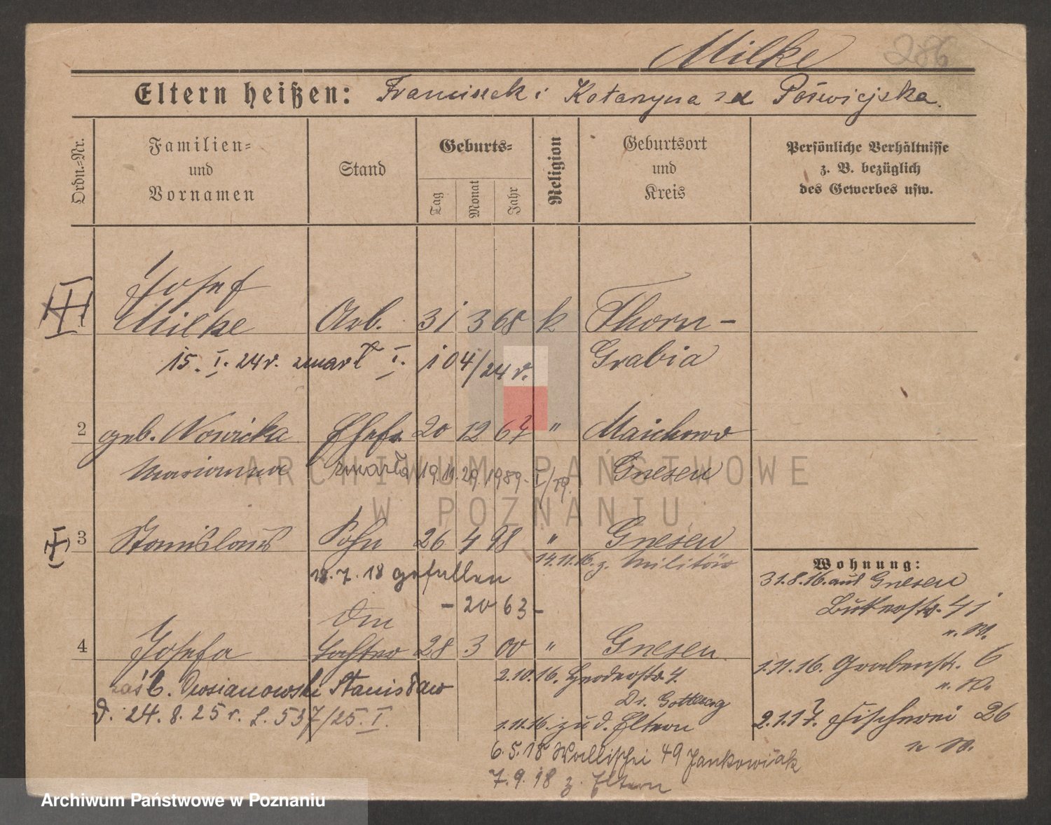 Podgląd karty osobowej dostępny jest po kliknięciu na nazwisko lub ikonkę karty. Można dokonywać powiększenia (ikony na górze) lub przechodzić między kolejnymi skanami (strzałki po bokach).
