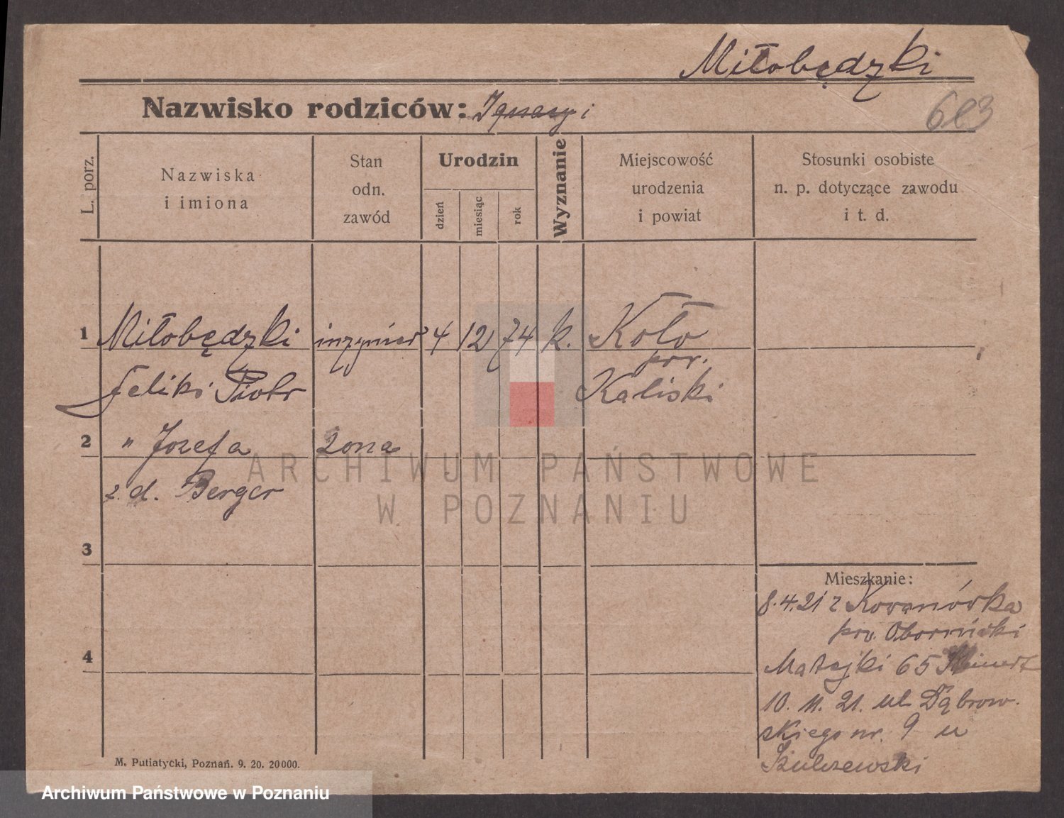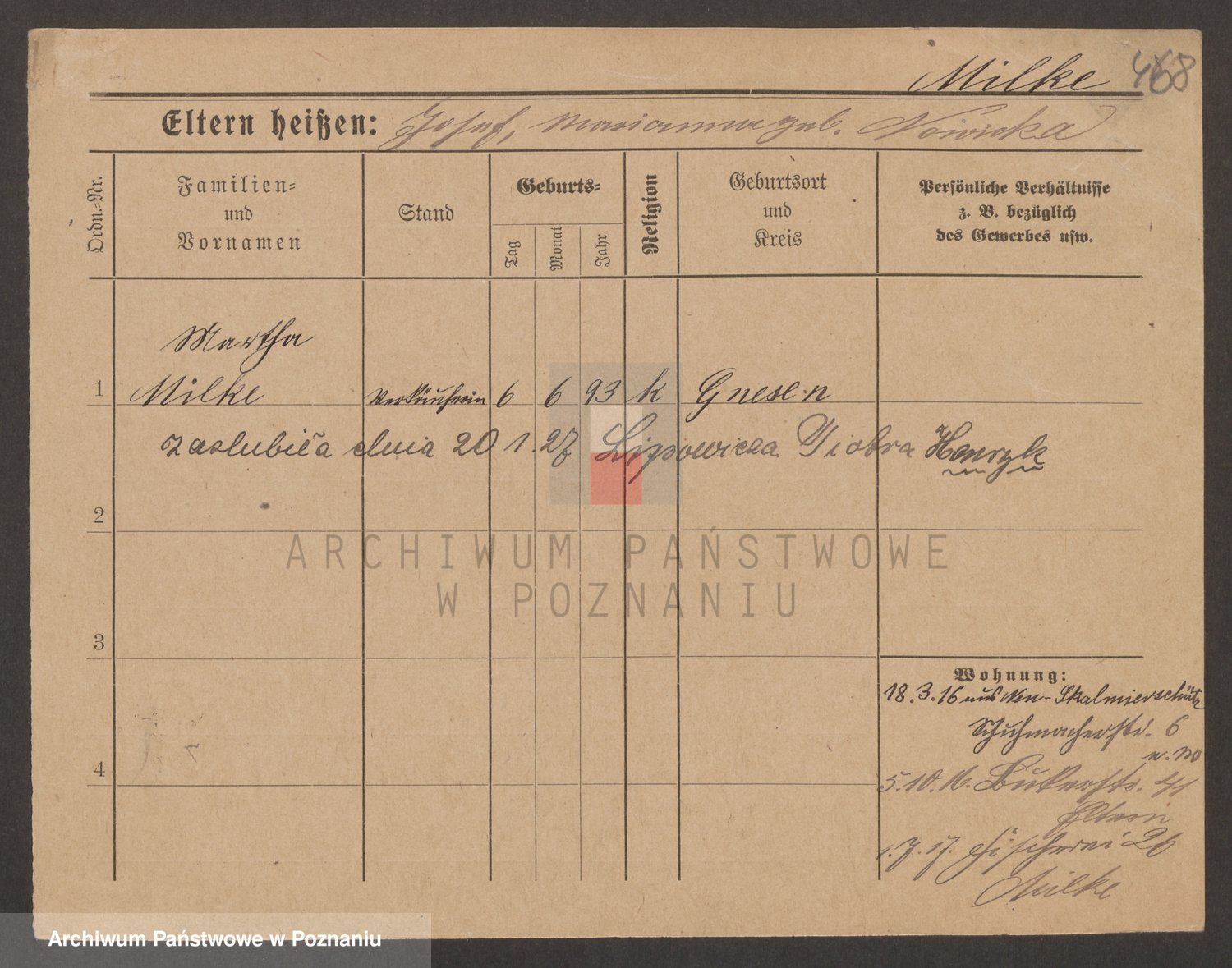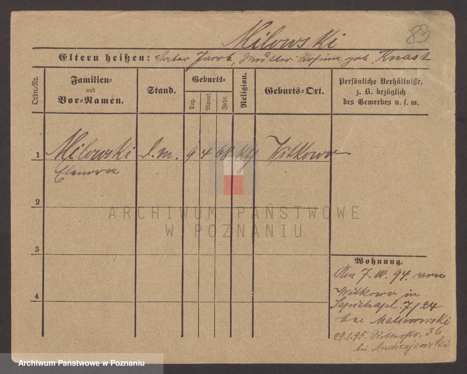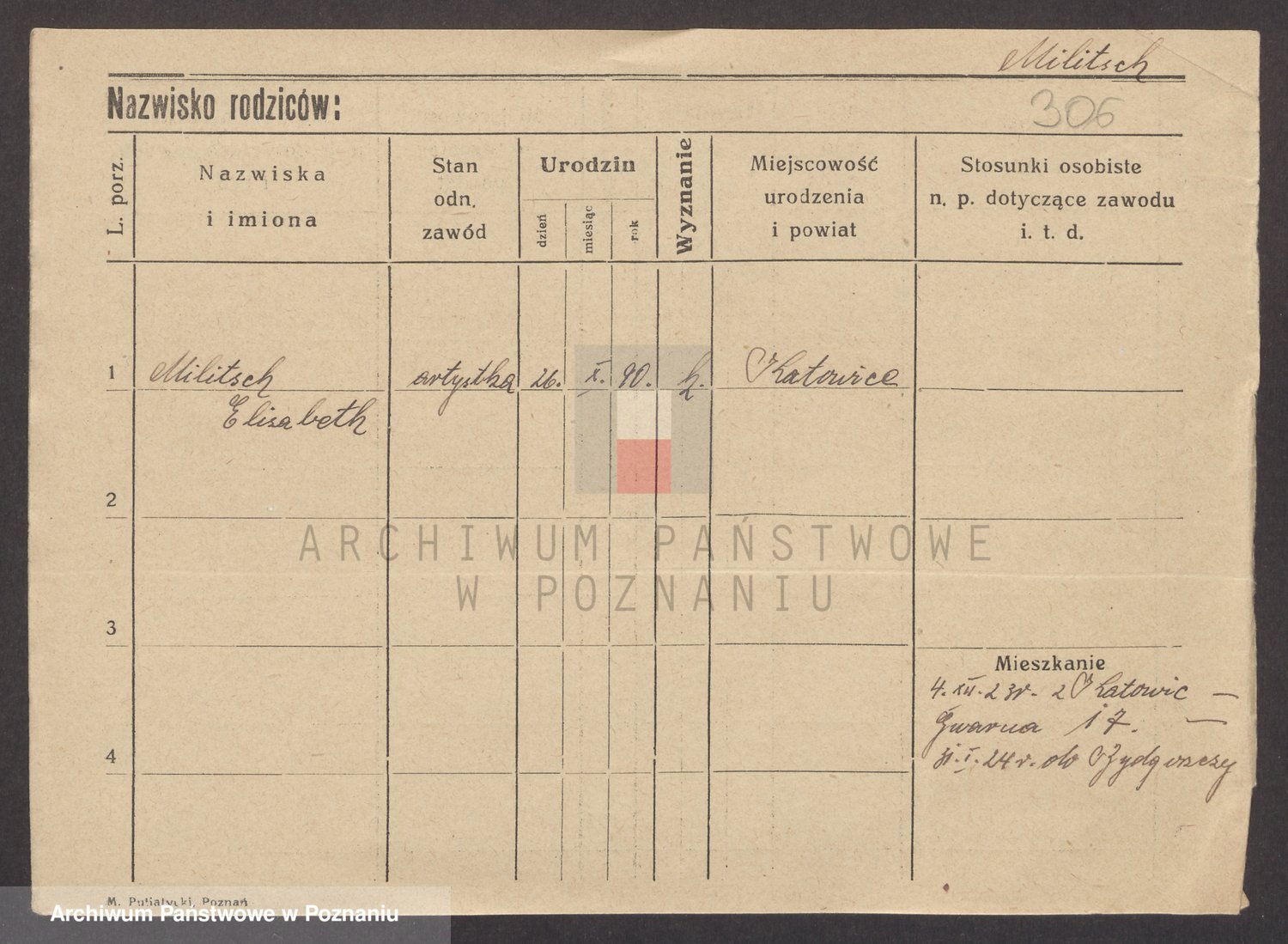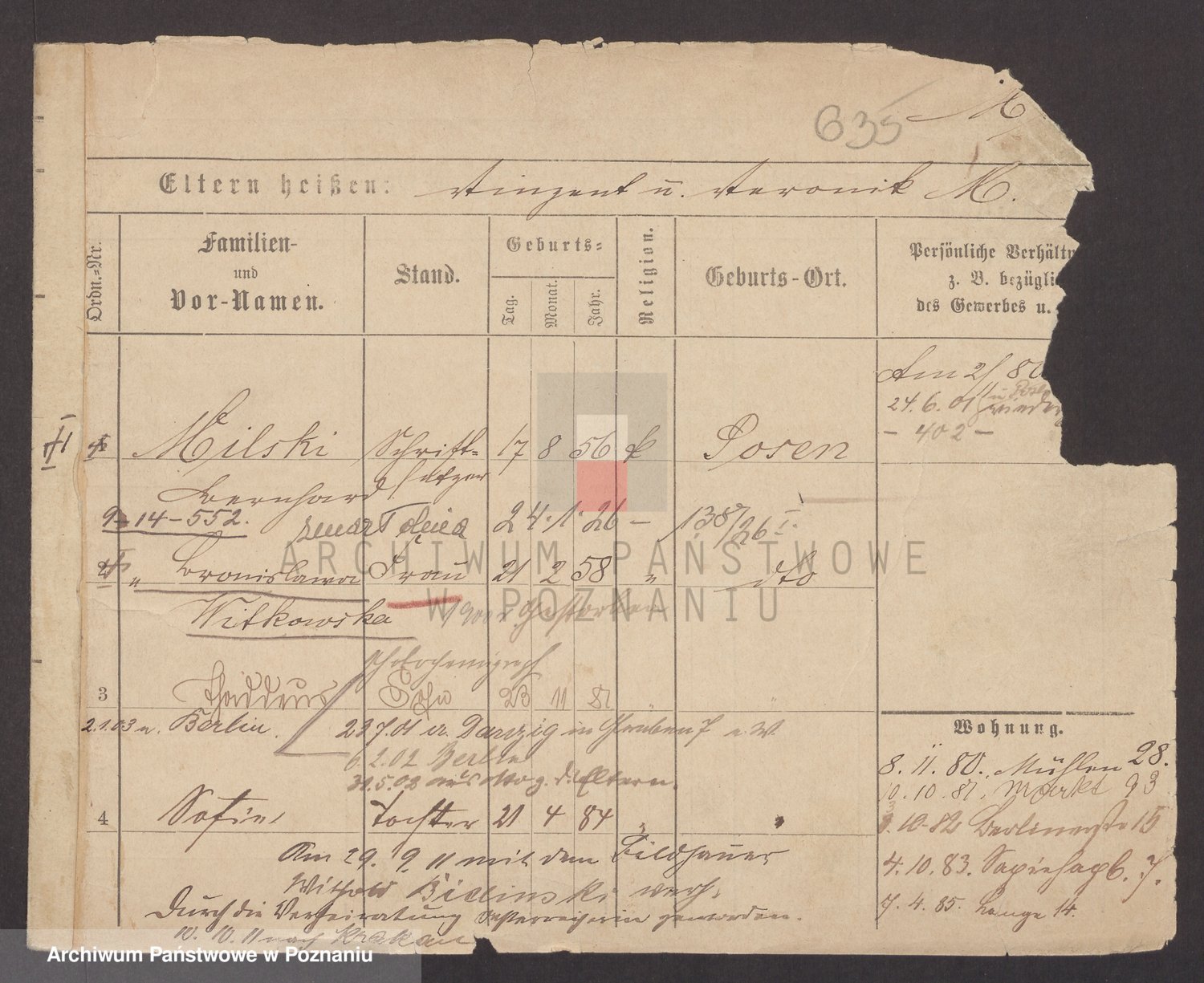 Podgląd karty osobowej dostępny jest po kliknięciu na nazwisko lub ikonkę karty. Można dokonywać powiększenia (ikony na górze) lub przechodzić między kolejnymi skanami (strzałki po bokach).