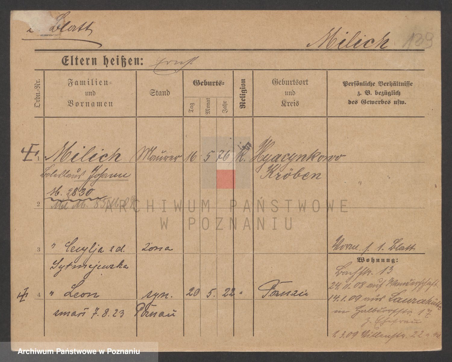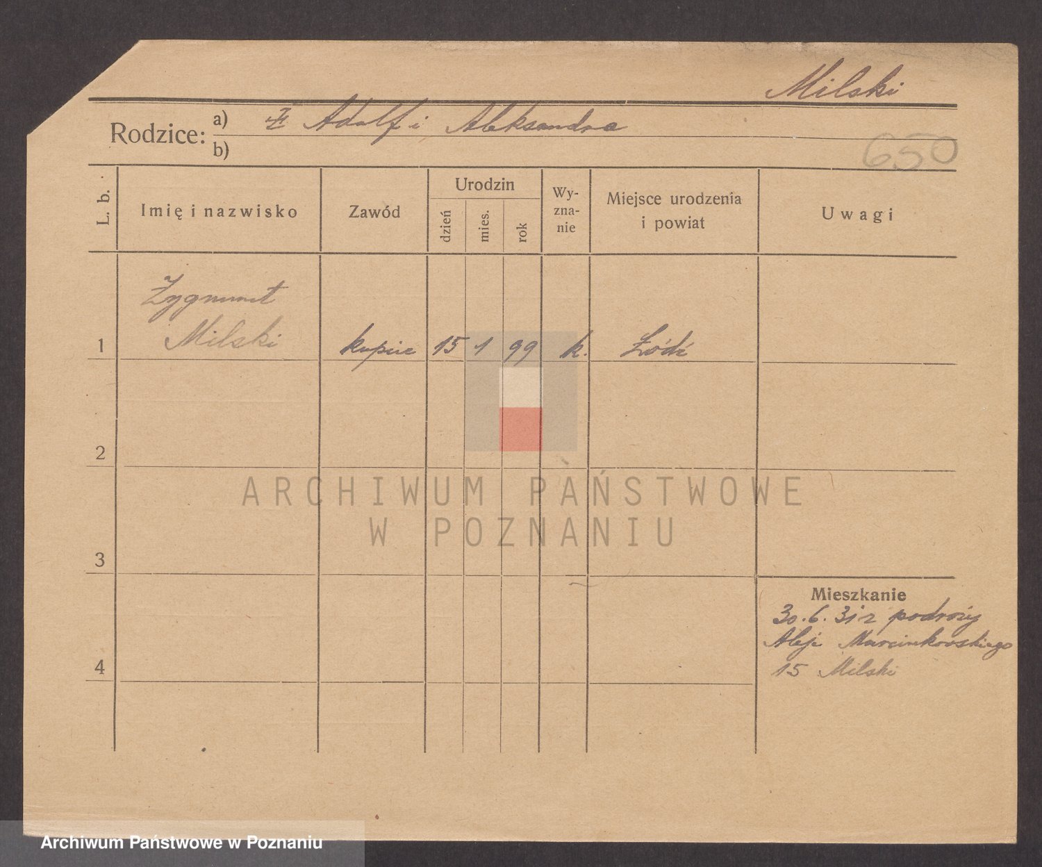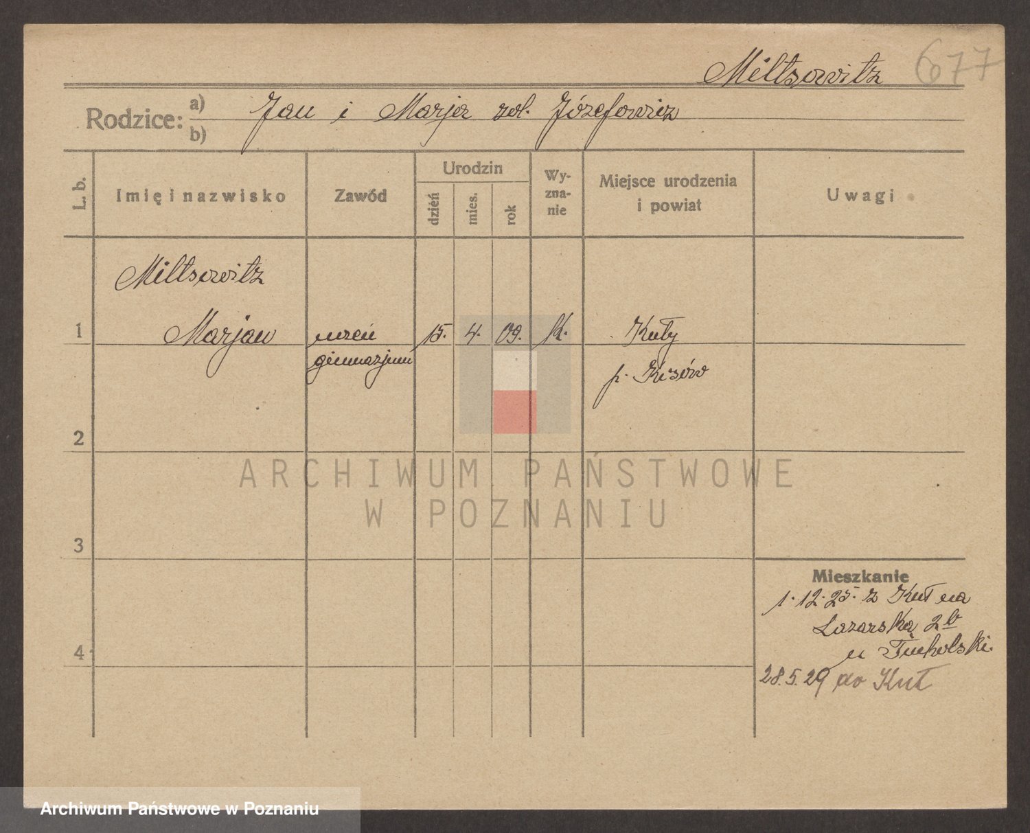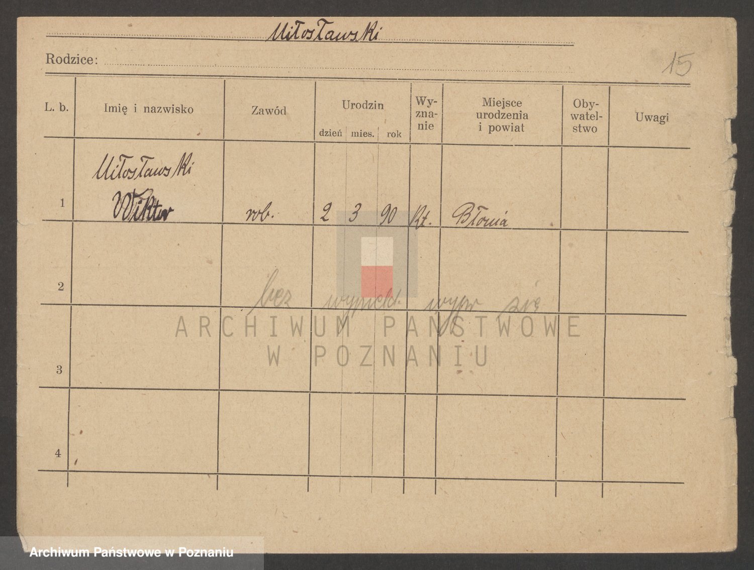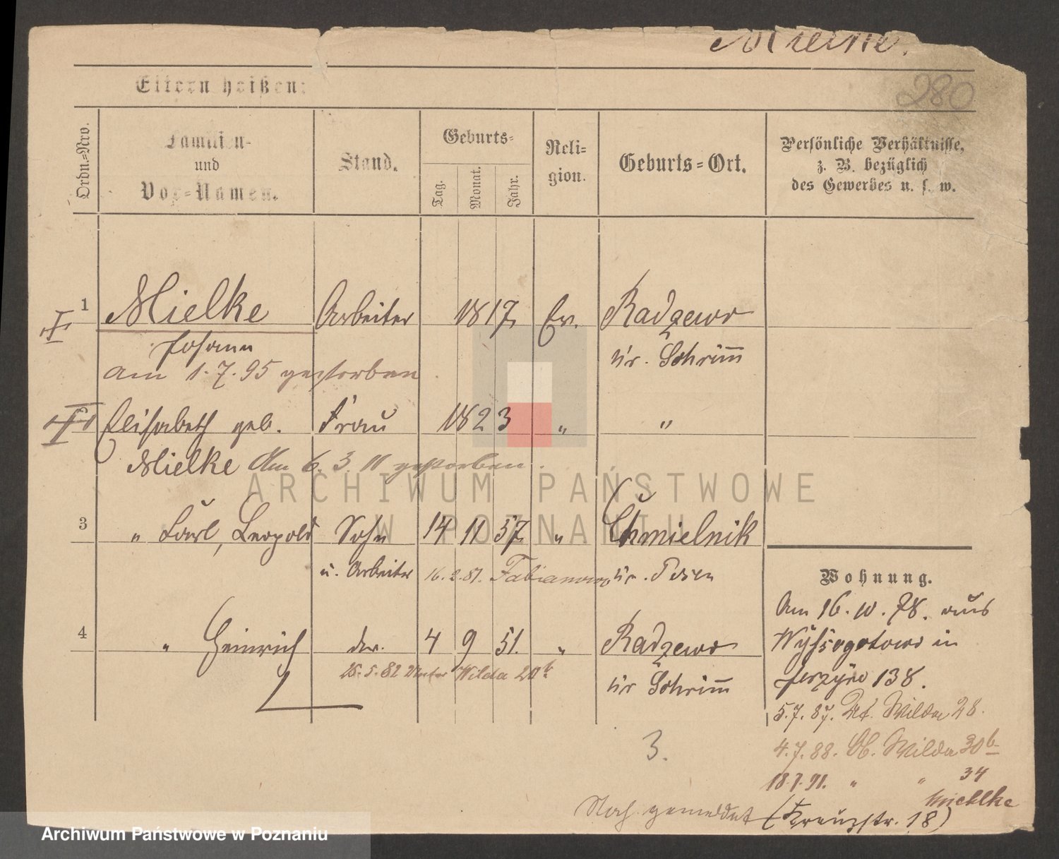 Podgląd karty osobowej dostępny jest po kliknięciu na nazwisko lub ikonkę karty. Można dokonywać powiększenia (ikony na górze) lub przechodzić między kolejnymi skanami (strzałki po bokach).